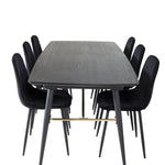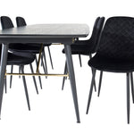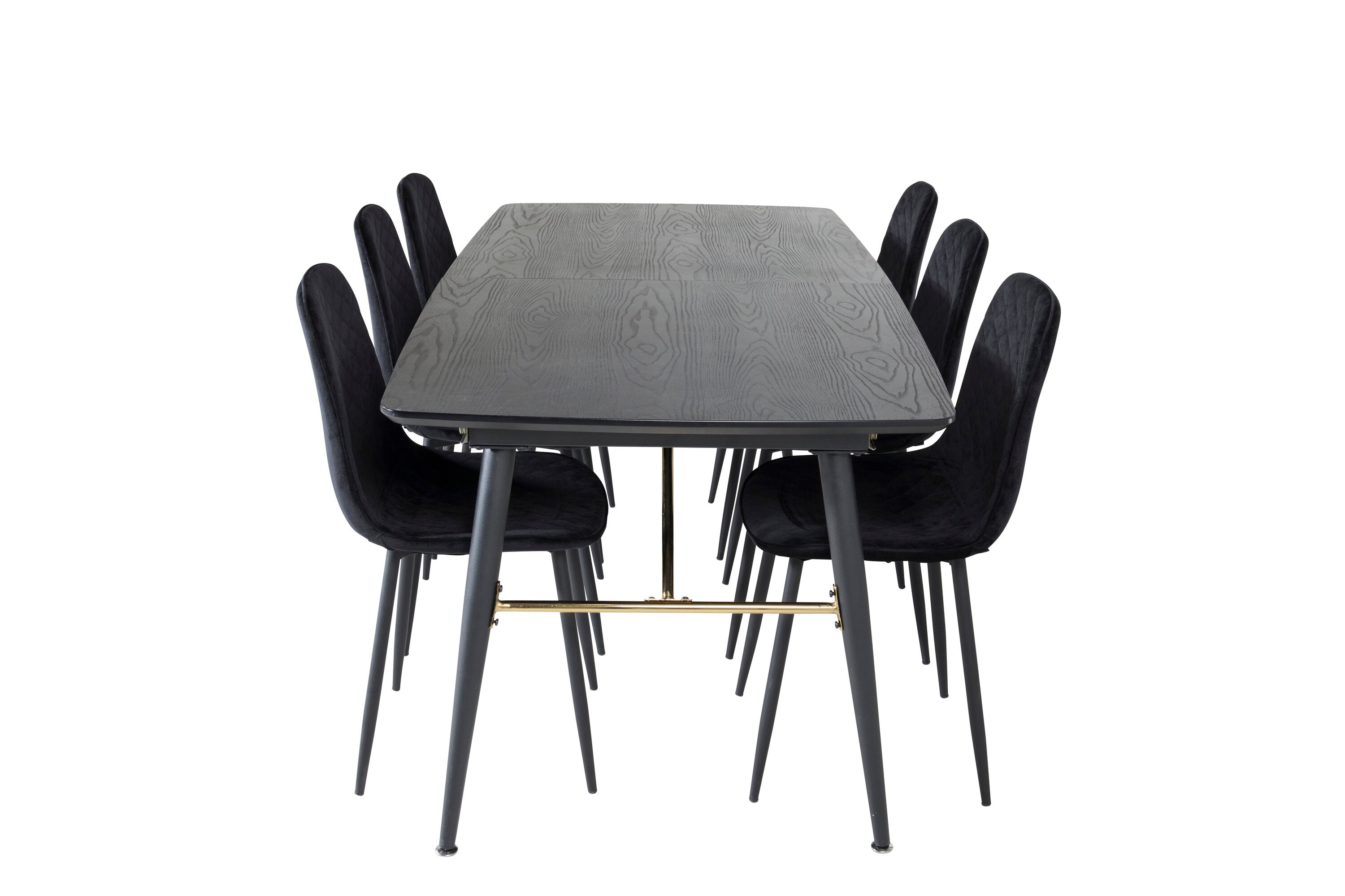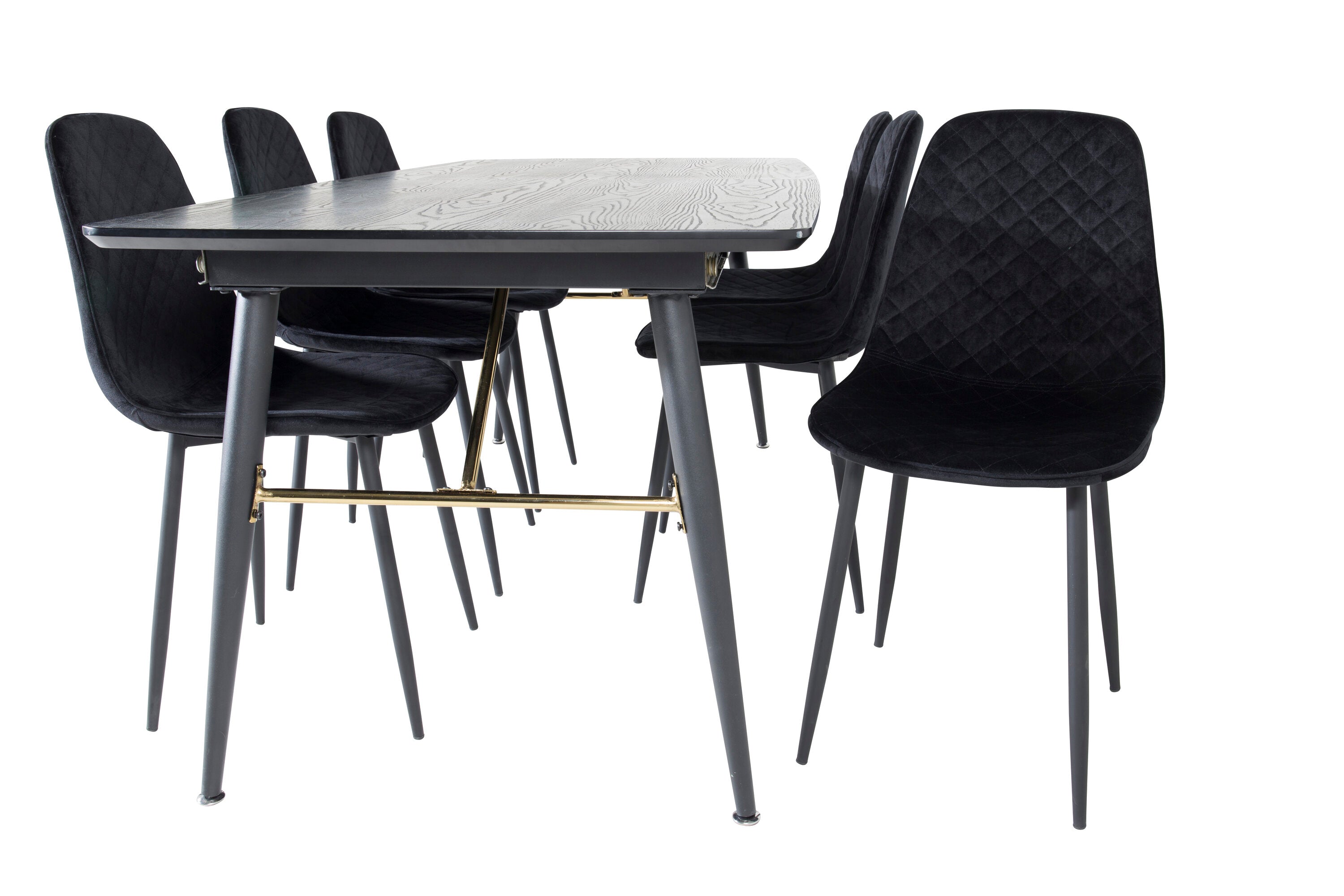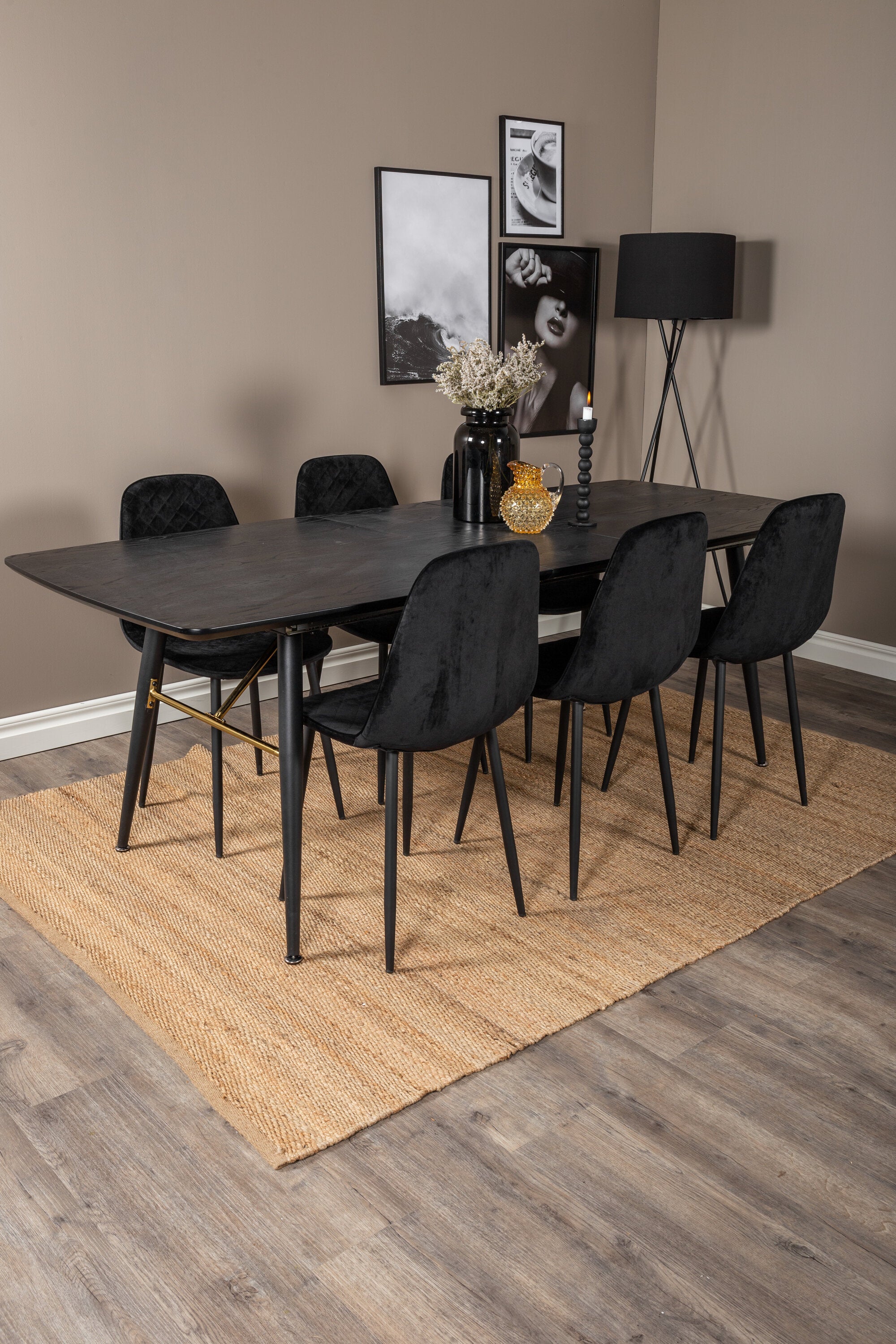 Zlatý rozkládací stůl - 180/220*85*H76 Černá dýha - Černé nohy - Mosazné detaily+Jídelní židle Polar Diamond - Černé nohy - Black Velvet_6