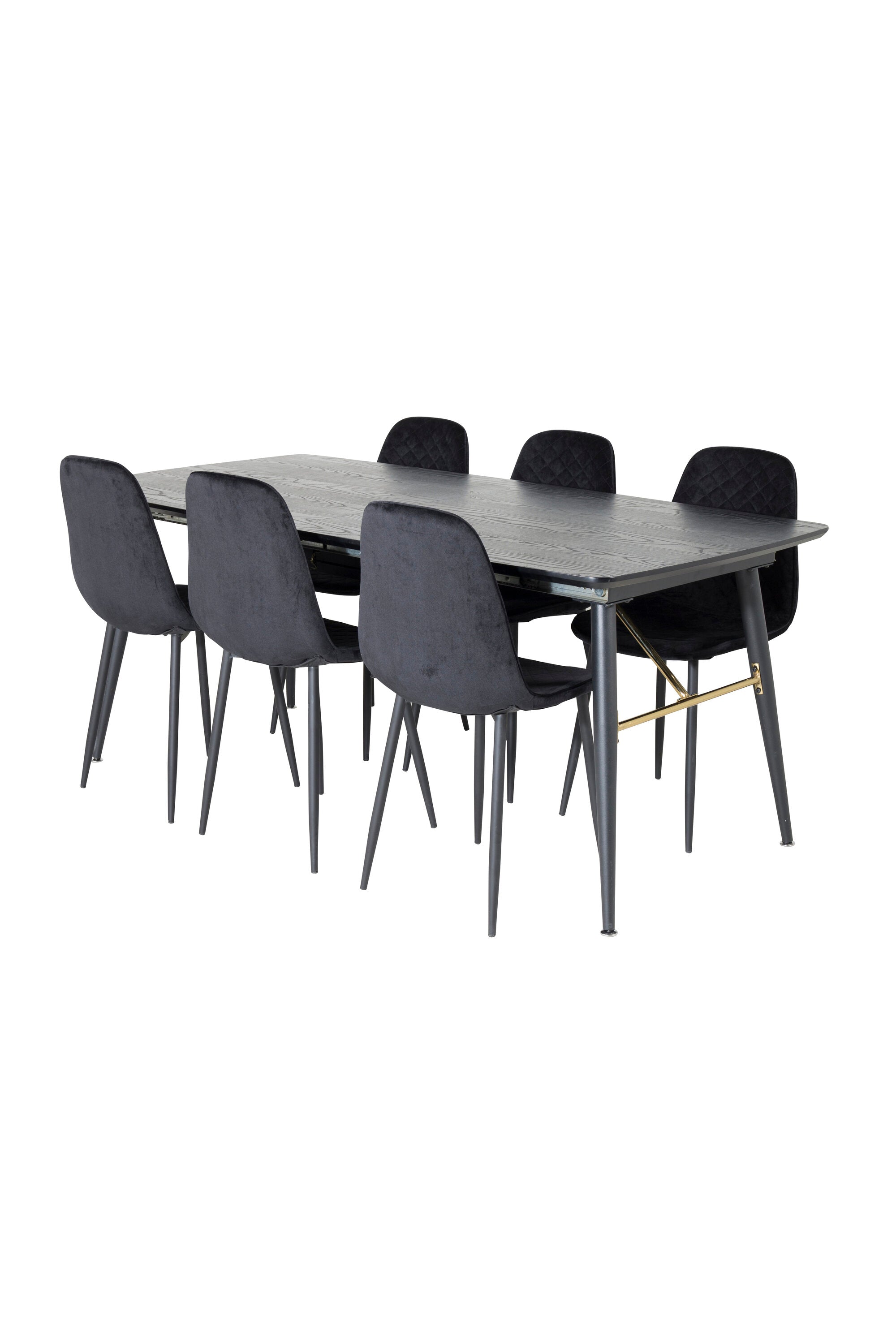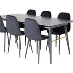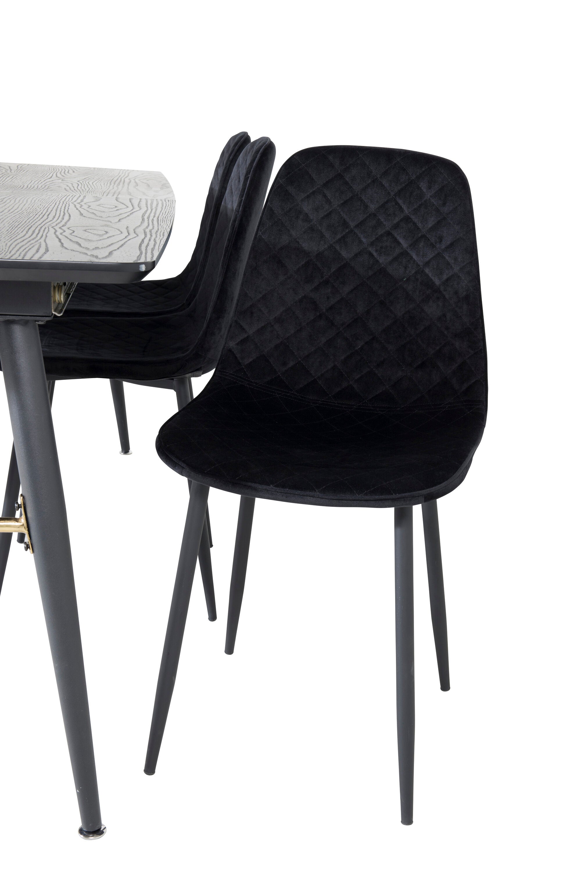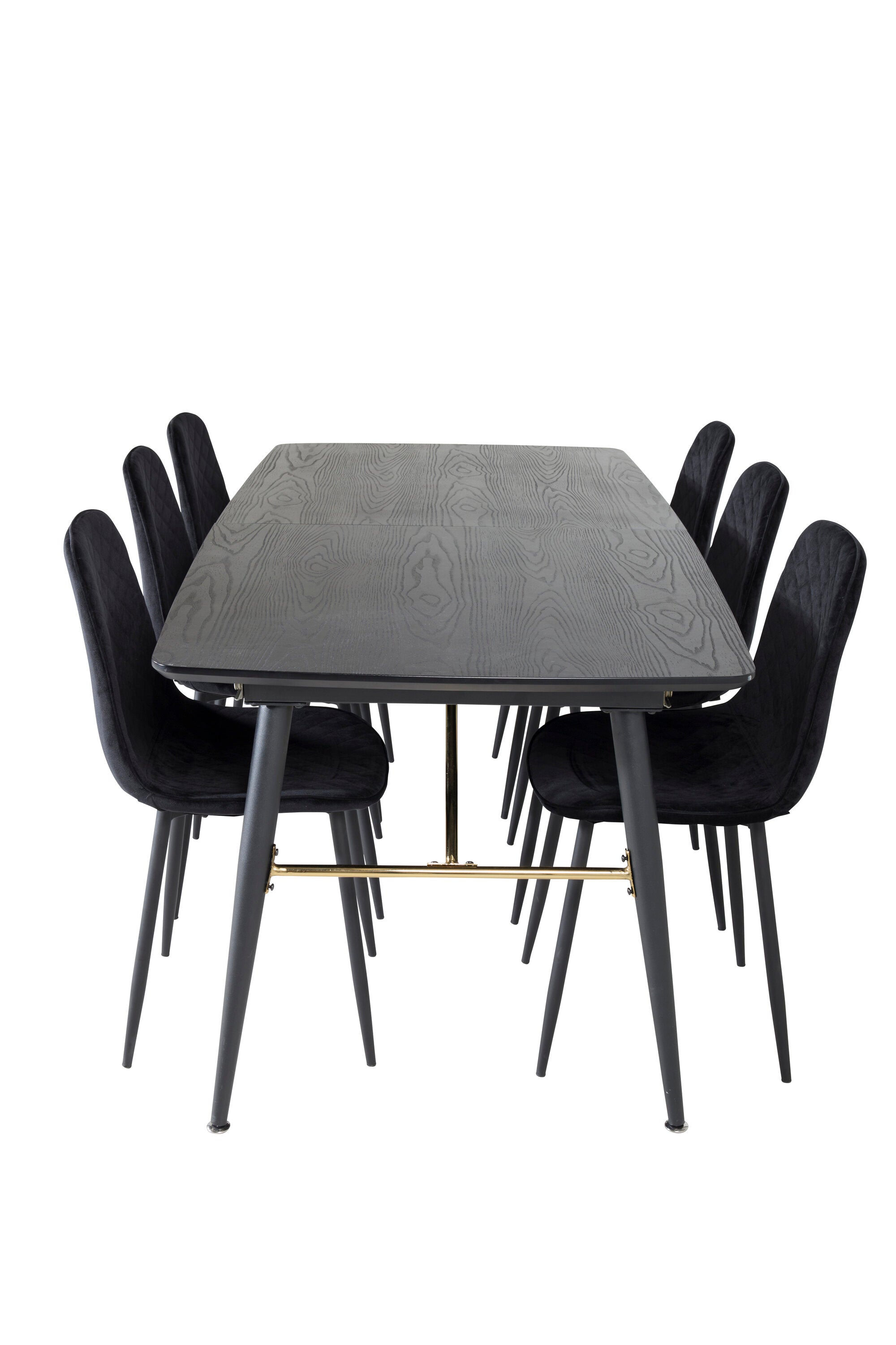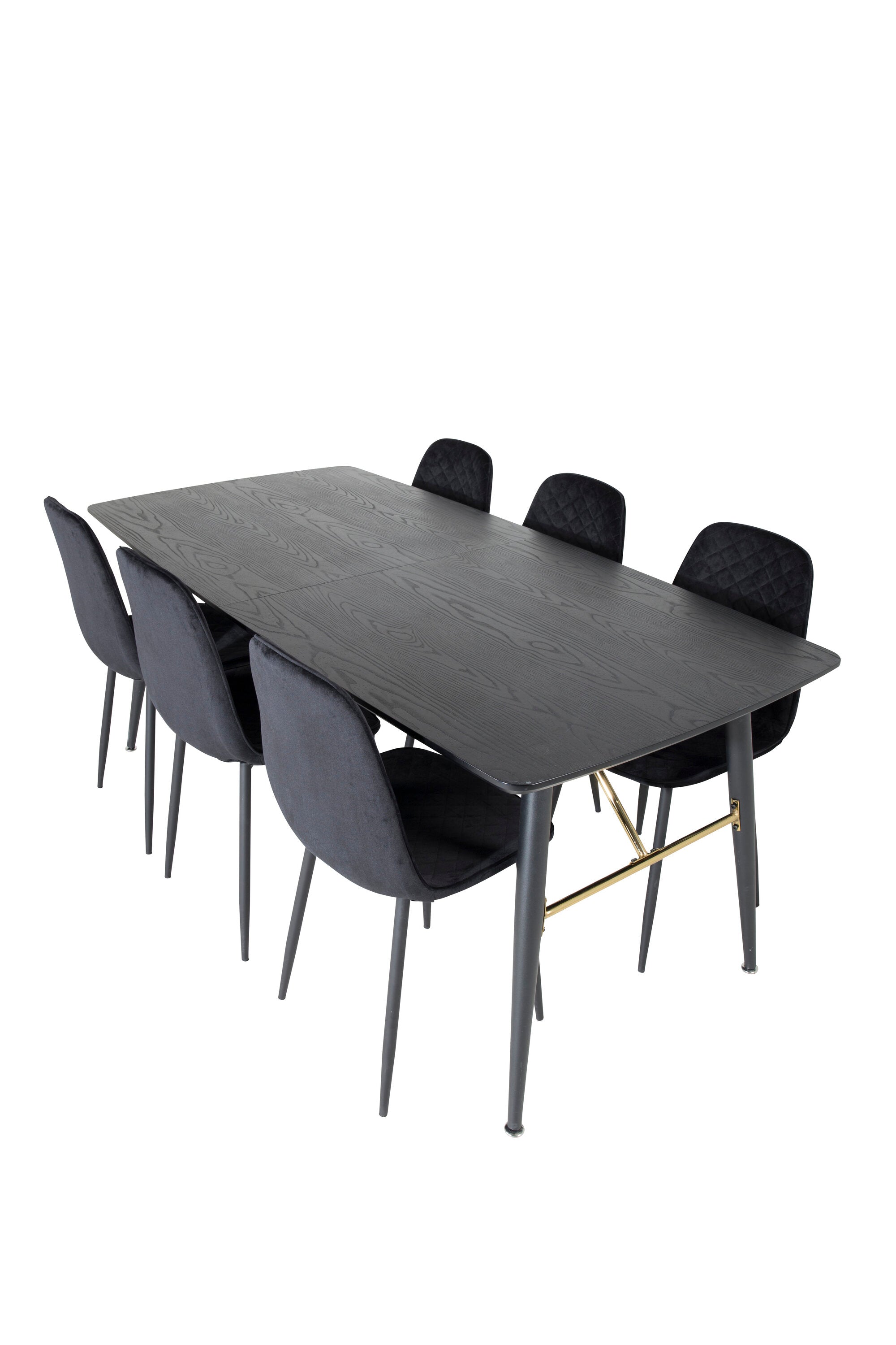 Zlatý rozkládací stůl - 180/220*85*H76 Černá dýha - Černé nohy - Mosazné detaily+Jídelní židle Polar Diamond - Černé nohy - Black Velvet_6