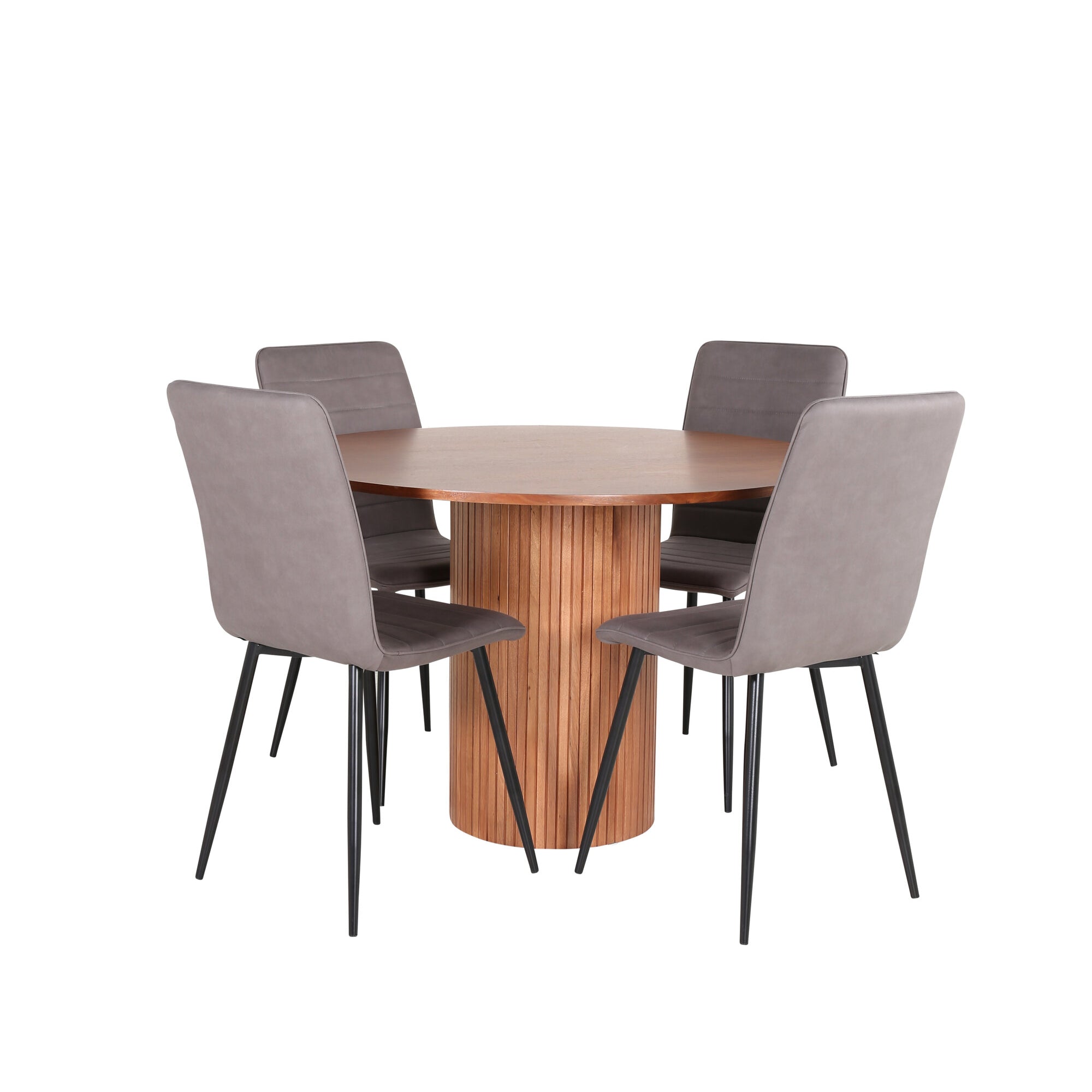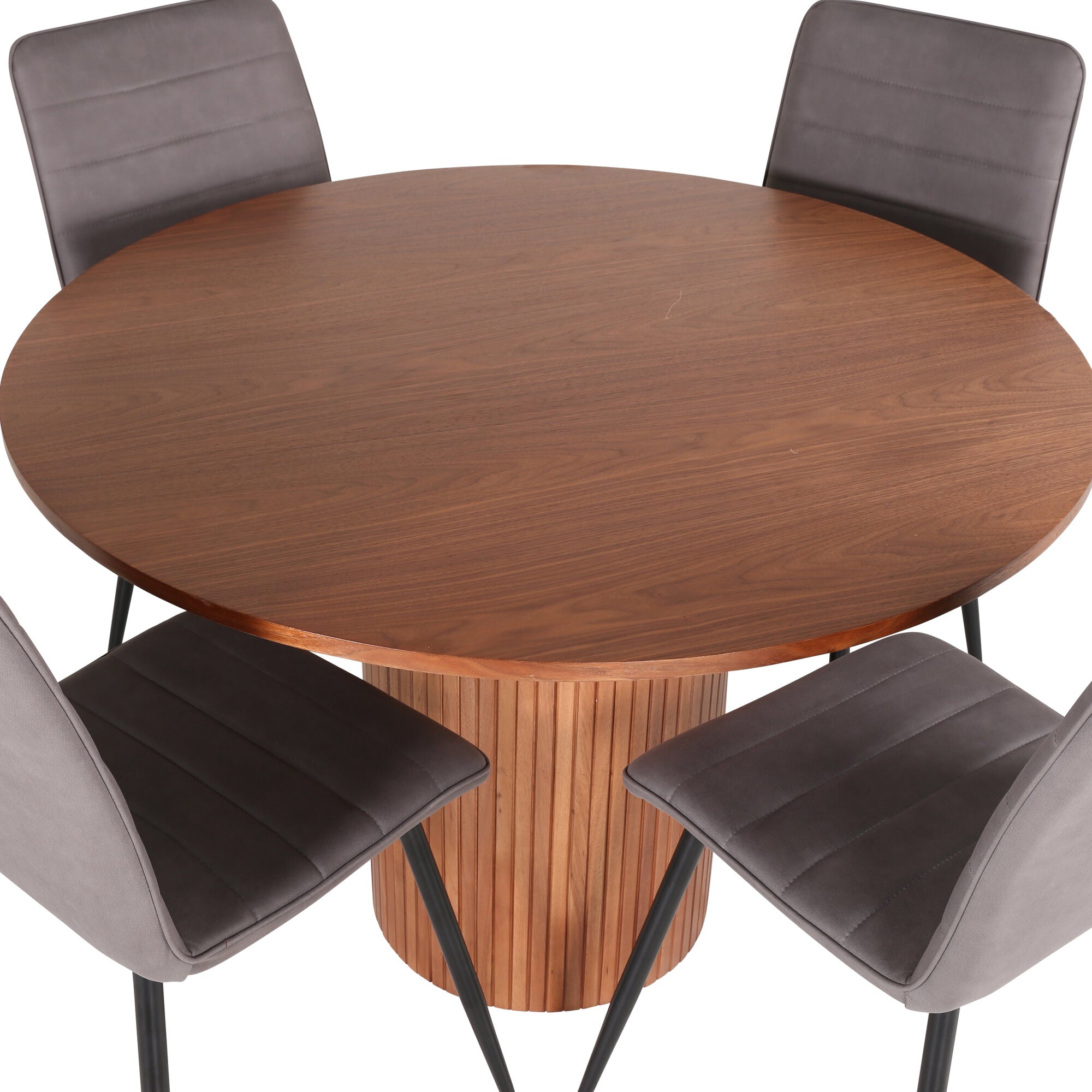 Bianca kulatý jídelní stůl - ořech / černá dýha + židle Windu Lyx - černá / šedá mikrovlákno_4