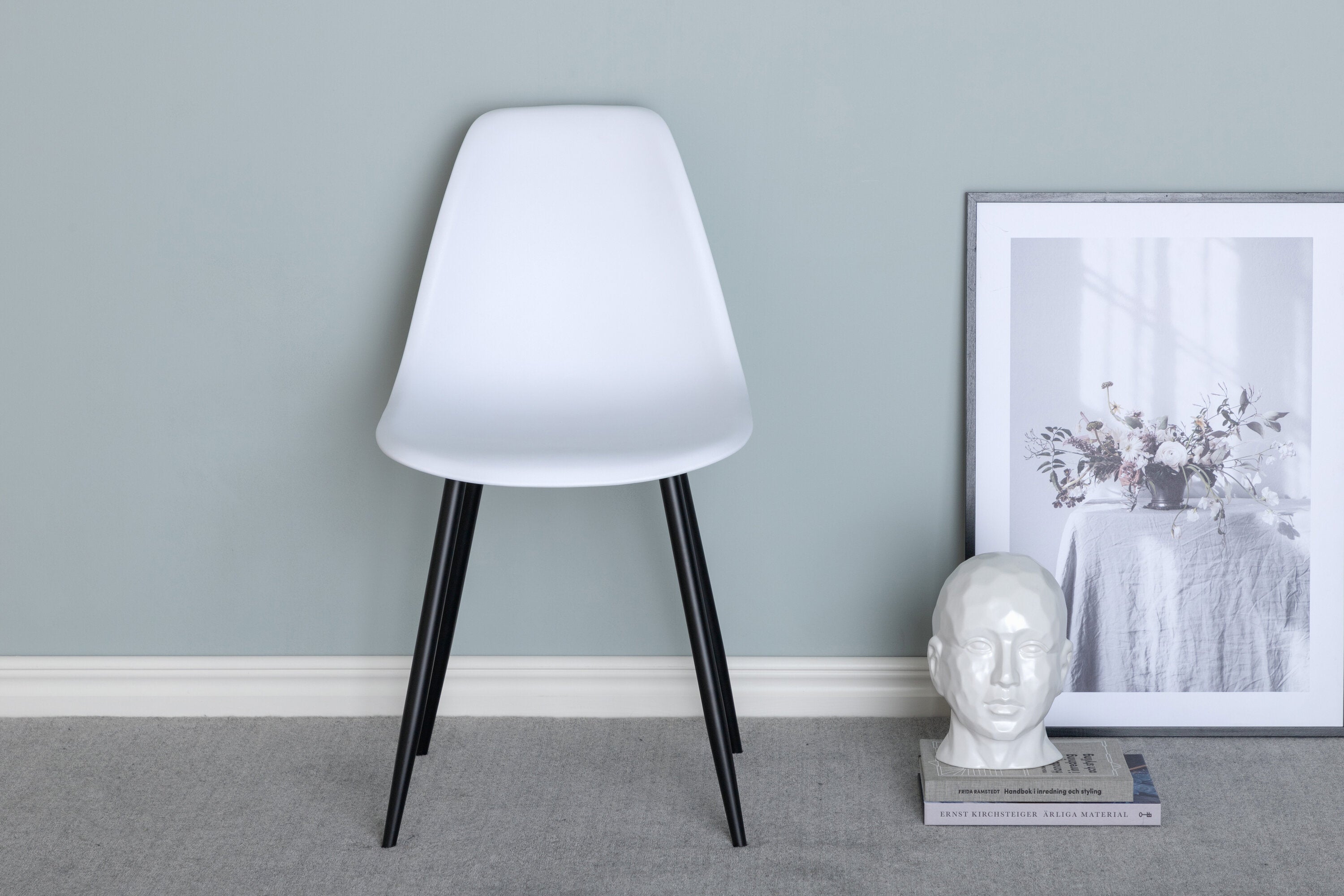 Jídelní židle Polar je stejně praktická jako odolná! Tato jídelní židle s nohami z černého práškově lakovaného kovu a mísovitě zaobleným opěradlem a sedákem z bíleho plně tvarovaného plastu se snadno udržuje. Doplňte ji útulným jídelním stolem a užijte si pohodlné stolování!