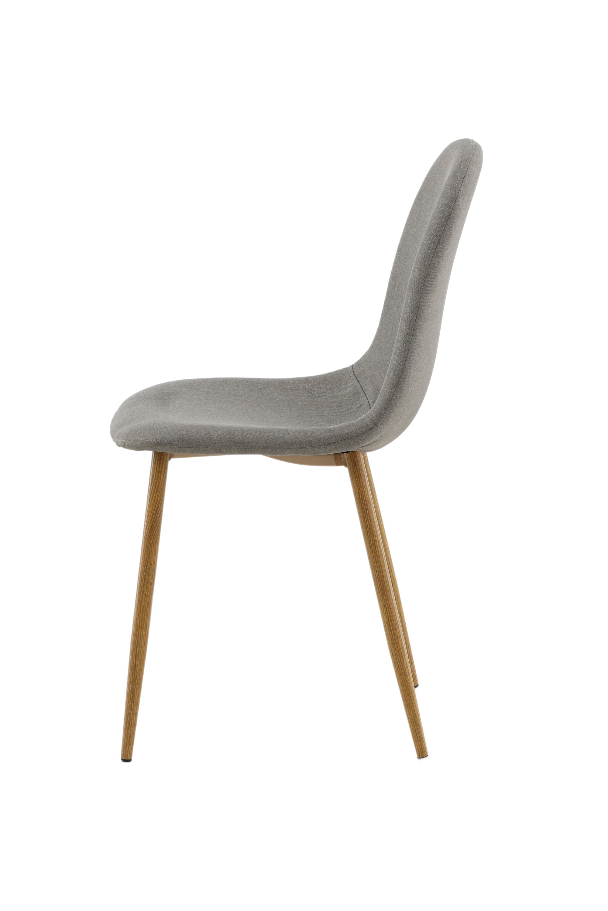 Jídelní židle z řady Polar s důrazem na pohodlí i design! Nohy jsou z kovu, který dodává interiéru moderní dřevěný vzhled a je příjemně sladěn s opěradlem/sedákem, které je z šedé polyesterové tkaniny.