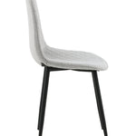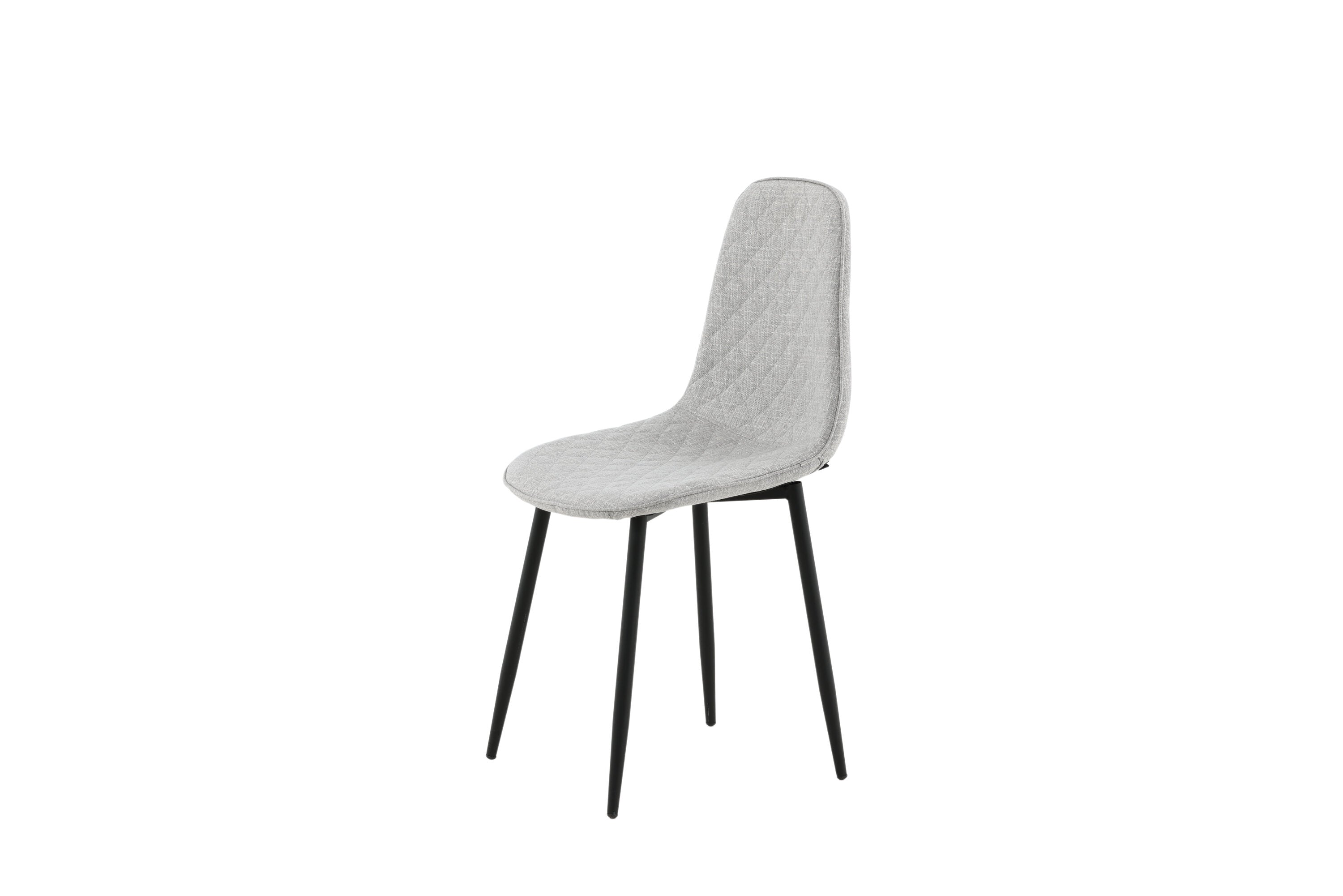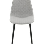 Stylová jídelní židle s jednoduchým designem a stylovými detaily! Jídelní židle ze série Polar má promyšlený design s mírně zaobleným opěradlem a sedákem v čalounění šedou polyesterovou látkou s ozdobným prošitím na vnitřní straně, které tvoří dekorativní mřížkový vzor. Nohy jsou z černého lakovaného kovu