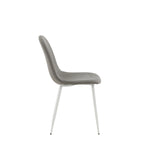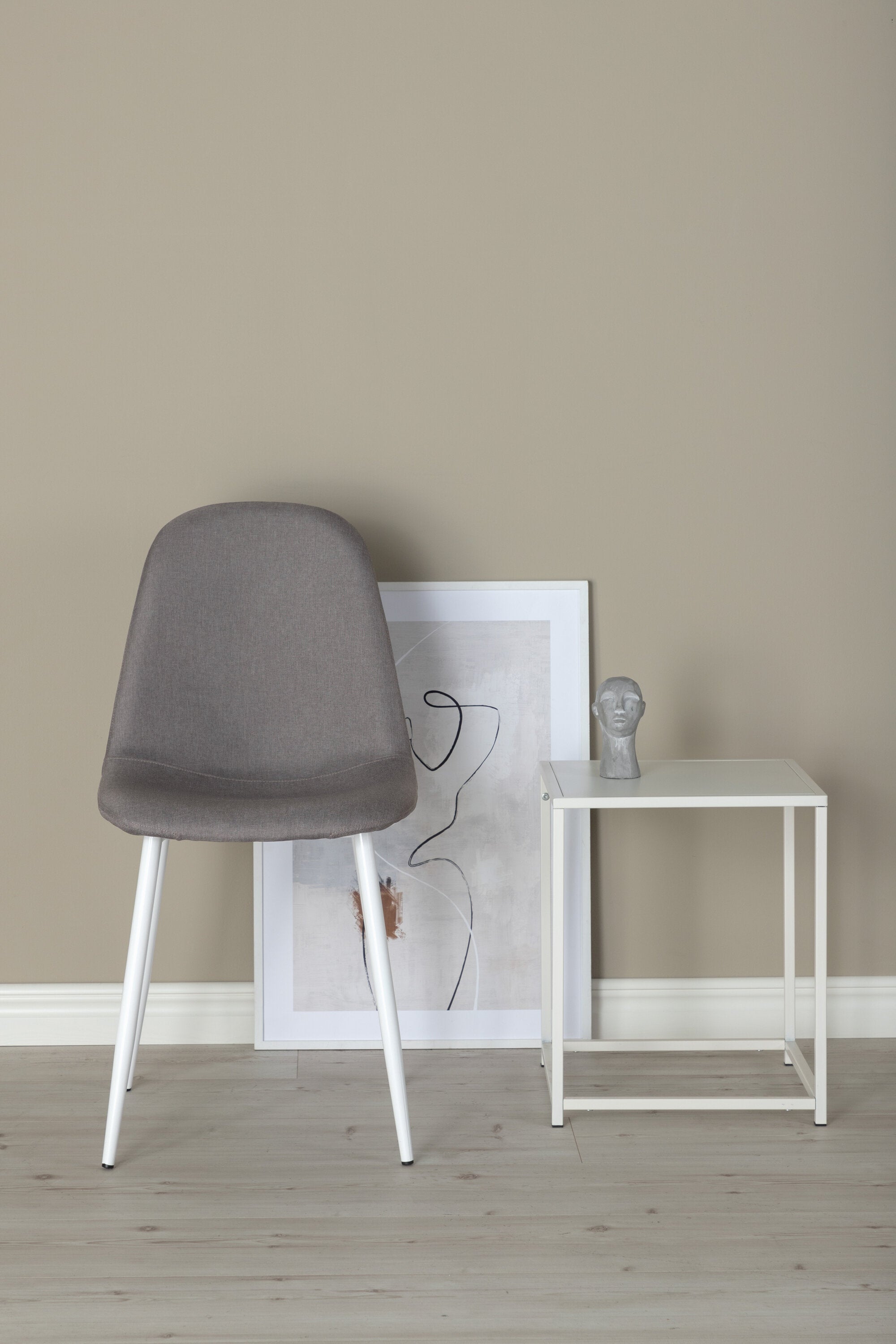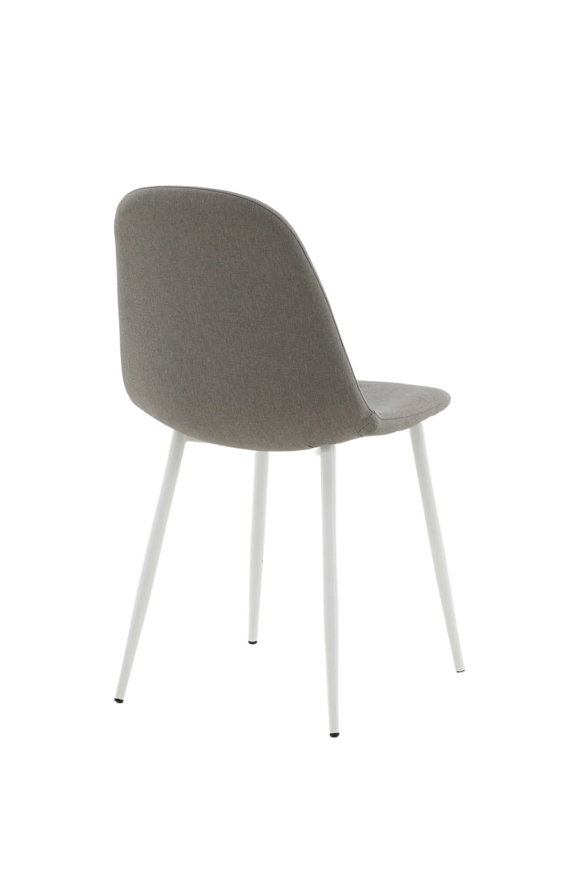 Praktická jídelní židle v celé své jednoduchosti - stejně pohodlná jako praktická! Polar má celočalouněnou konstrukci s nohami z bíleho lakovaného kovu, mírně zaobleným opěradlem a sedákem z čalouněné šedé polyesterové tkaniny. Slaďte ho se stylovým jídelním stolem a užívejte si útulné stolování!