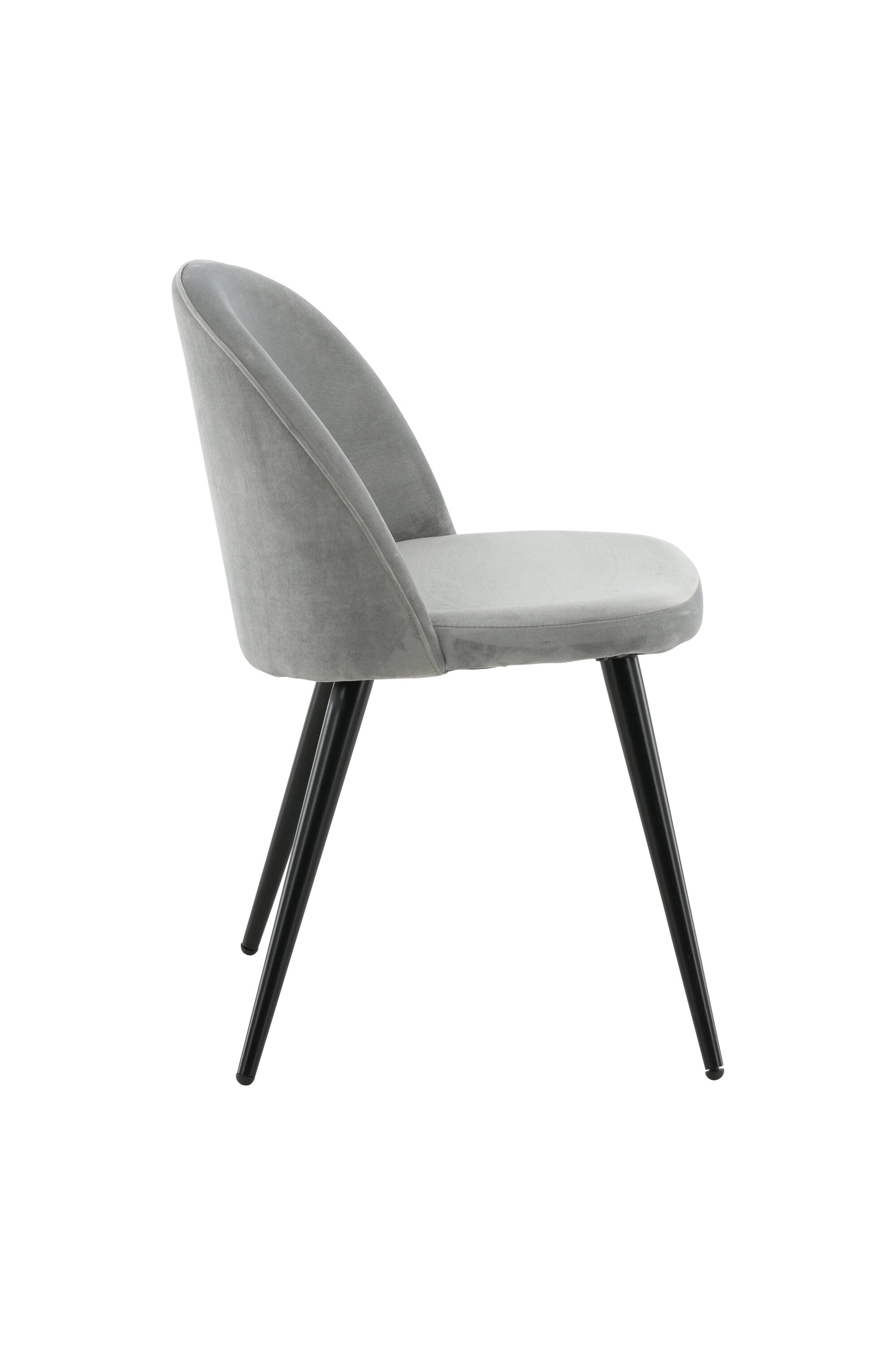 Stylová jídelní židle v příjemné šedé barvě s moderním designem - co víc si přát? Šedá jídelní židle Velvet má celočalouněnou konstrukci, kovové nohy s černou barvou, zaoblený sedák a opěrák z šedé sametové látky s měkkým polstrováním. Nedělejte kompromisy mezi pohodlím a designem!