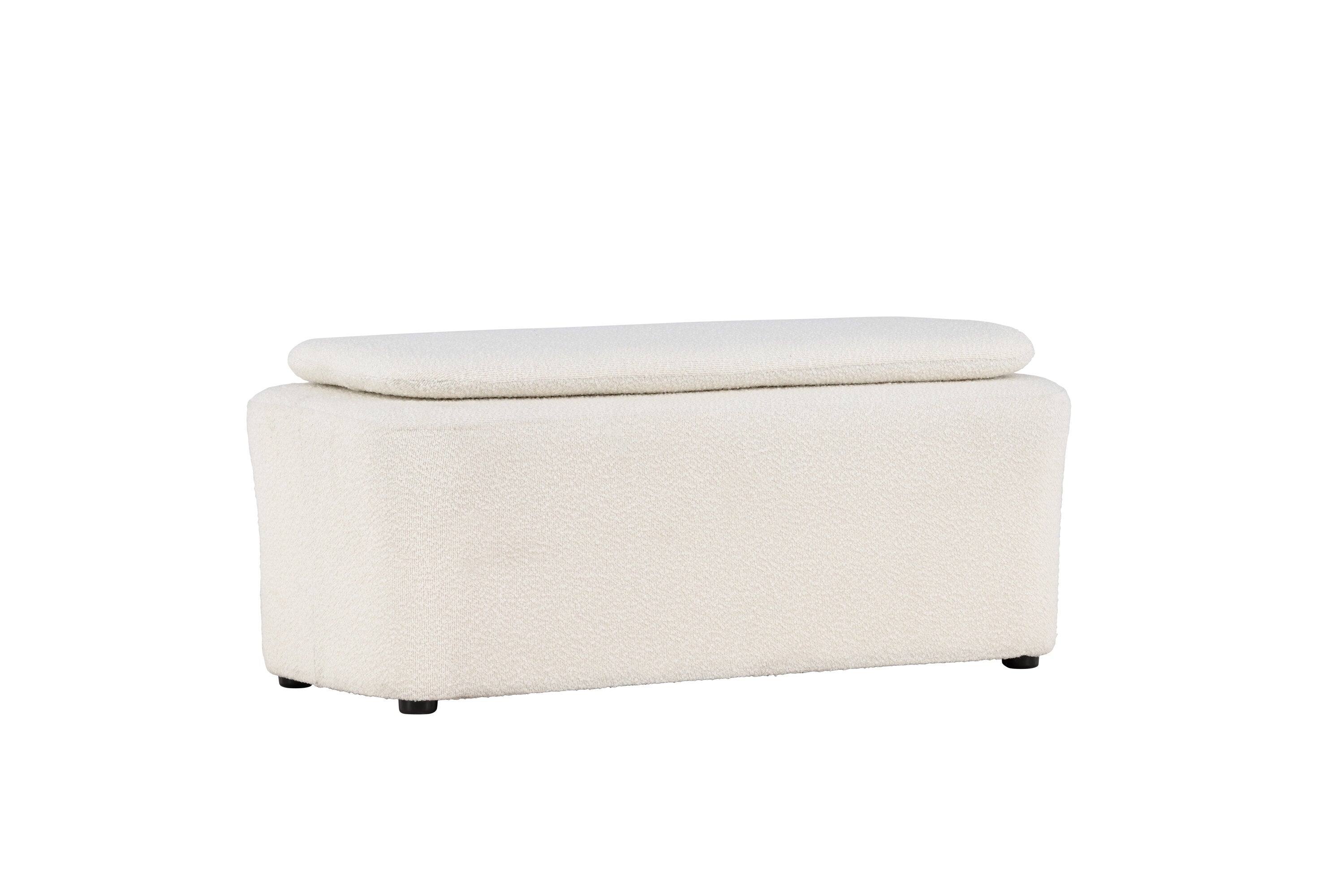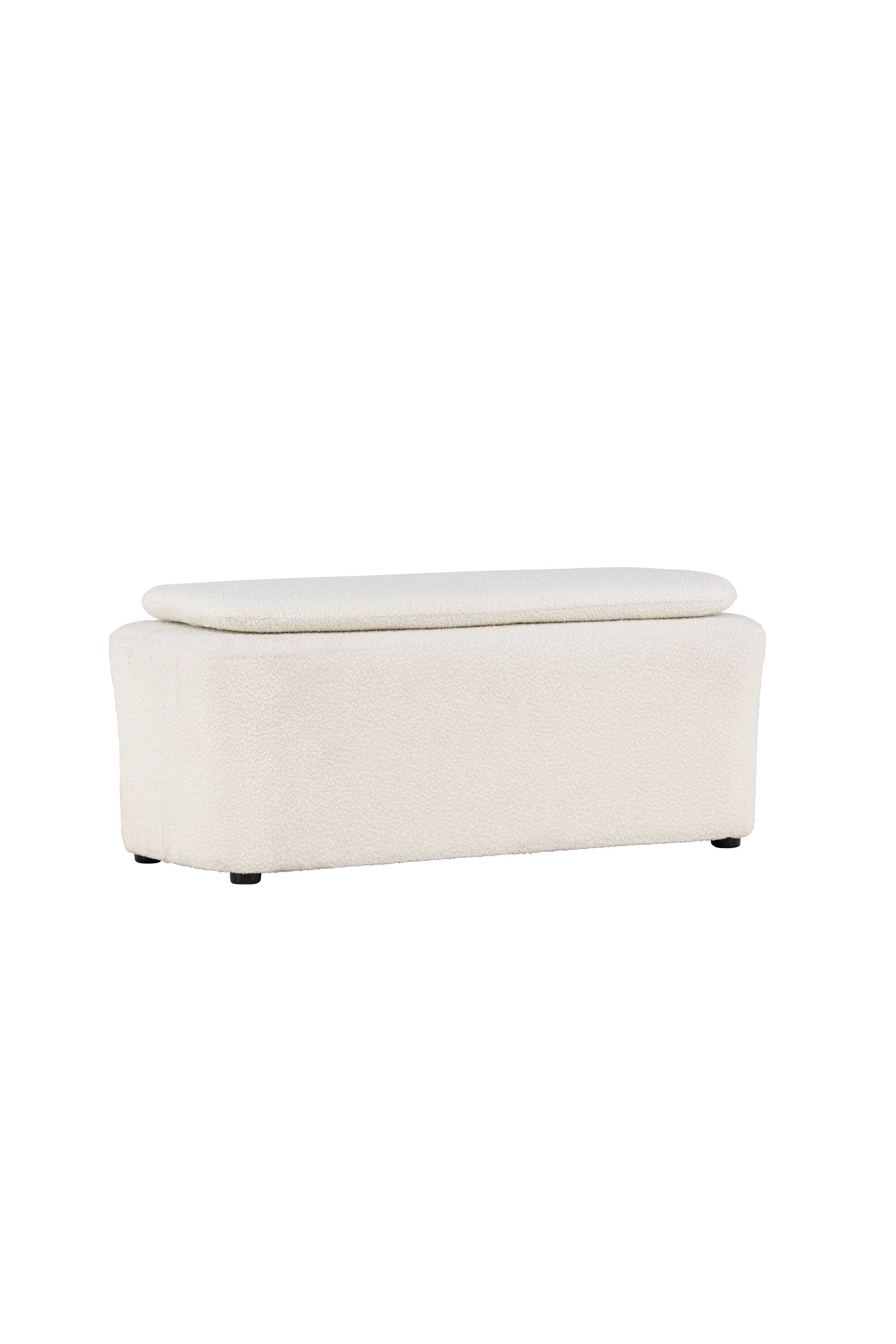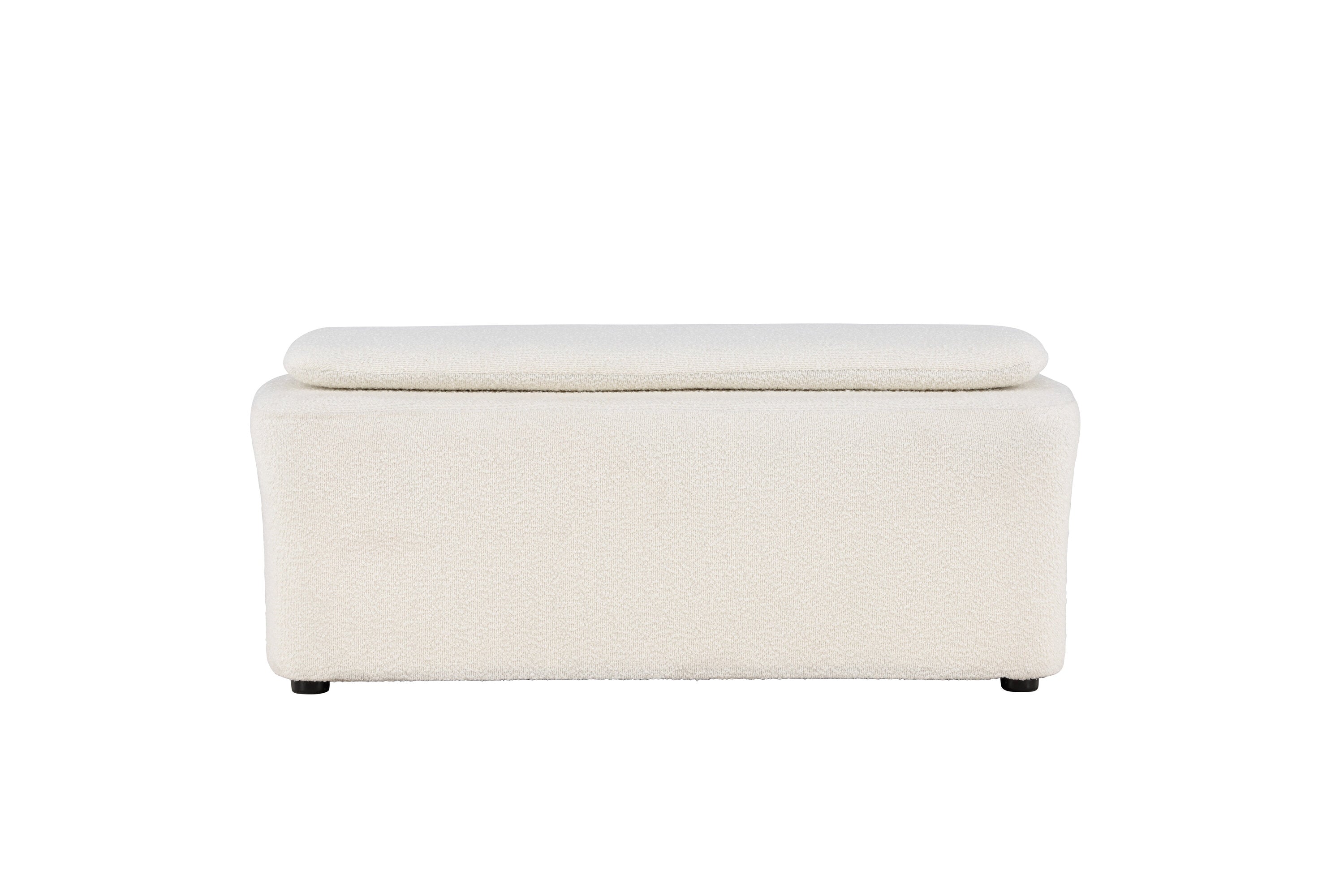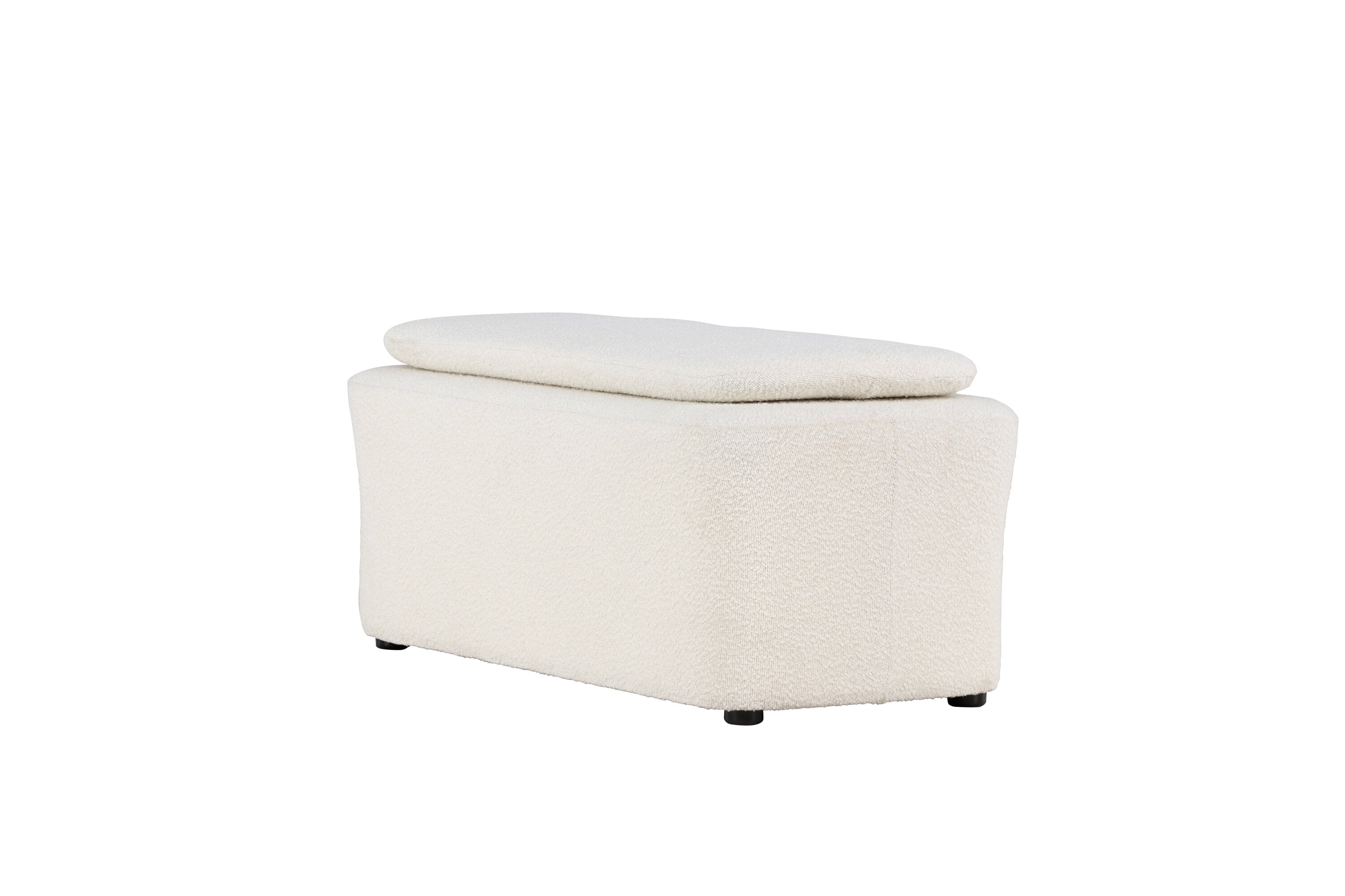 Vytvořte si stylový a elegantní interiér s multifunkčním pufem Laurel! Tento puf z módní bílé látky bouclé je dokonalým doplňkem do domácnosti. Ať už stojí samostatně, nebo je kombinován s křeslem ze stejné řady, puf Laurel vždy udělá dojem. Puf je nejen praktickým kusem nábytku, ale také stylovým a sofistikovaným doplňkem vašeho interiéru. Rozměry pufu: šířka: 110 cm, hloubka: 50 cm, výška: 45 cm.