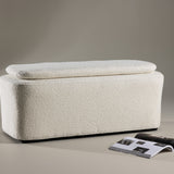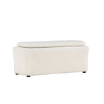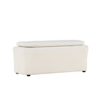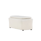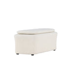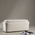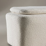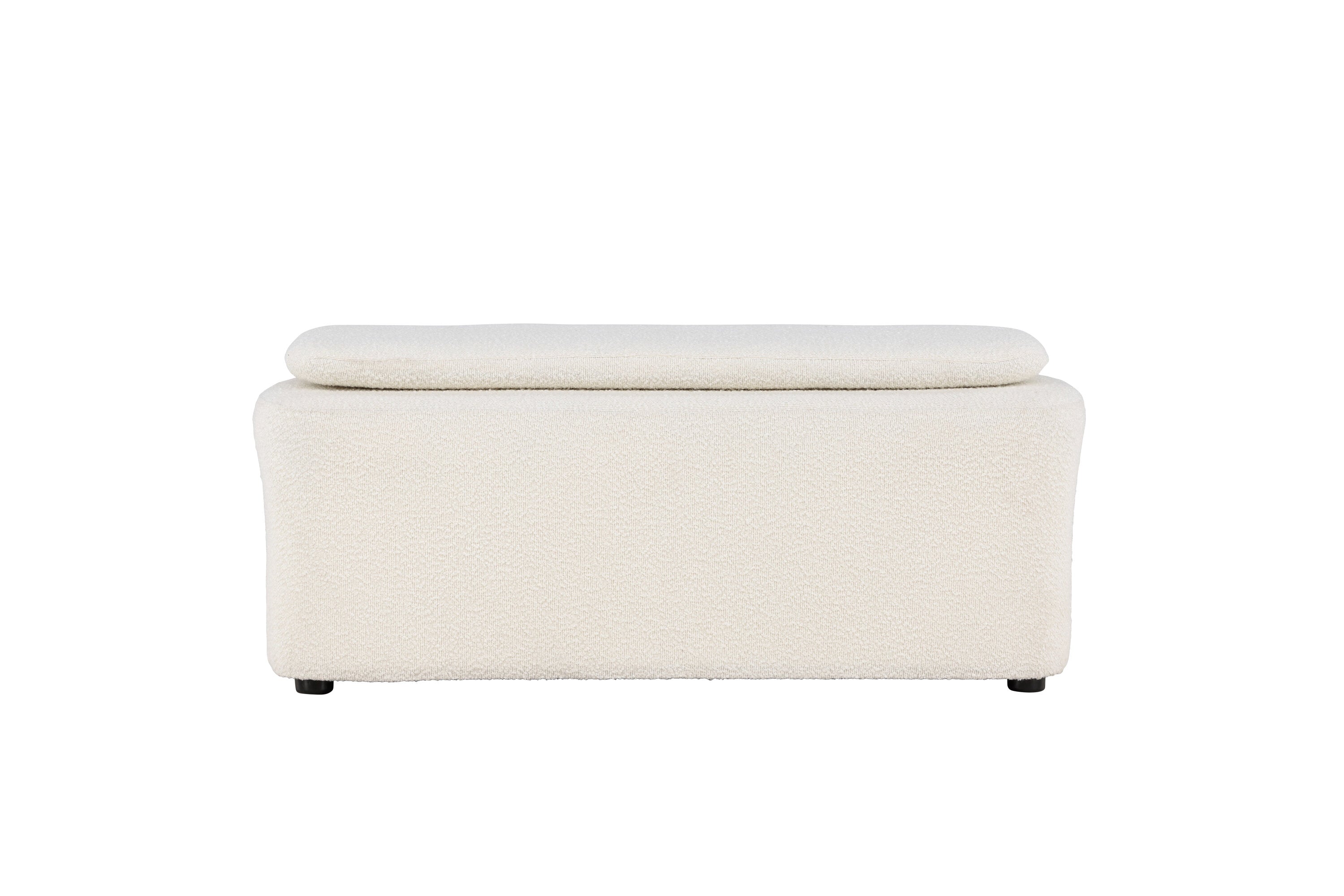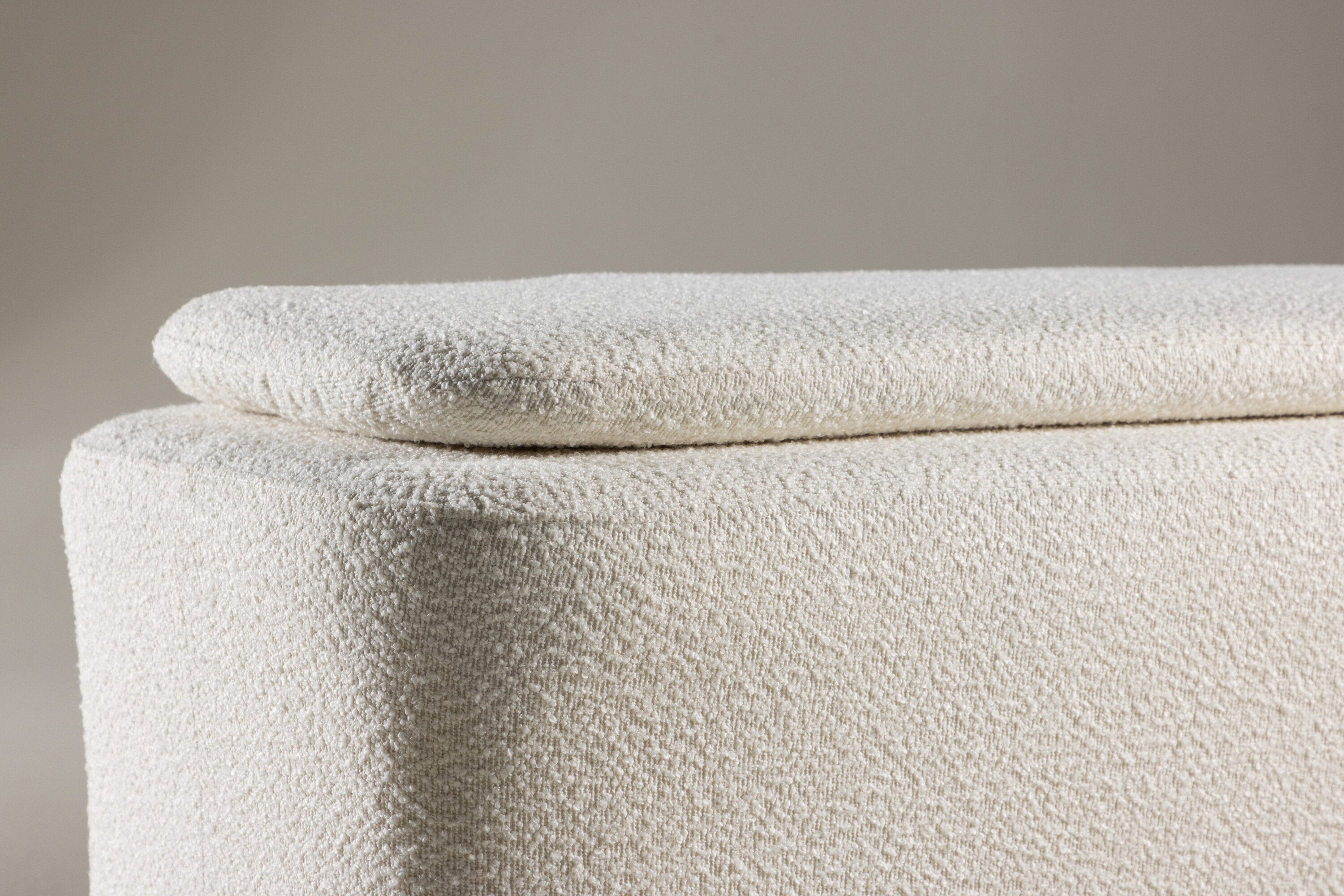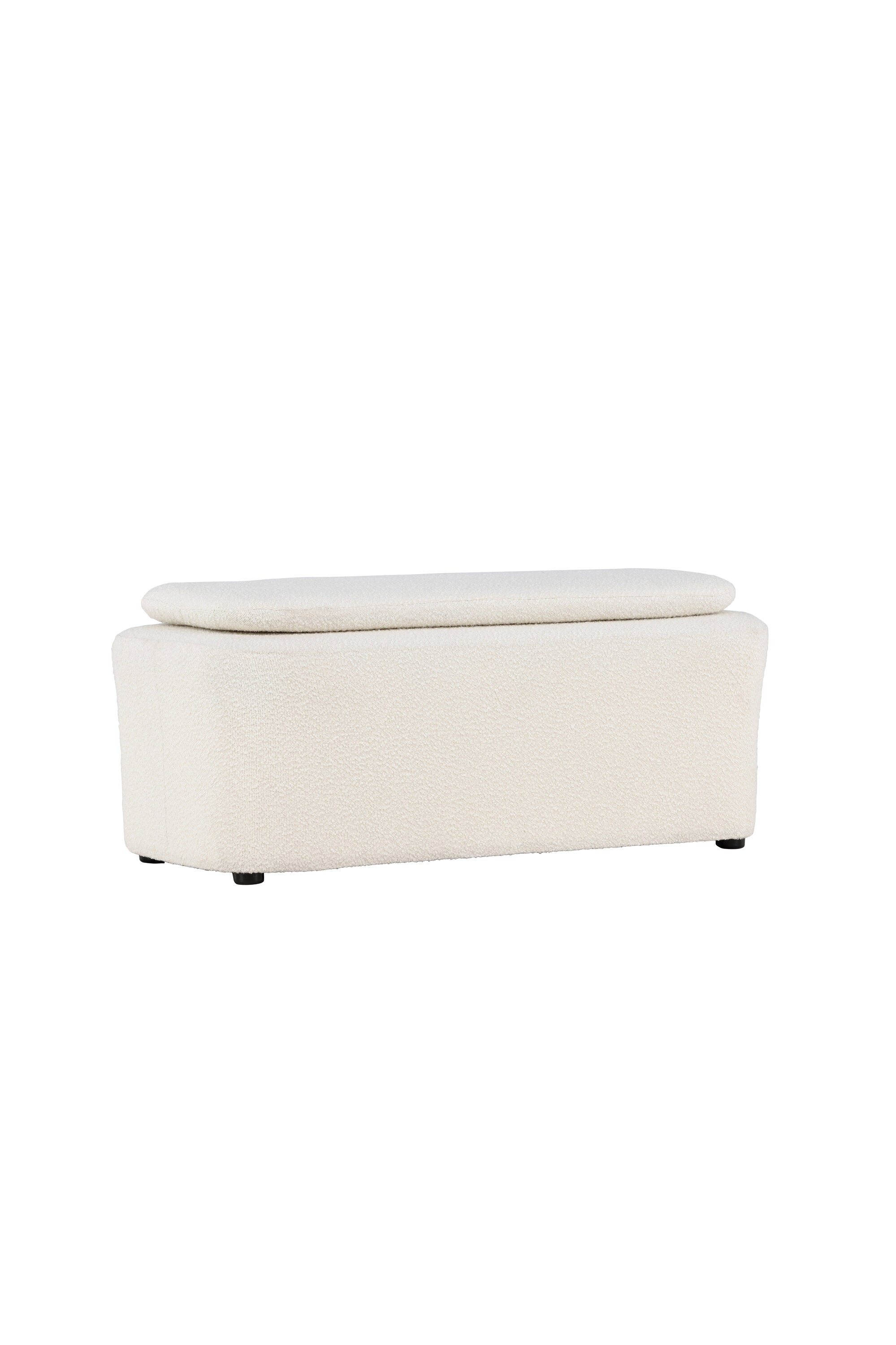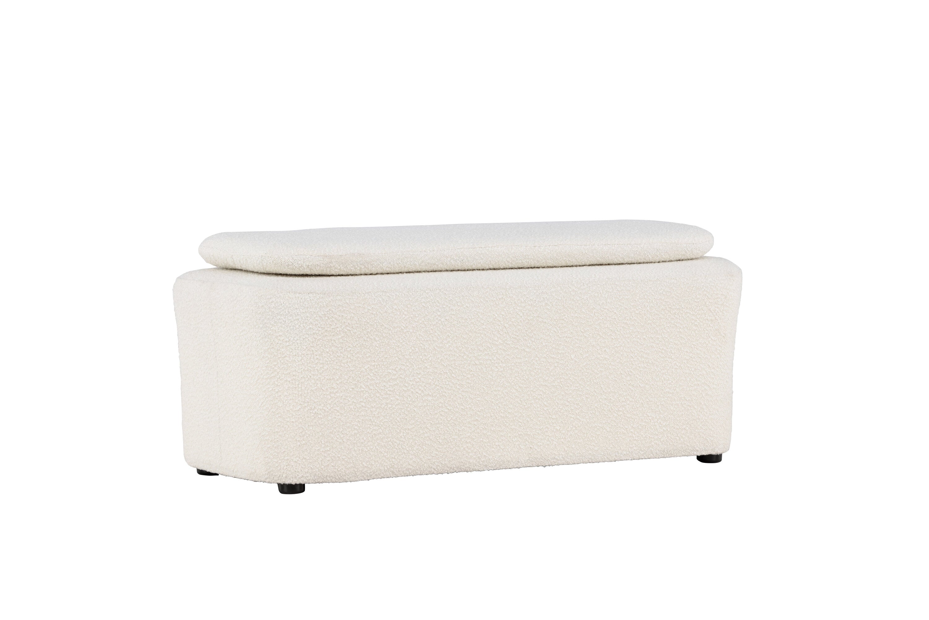 Vytvořte si stylový a elegantní interiér s multifunkčním pufem Laurel! Tento puf z módní bílé látky bouclé je dokonalým doplňkem do domácnosti. Ať už stojí samostatně, nebo je kombinován s křeslem ze stejné řady, puf Laurel vždy udělá dojem. Puf je nejen praktickým kusem nábytku, ale také stylovým a sofistikovaným doplňkem vašeho interiéru. Rozměry pufu: šířka: 110 cm, hloubka: 50 cm, výška: 45 cm.