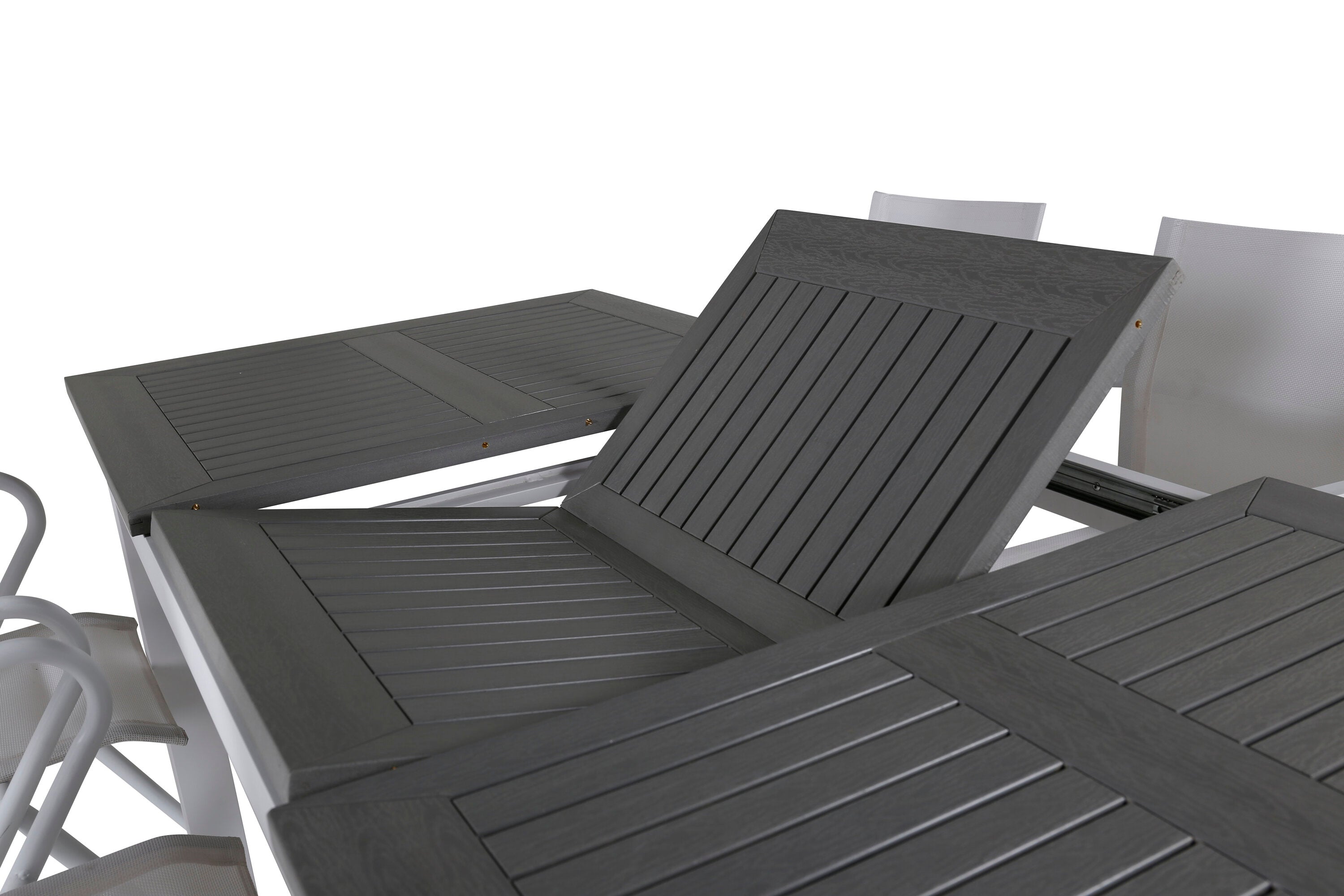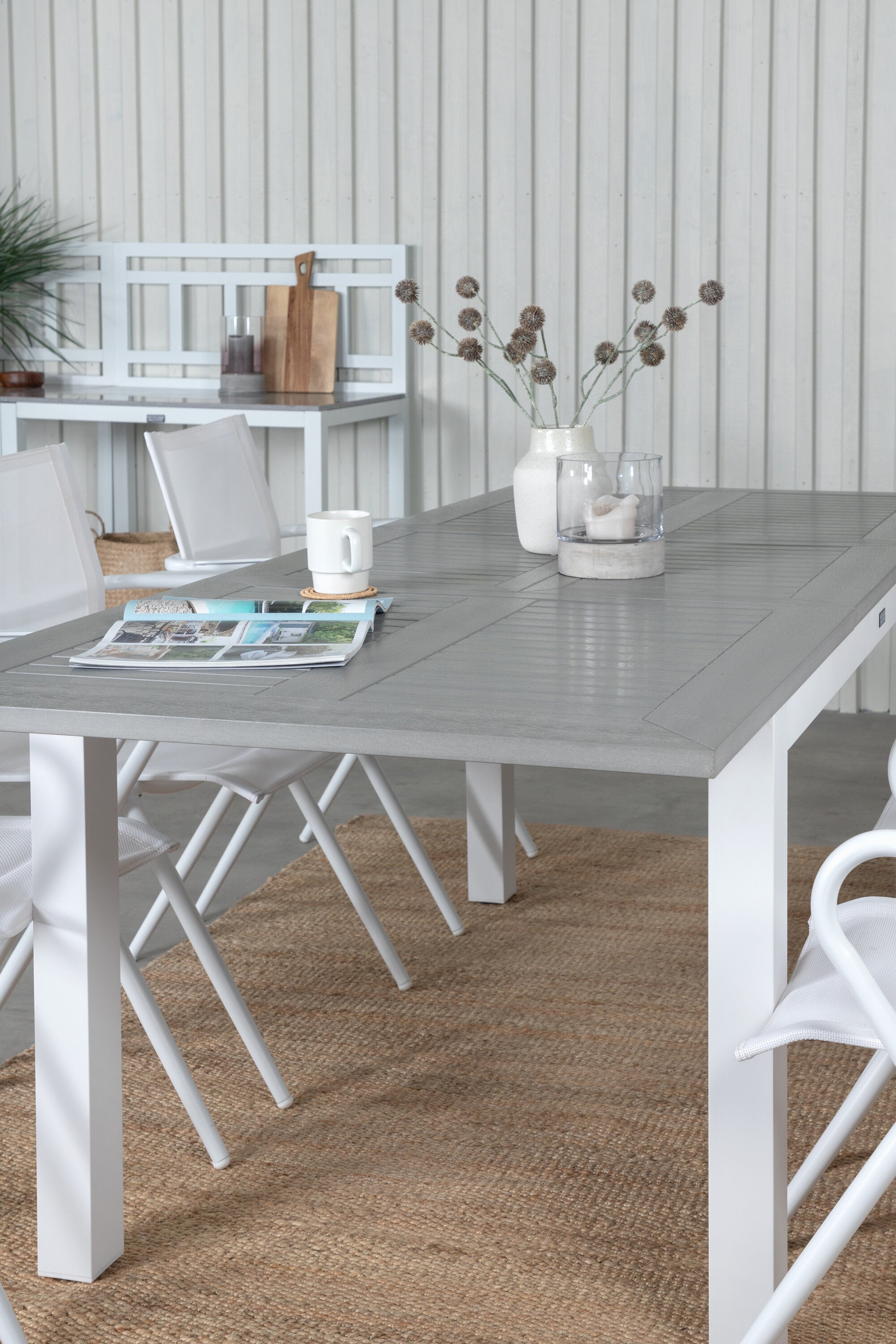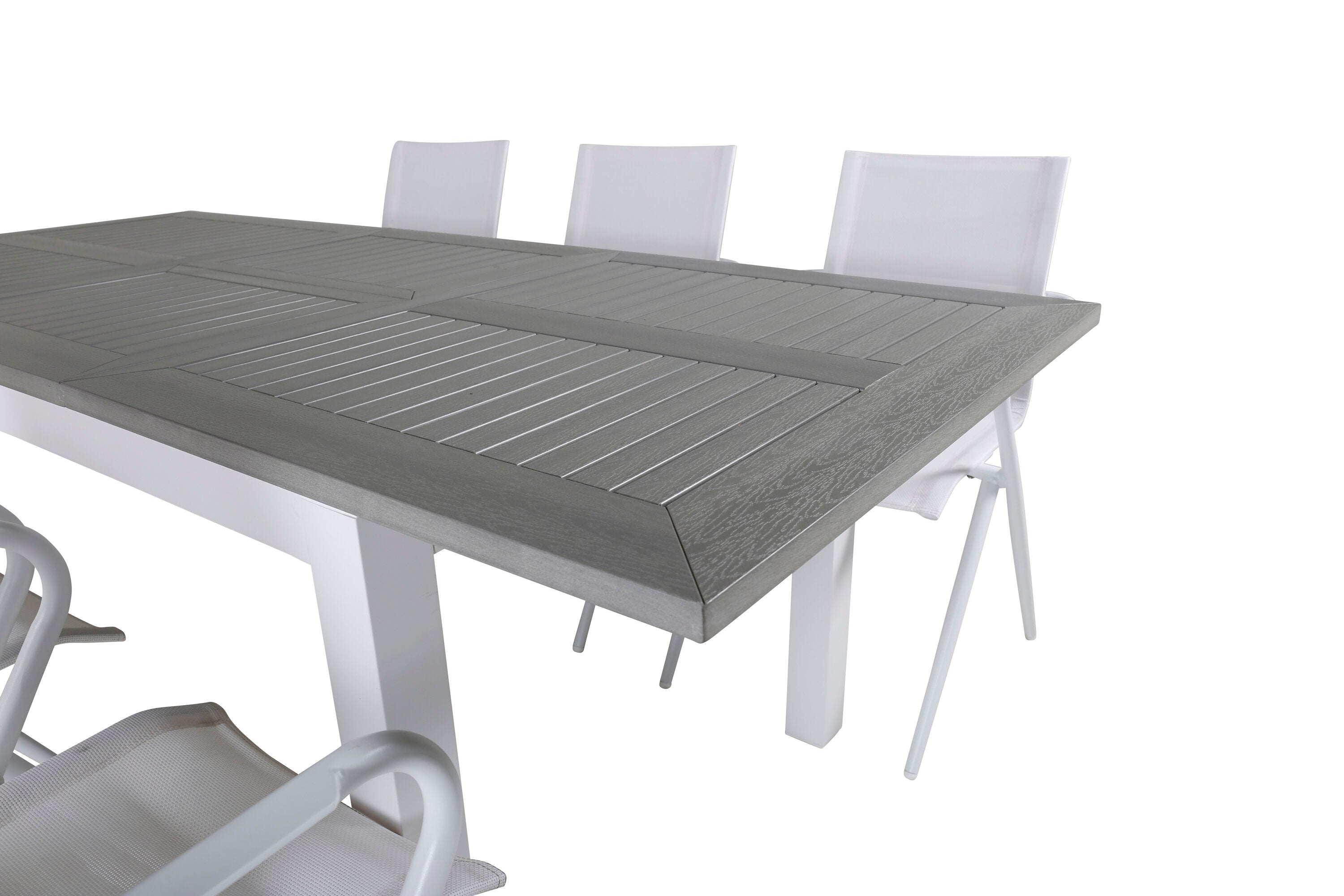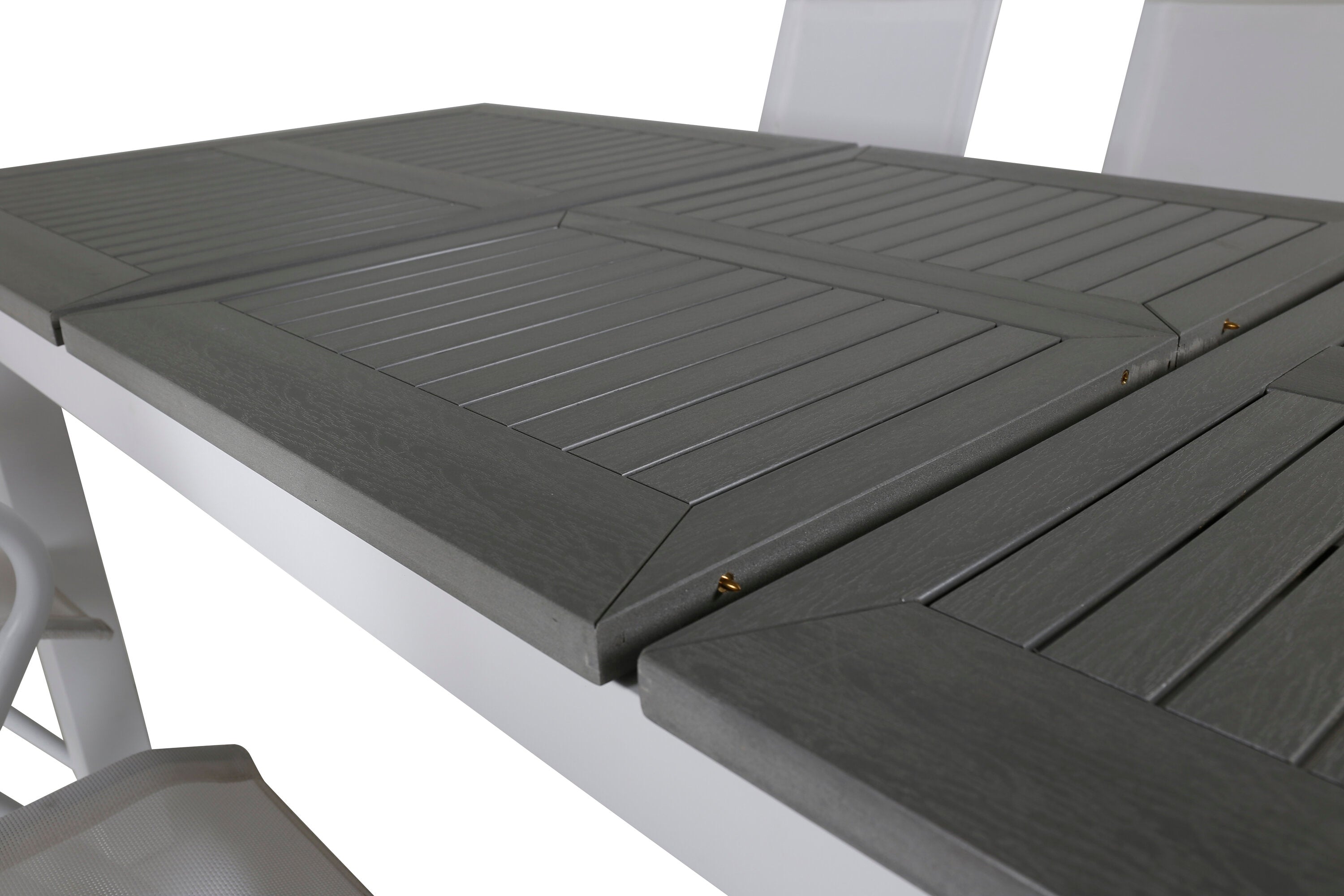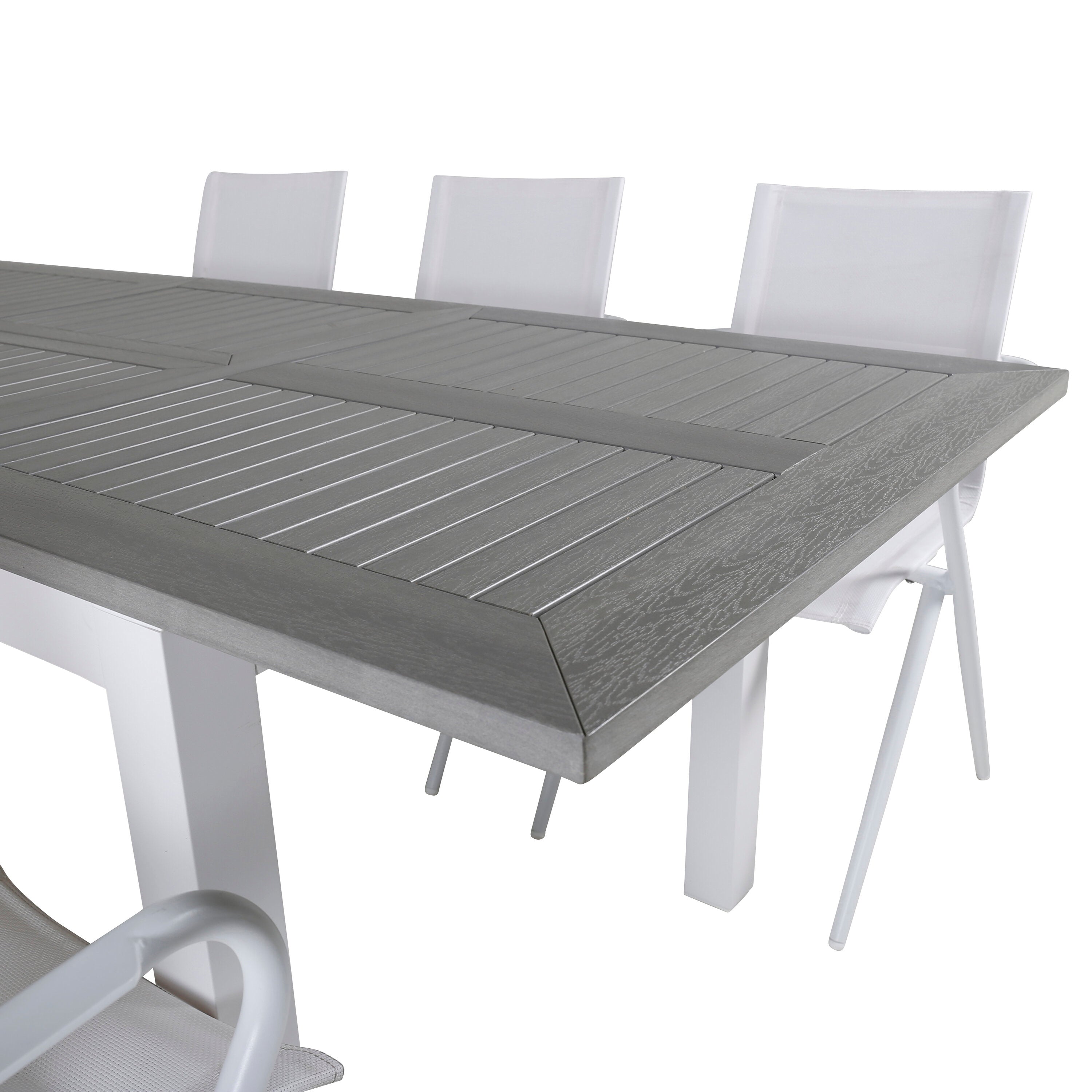 Albany stůl - 160/240 - Bílá/Šedá+Alina Jídelní židle - Bílá Alu / Bílá Textilene_6