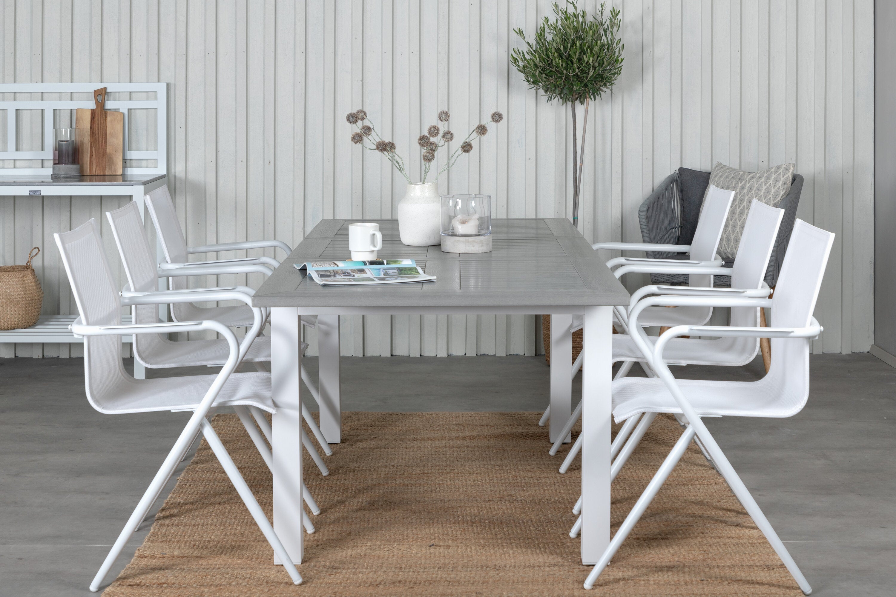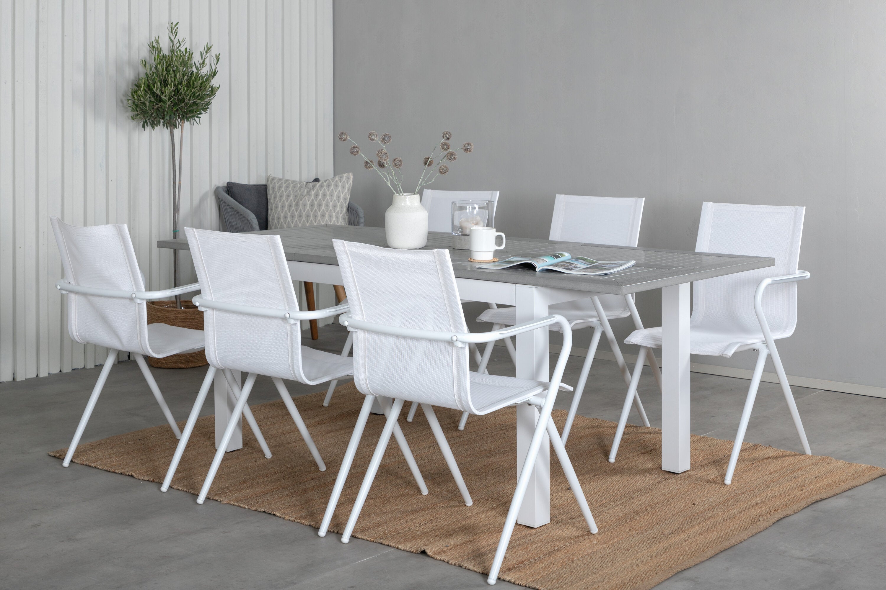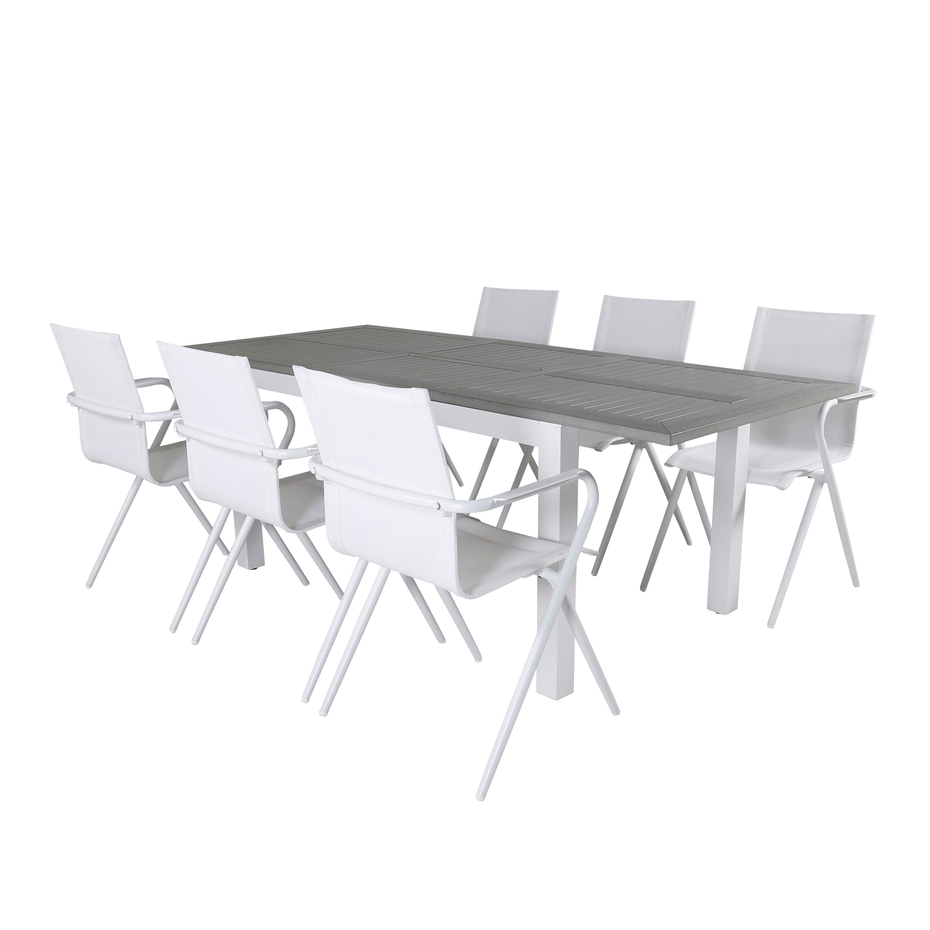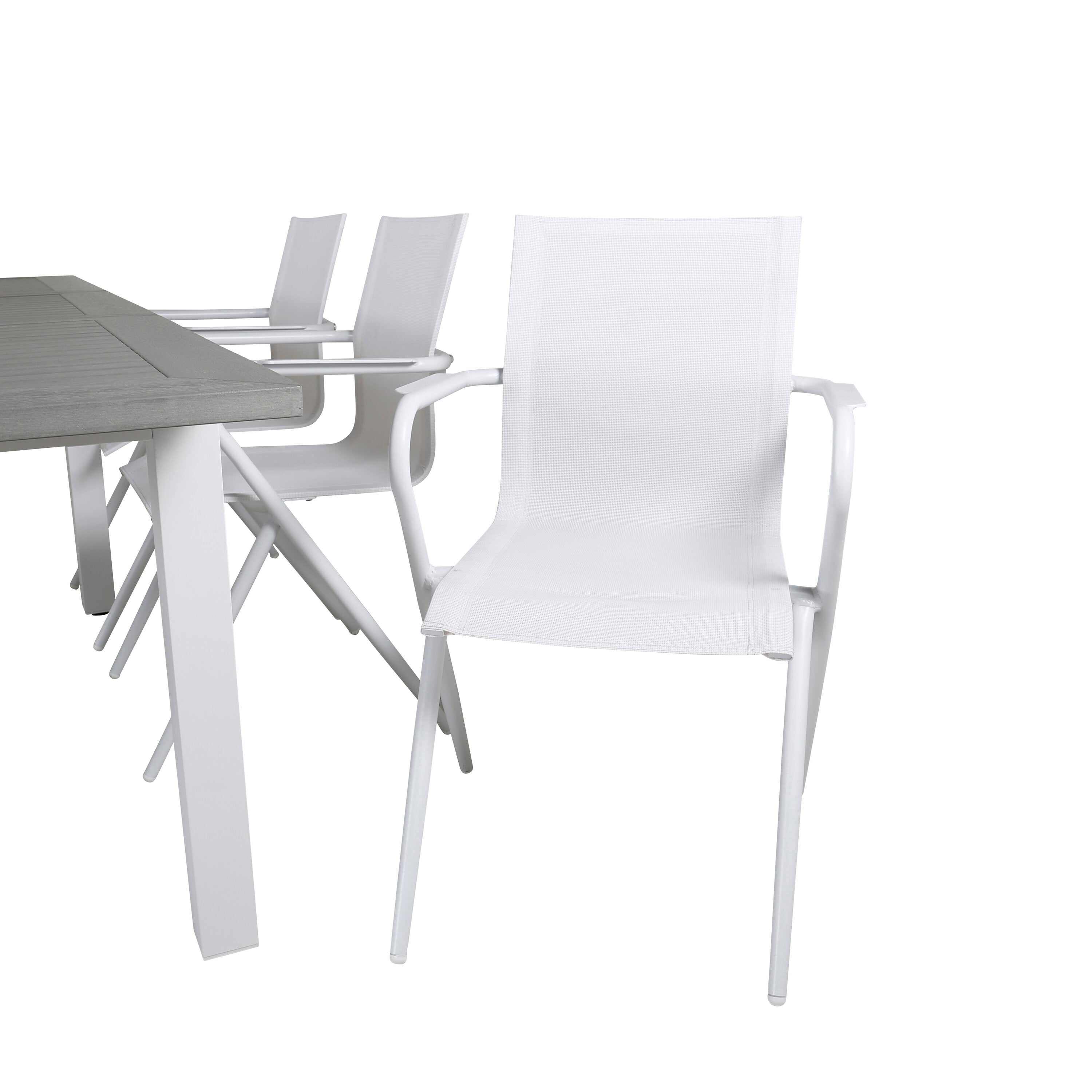 Albany stůl - 160/240 - Bílá/Šedá+Alina Jídelní židle - Bílá Alu / Bílá Textilene_6