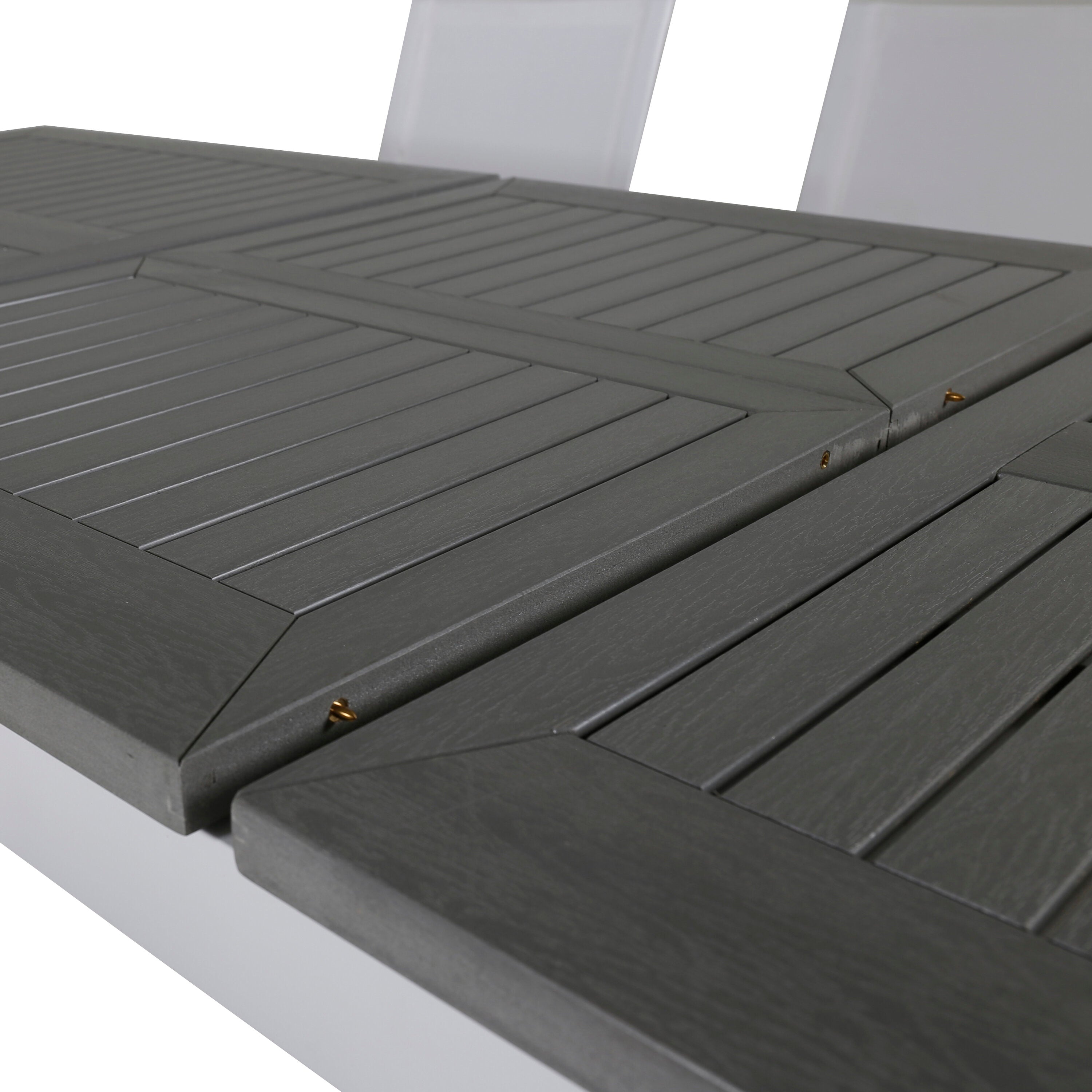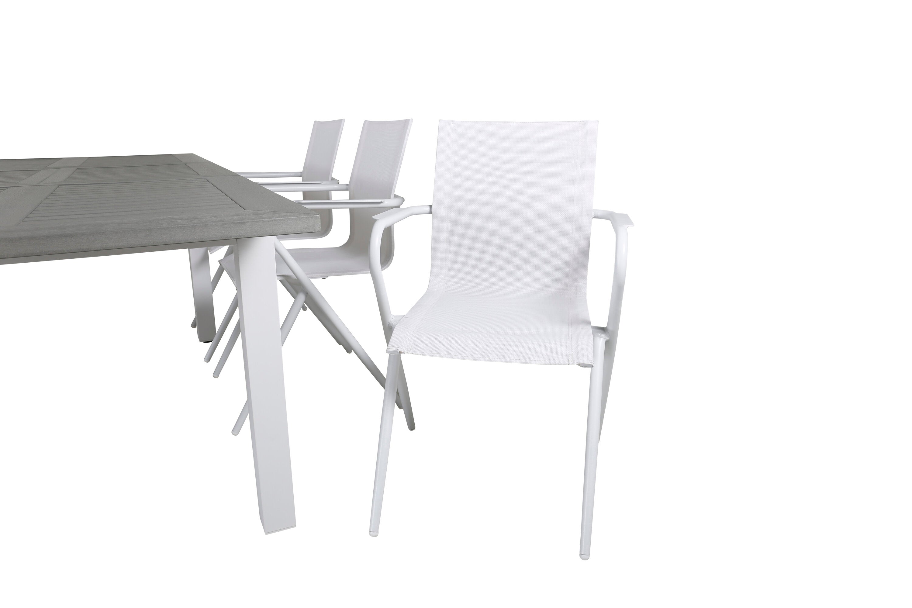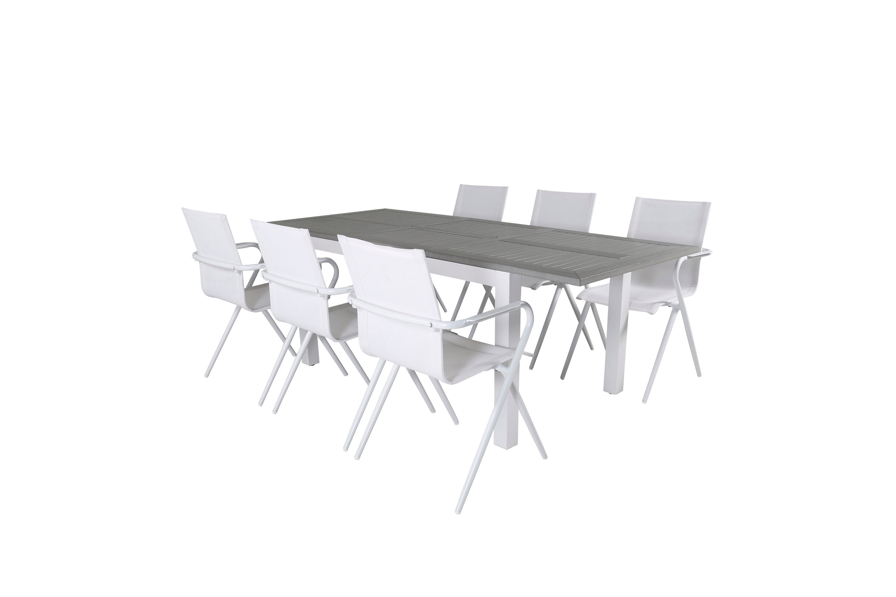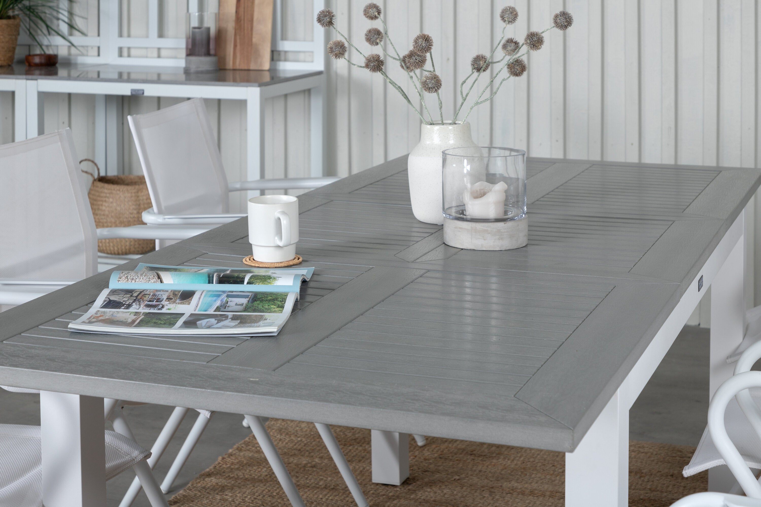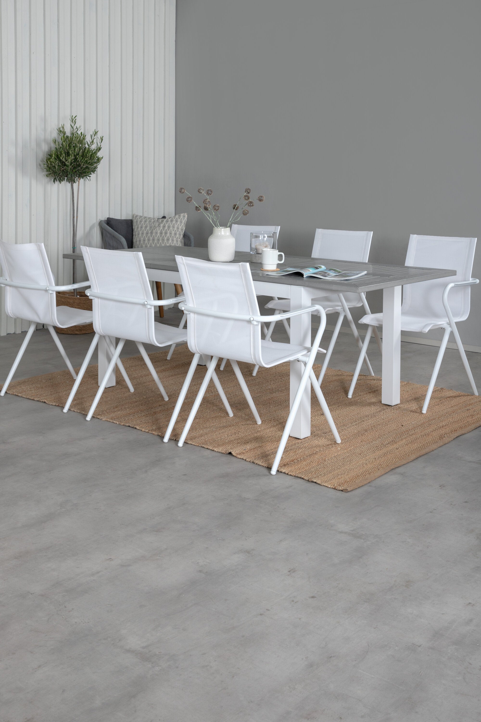 Albany stůl - 160/240 - Bílá/Šedá+Alina Jídelní židle - Bílá Alu / Bílá Textilene_6