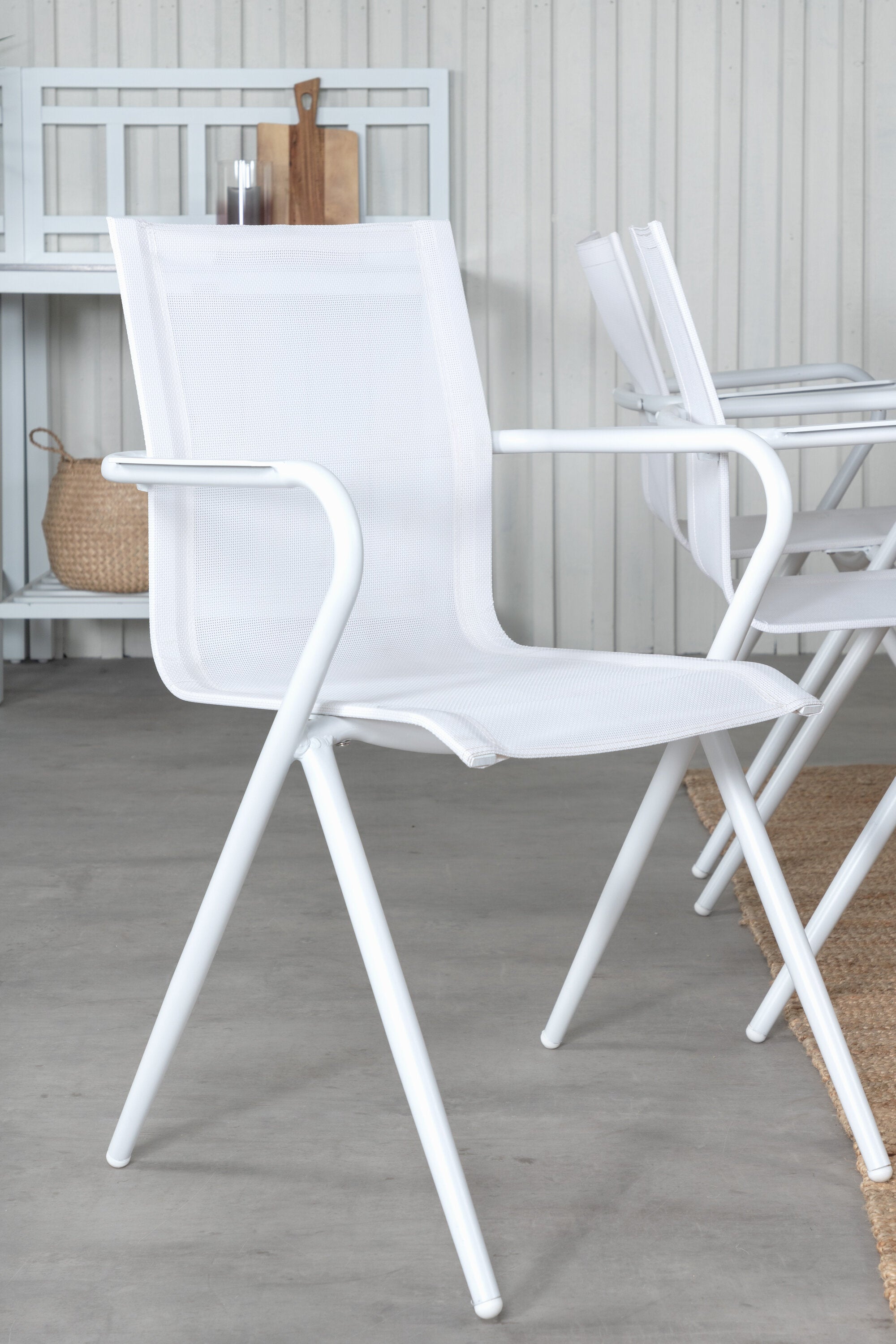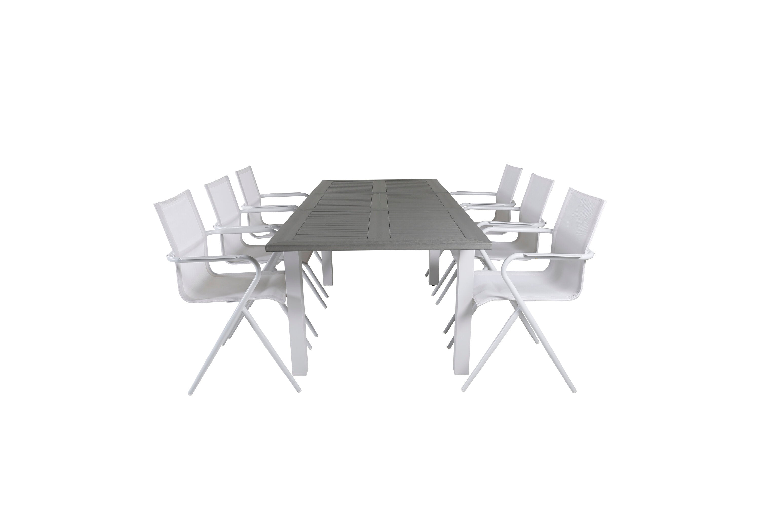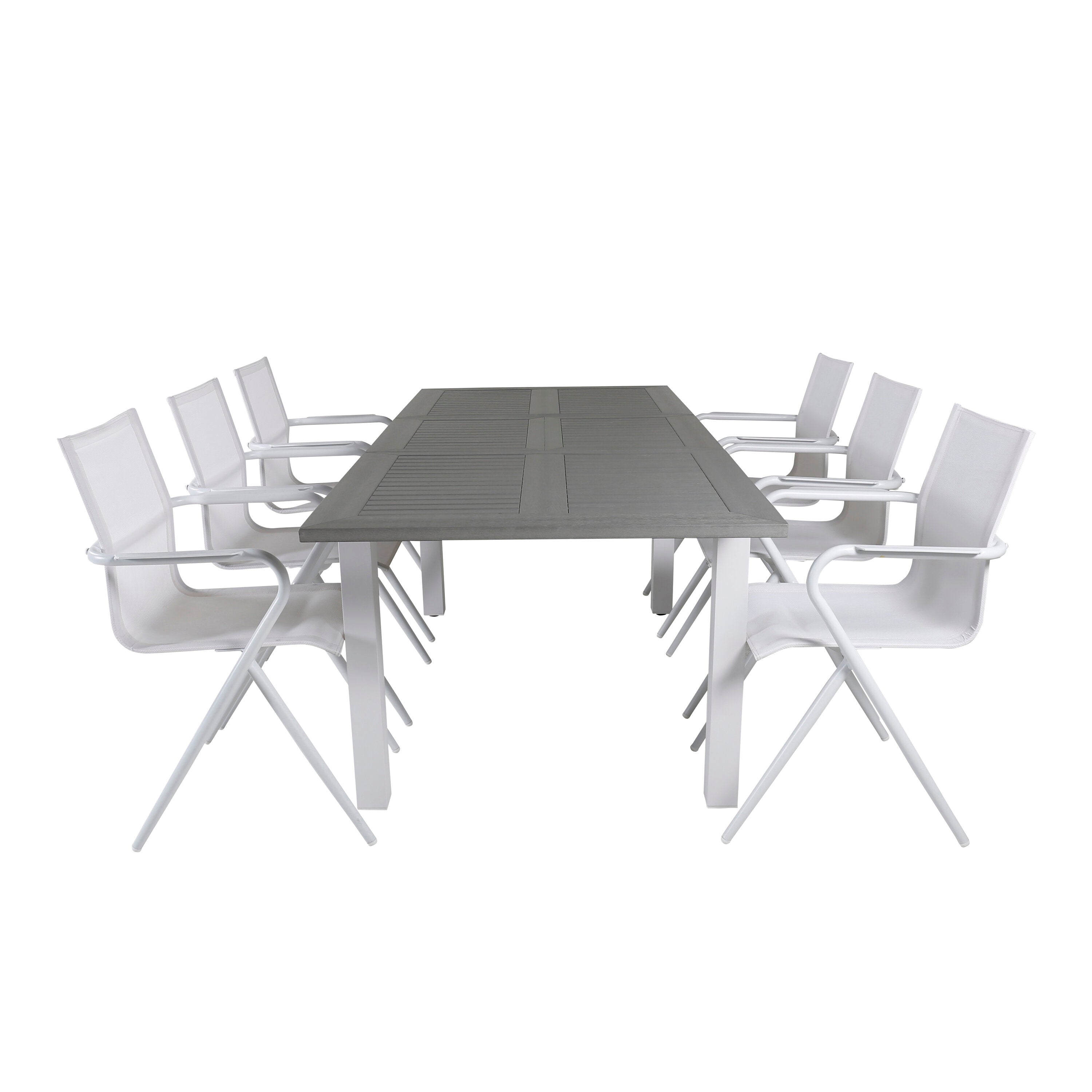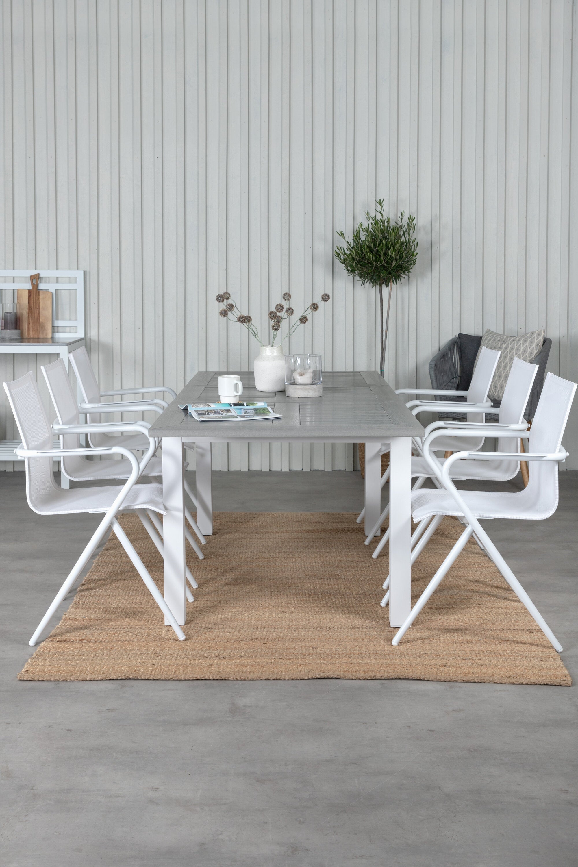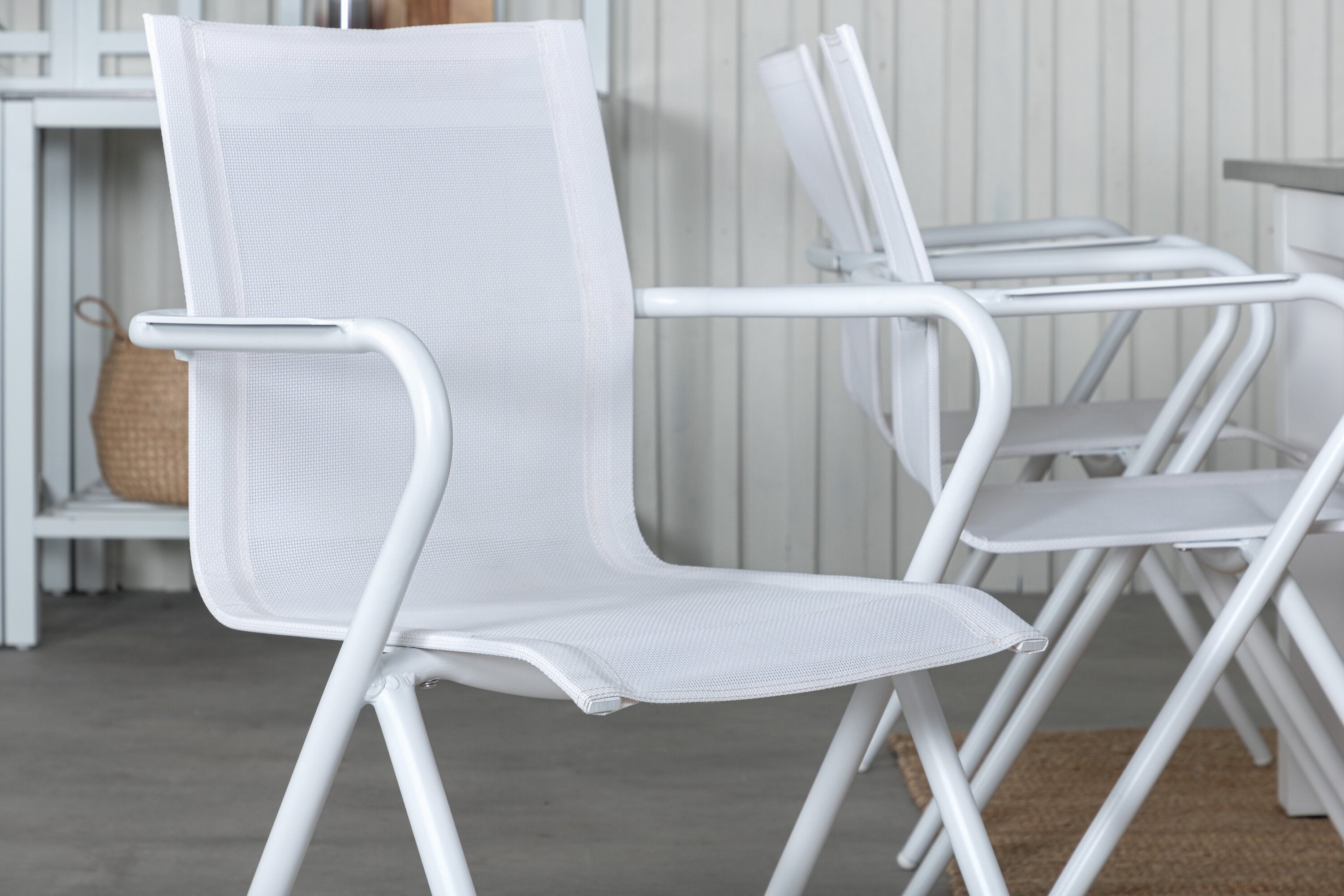 Albany stůl - 160/240 - Bílá/Šedá+Alina Jídelní židle - Bílá Alu / Bílá Textilene_6