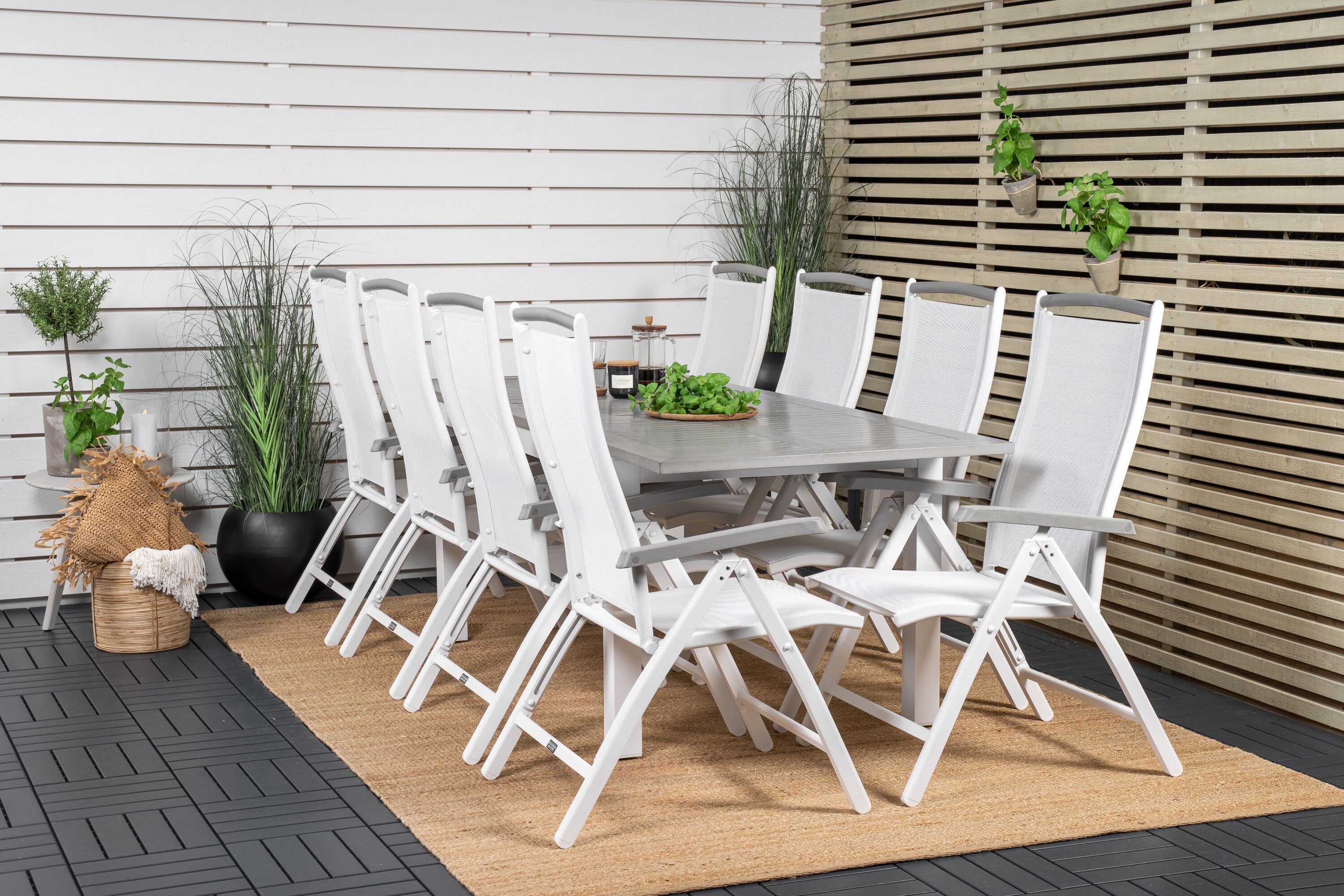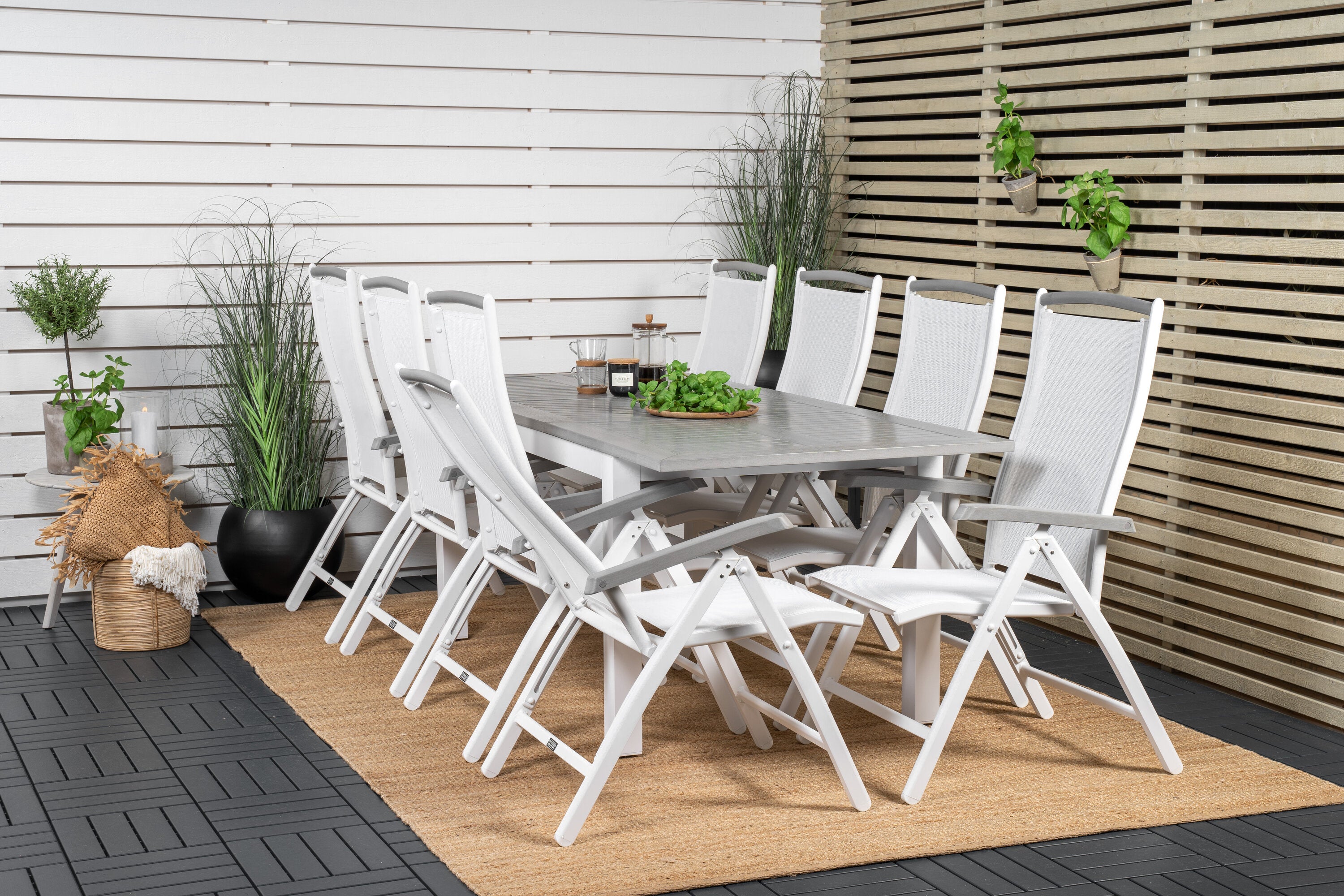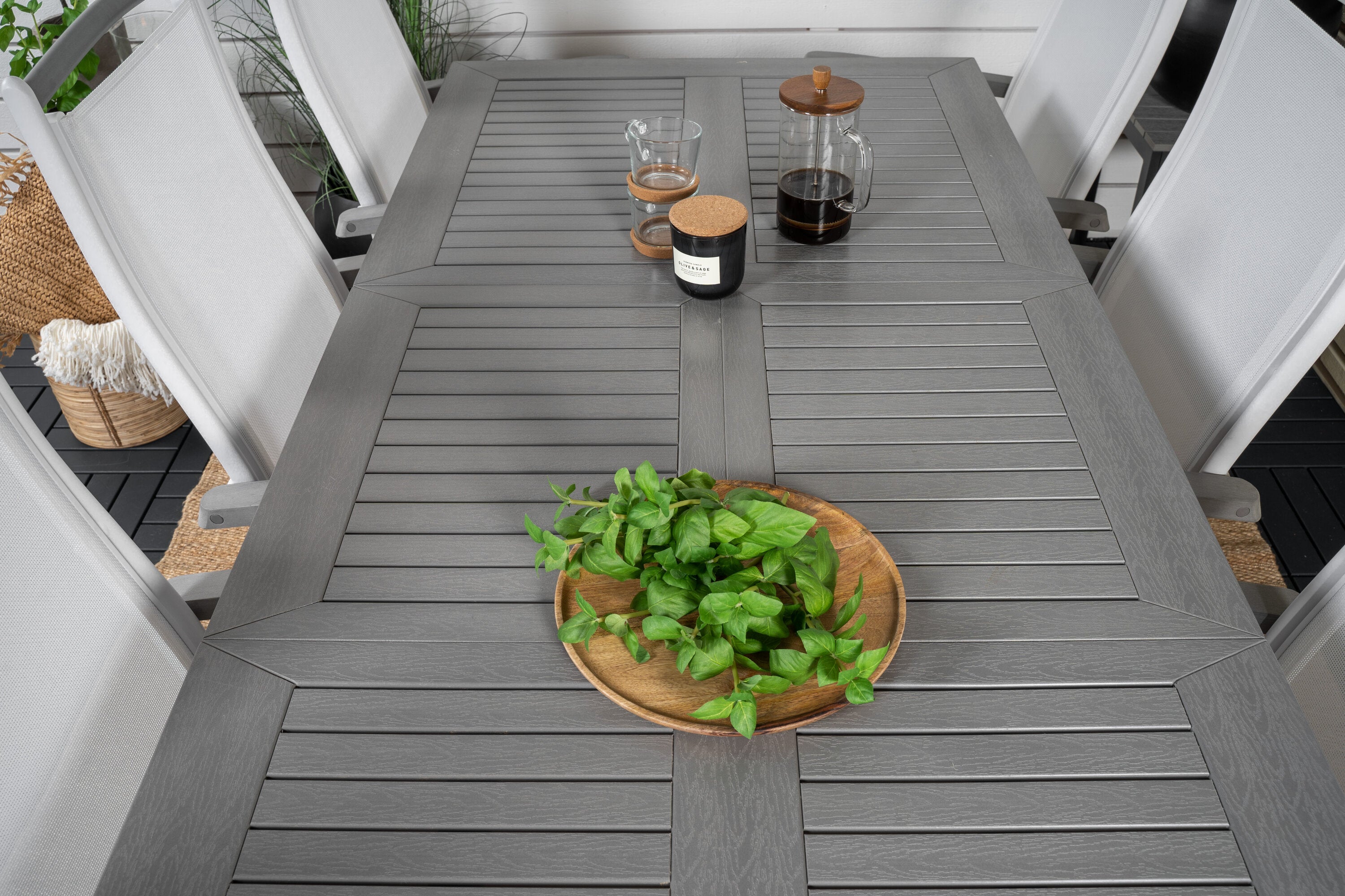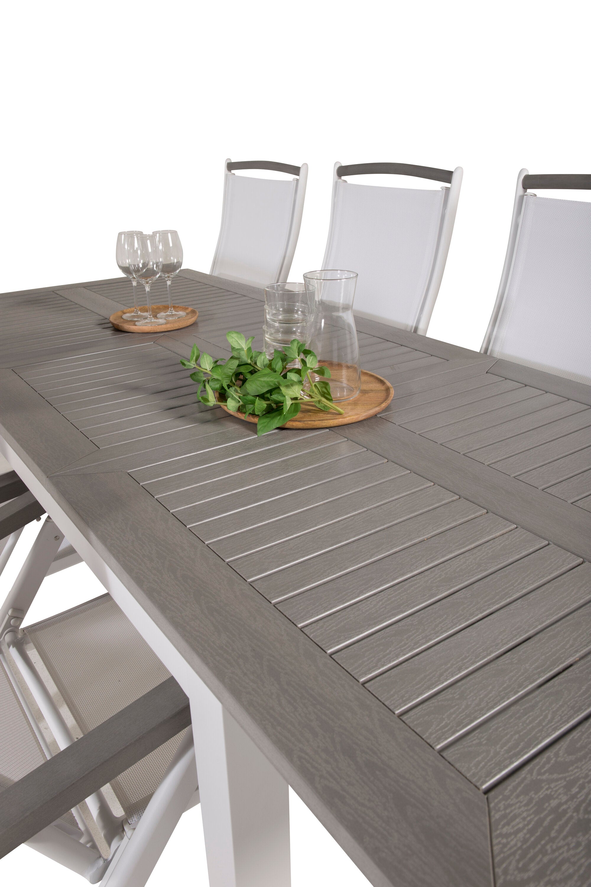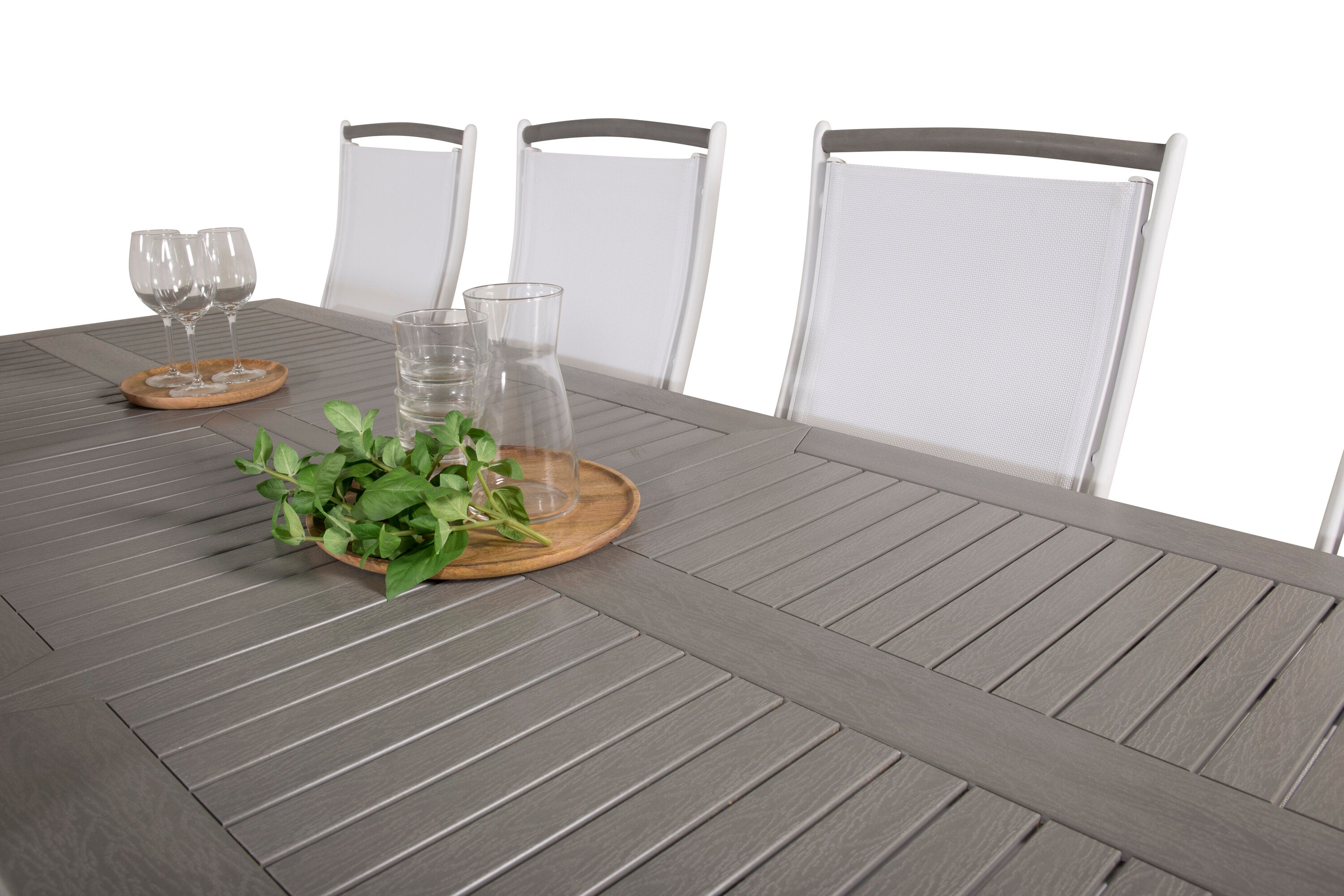Albany Table - 160/240 - White/Grey - Albany 5:pos Stol - Vit Aluminium/vit textilene/aintwood 8