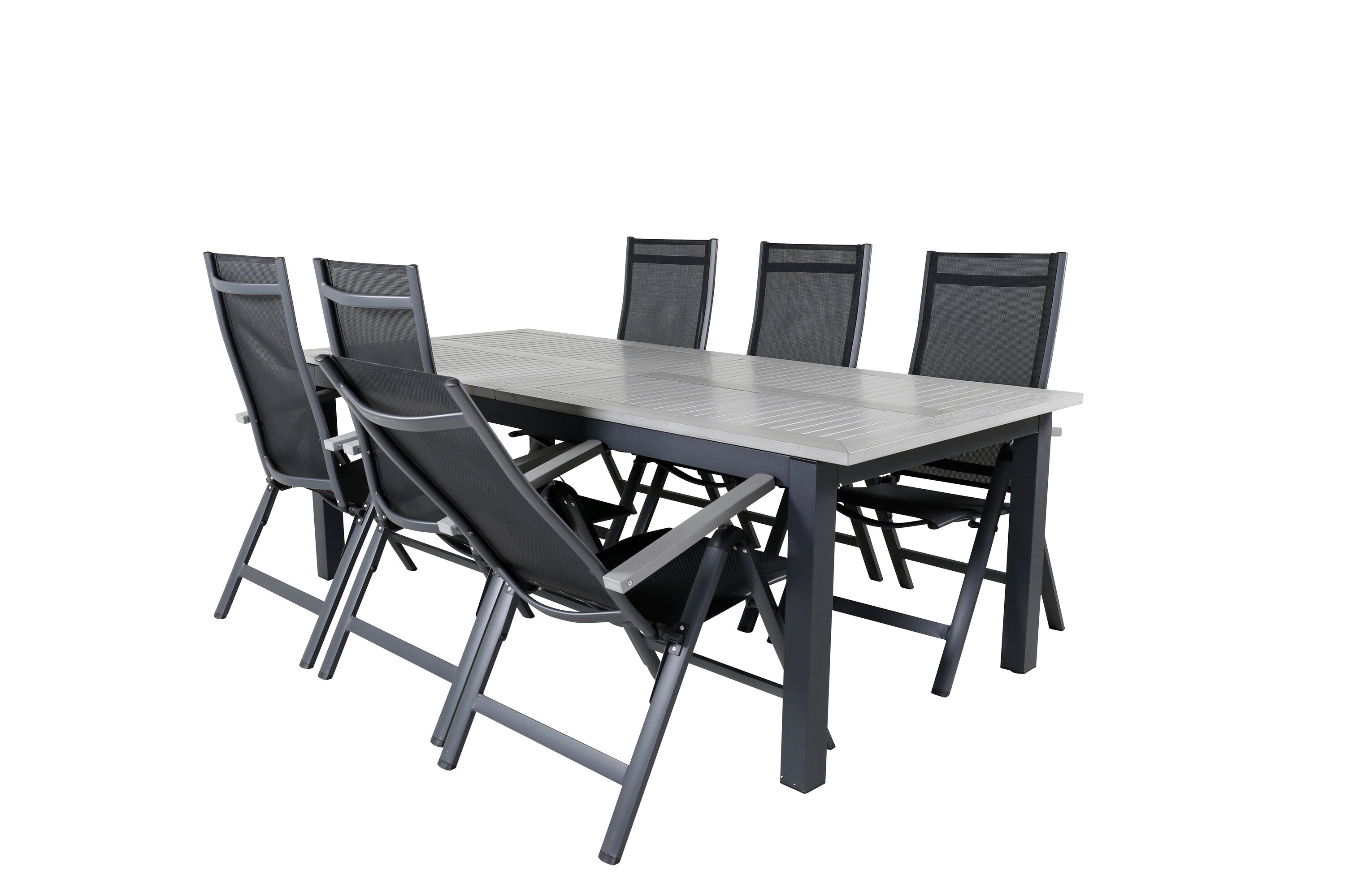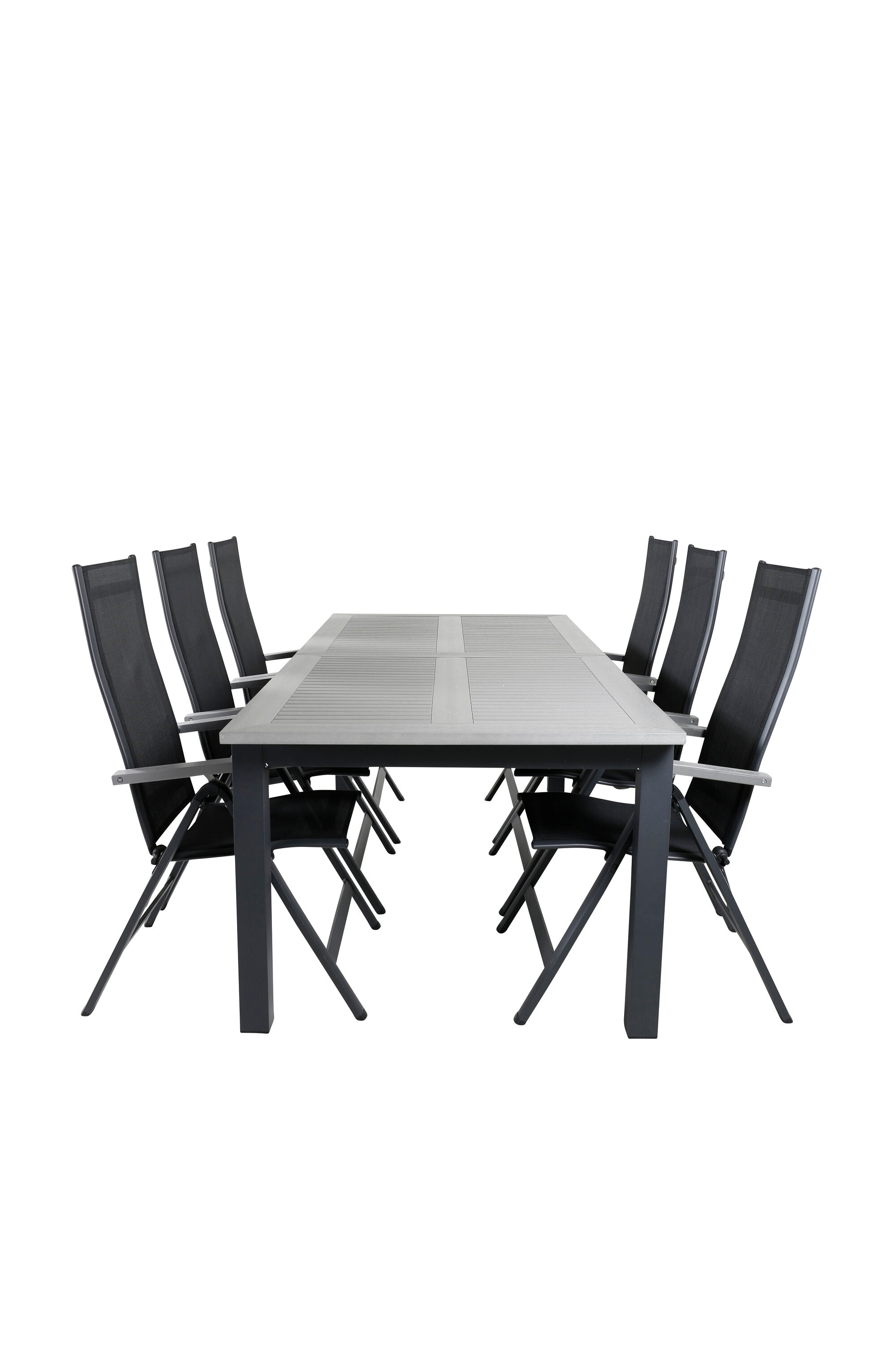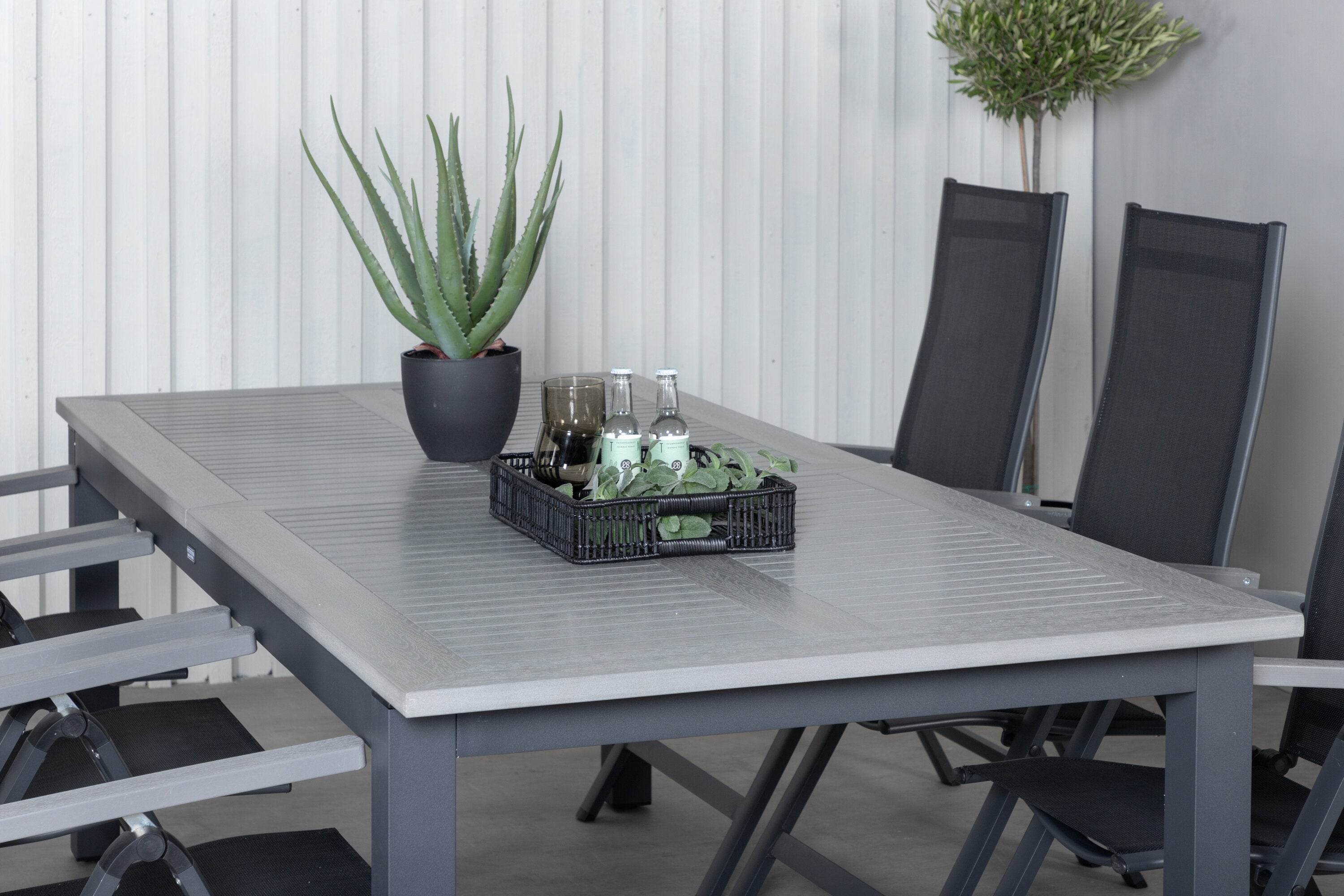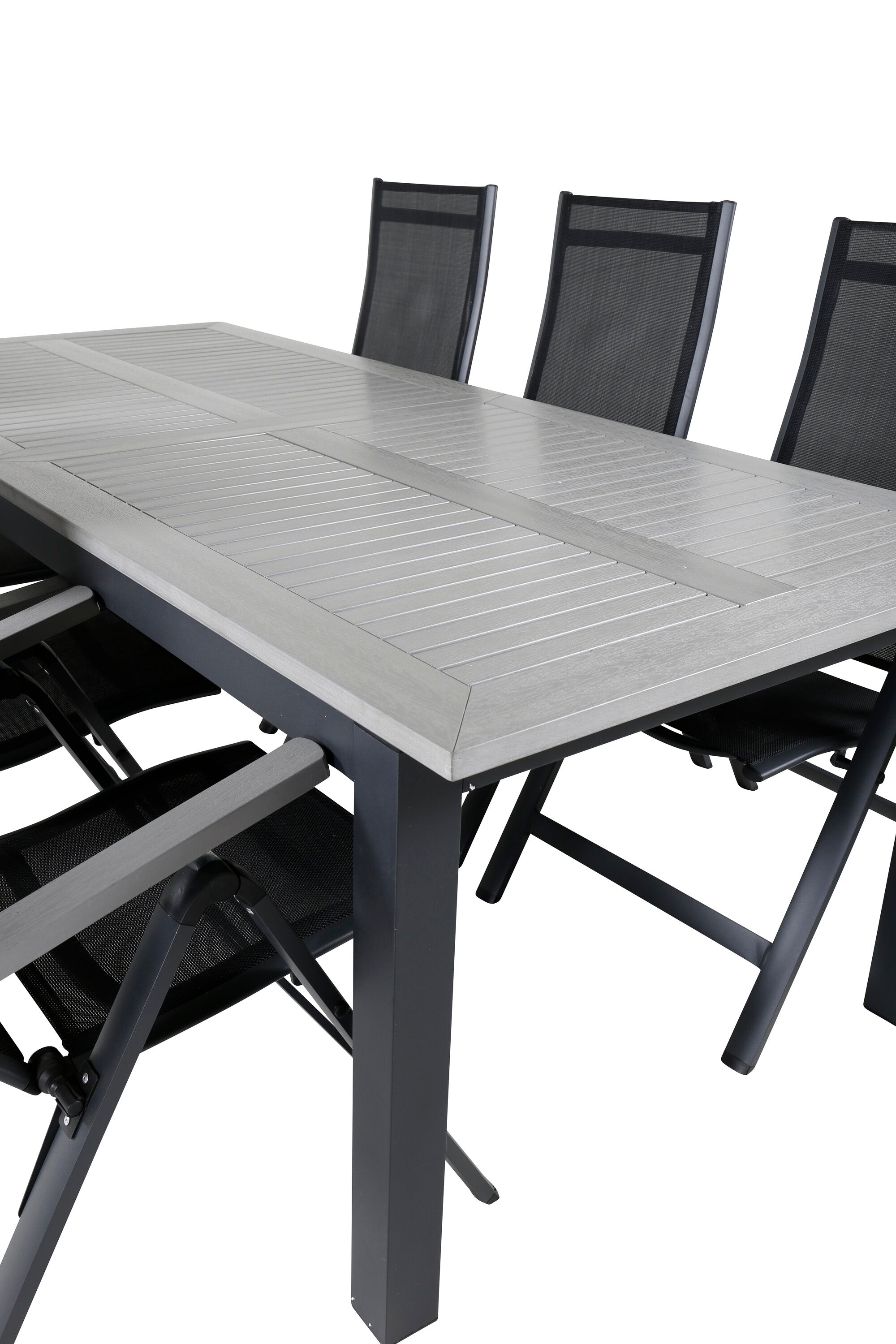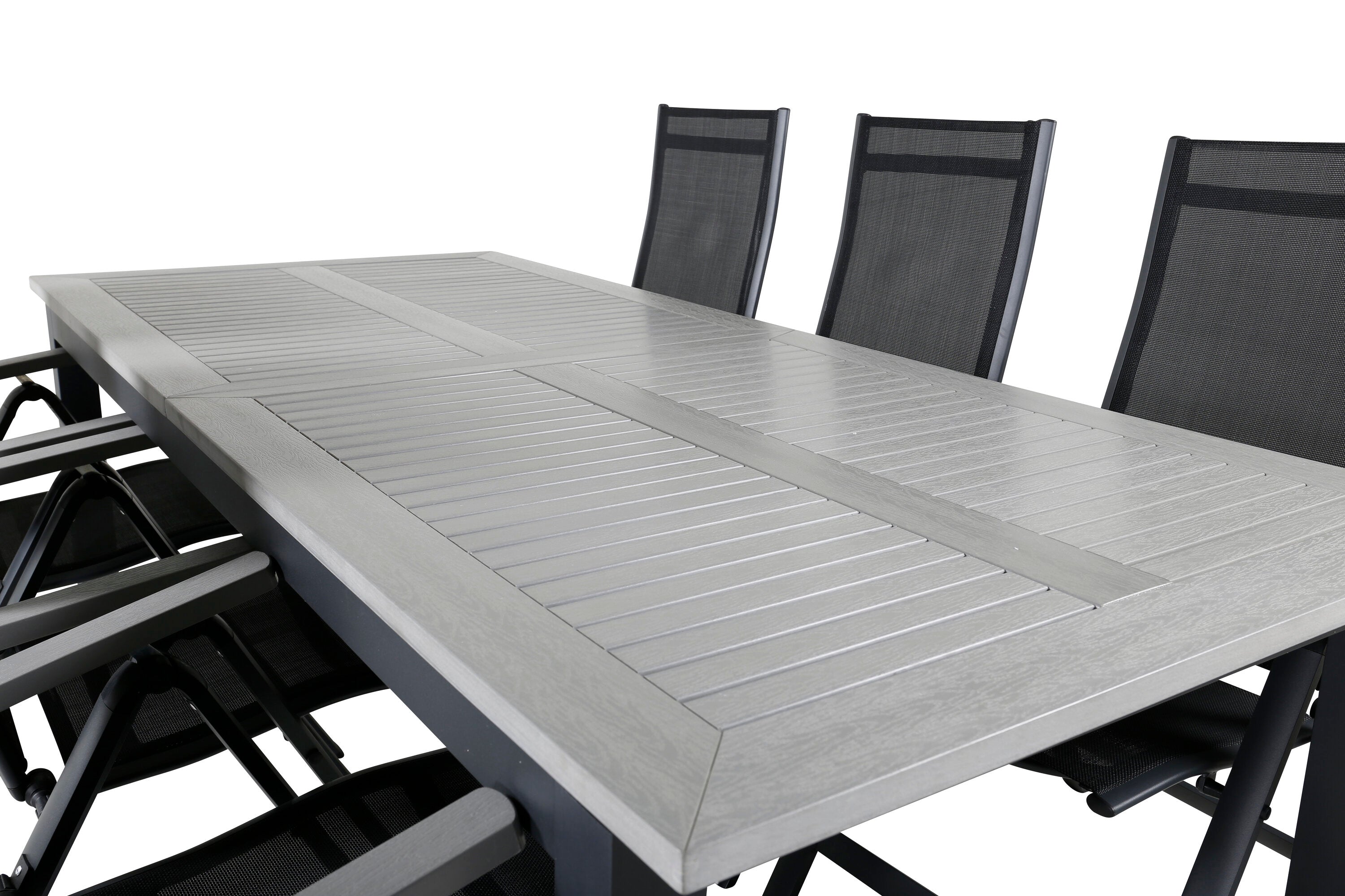 Albany Table - 224/324 - Black/Grey+Albany Light 5-pos - black / Black textilene and gray teak_6