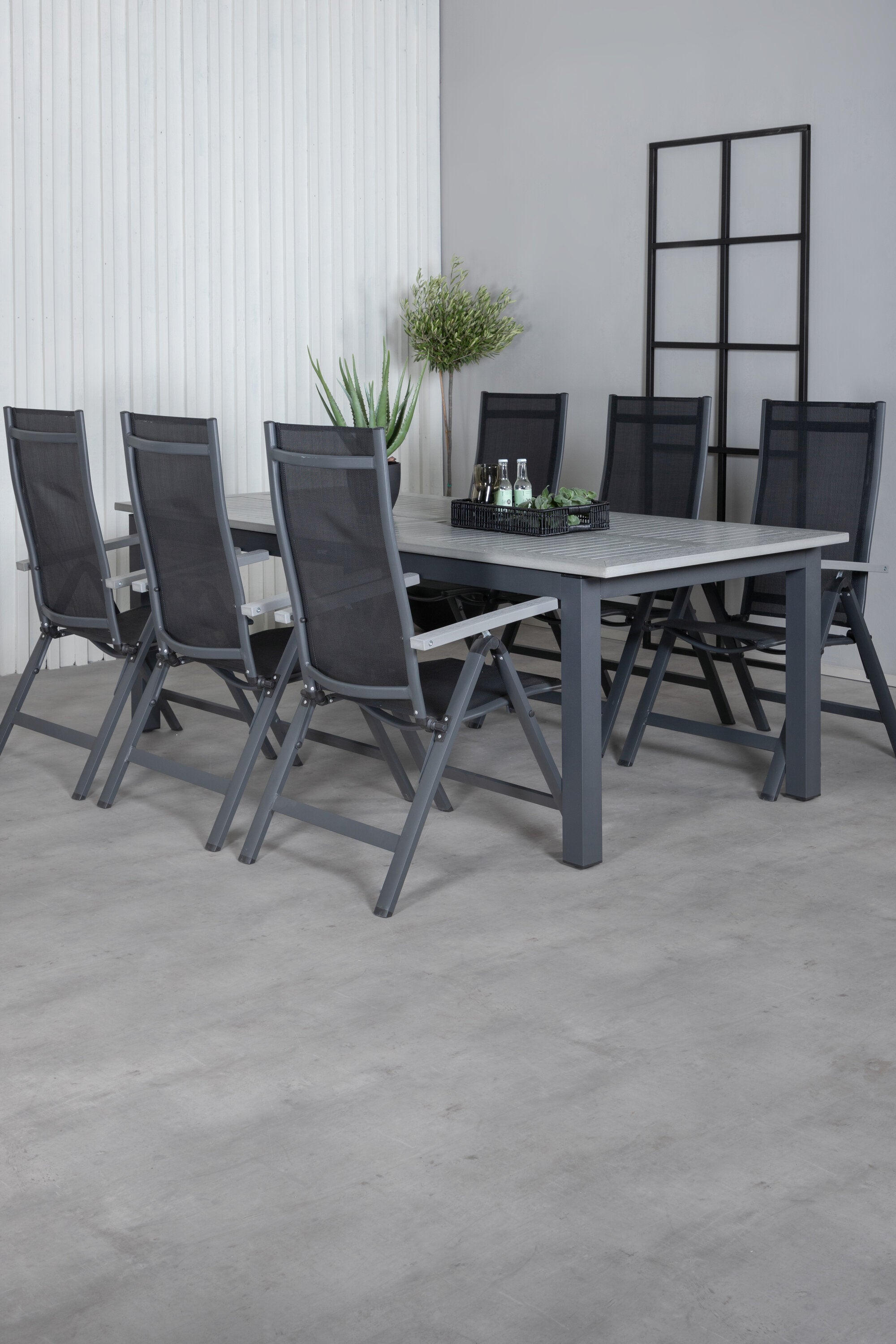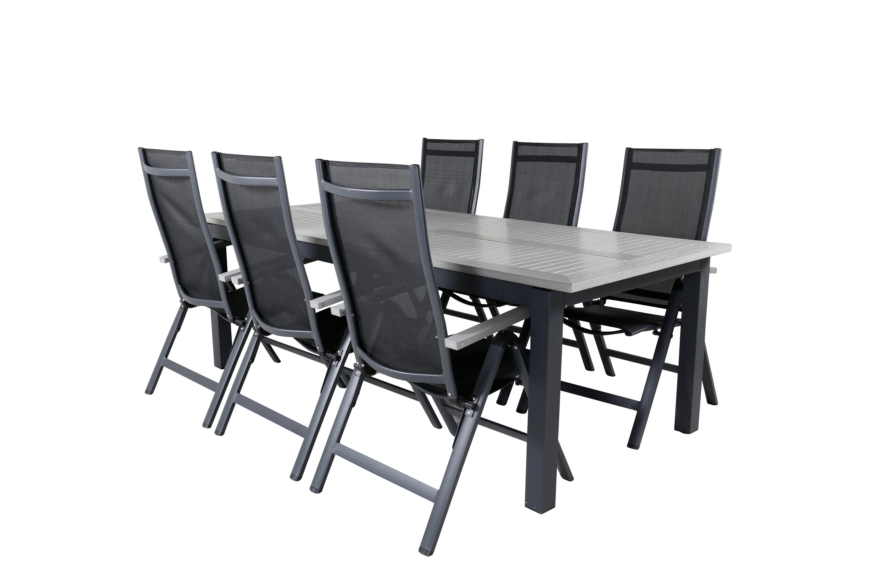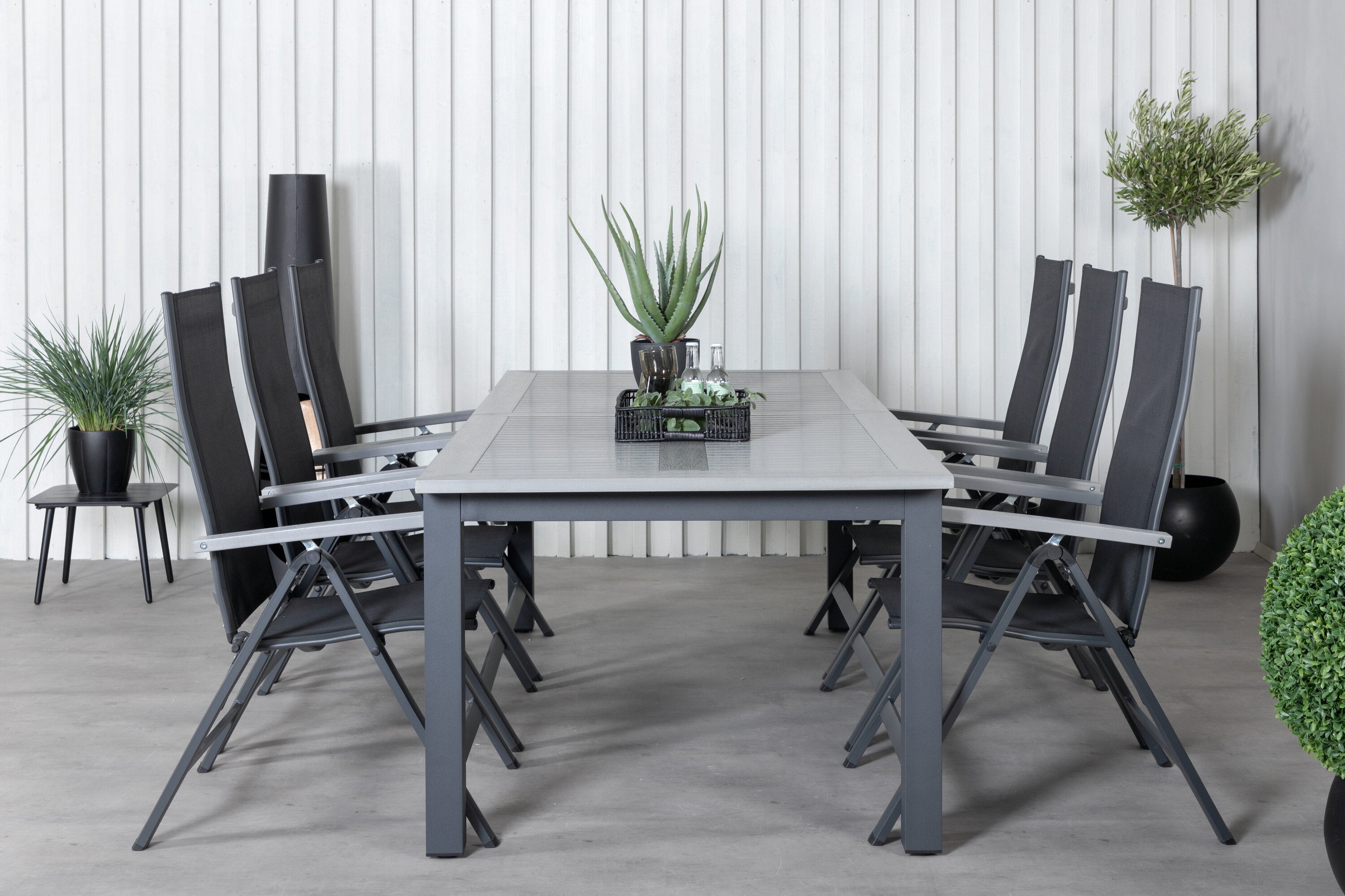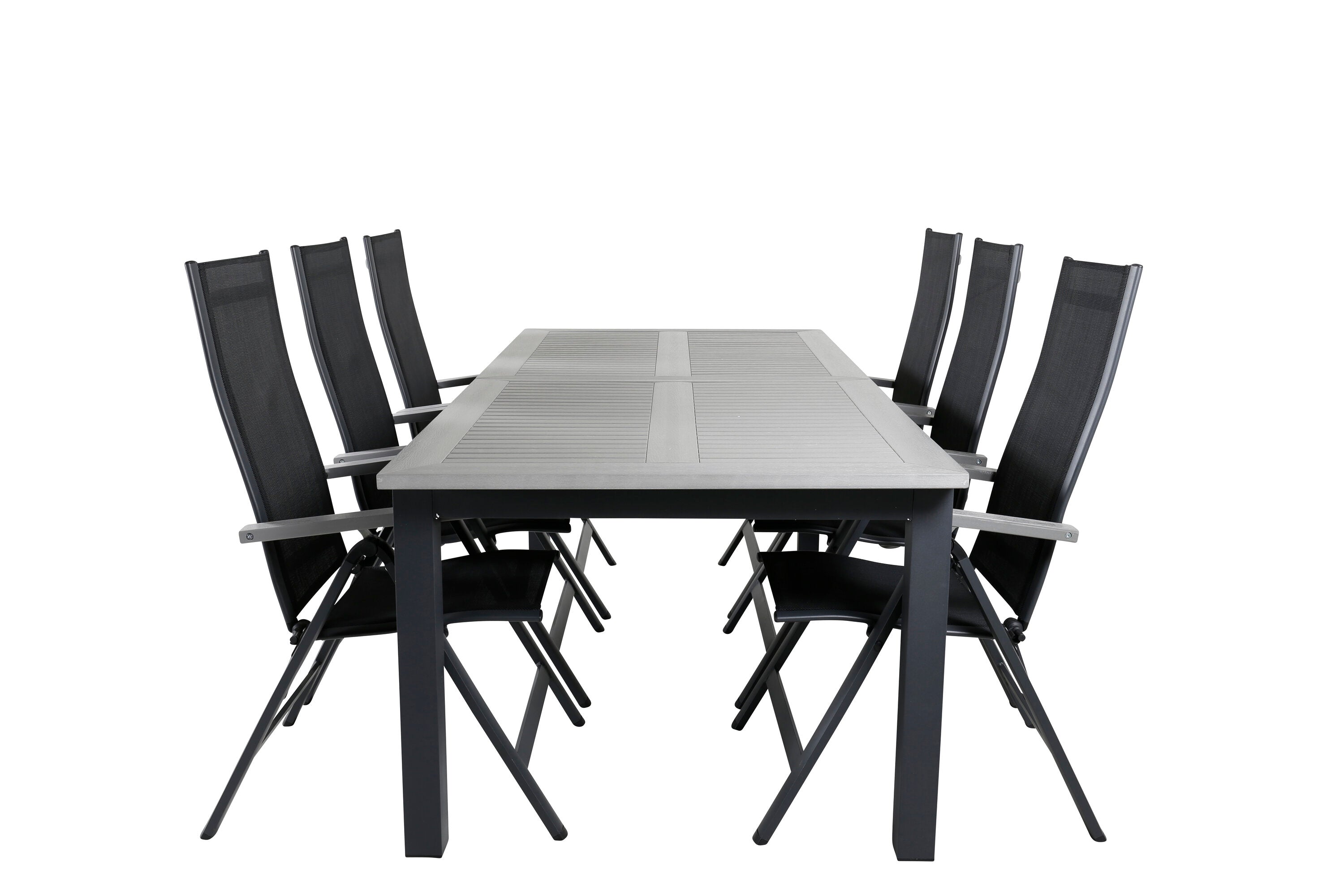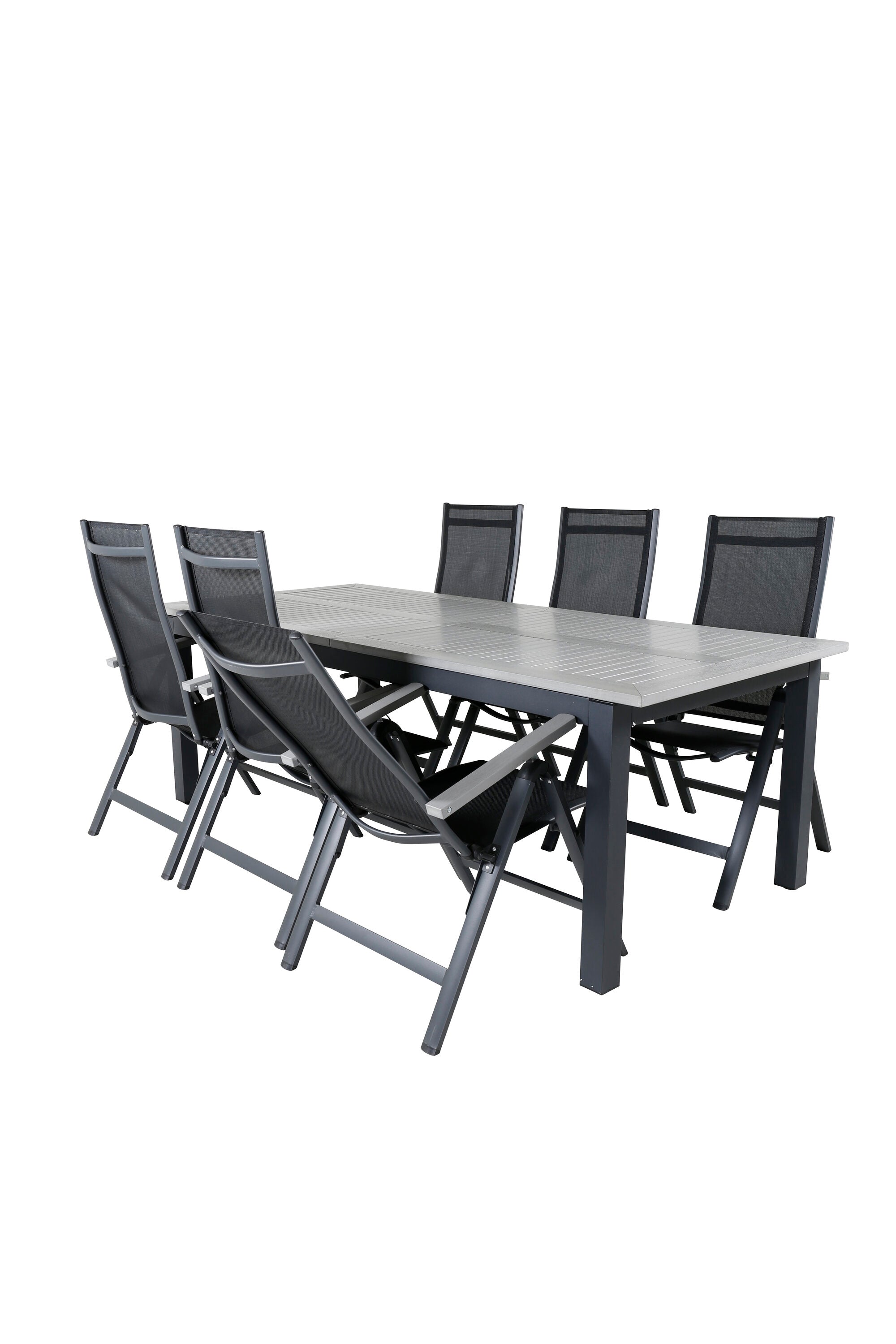 Albany Table - 224/324 - Black/Grey+Albany Light 5-pos - black / Black textilene and gray teak_6