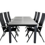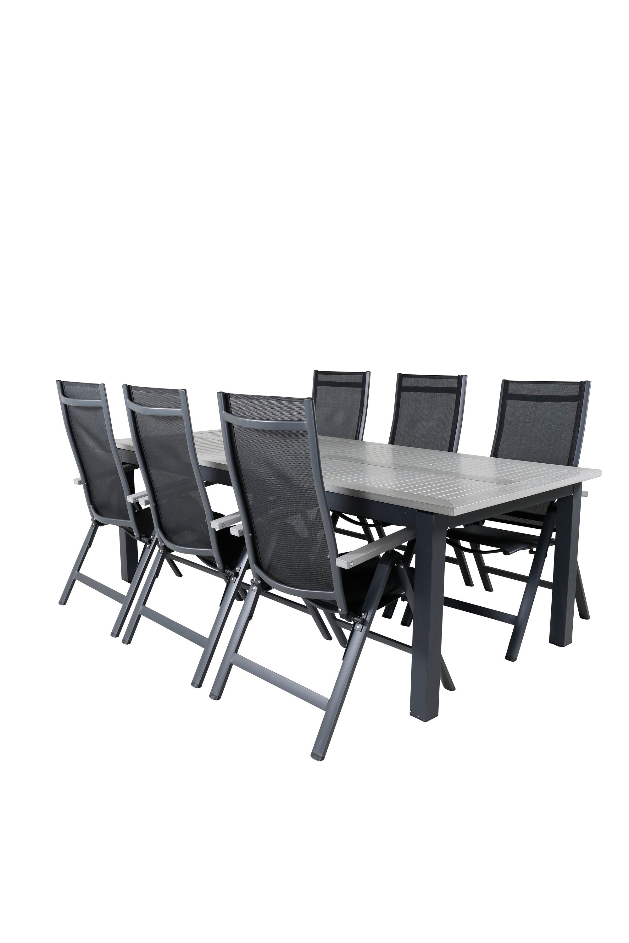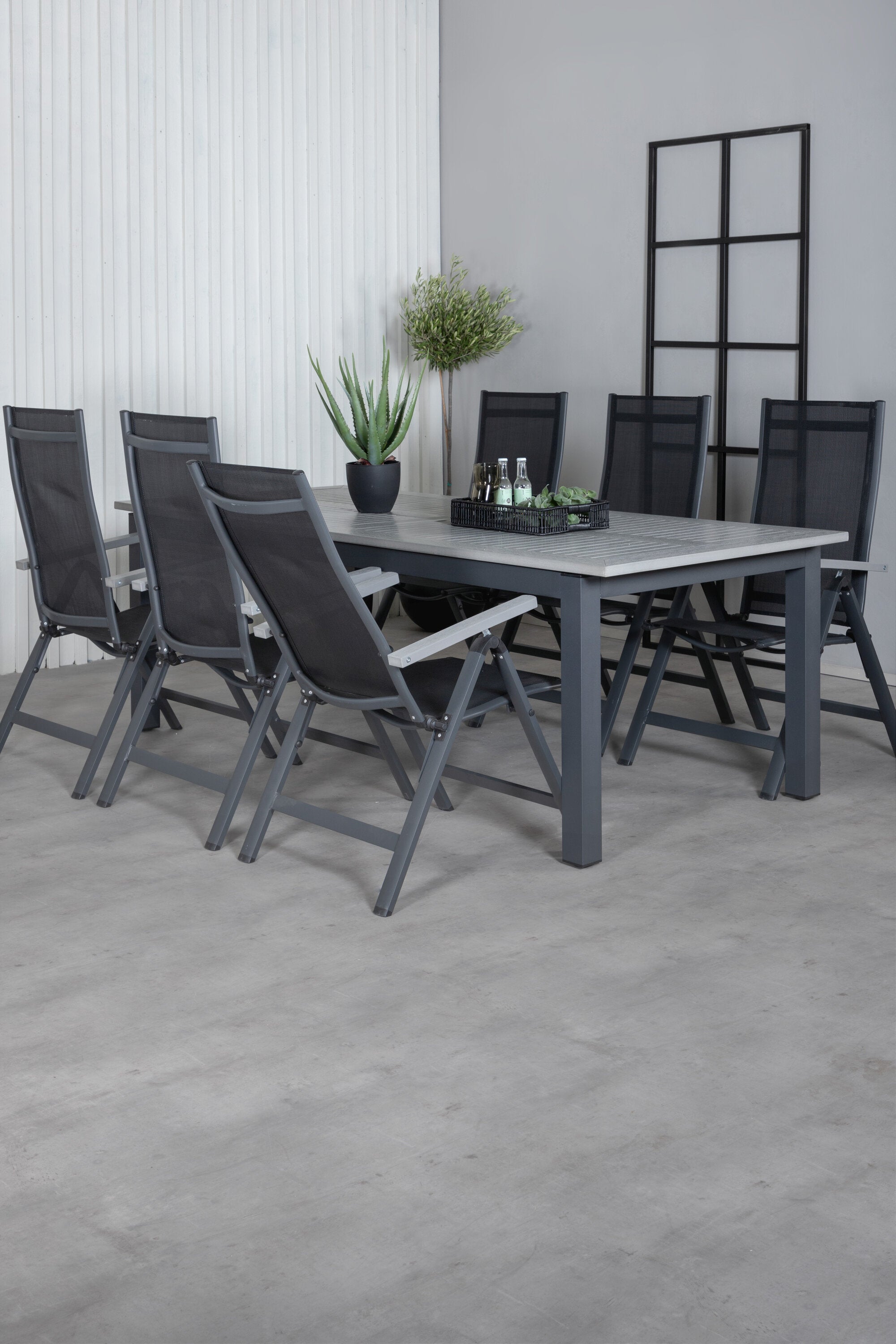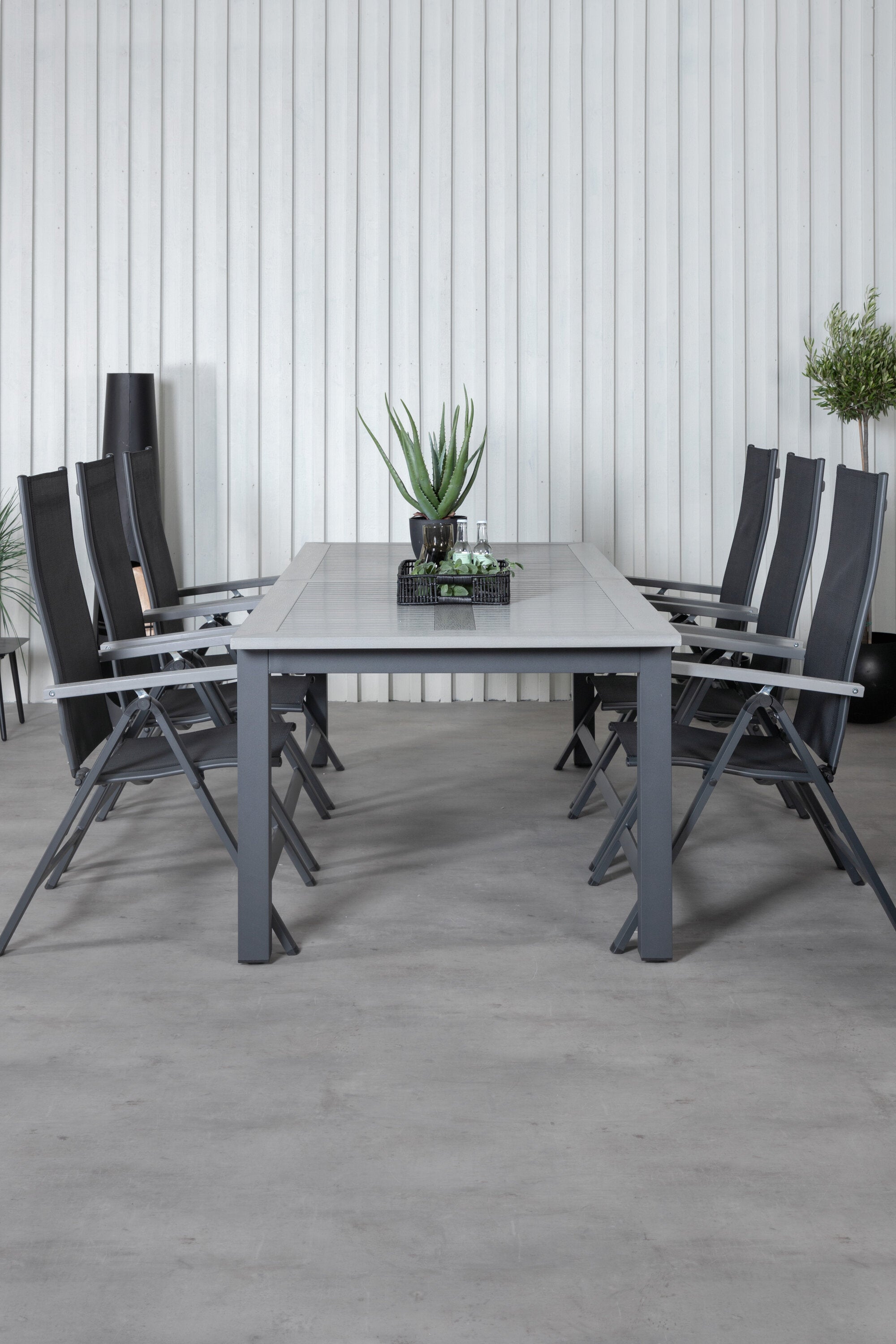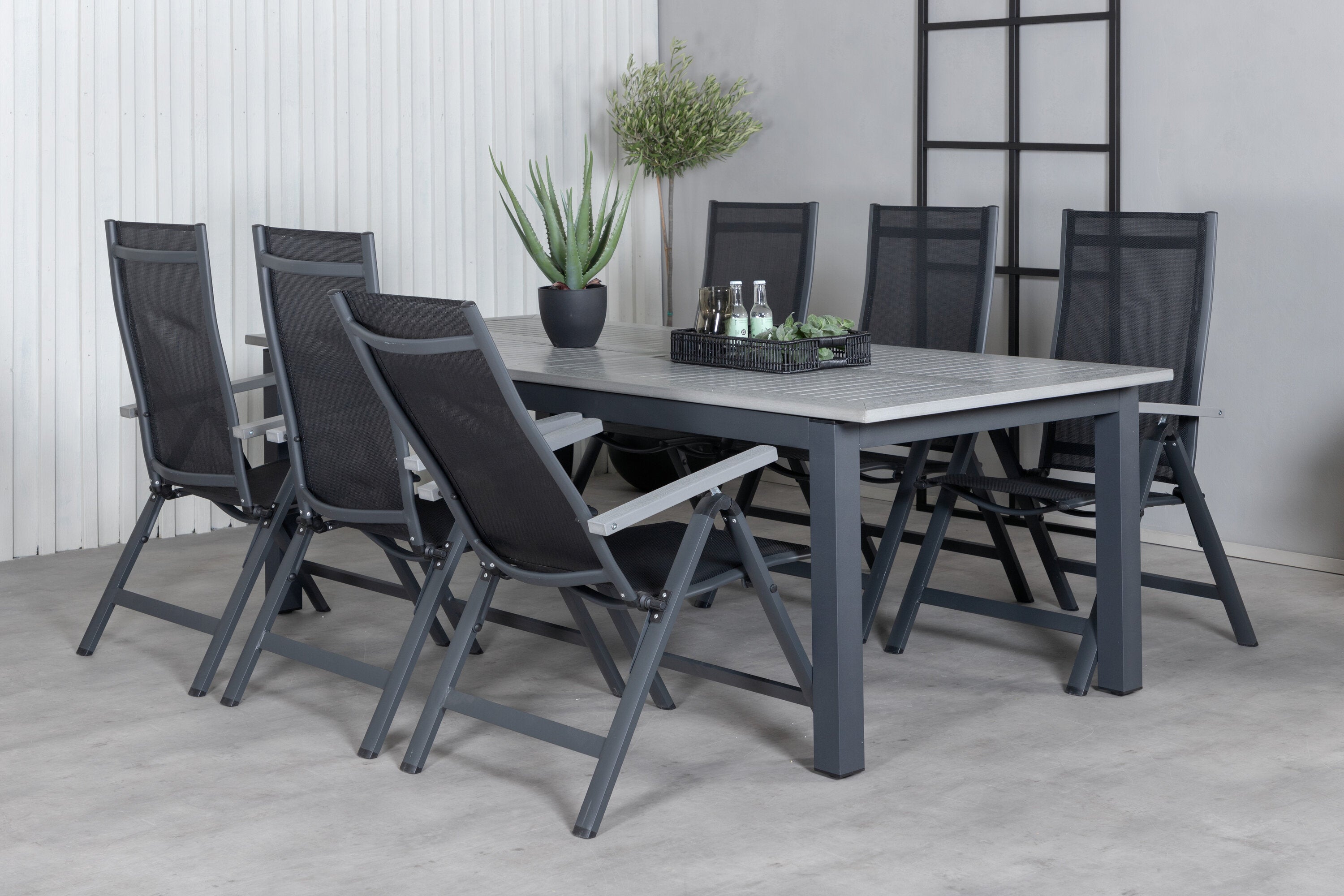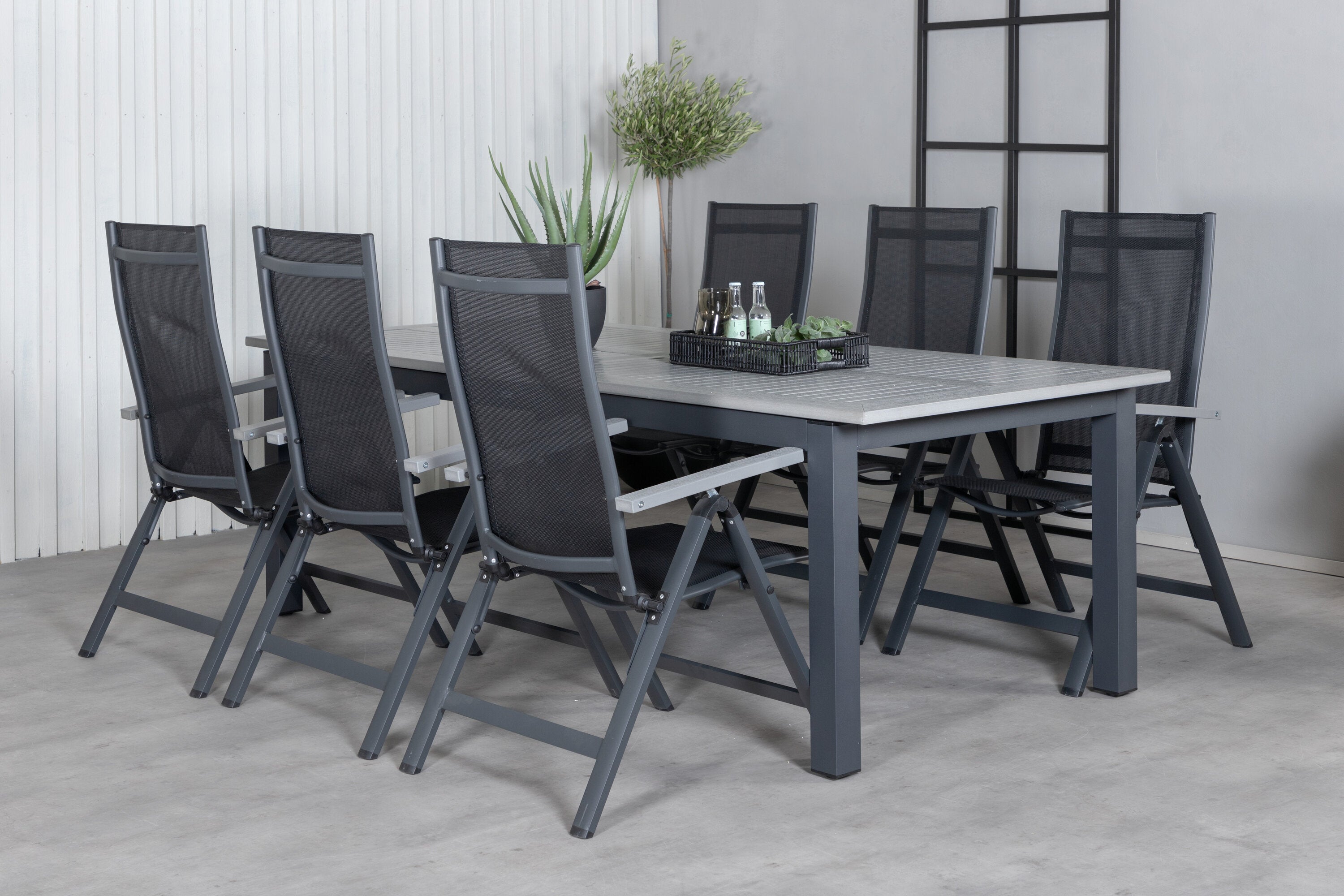 Albany Table - 224/324 - Black/Grey+Albany Light 5-pos - black / Black textilene and gray teak_6