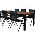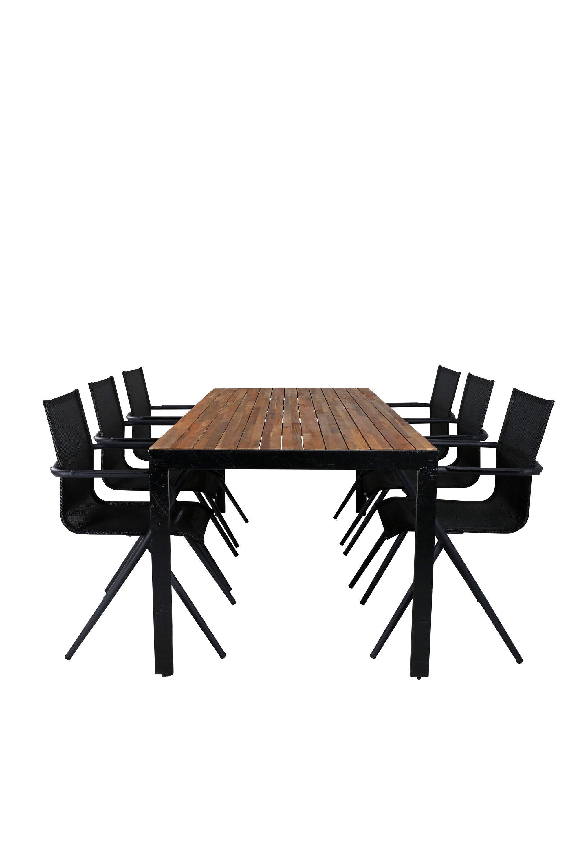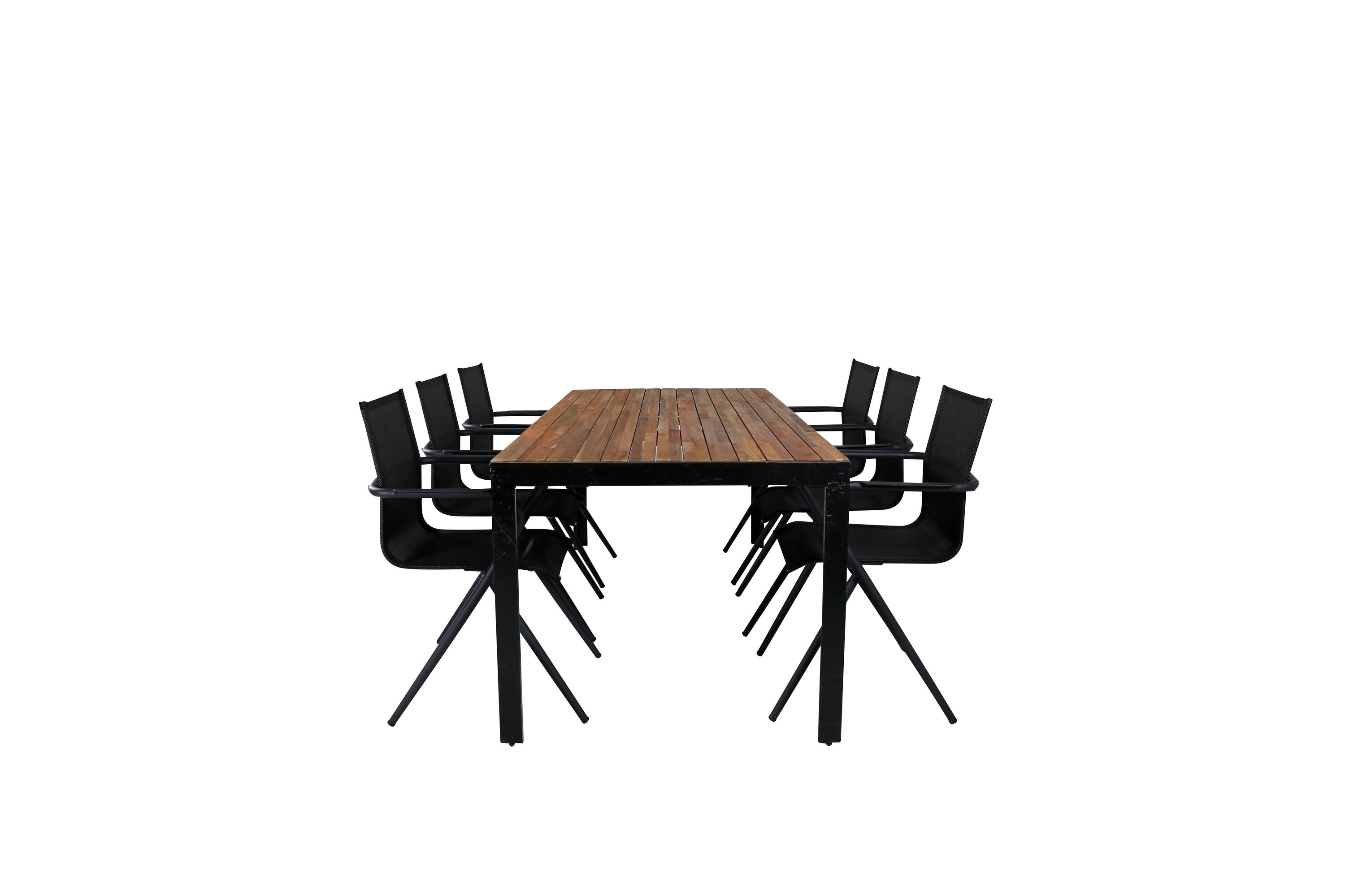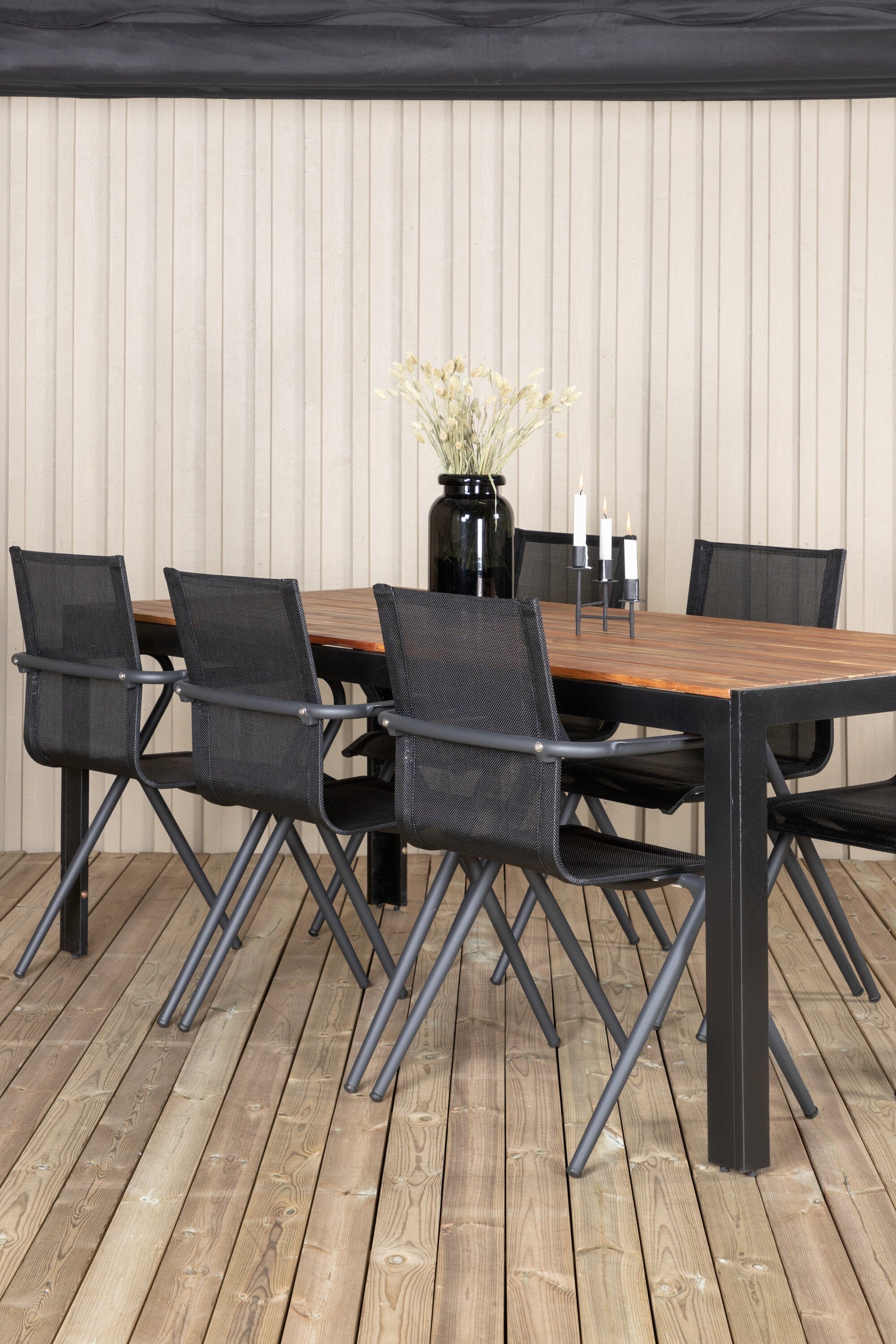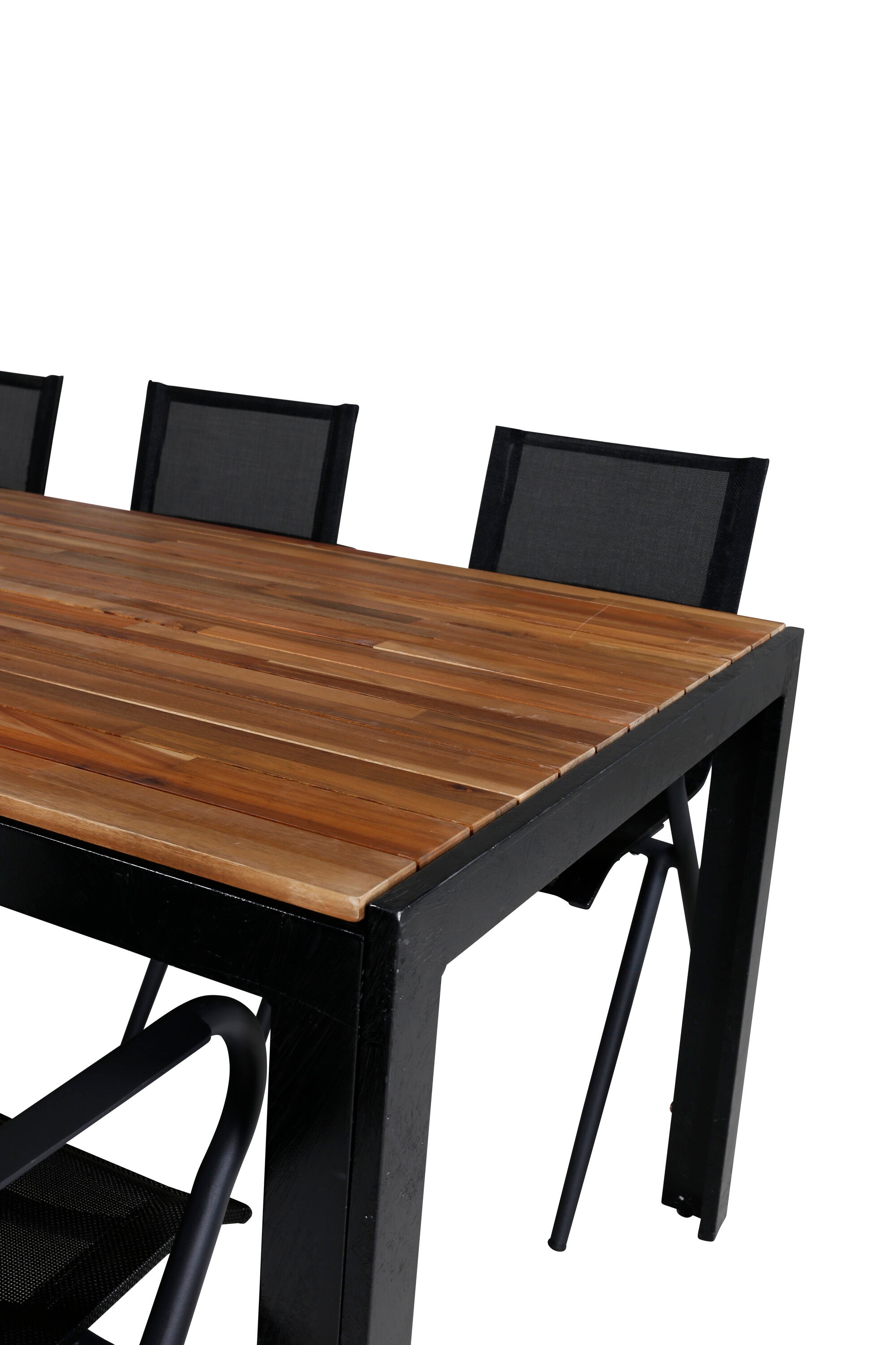 Bois Jídelní stůl 205*90cm - Černé nohy / Acacia + Alina Jídelní židle - Black Alu / Black Textilene_6