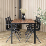 Skupina jídel v moderním a stylovém designu. Jídelní stůl BoIS a jídelní židle Alina jsou perfektní kombinací do venkovního prostoru domova, který se pravděpodobně hodí stejně dobře k vašim potřebám jako k vašemu jinému interiéru.