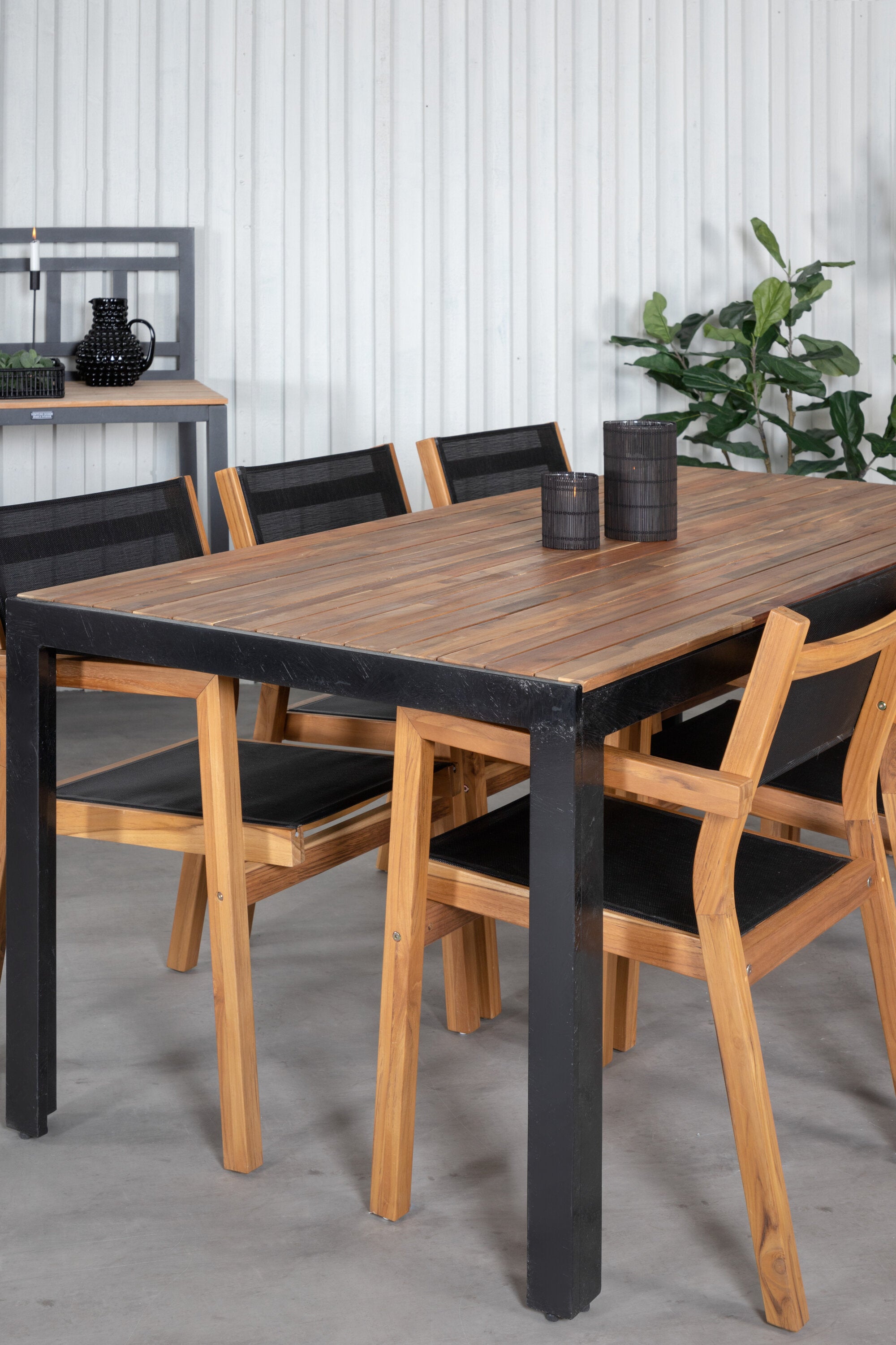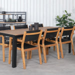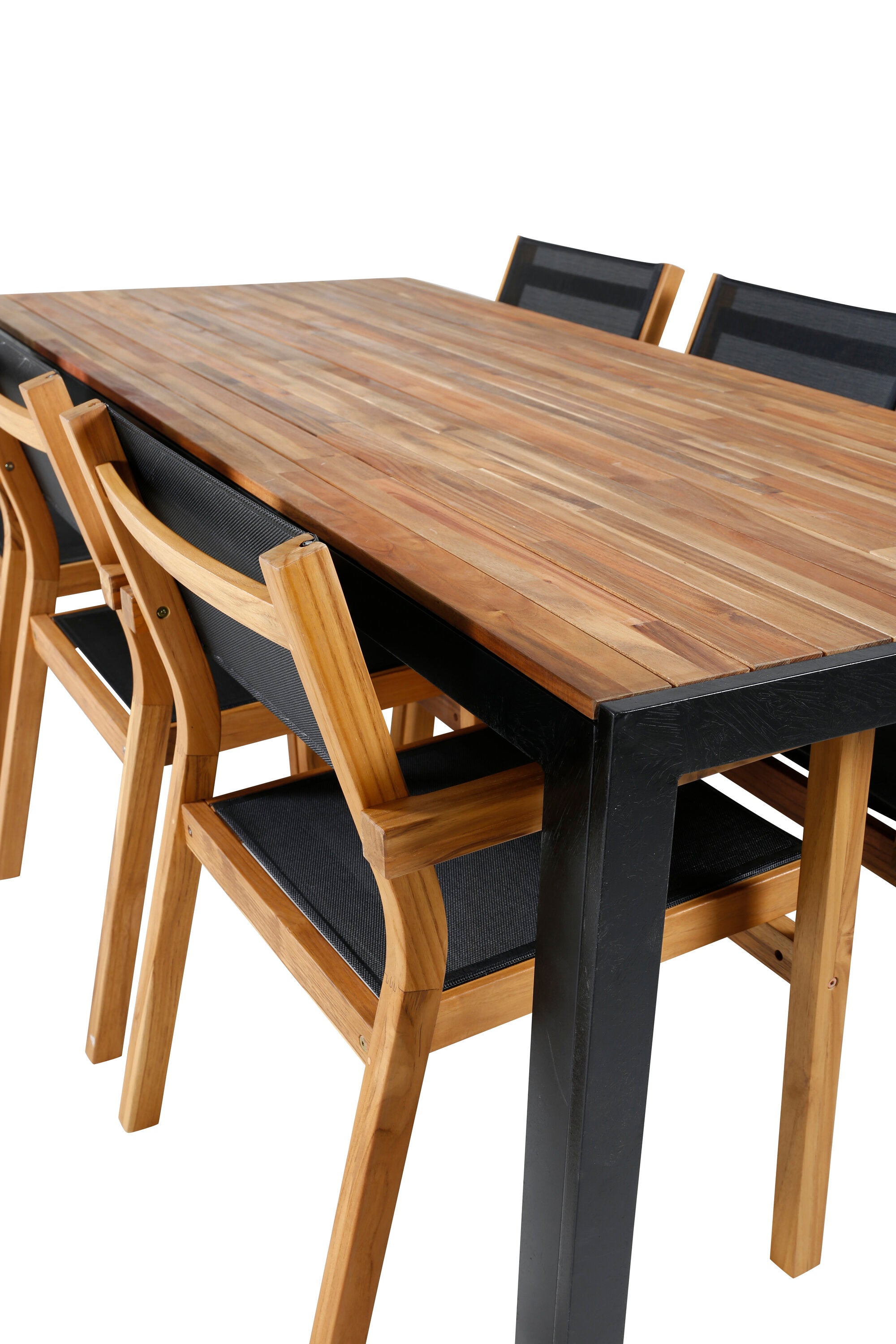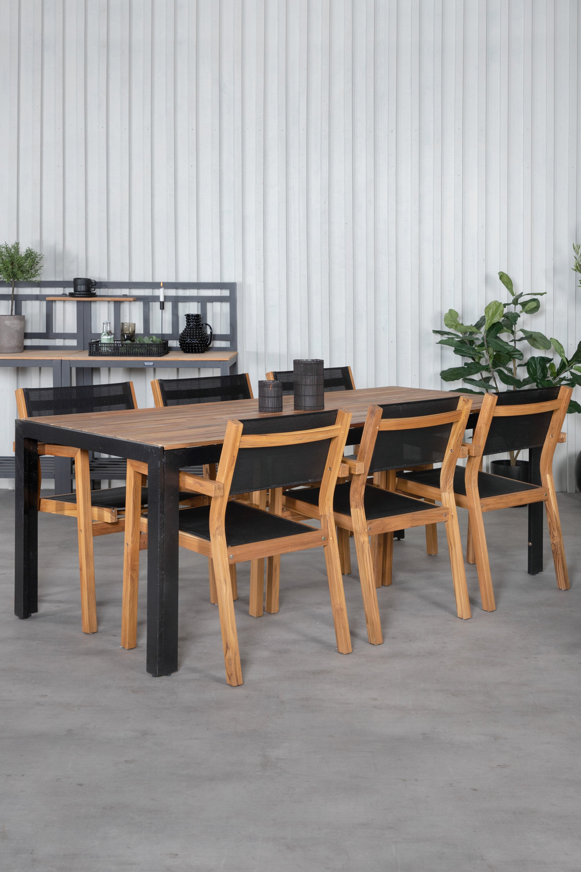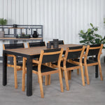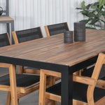 Bois Jídelní stůl 205*90cm - Černé nohy / Akácie + Stohovací židle Venice - Teak / Černá textilní_6