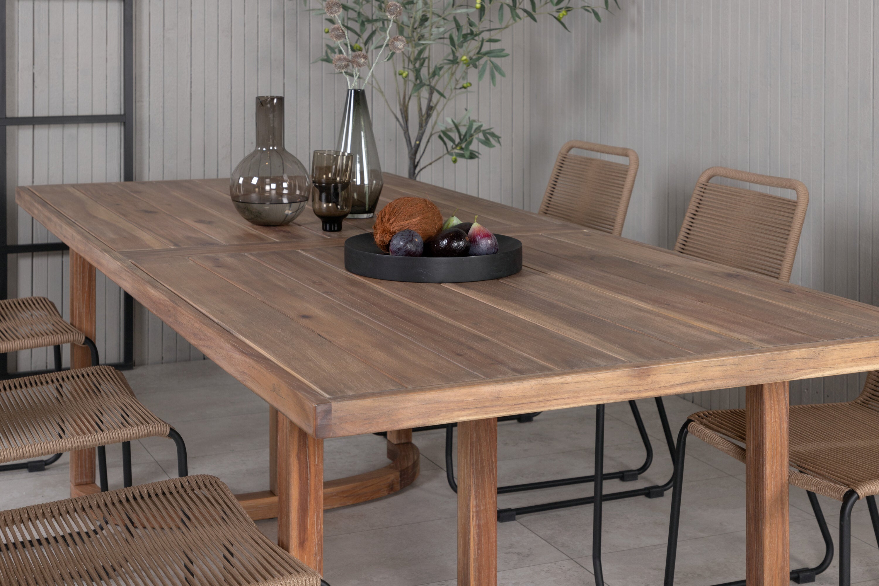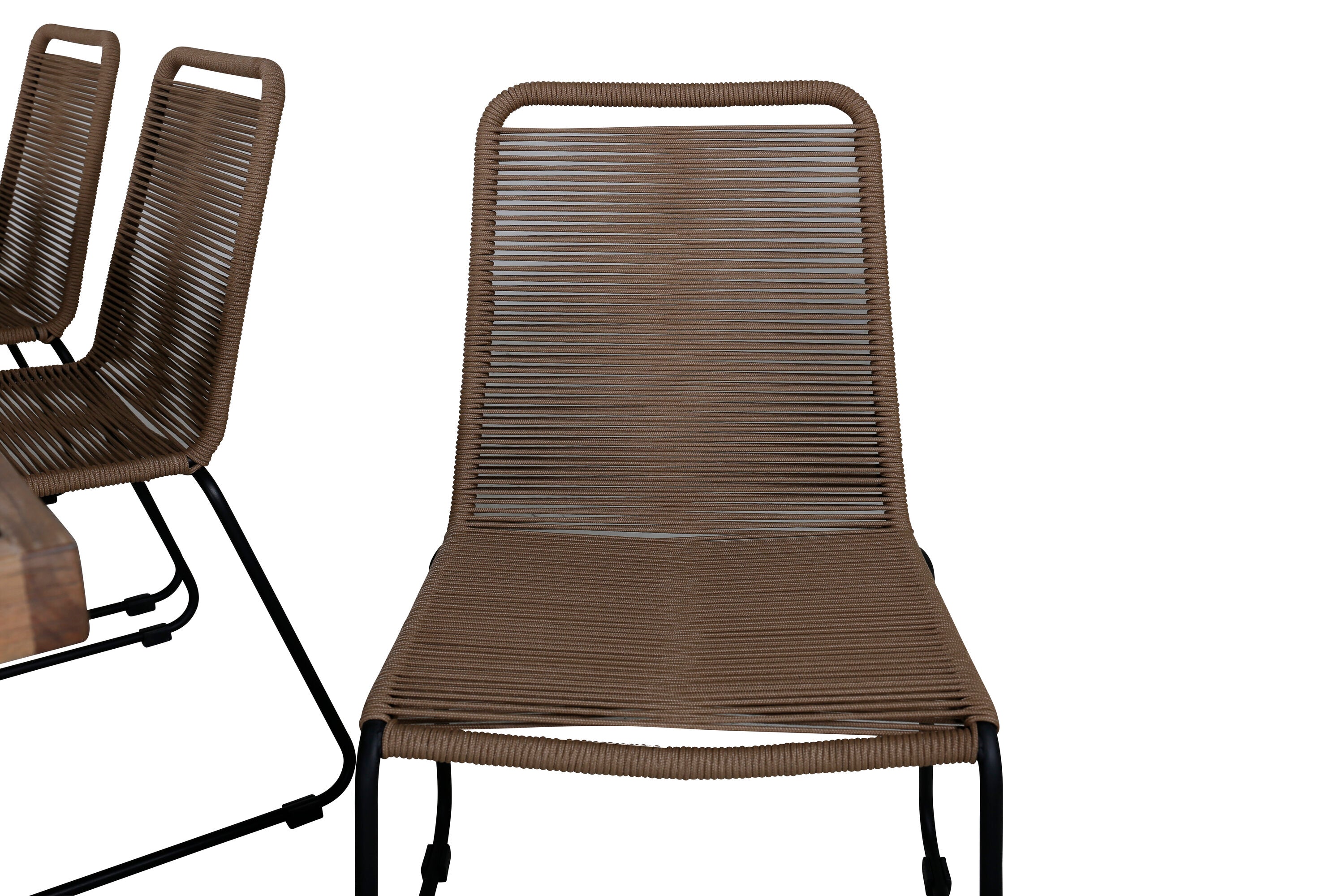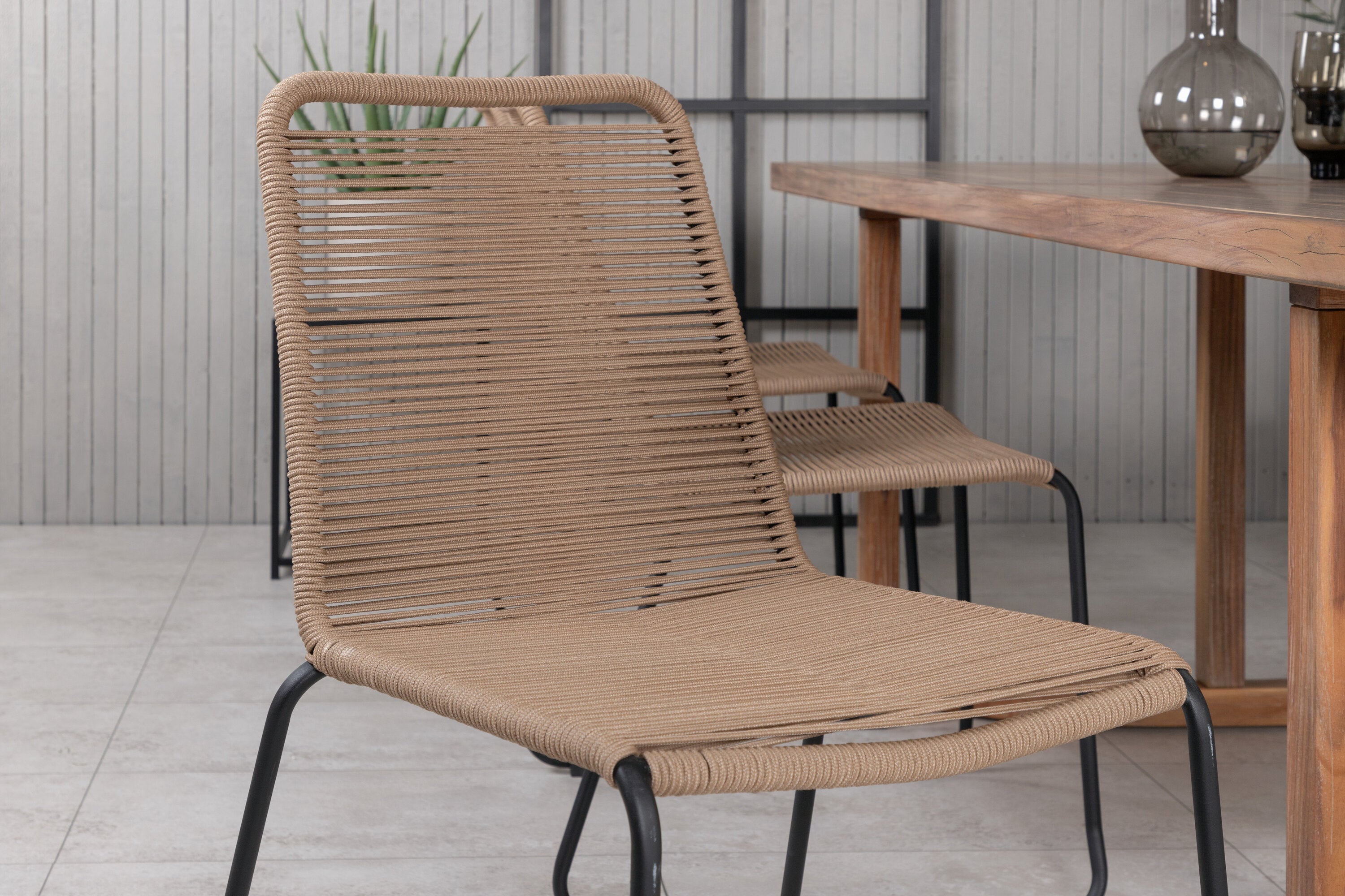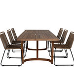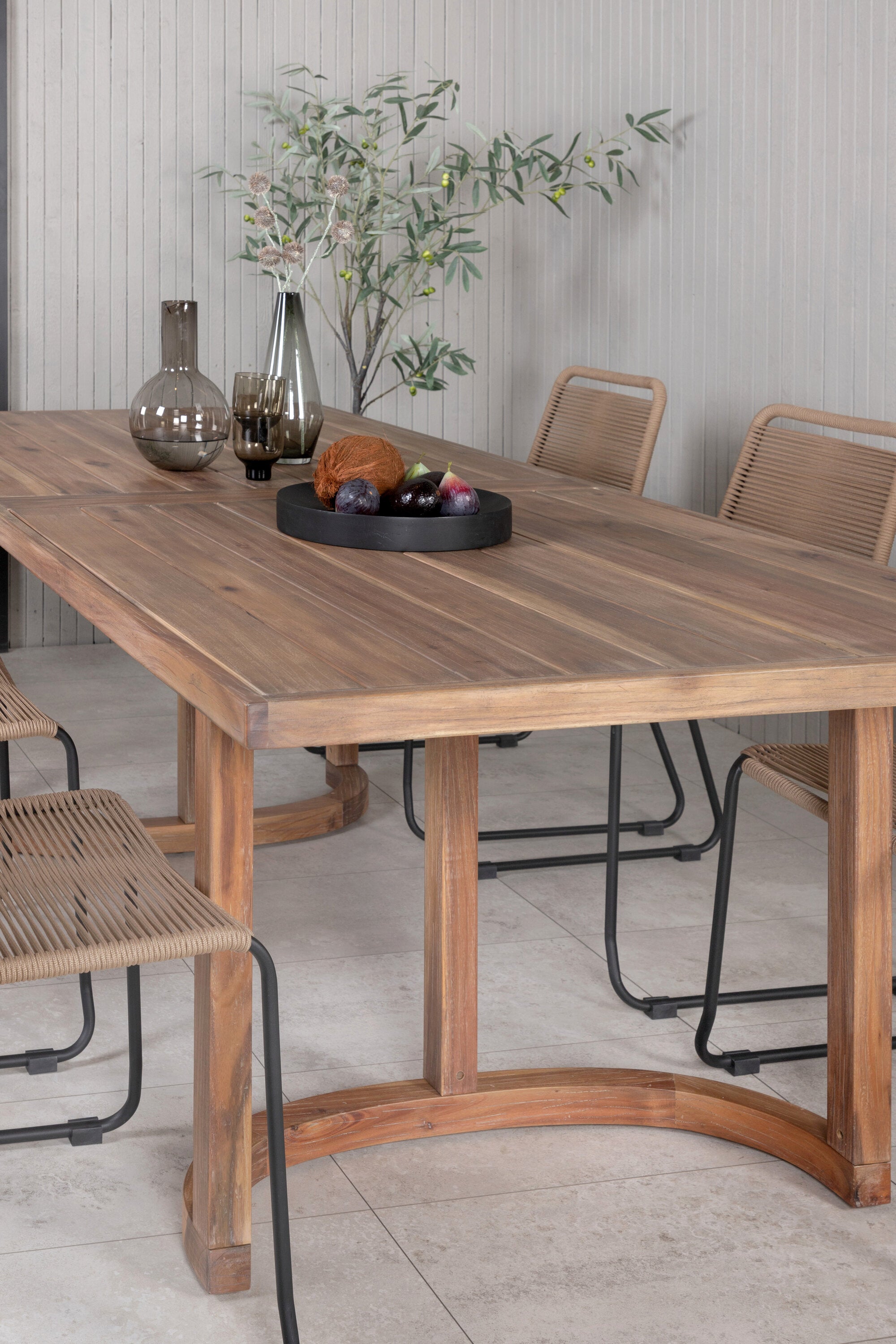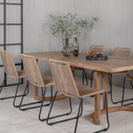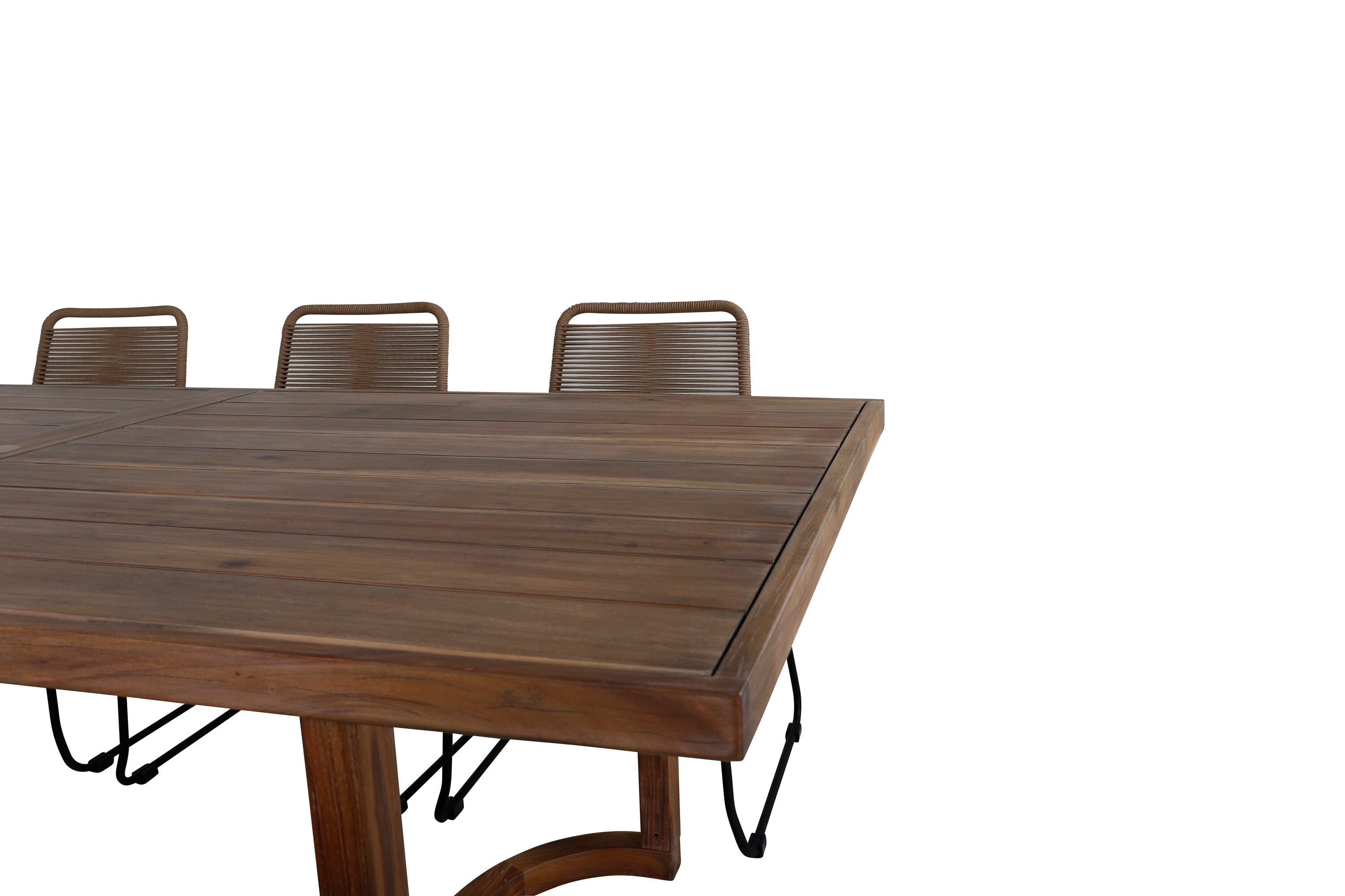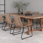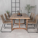 Erica Jídelní stůl akáciová drátěná kartáčovaná 214*100+Lindos stohovací židle - Black Alu / Latte Rope_6