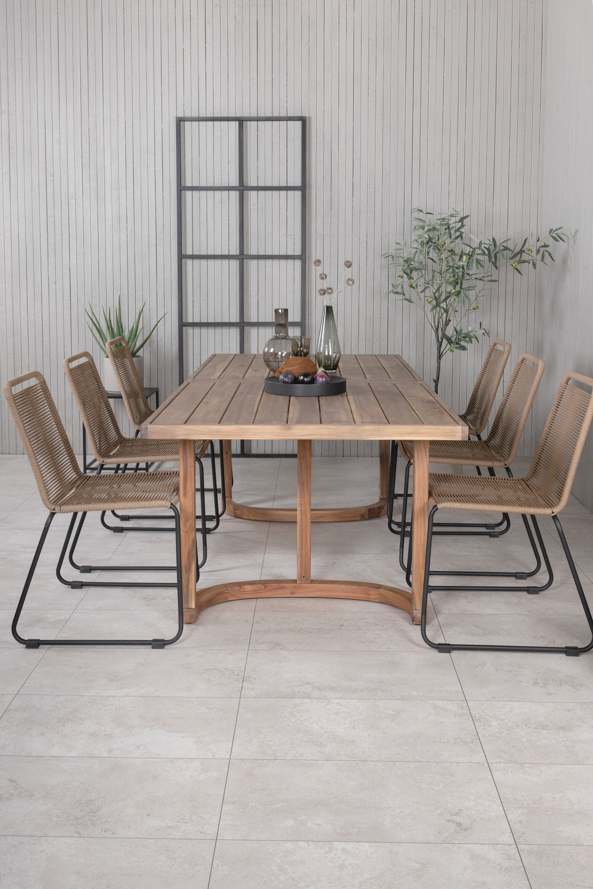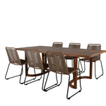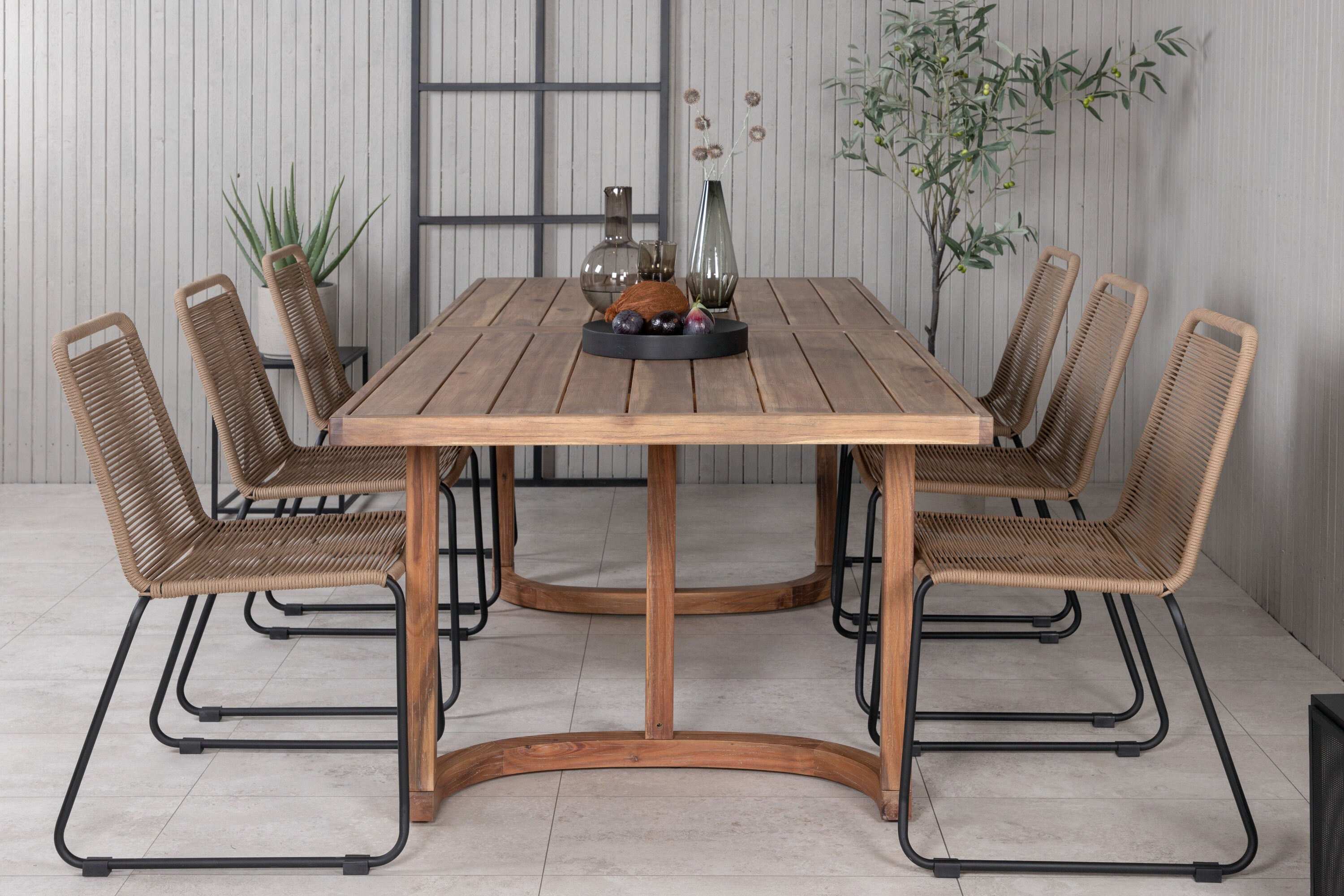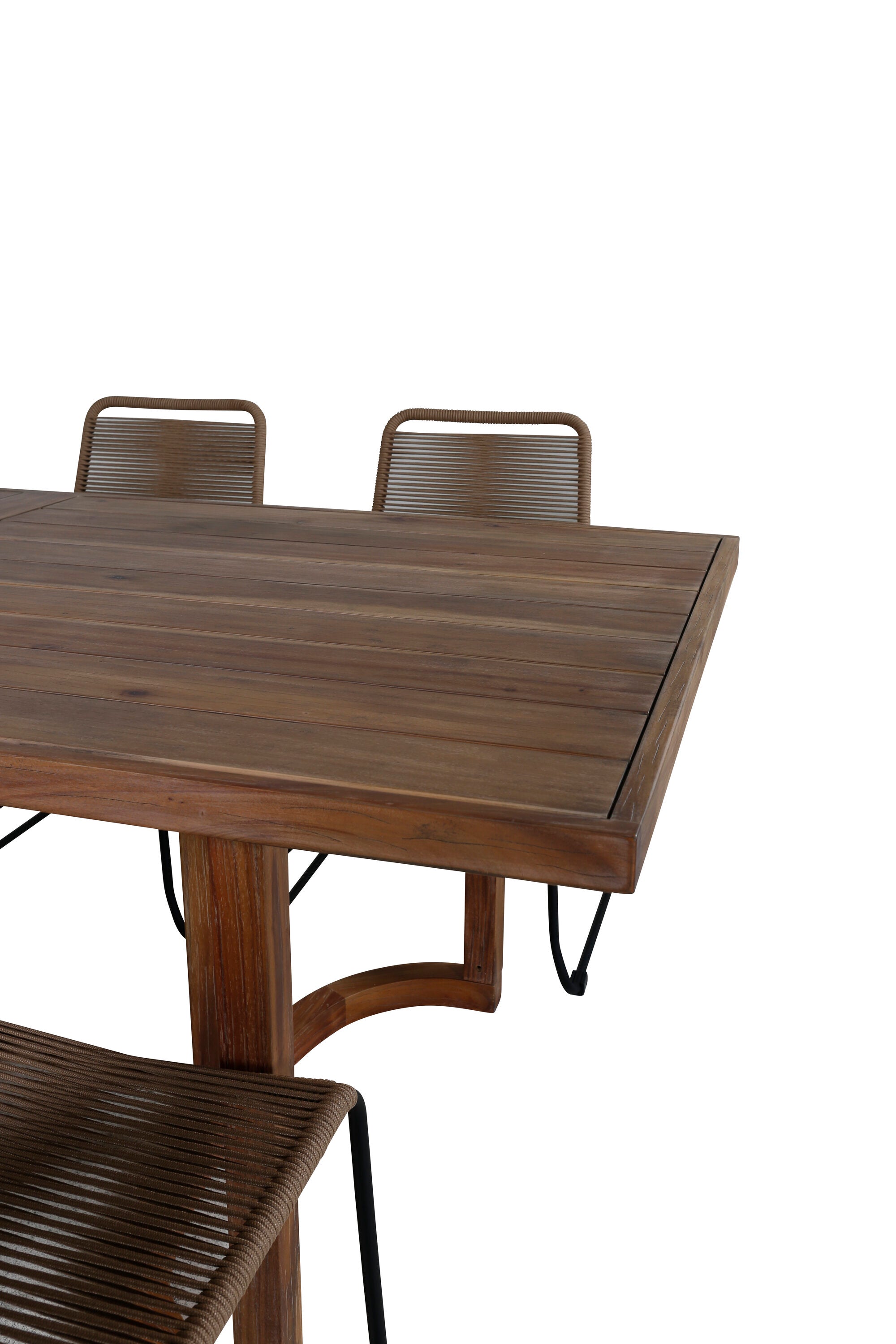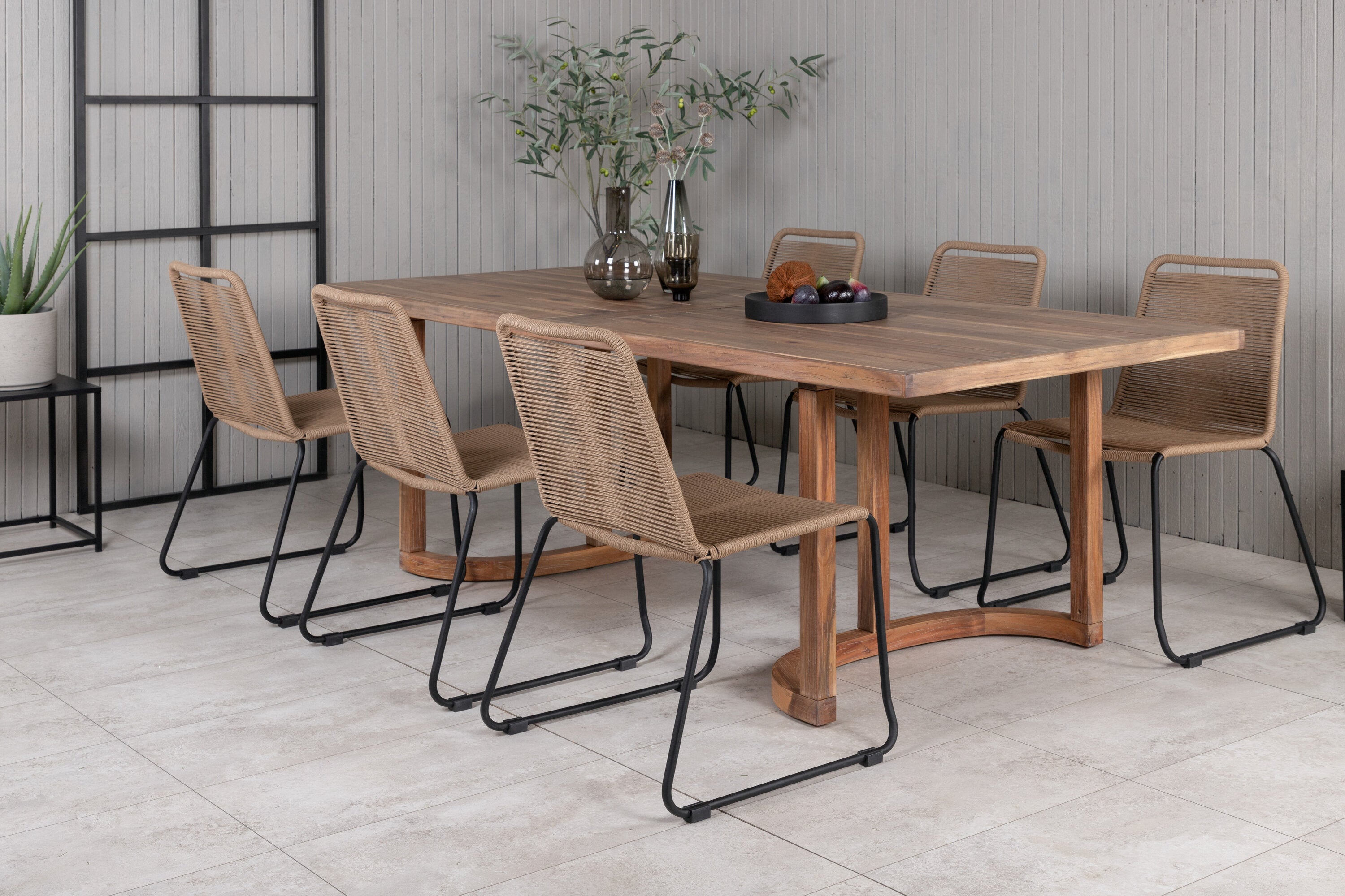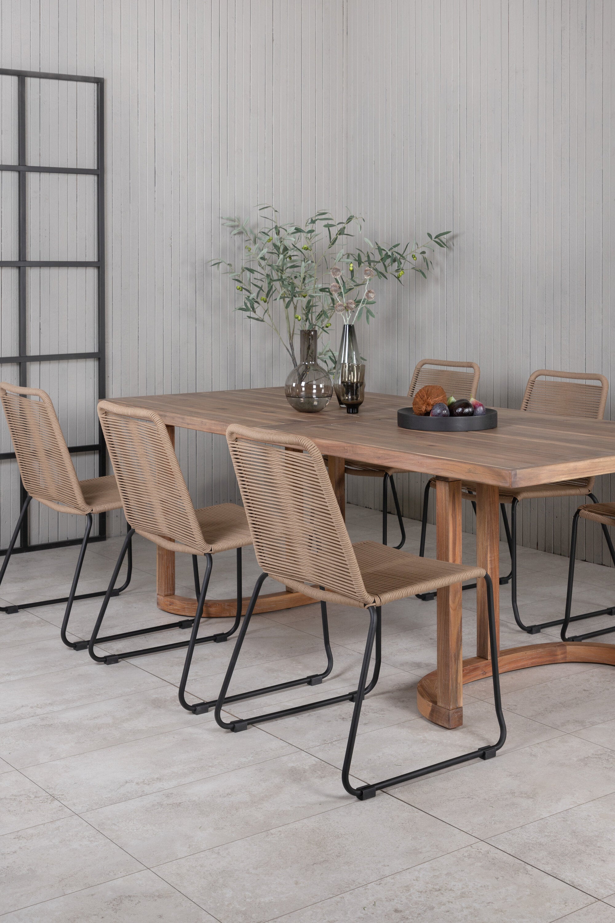 Erica Jídelní stůl akáciová drátěná kartáčovaná 214*100+Lindos stohovací židle - Black Alu / Latte Rope_6