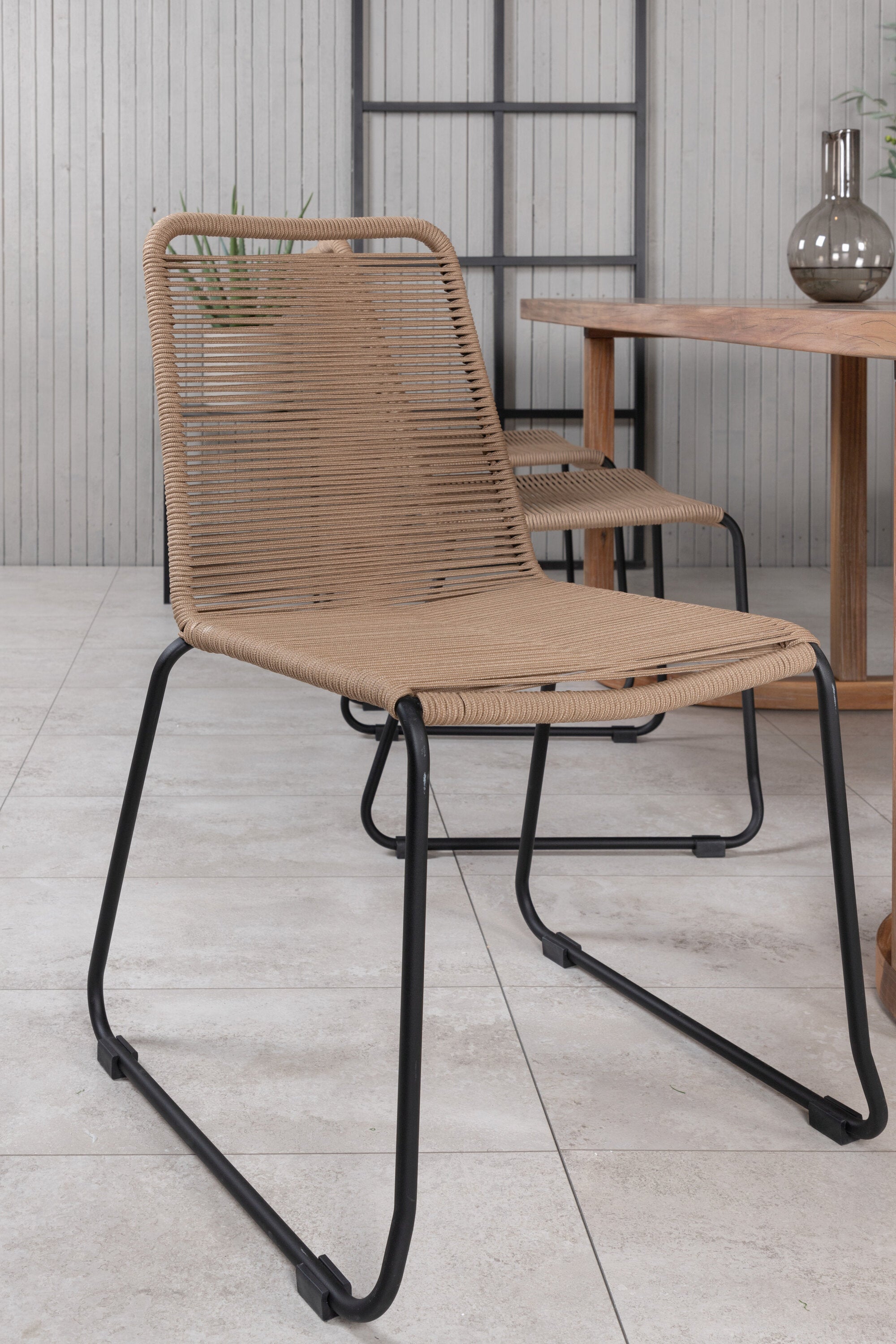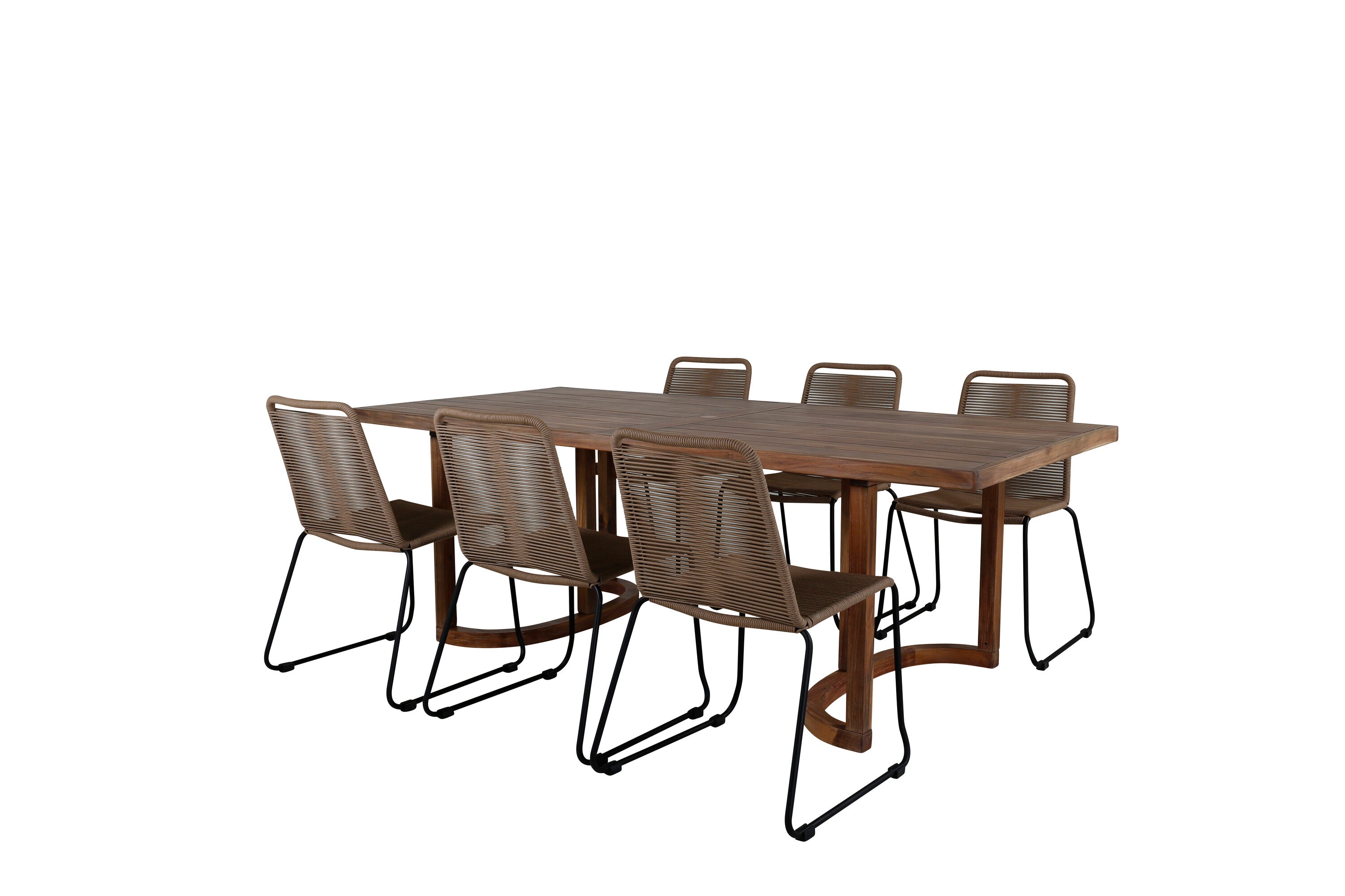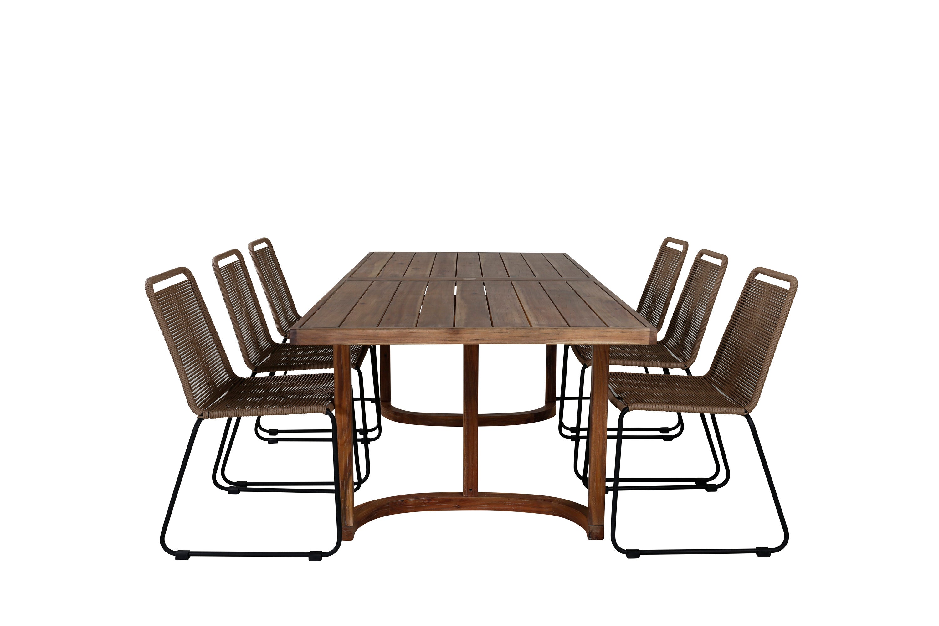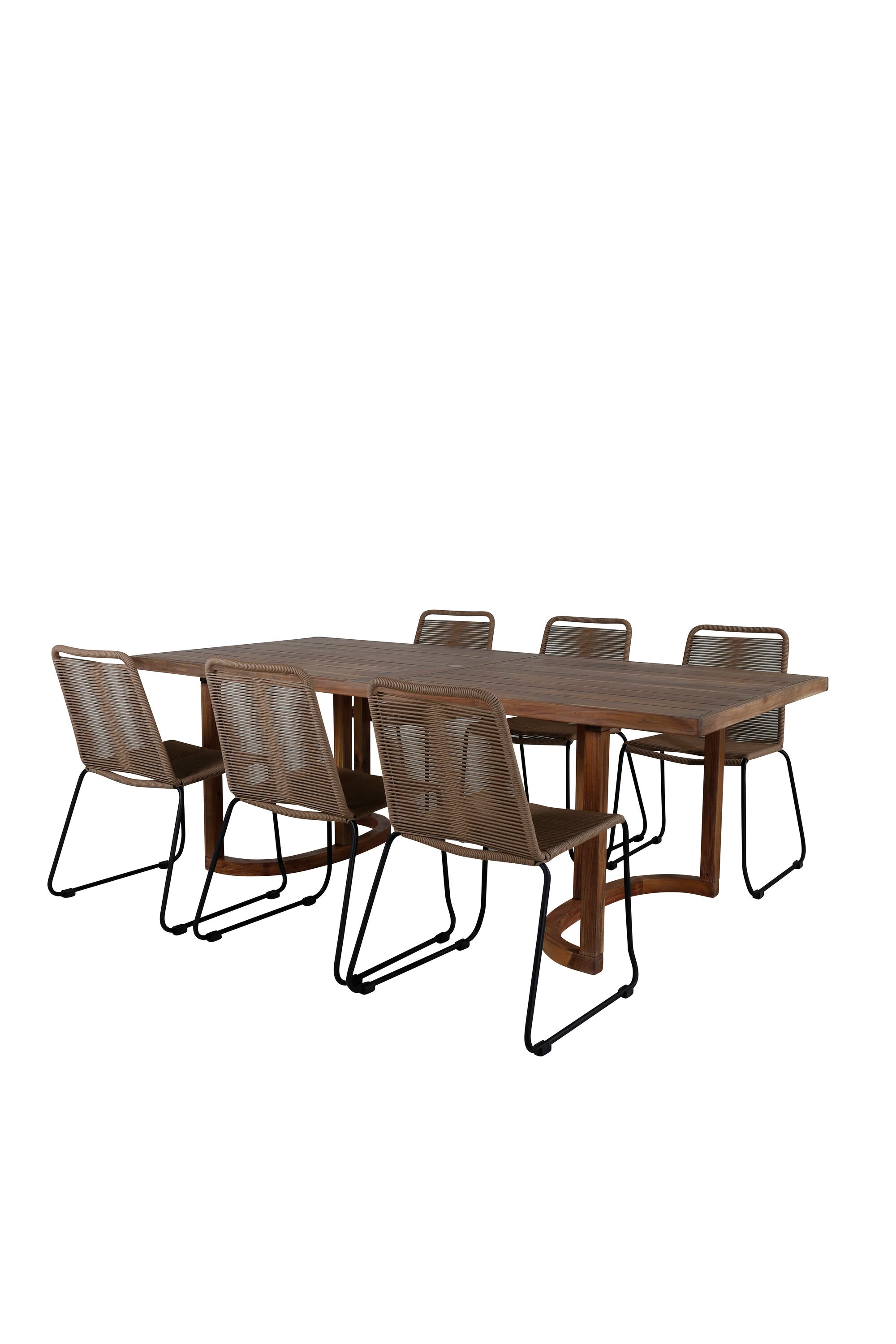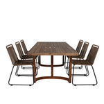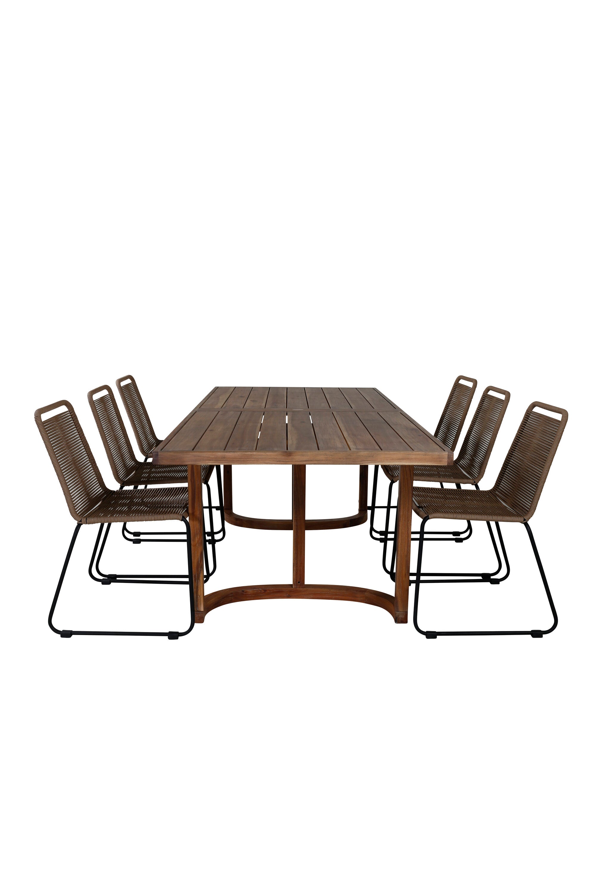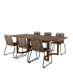 Erica Jídelní stůl akáciová drátěná kartáčovaná 214*100+Lindos stohovací židle - Black Alu / Latte Rope_6