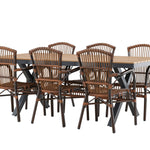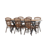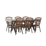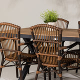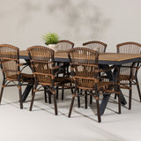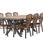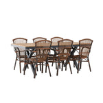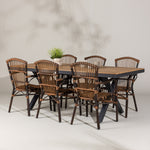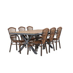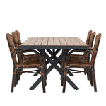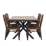 Garcia Jídelní stůl Alumnium - Hnědá / Obdélníková 100*200* +Galera Jídelní židle Hliník - Hnědá / Proutí _6