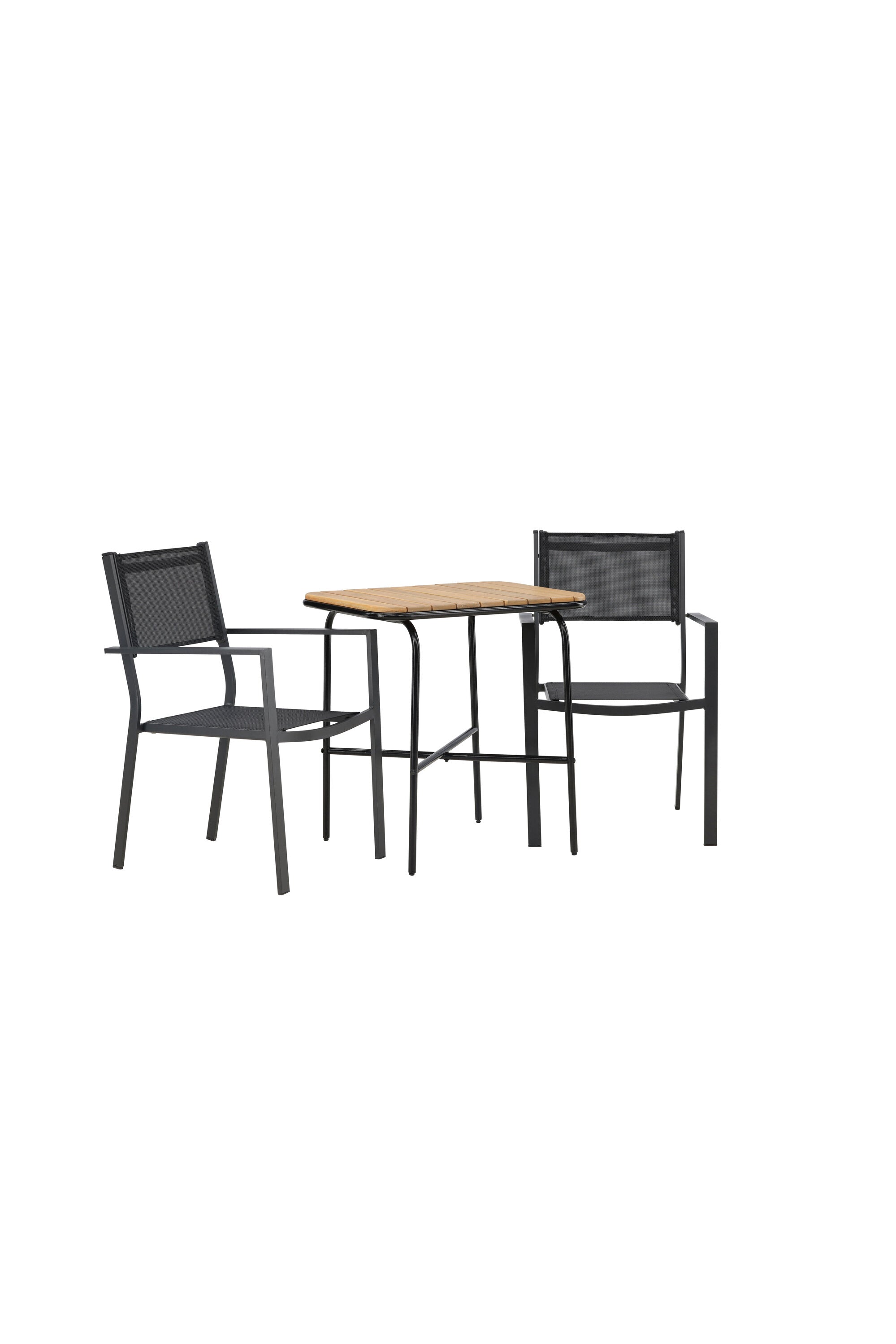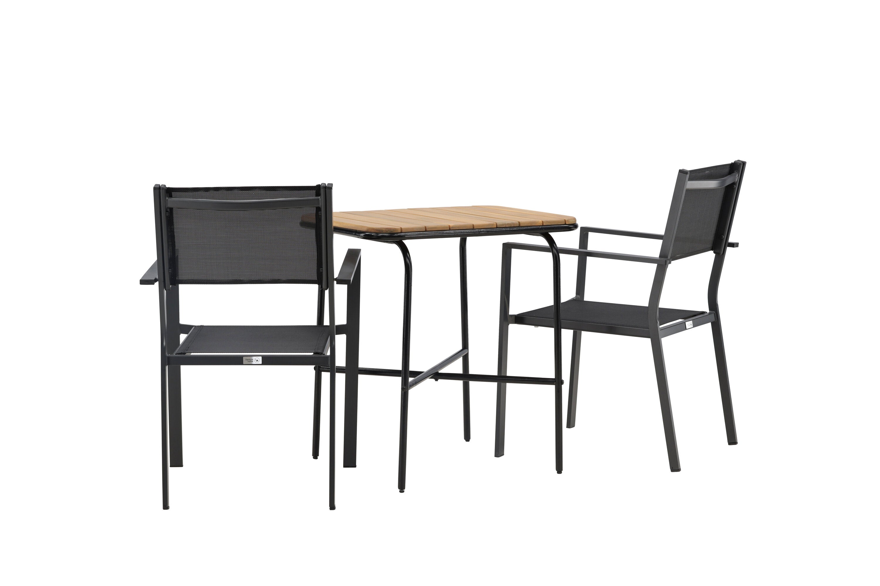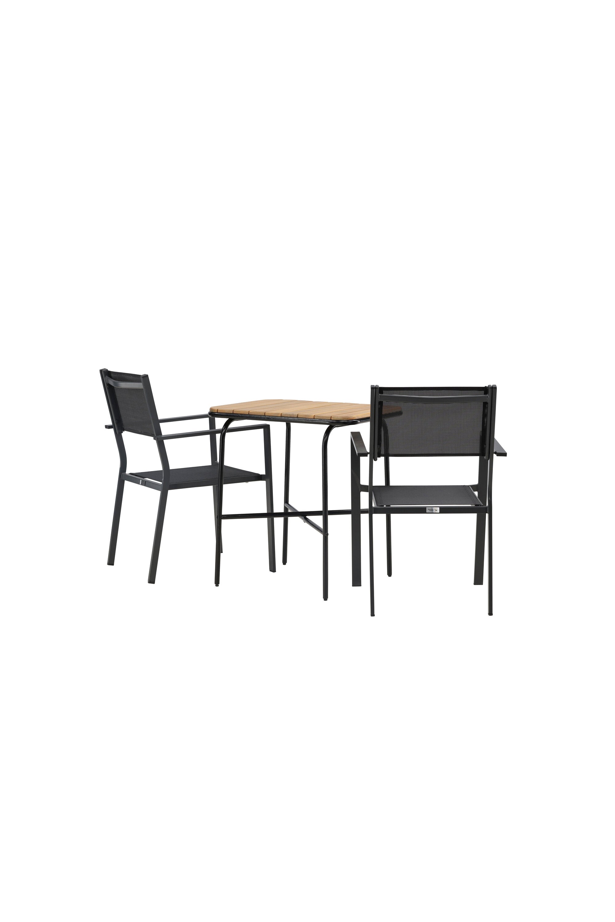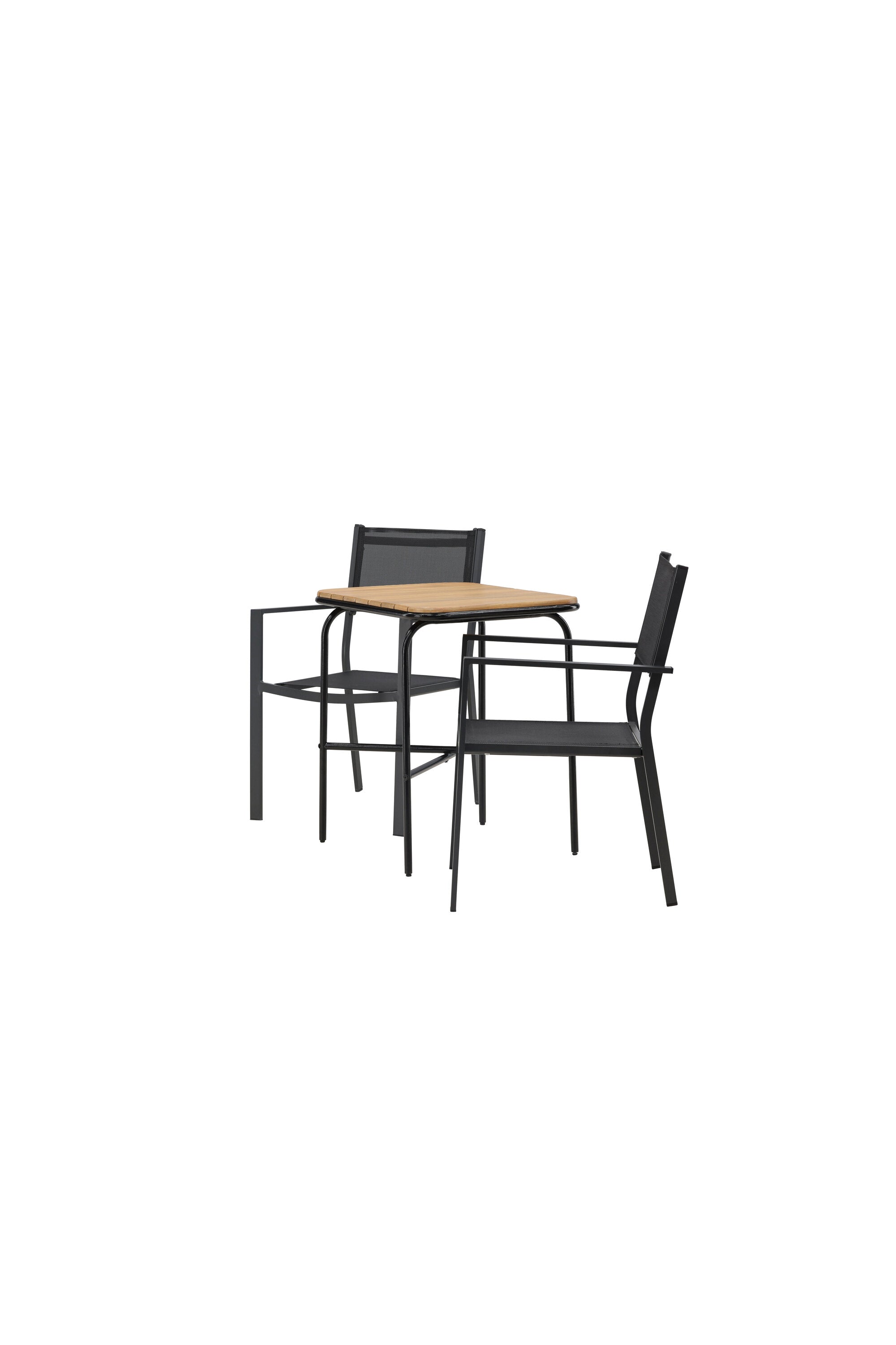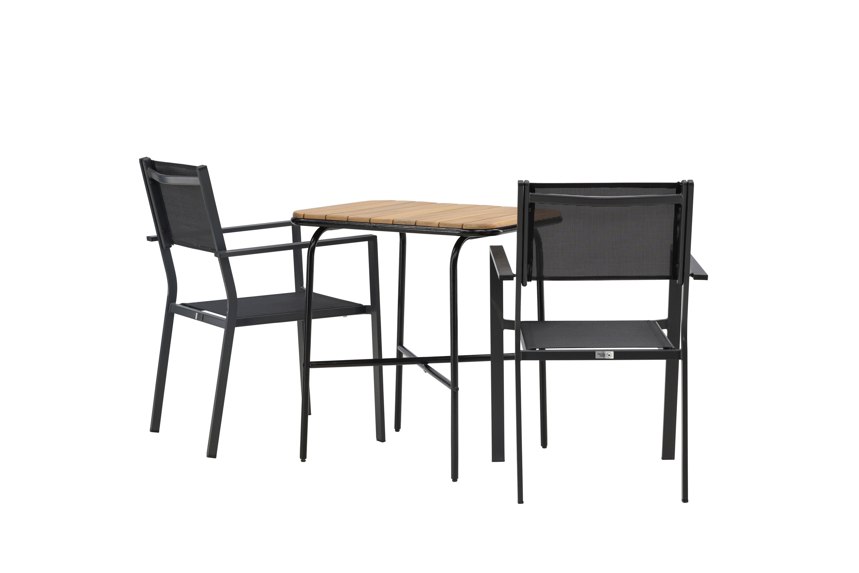 Poutavá kavárenská skupina pro letošní letní přestávky na kávu! Náš stylový kavárenský stůl Holmbeck má moderní žebrovanou desku z akácie a minimalistickou základnu z černé oceli. Zde ve stylové kombinaci se 2 černými jídelními židlemi ze série Copacabana. Židle má rovný severský design v černém hliníku a sedák z textilu. Tato skupina se perfektně hodí k malému balkonu nebo slunnému koutu terasy! Rozměry stolu: 74 x 70 x 55 cm.