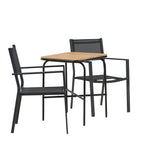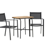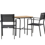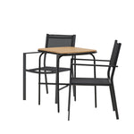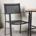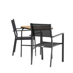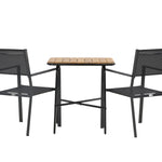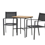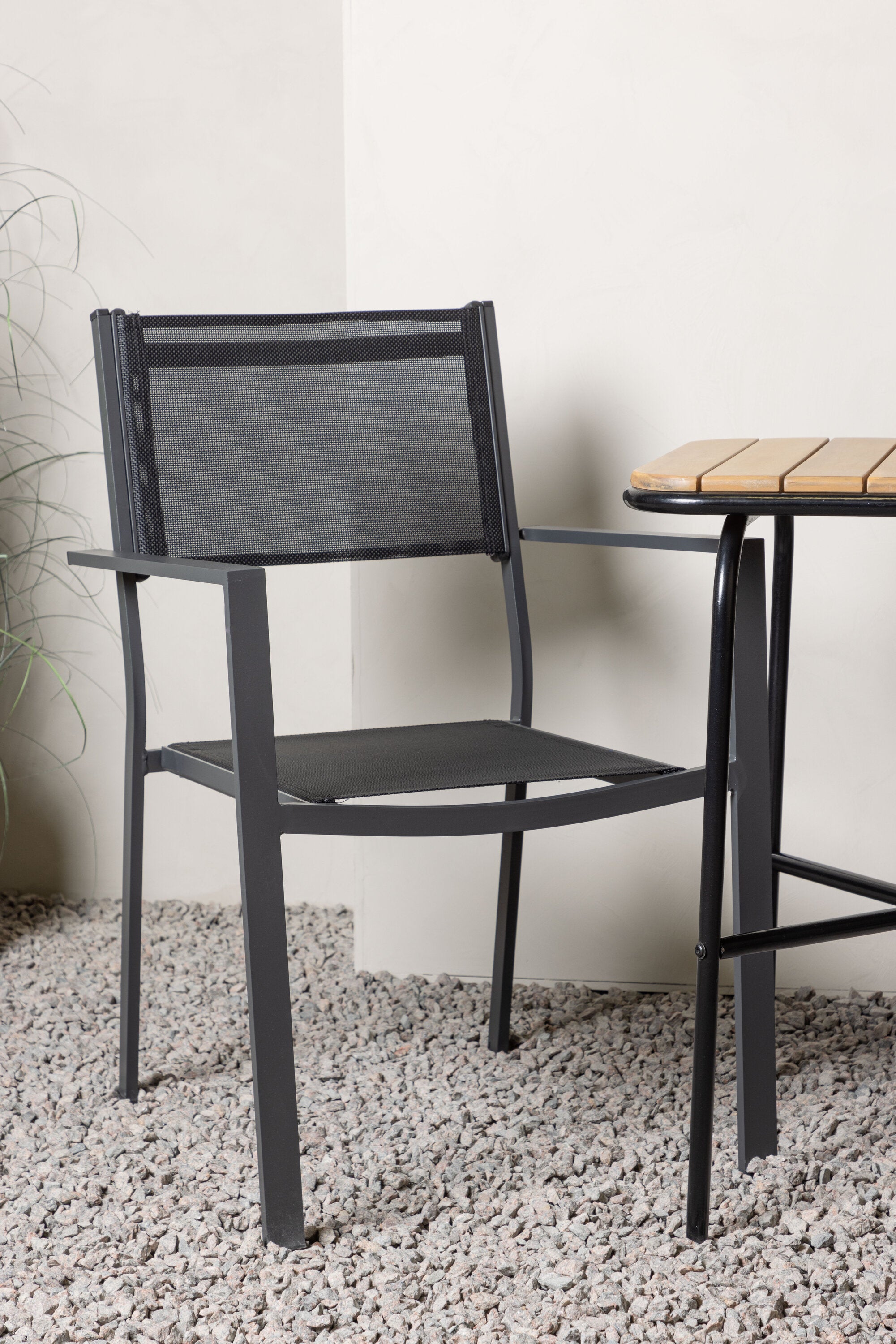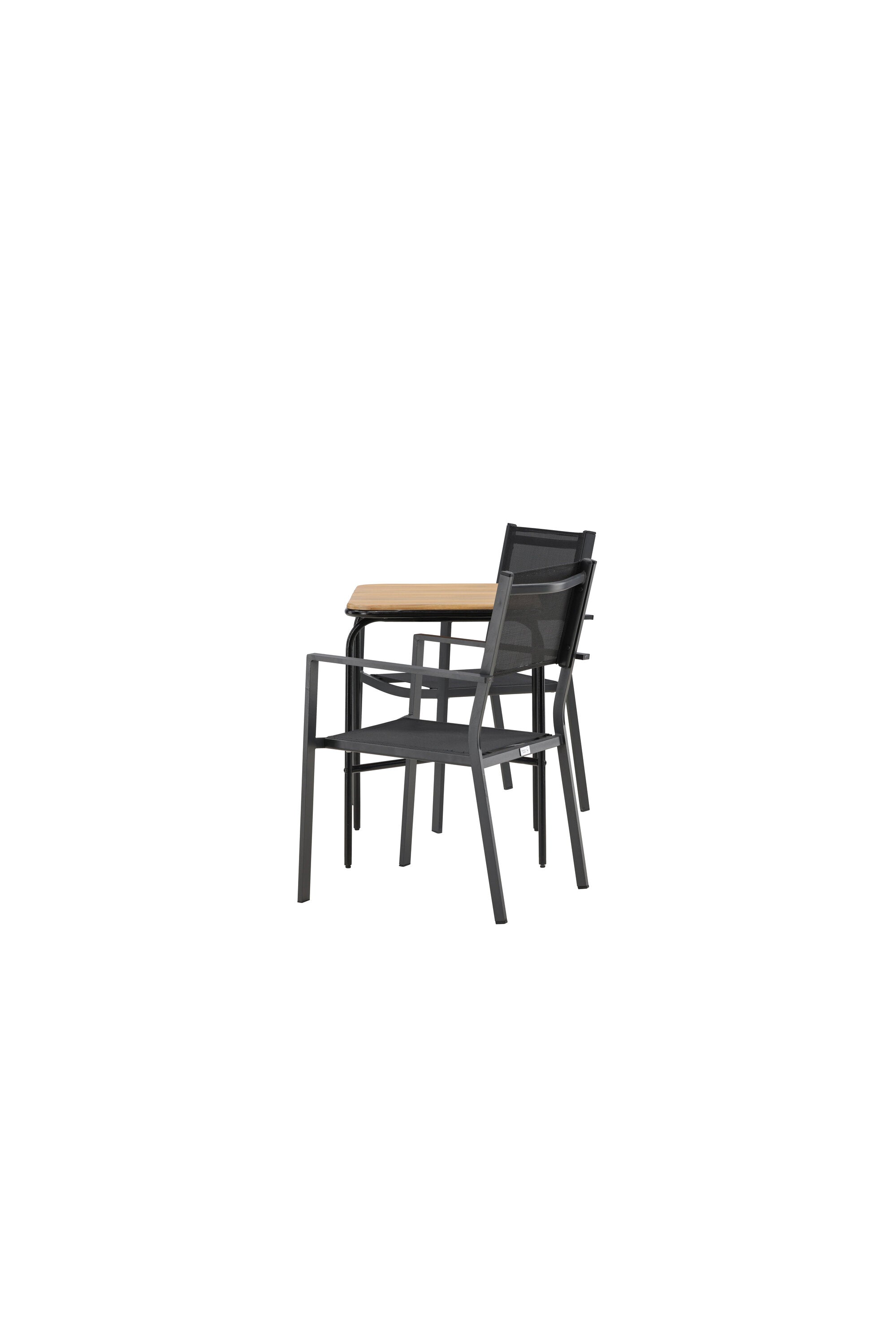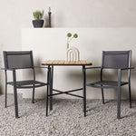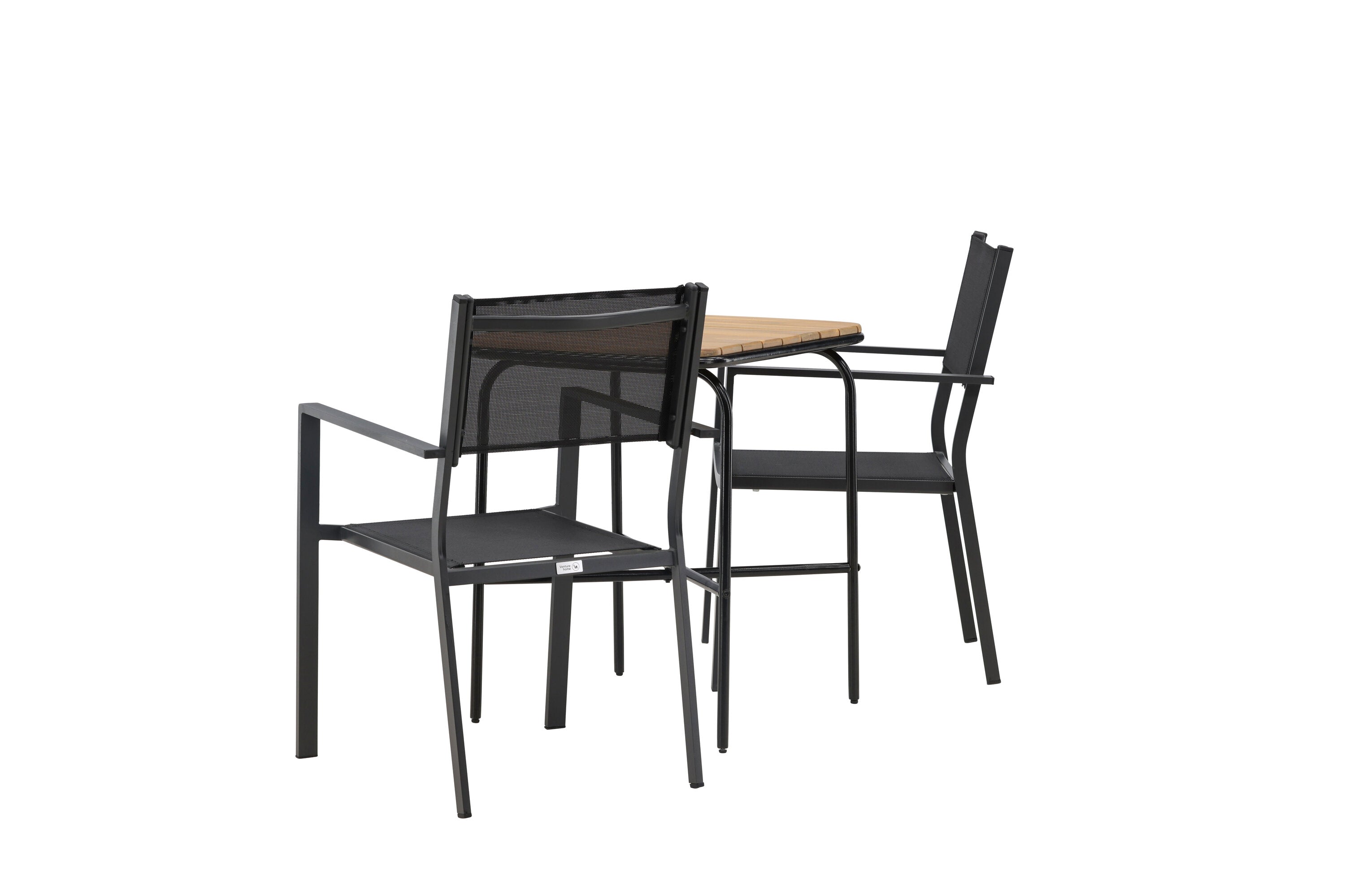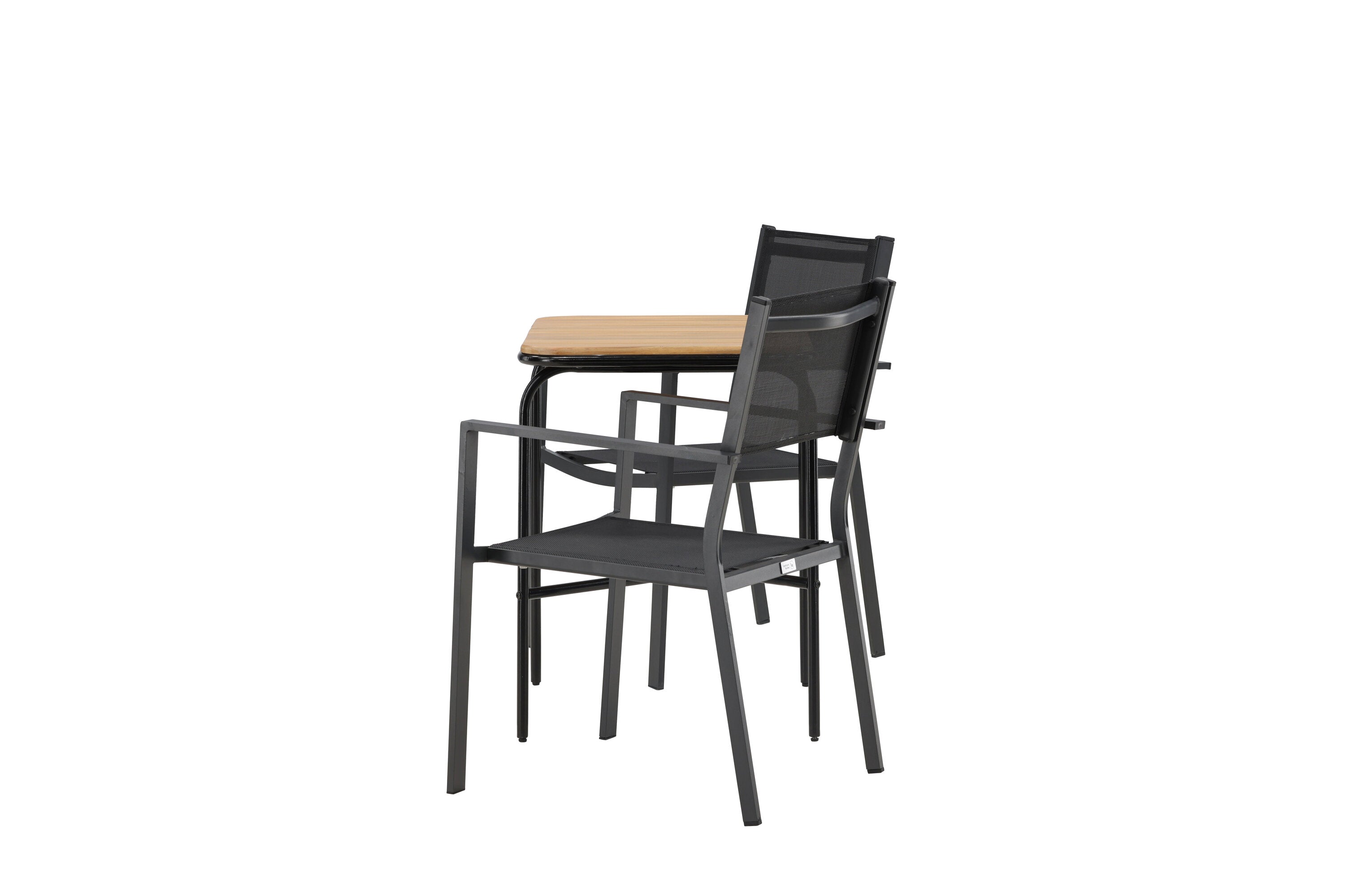 Poutavá kavárenská skupina pro letošní letní přestávky na kávu! Náš stylový kavárenský stůl Holmbeck má moderní žebrovanou desku z akácie a minimalistickou základnu z černé oceli. Zde ve stylové kombinaci se 2 černými jídelními židlemi ze série Copacabana. Židle má rovný severský design v černém hliníku a sedák z textilu. Tato skupina se perfektně hodí k malému balkonu nebo slunnému koutu terasy! Rozměry stolu: 74 x 70 x 55 cm.