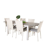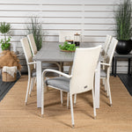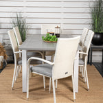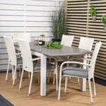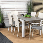 Jídelní stůl Albany 152/210*90 - Bílá Alu / Šedá Aintwood + křeslo Anna (stohovatelné) - White_6