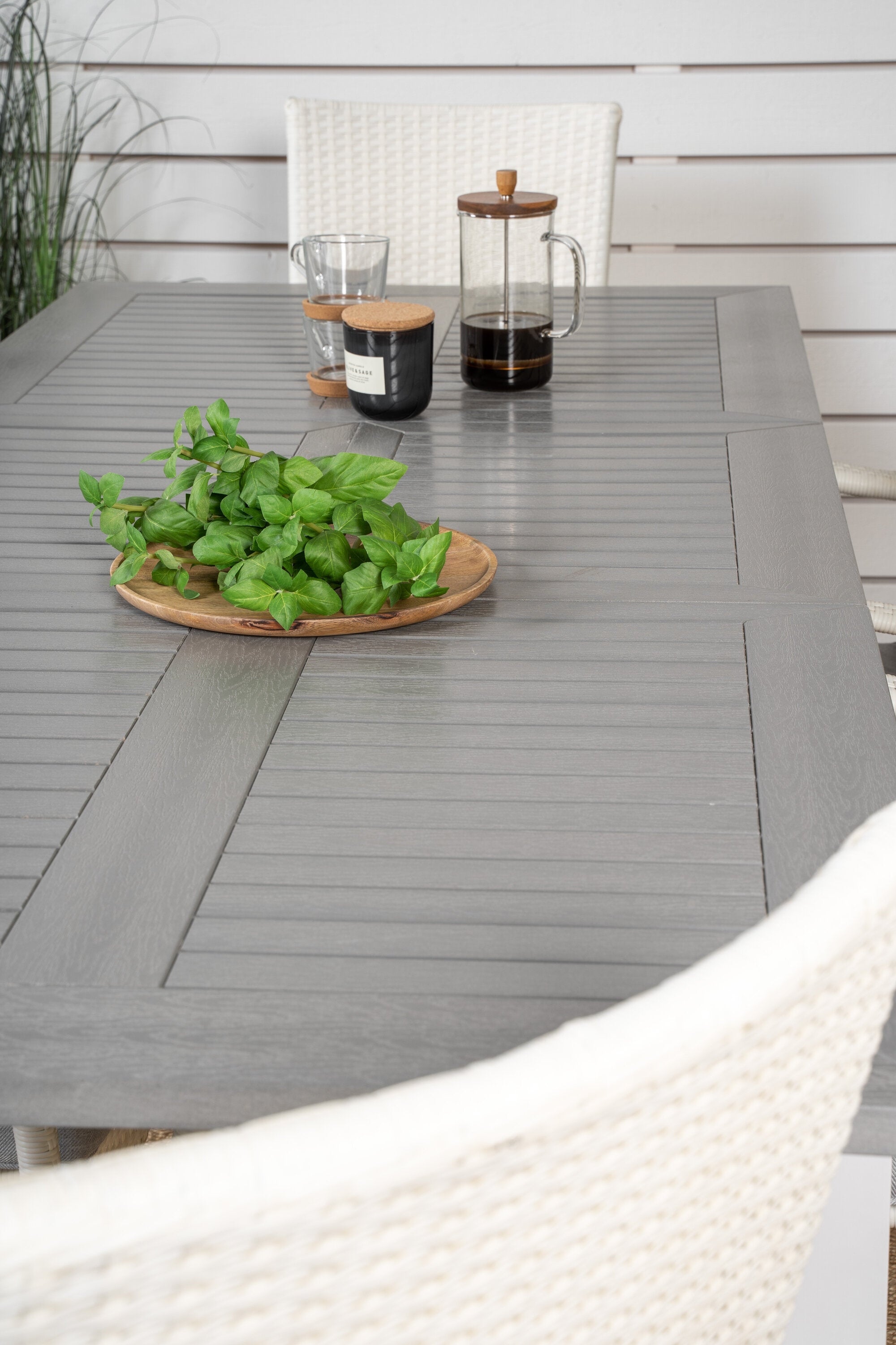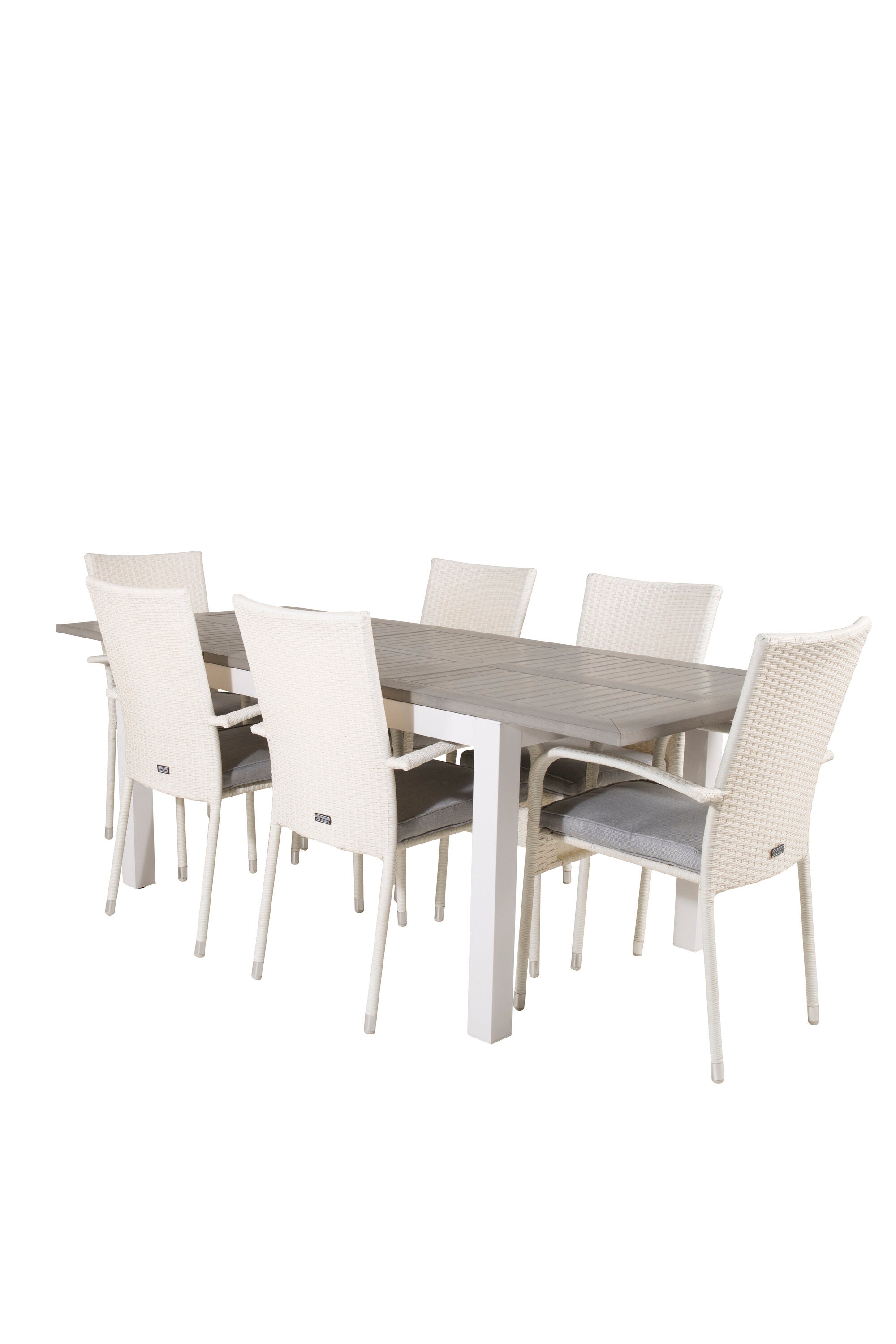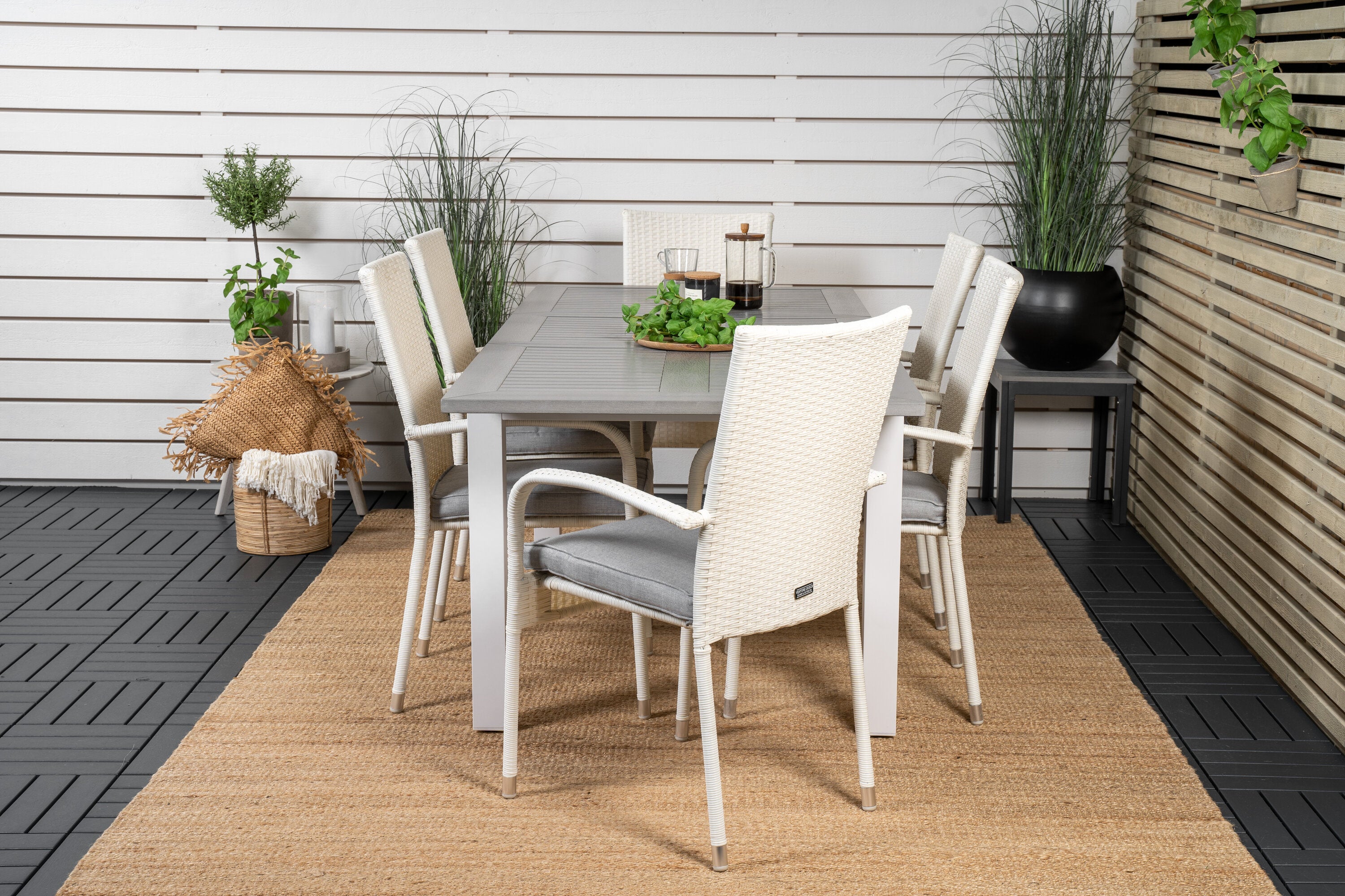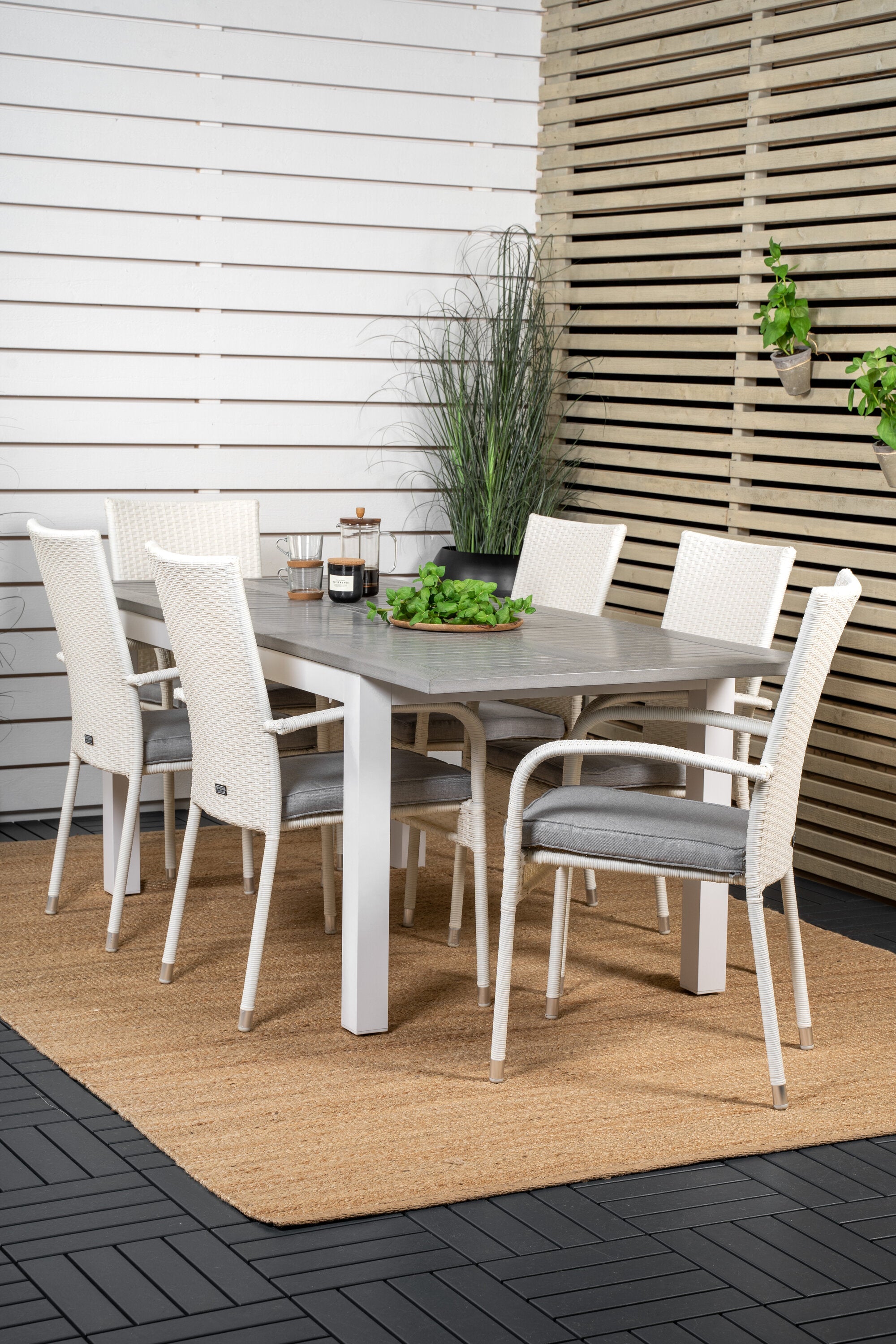 Skupina potravin, která se hodí do většiny prostředí! Náš rozkládací jídelní stůl Albany spolu se stylovými židlemi ze série Anna in white arts je jako dělaný pro ty, kteří chtějí na zahradě nebo ve venkovním prostoru vytvořit útulný a moderní pocit. Rozšiřte svá pozvání na večeři a vyhněte se obavám, že budou všichni ubytováni.