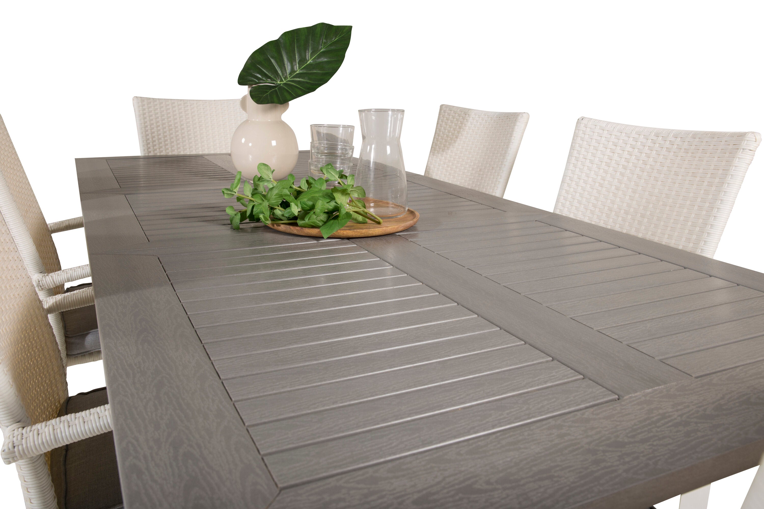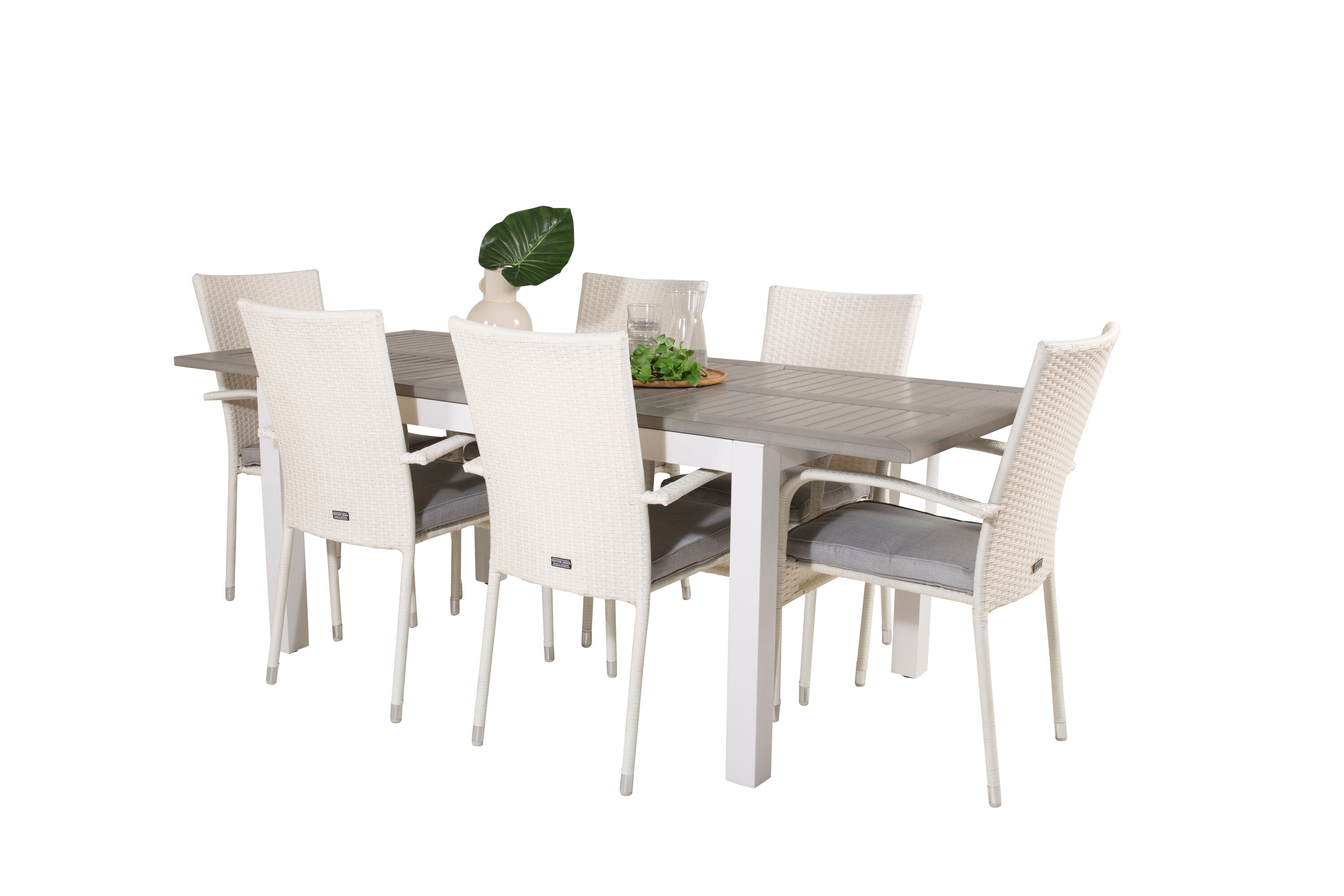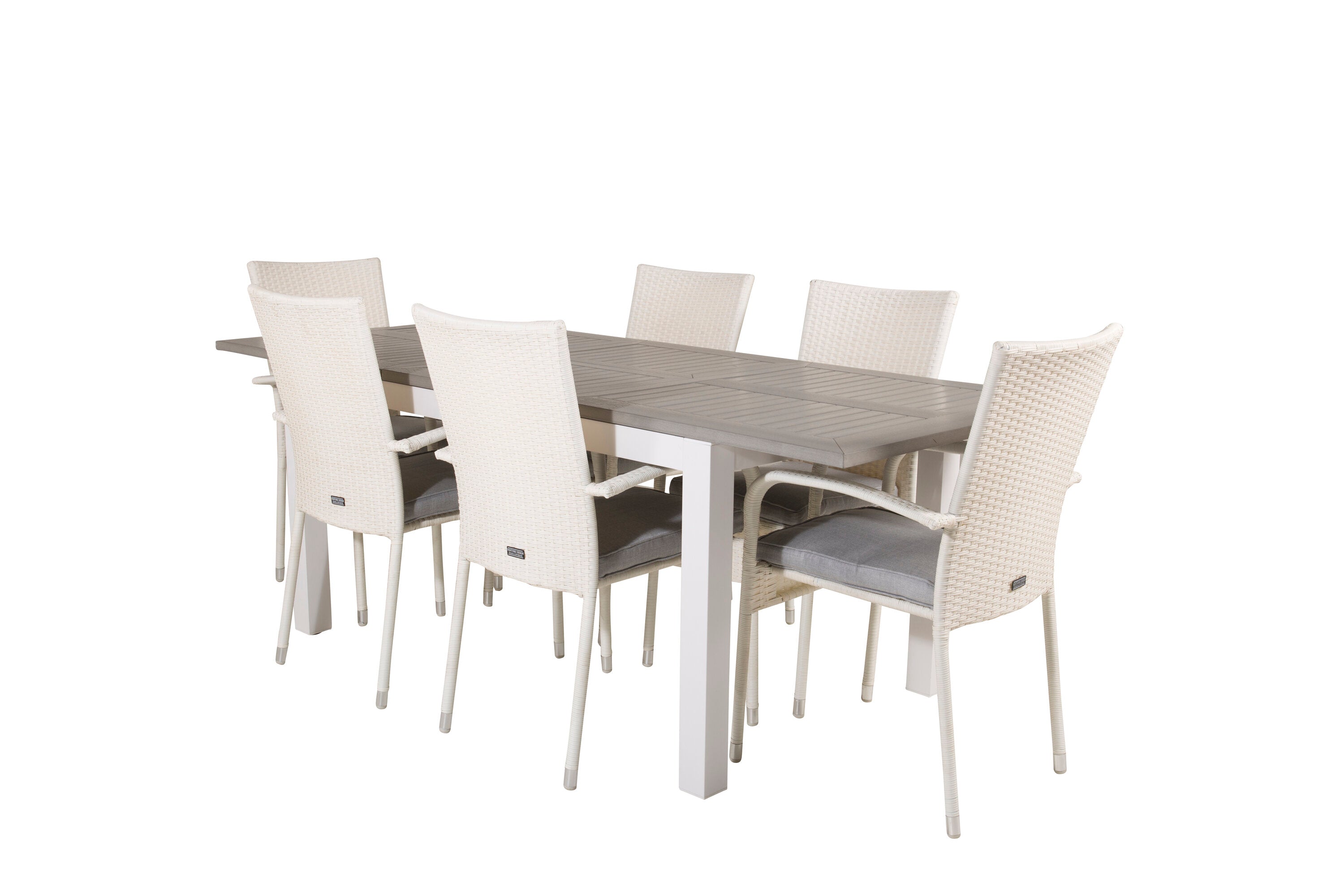 Skupina potravin, která se hodí do většiny prostředí! Náš rozkládací jídelní stůl Albany spolu se stylovými židlemi ze série Anna in white arts je jako dělaný pro ty, kteří chtějí na zahradě nebo ve venkovním prostoru vytvořit útulný a moderní pocit. Rozšiřte svá pozvání na večeři a vyhněte se obavám, že budou všichni ubytováni.