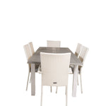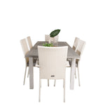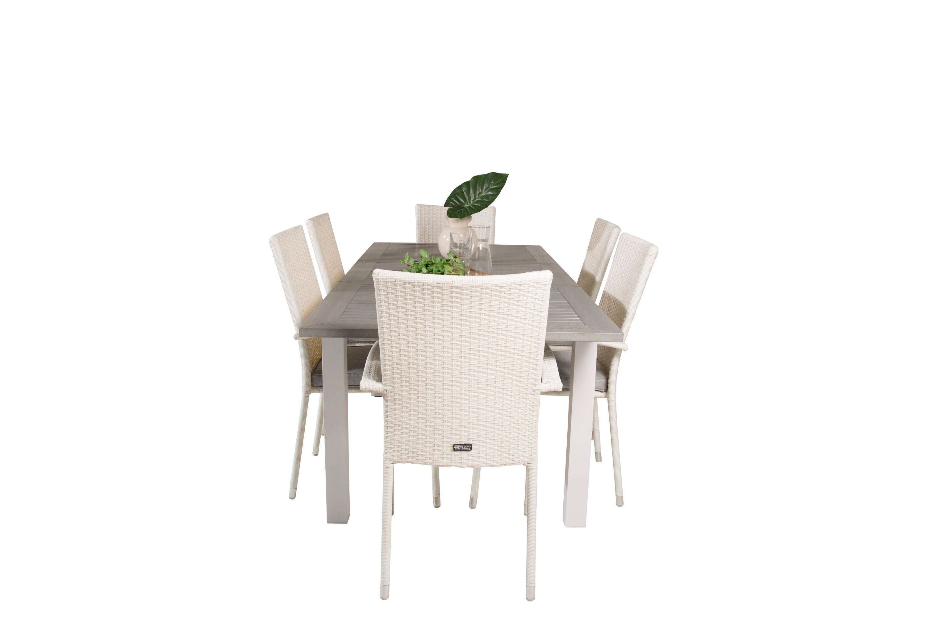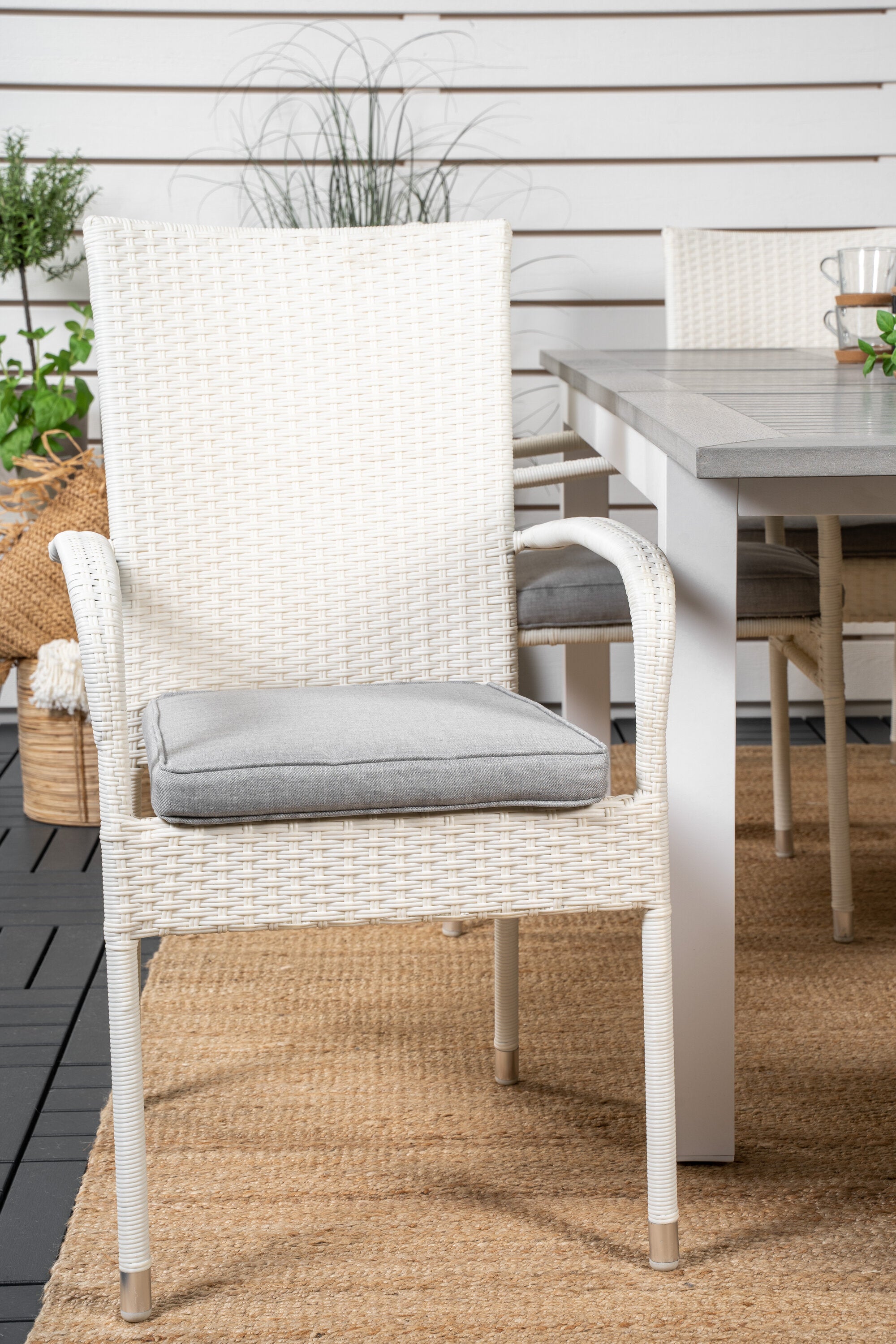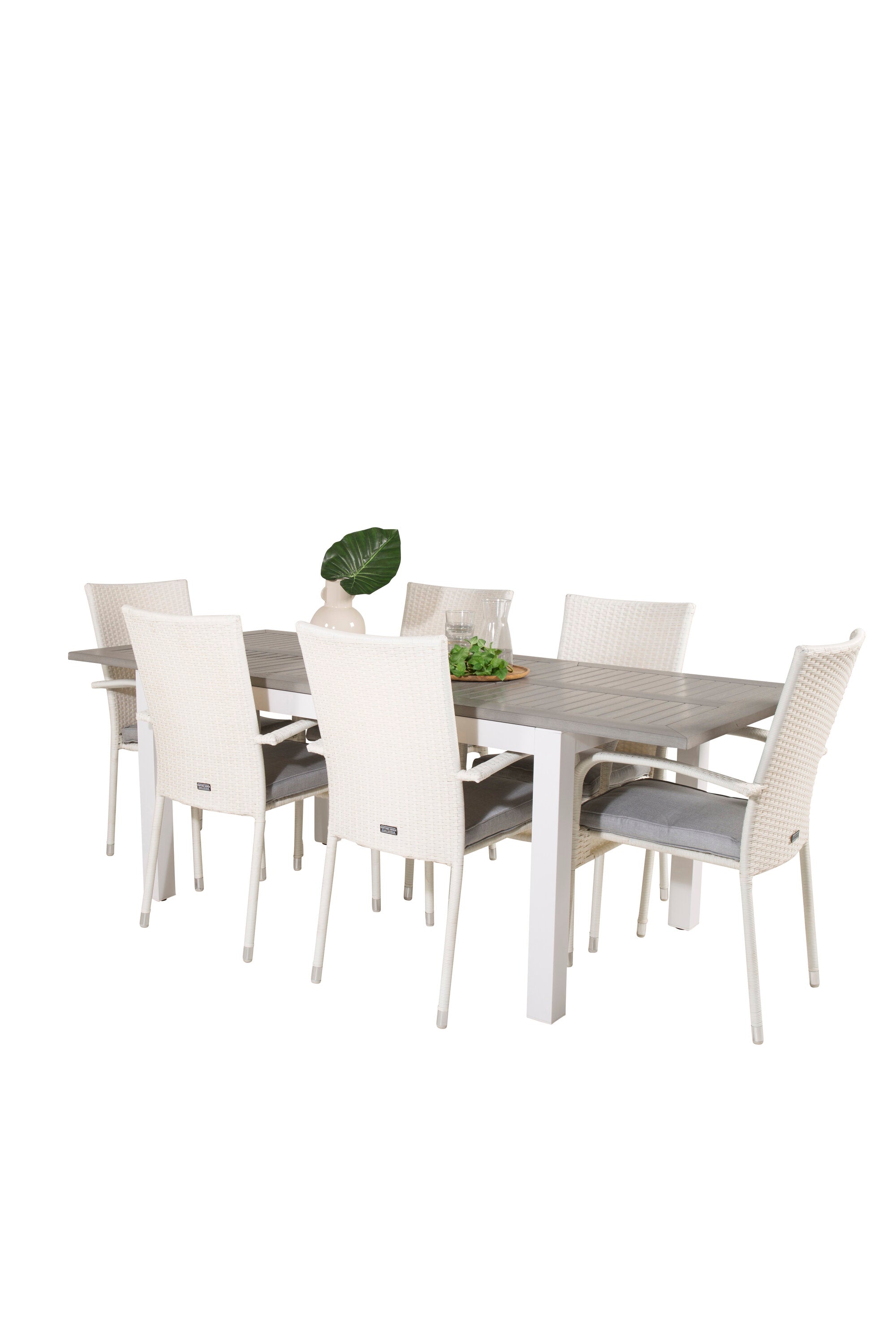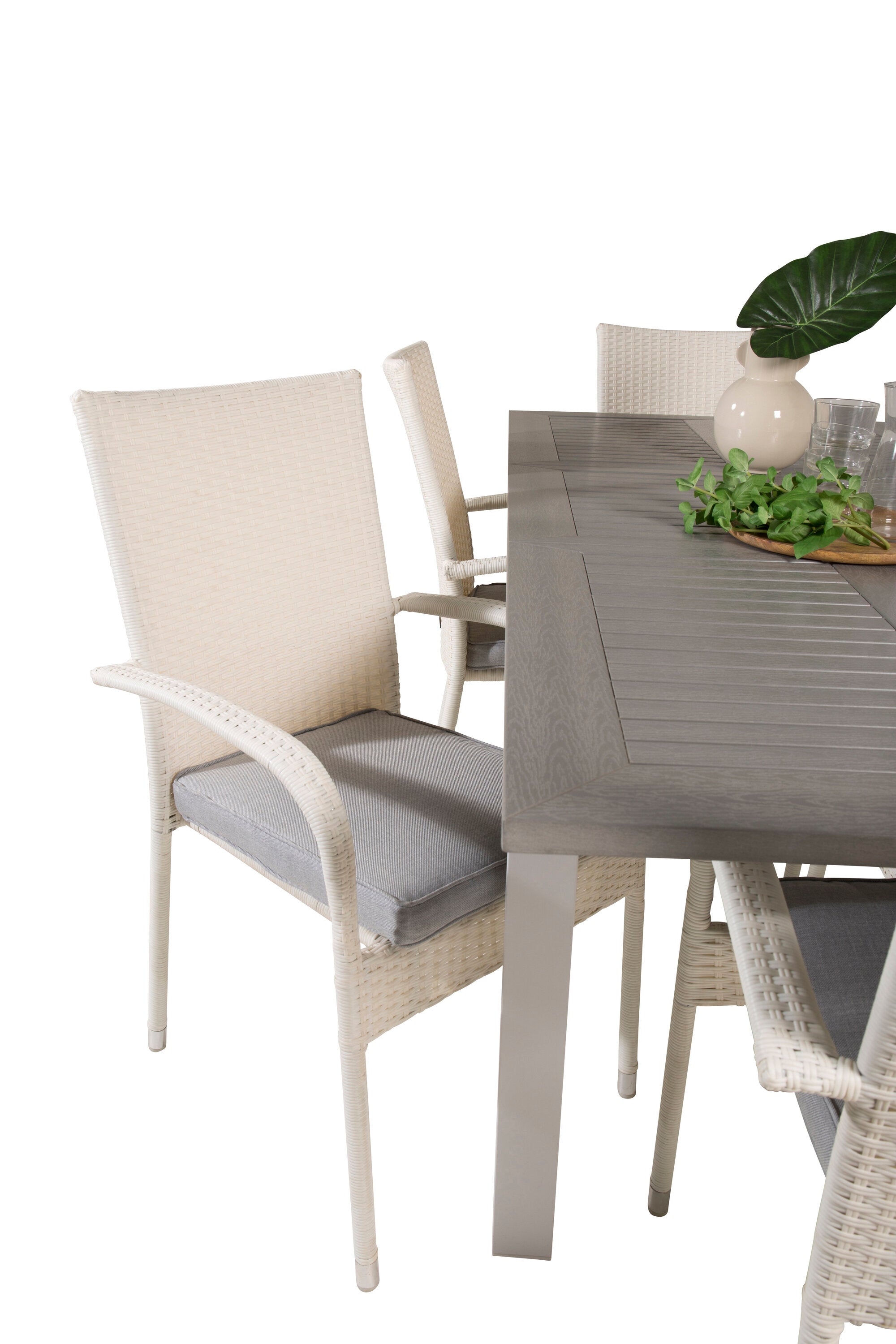 Skupina potravin, která se hodí do většiny prostředí! Náš rozkládací jídelní stůl Albany spolu se stylovými židlemi ze série Anna in white arts je jako dělaný pro ty, kteří chtějí na zahradě nebo ve venkovním prostoru vytvořit útulný a moderní pocit. Rozšiřte svá pozvání na večeři a vyhněte se obavám, že budou všichni ubytováni.