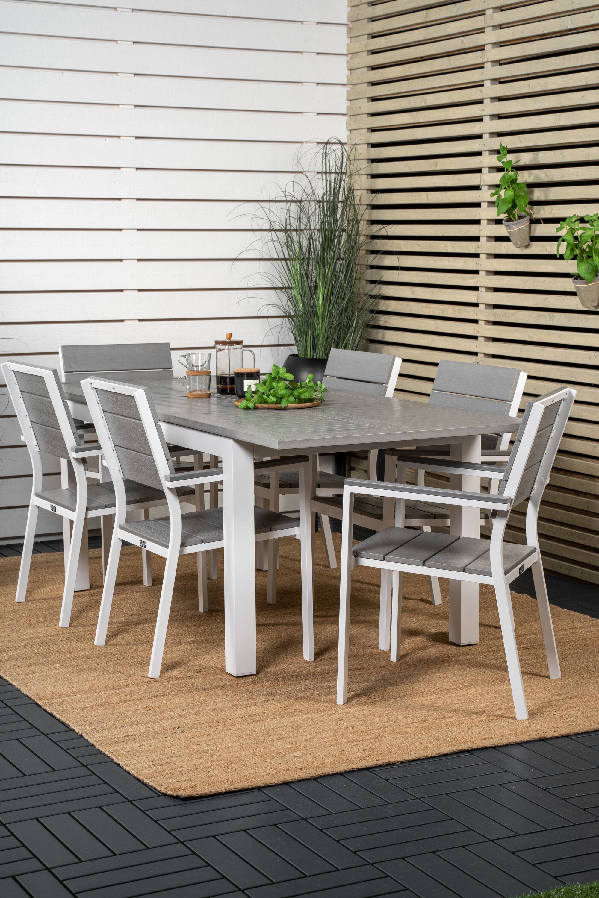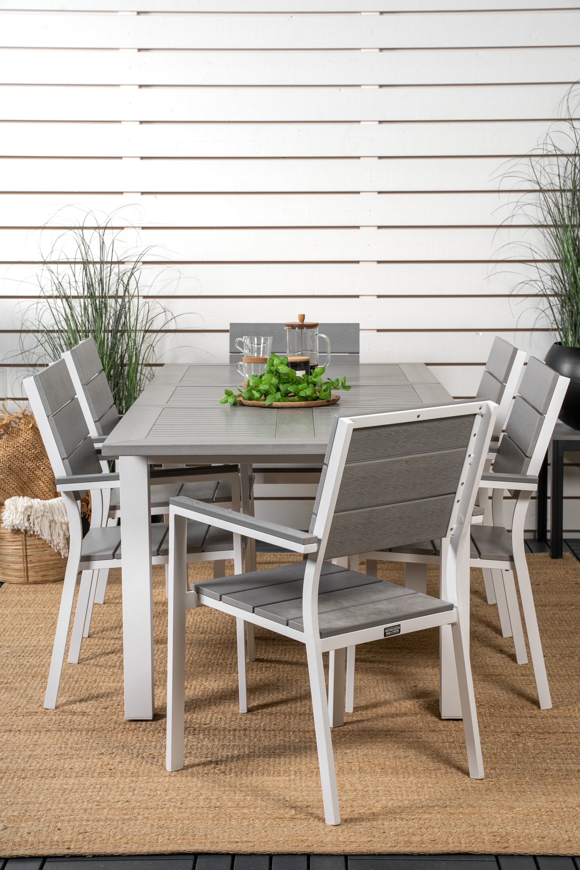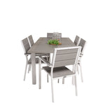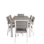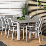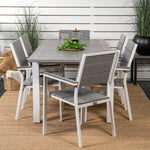 Módní skupina jídel v lahodných odstínech šedi nikdy nezmizí! Zařiďte si terasu jídelním stolem Albany v klasickém stylu spolu se stylovými jídelními židlemi ze série Levels. Nechte terasu charakterizovat vaši novou poutavou skupinu jídel, která pojme místo pro všechny blízké!