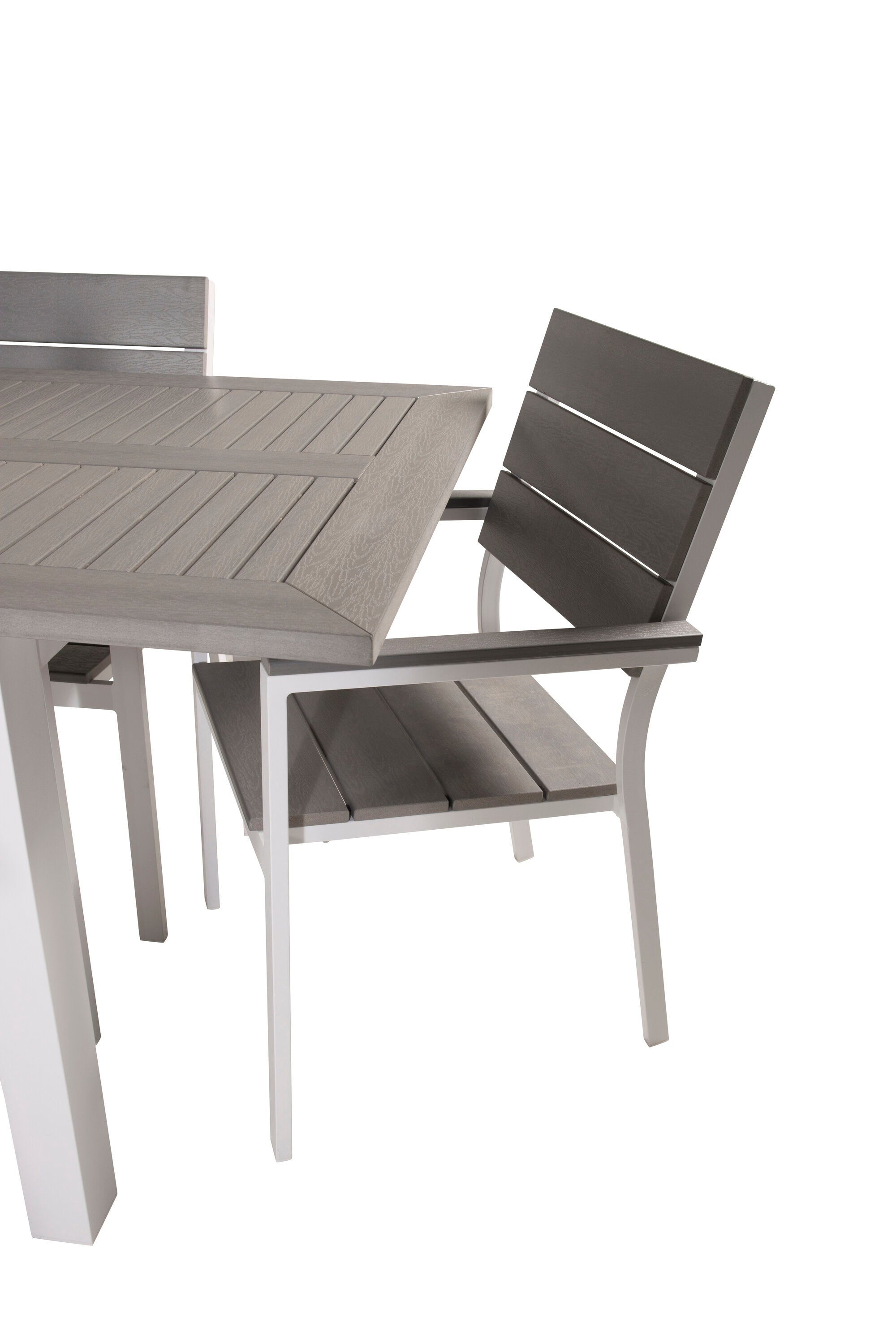 Jídelní stůl Albany 152/210*90 - Bílá Alu / Šedá židle Aintwood+Levels (stohovatelné) - Bílá Alu / Šedá Aintwood_6