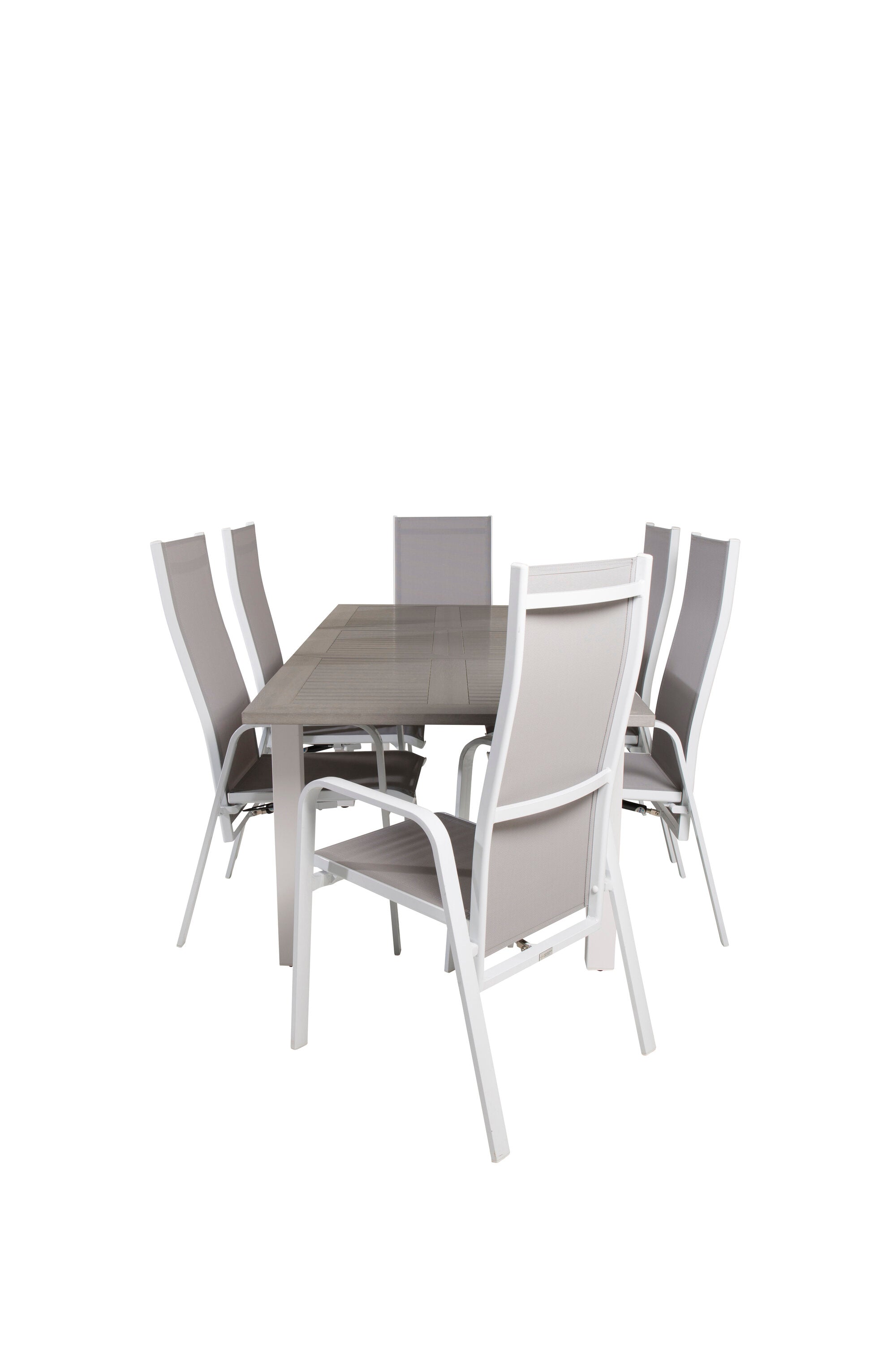 Jídelní stůl Albany 160/240*100 - Bílá Alu / Šedá Aintwood+Copacabana Polohovací křeslo (stohovatelné) - Bílá Alu / Šedá Textilene_6