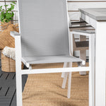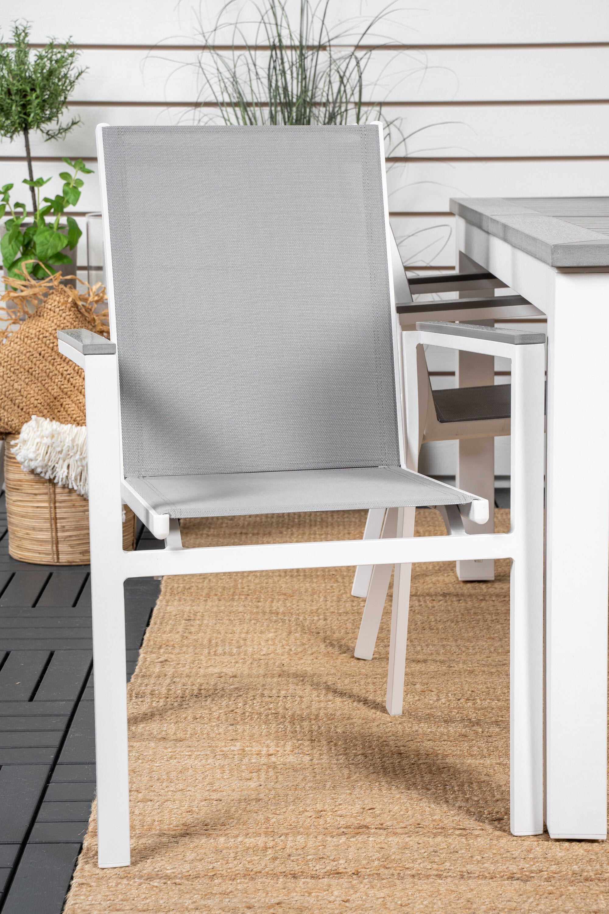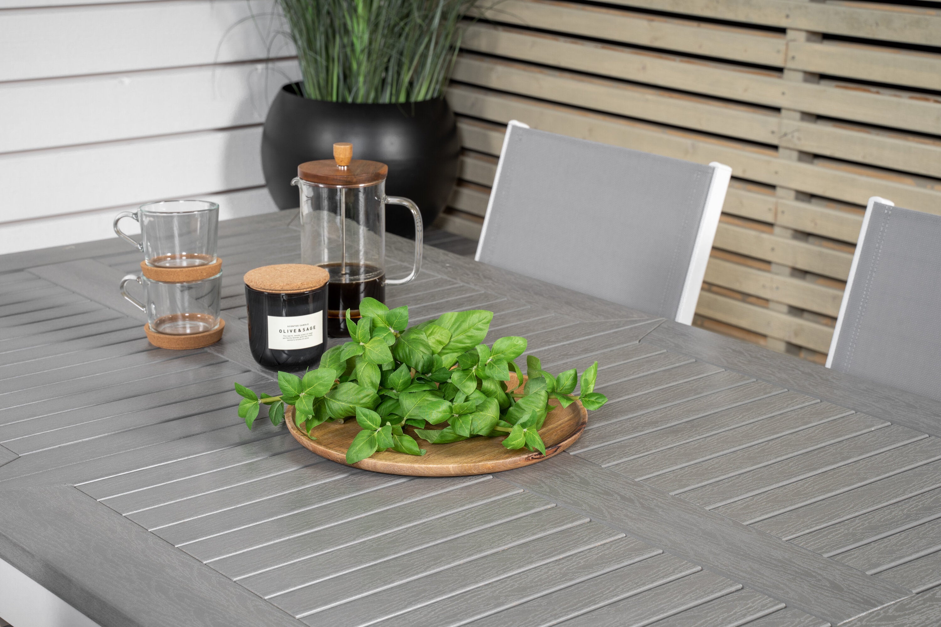 Naše stylové jídelní židle Parma vhodné k sezení v kombinaci s jídelním stolem Albany se hodí do většiny venkovních prostor. Stůl se spoustou místa pro večeři a společenský život. Nábytek pro zlatou hranu na zahradě - mělo by to být příjemné vyjít ven!