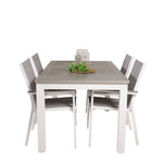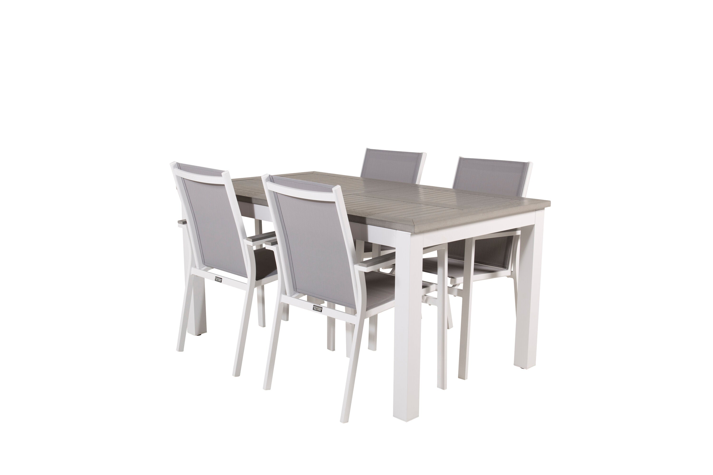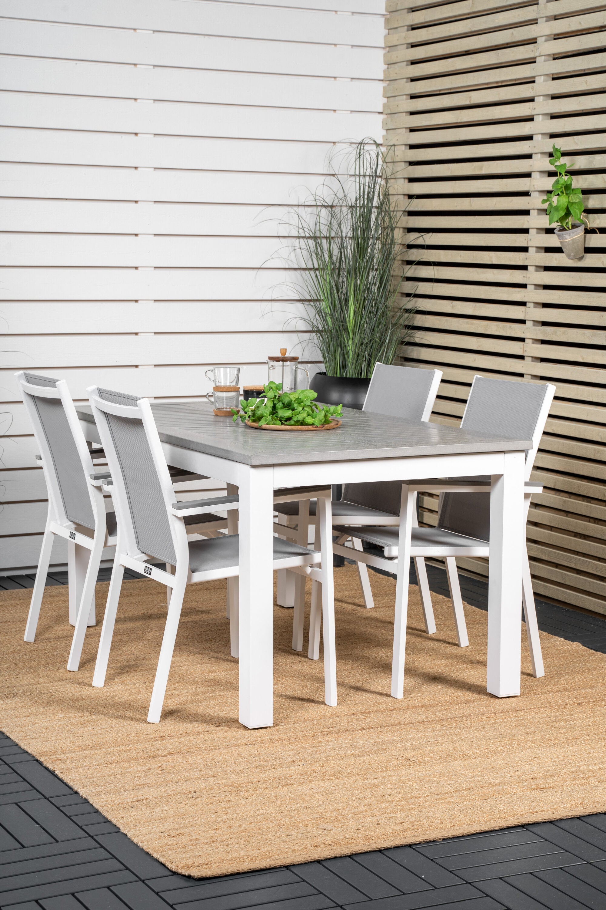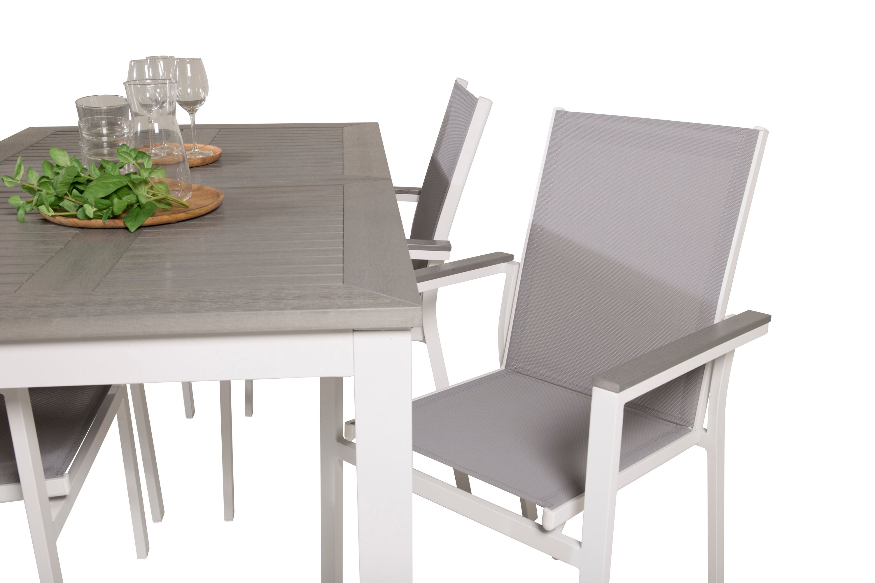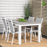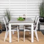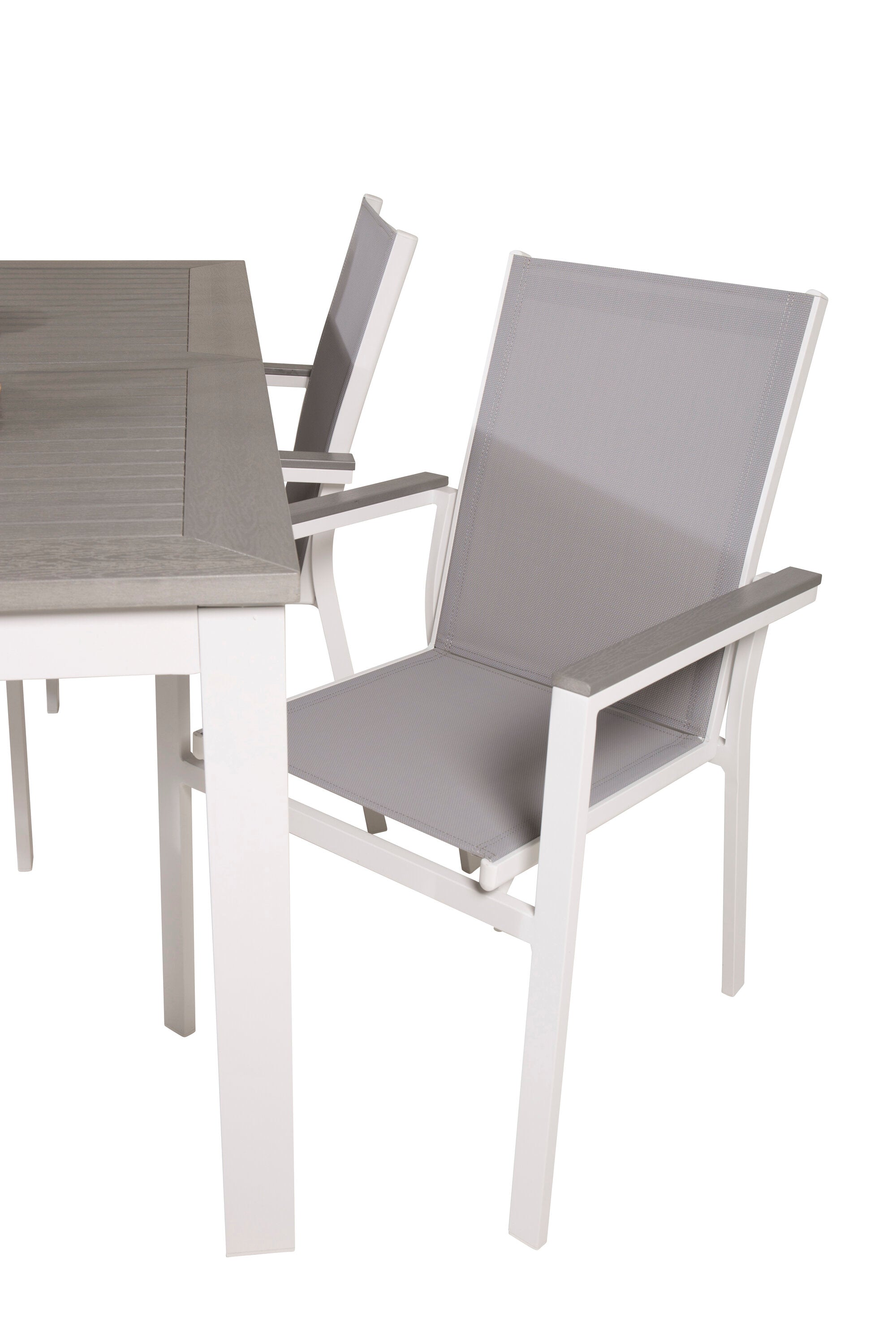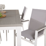 Jídelní stůl Albany 160/240*100 - Bílá Alu / Šedá Aintwood + křeslo Parma (sta