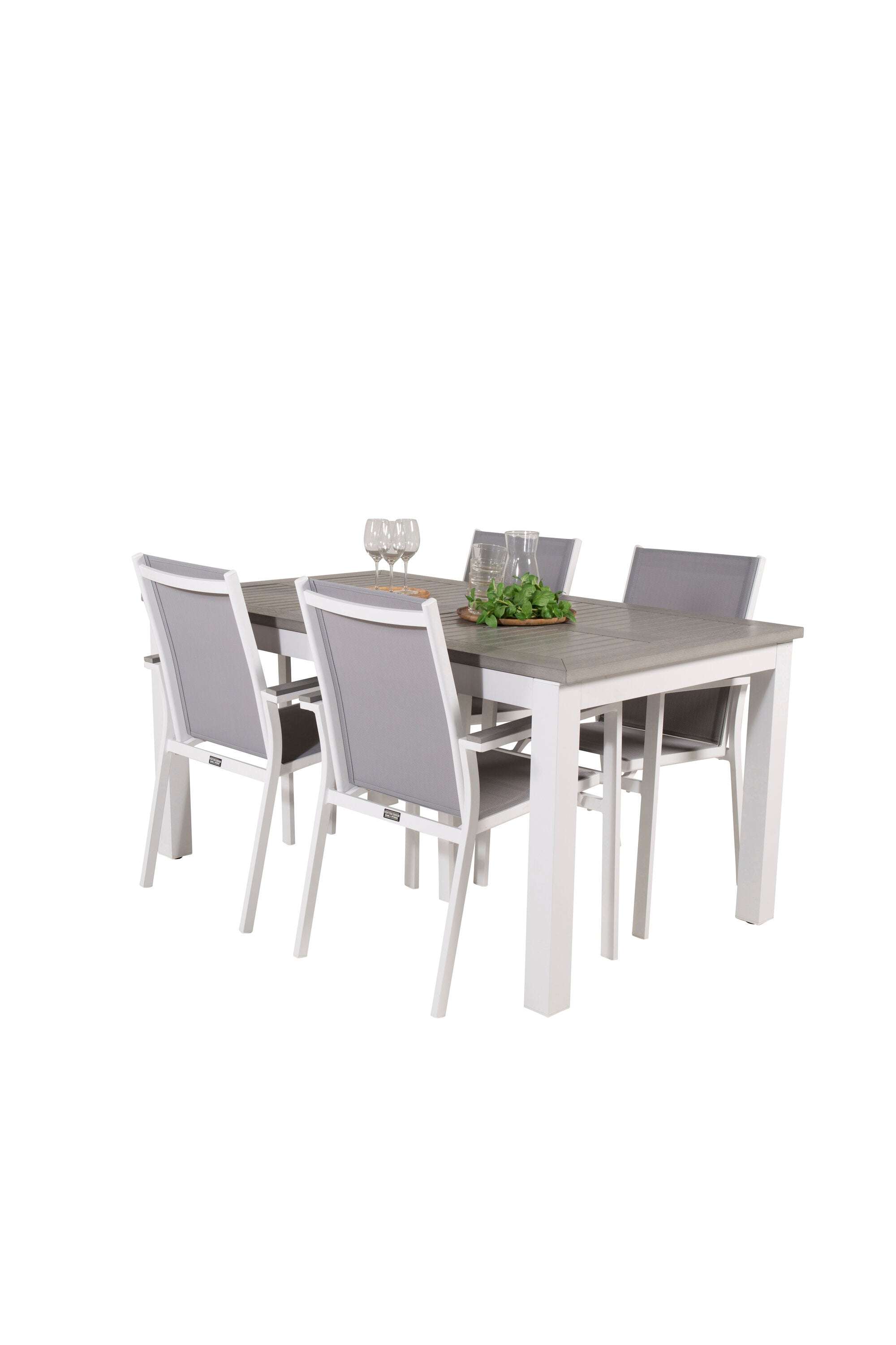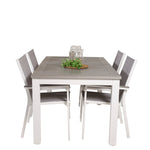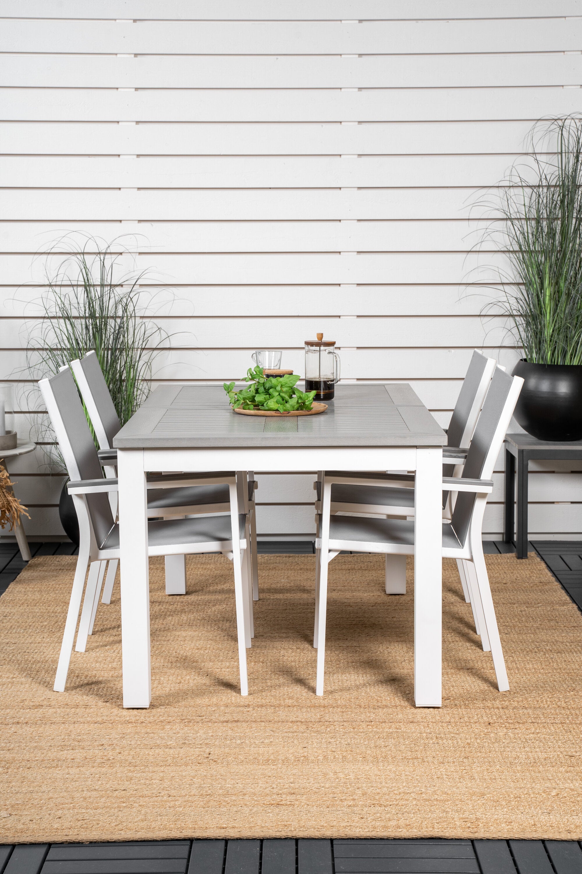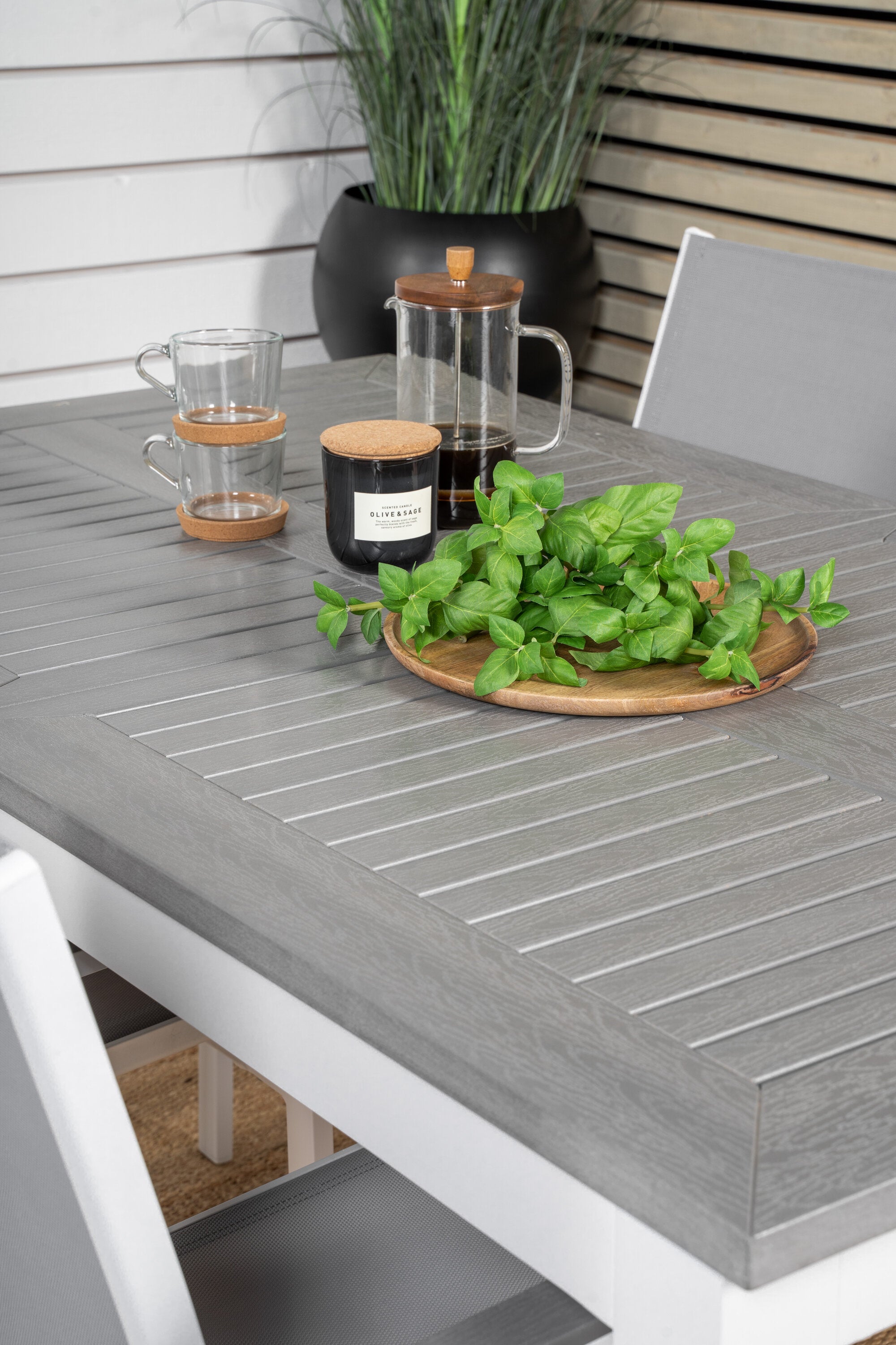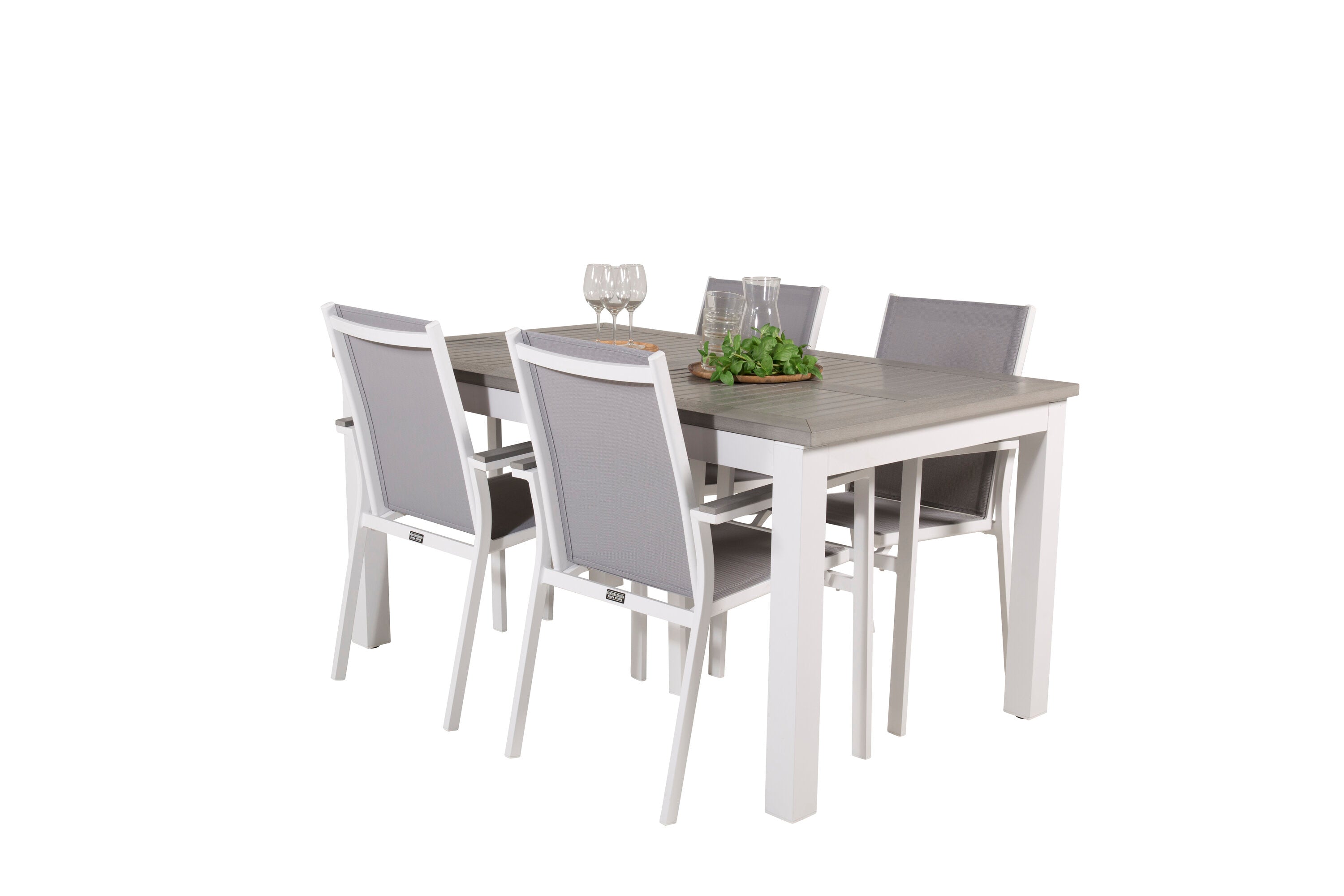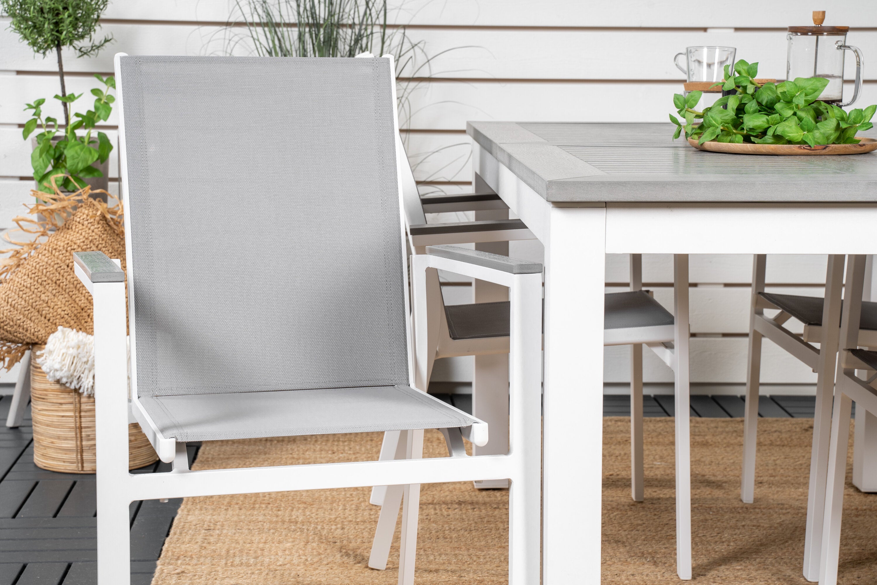 Jídelní stůl Albany 160/240*100 - Bílá Alu / Šedá Aintwood + křeslo Parma (sta