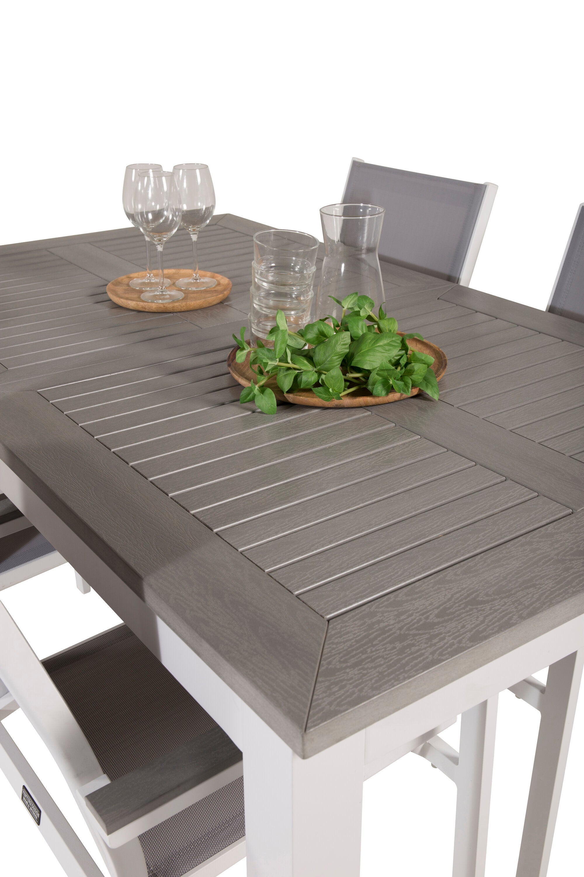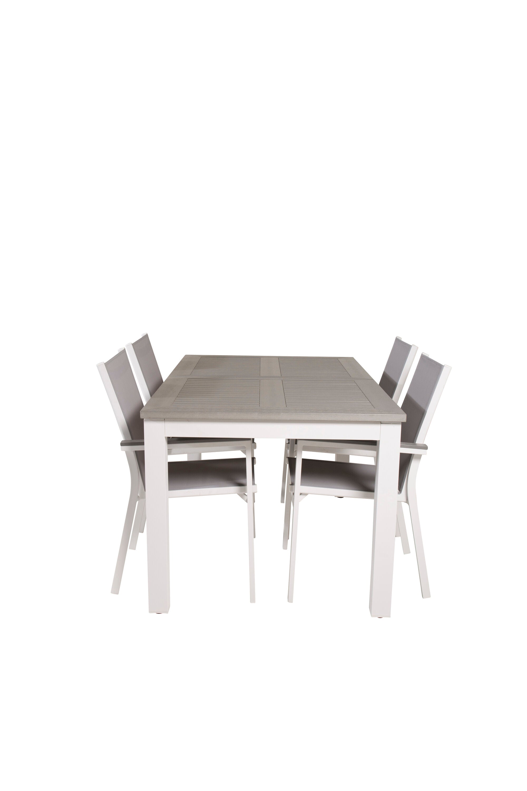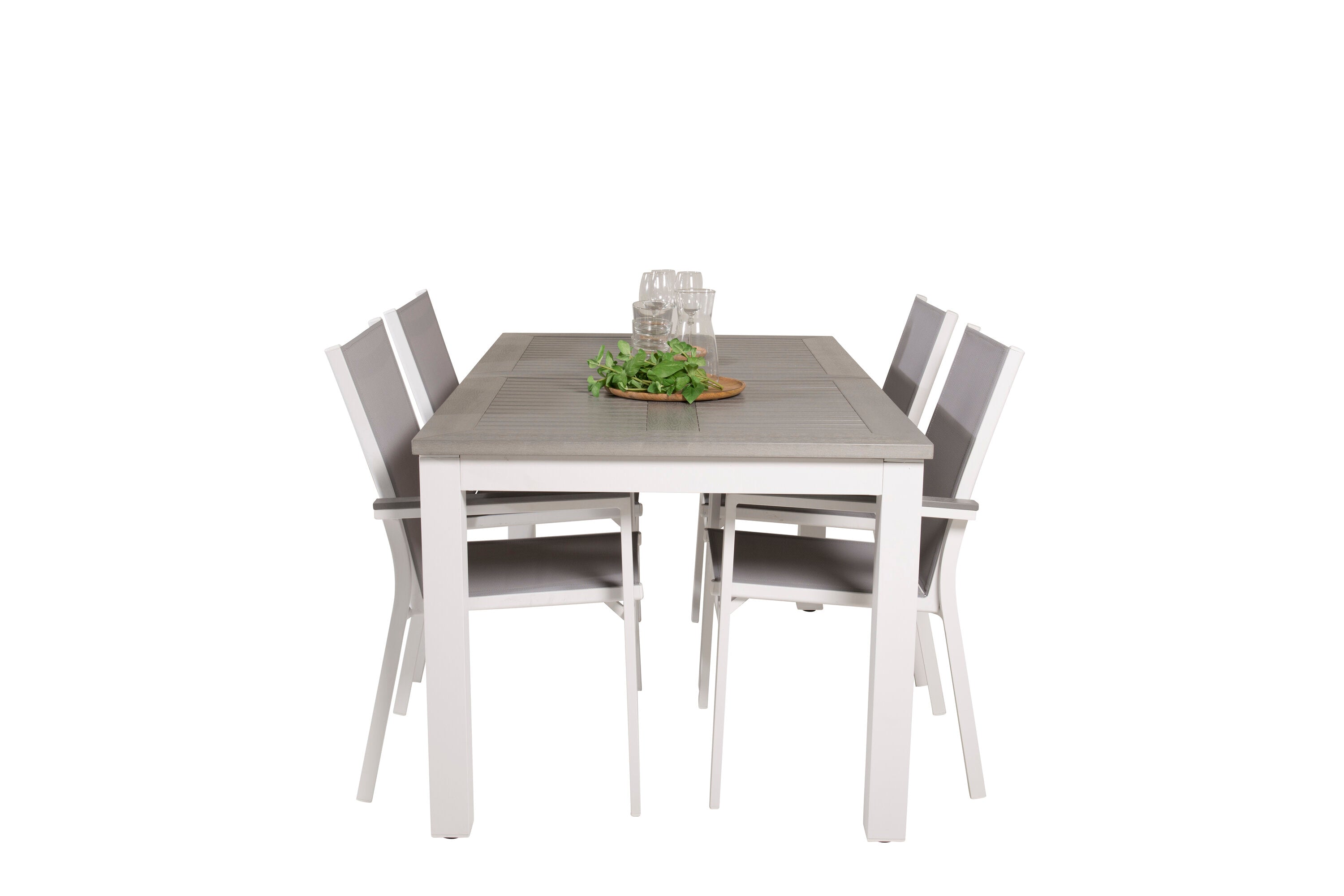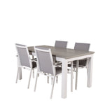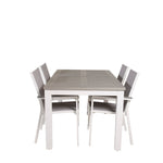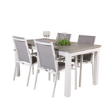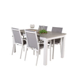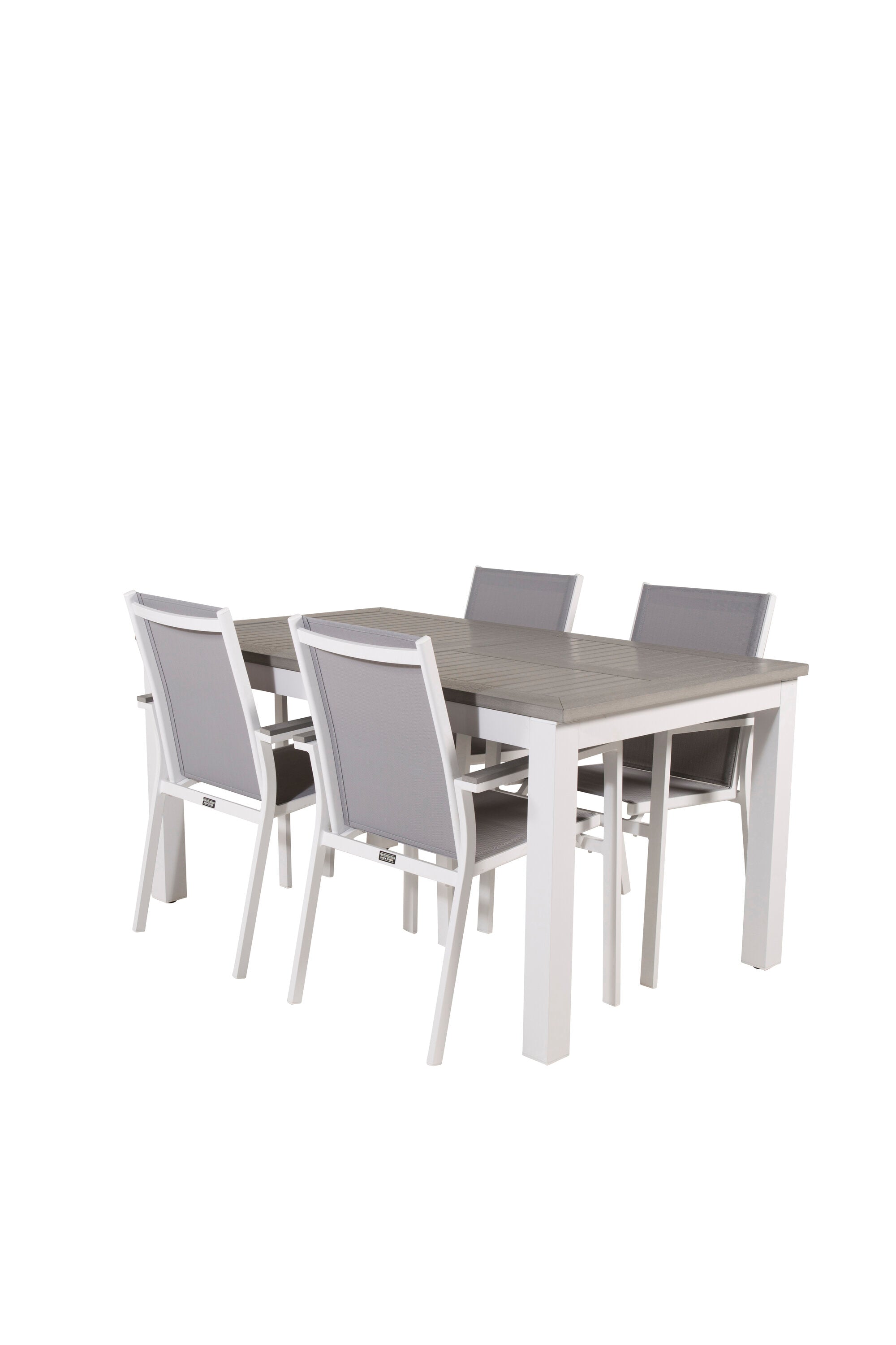 Jídelní stůl Albany 160/240*100 - Bílá Alu / Šedá Aintwood + křeslo Parma (sta