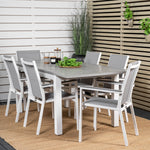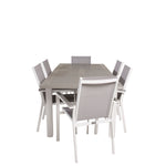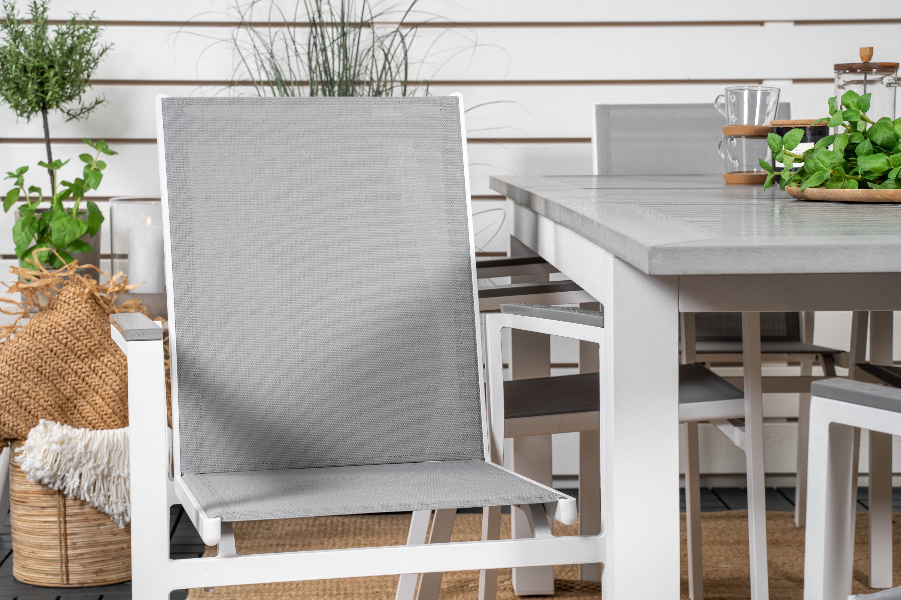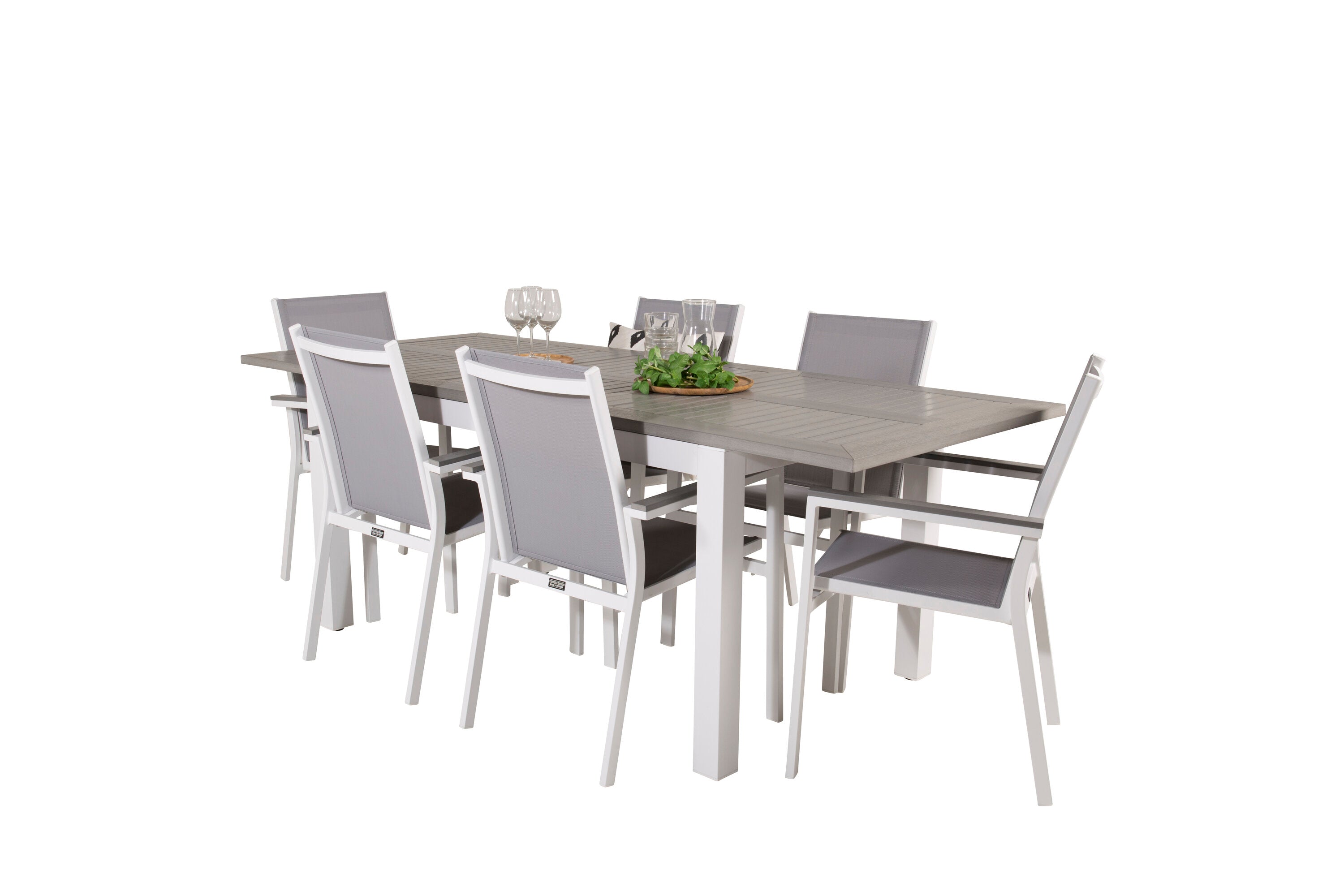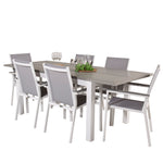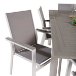 Jídelní stůl Albany 160/240*100 - Bílá Alu / Šedá Aintwood + křeslo Parma (sta