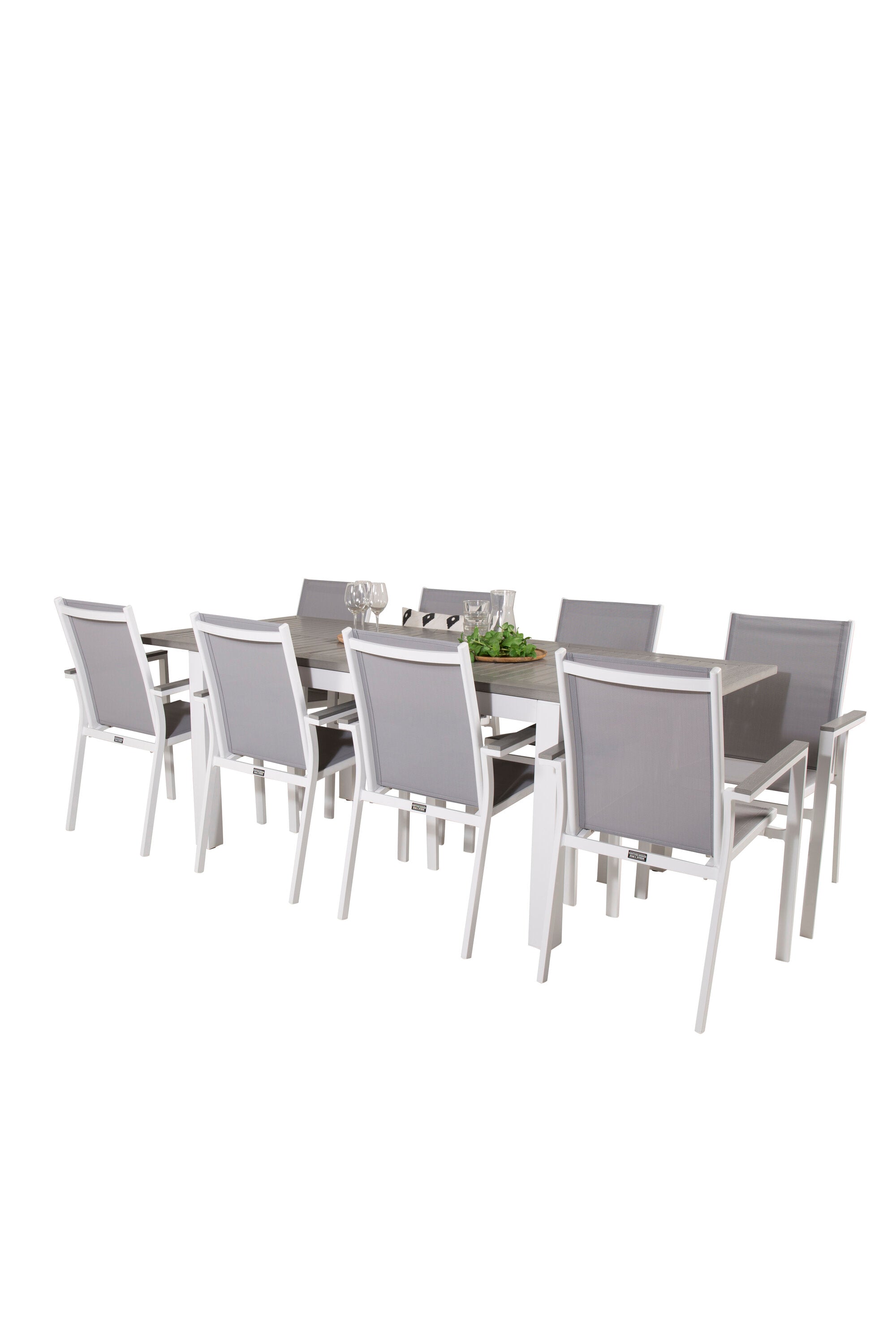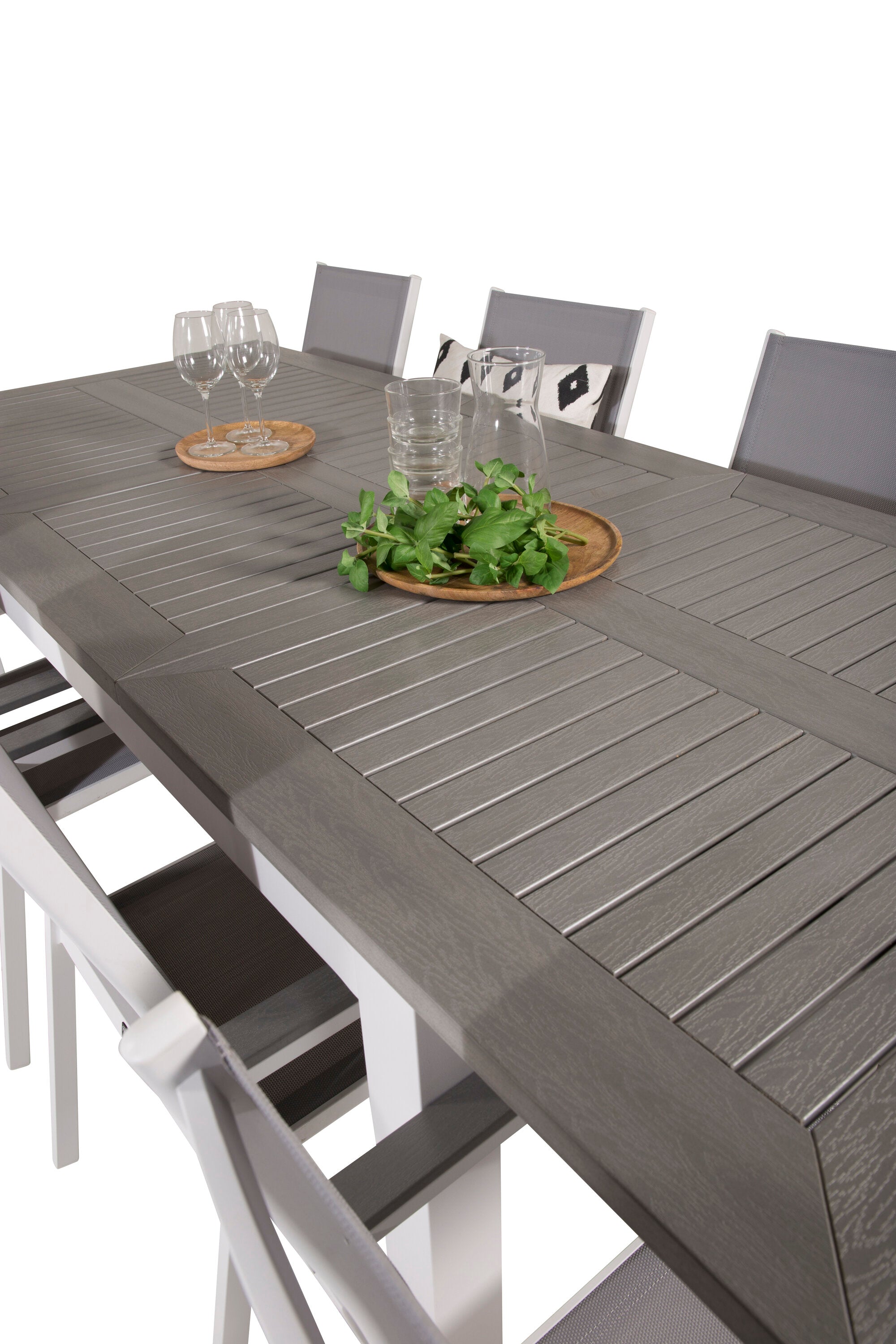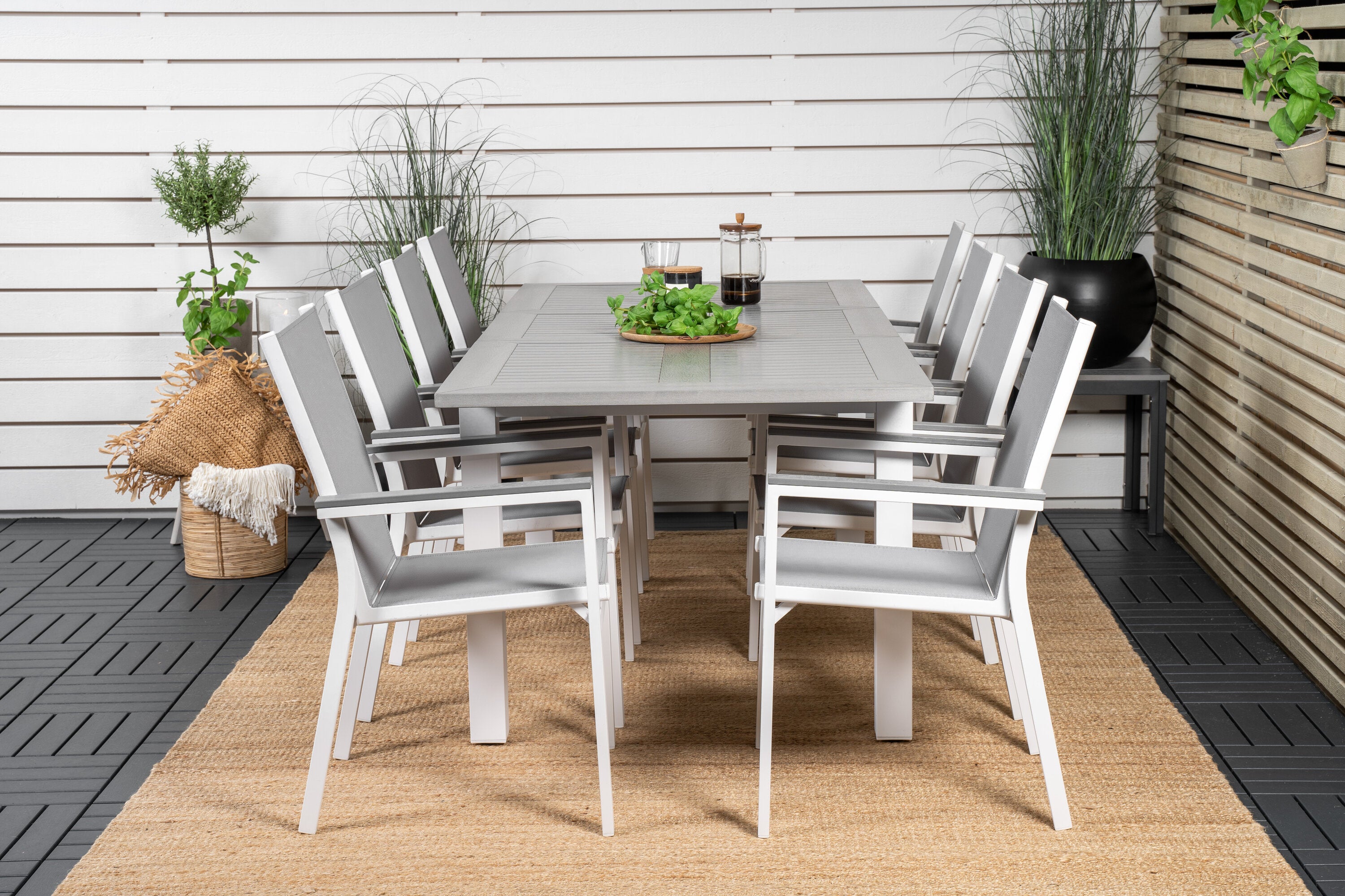 Moderní a útulné! Jídelní stůl Albany s možností prodloužení spolu s jídelními židlemi Panama vám poskytne pěknou sestavu jídel do venkovního prostoru. Kombinace, která se hodí na každou terasu!