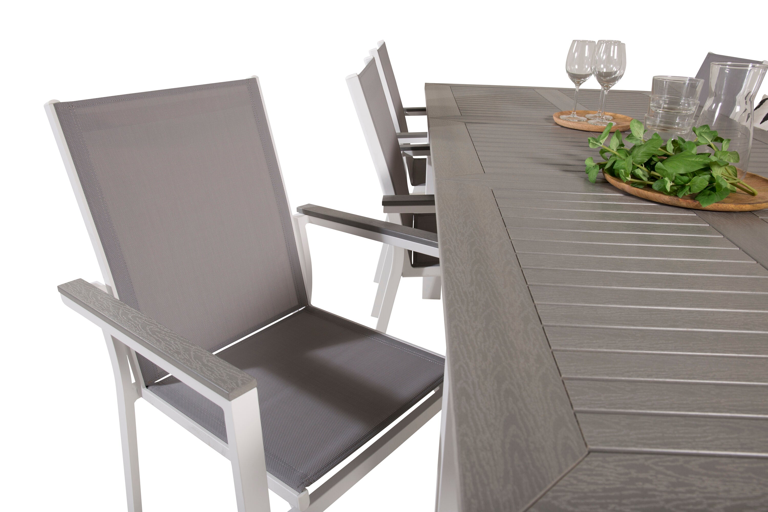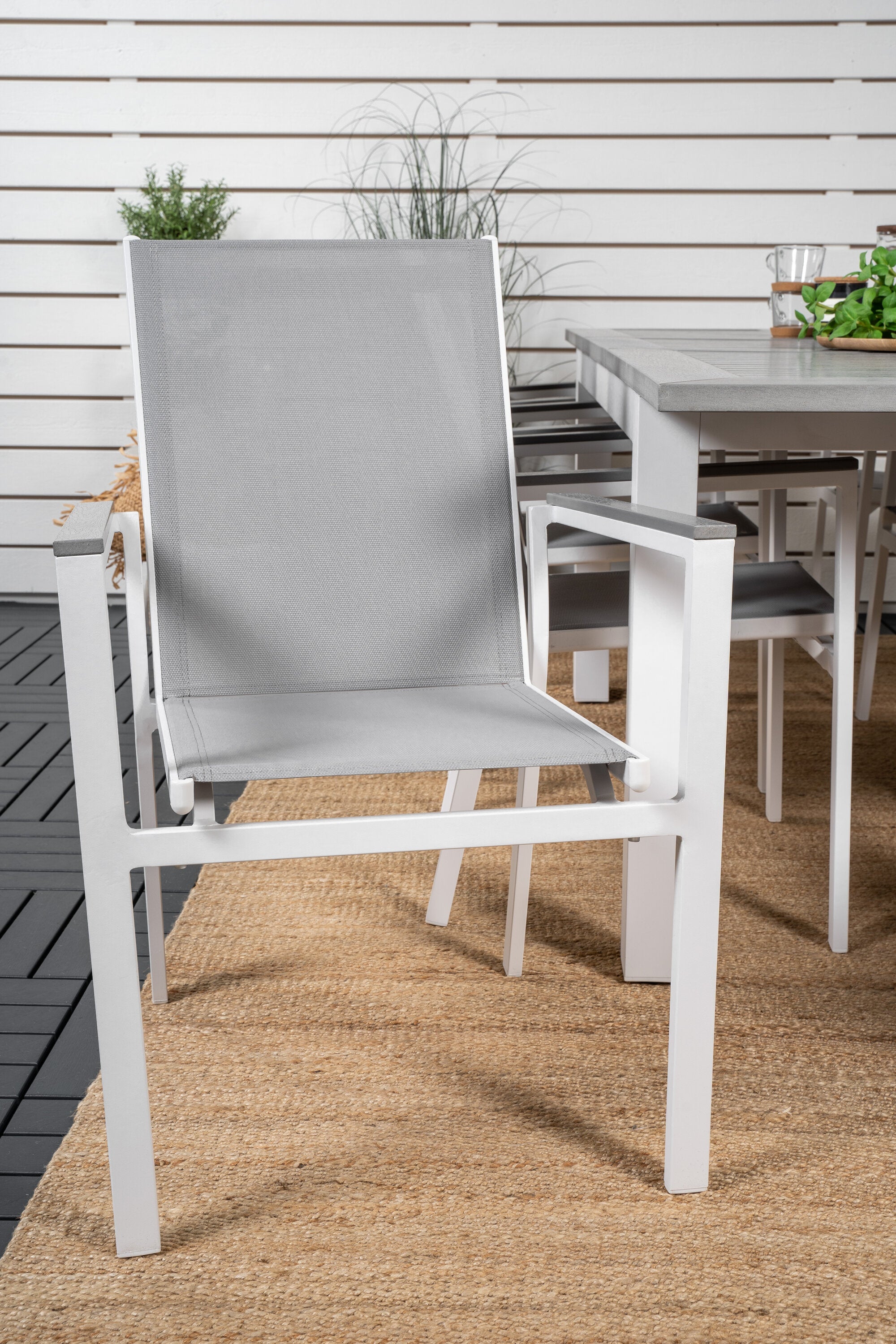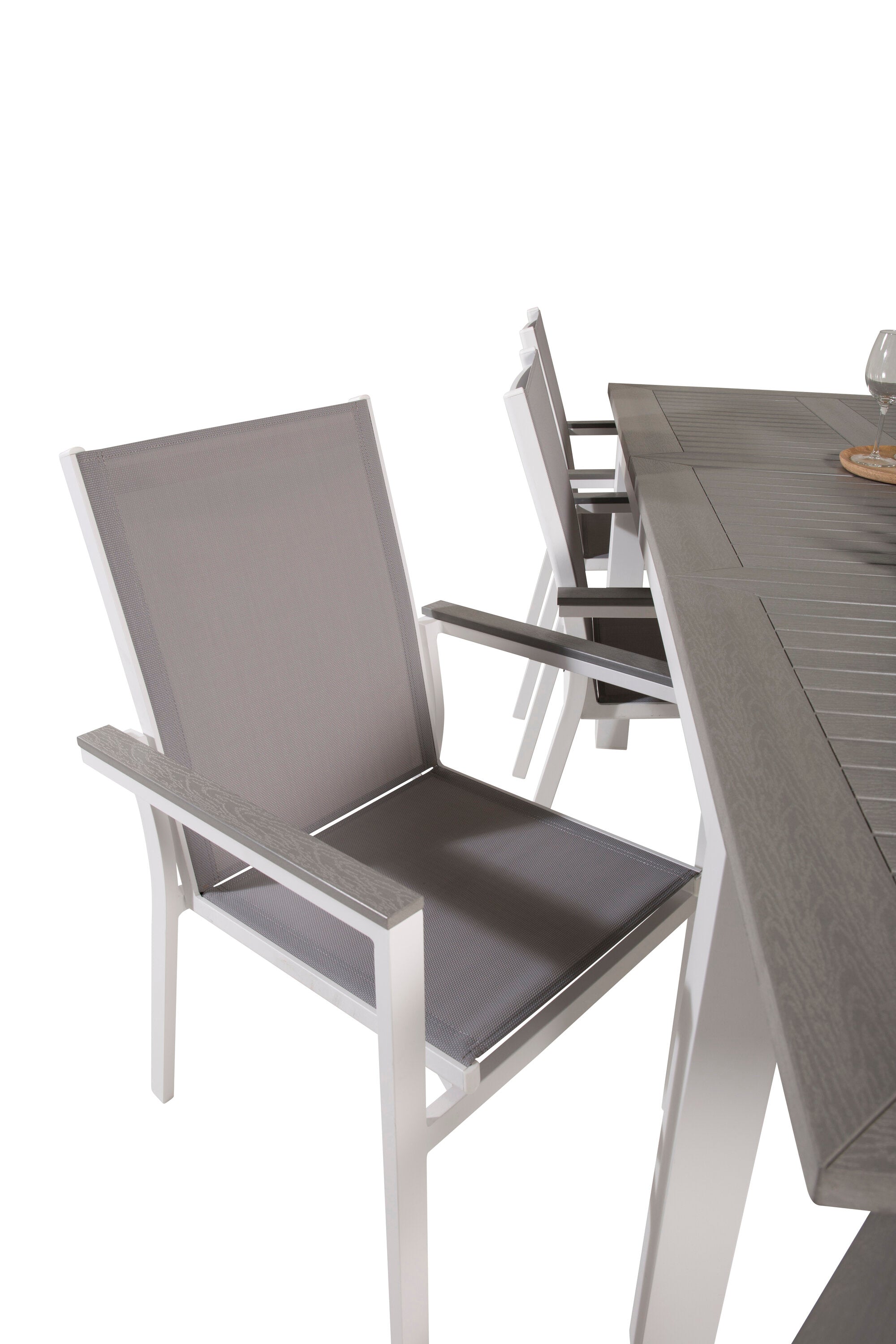 Jídelní stůl Albany 160/240*100 - Bílá Alu / Šedá Aintwood + křeslo Parma (sta