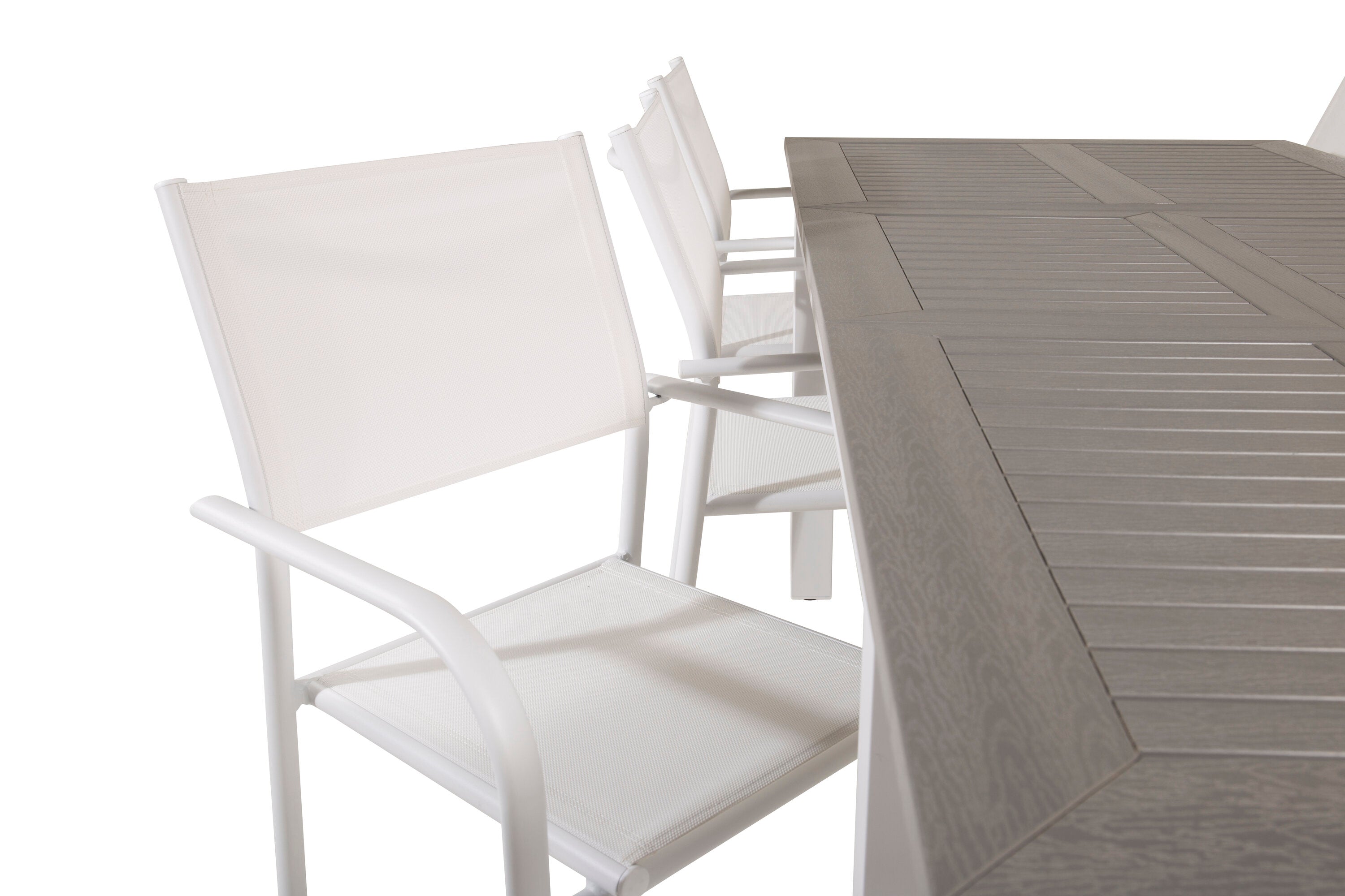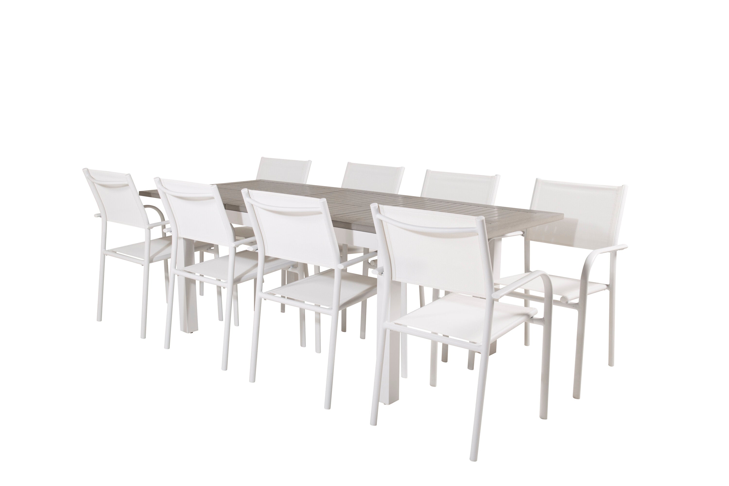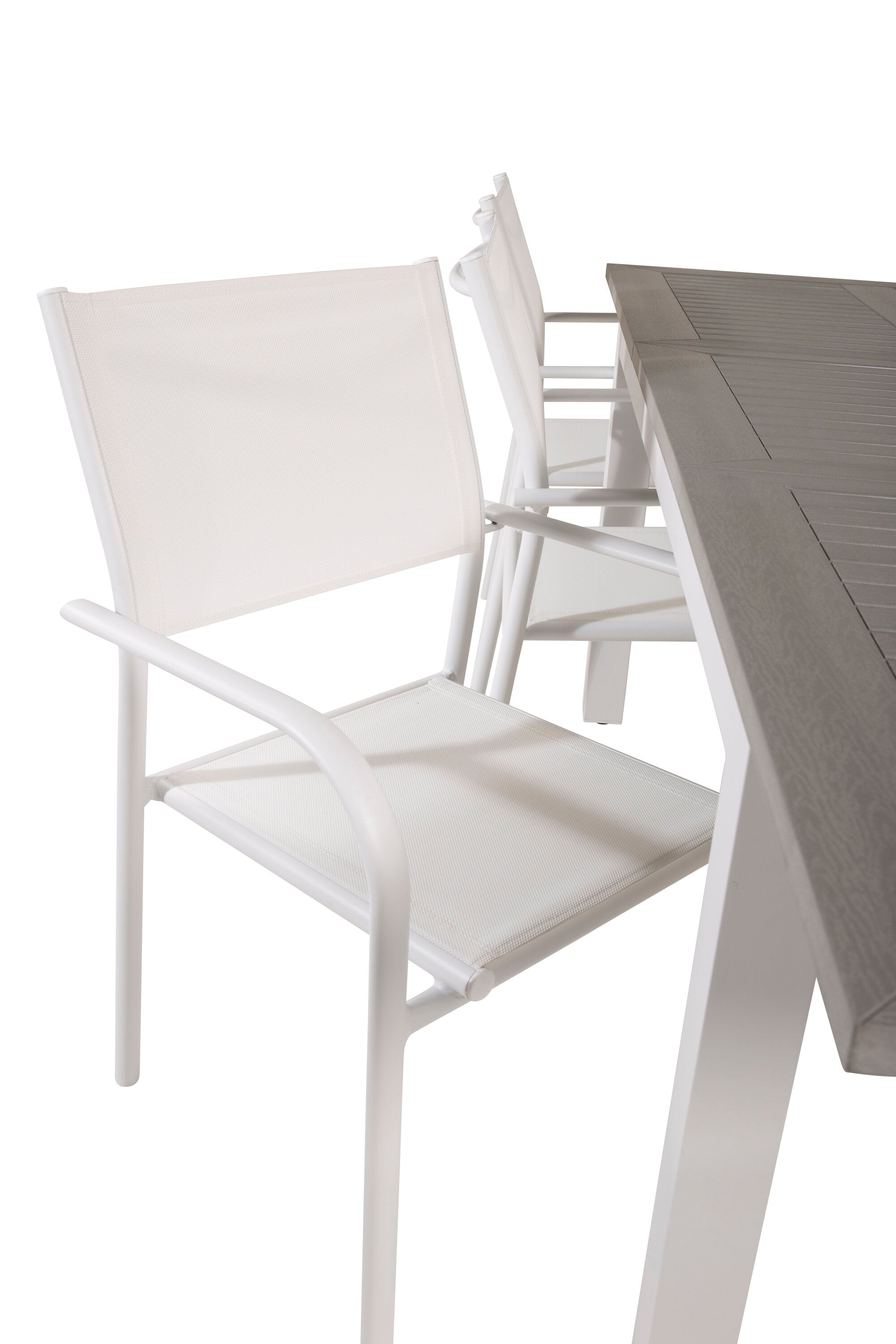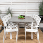 Jídelní stůl Albany 160/240*100 - Bílá Alu / Šedá Aintwood + křeslo Santorini