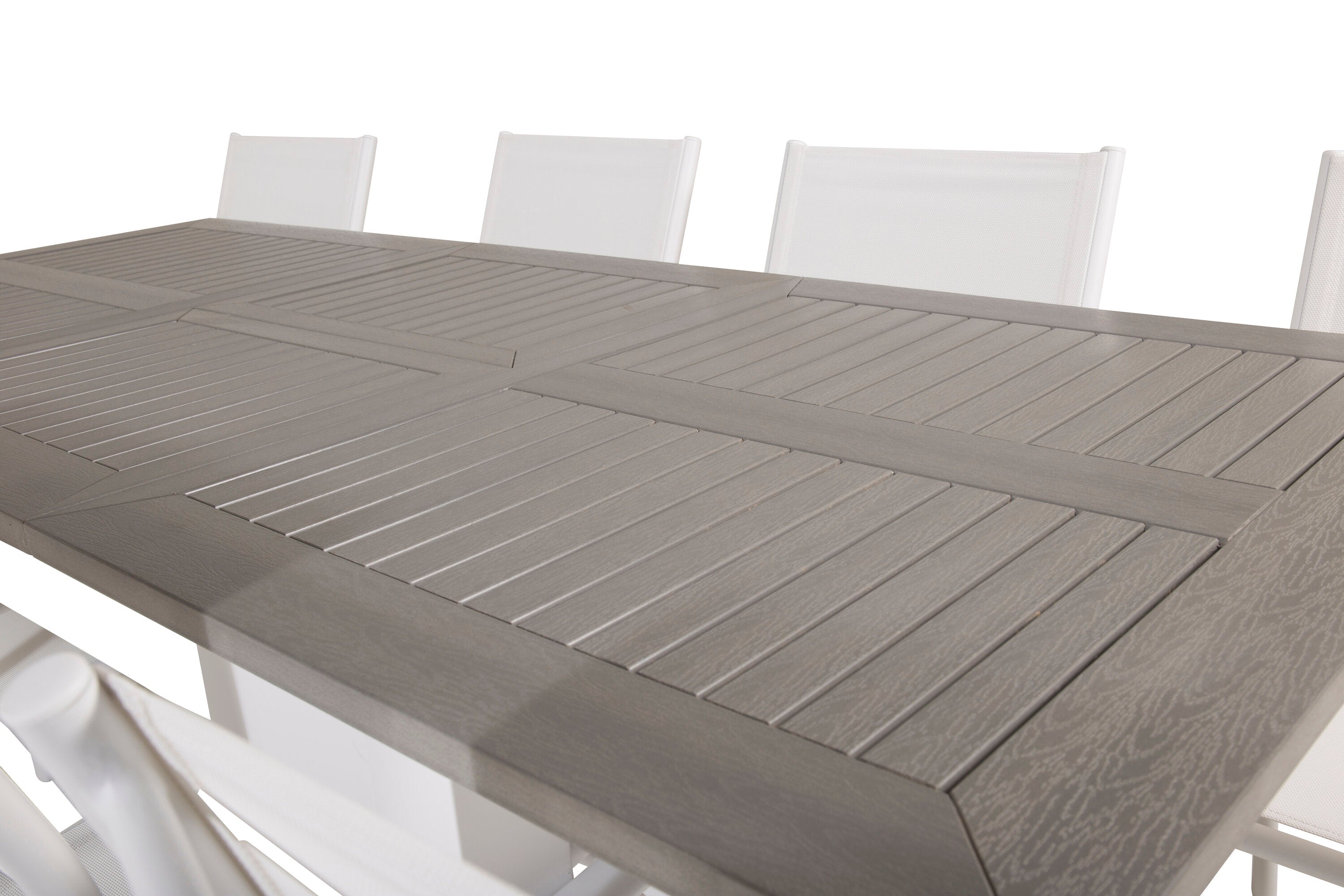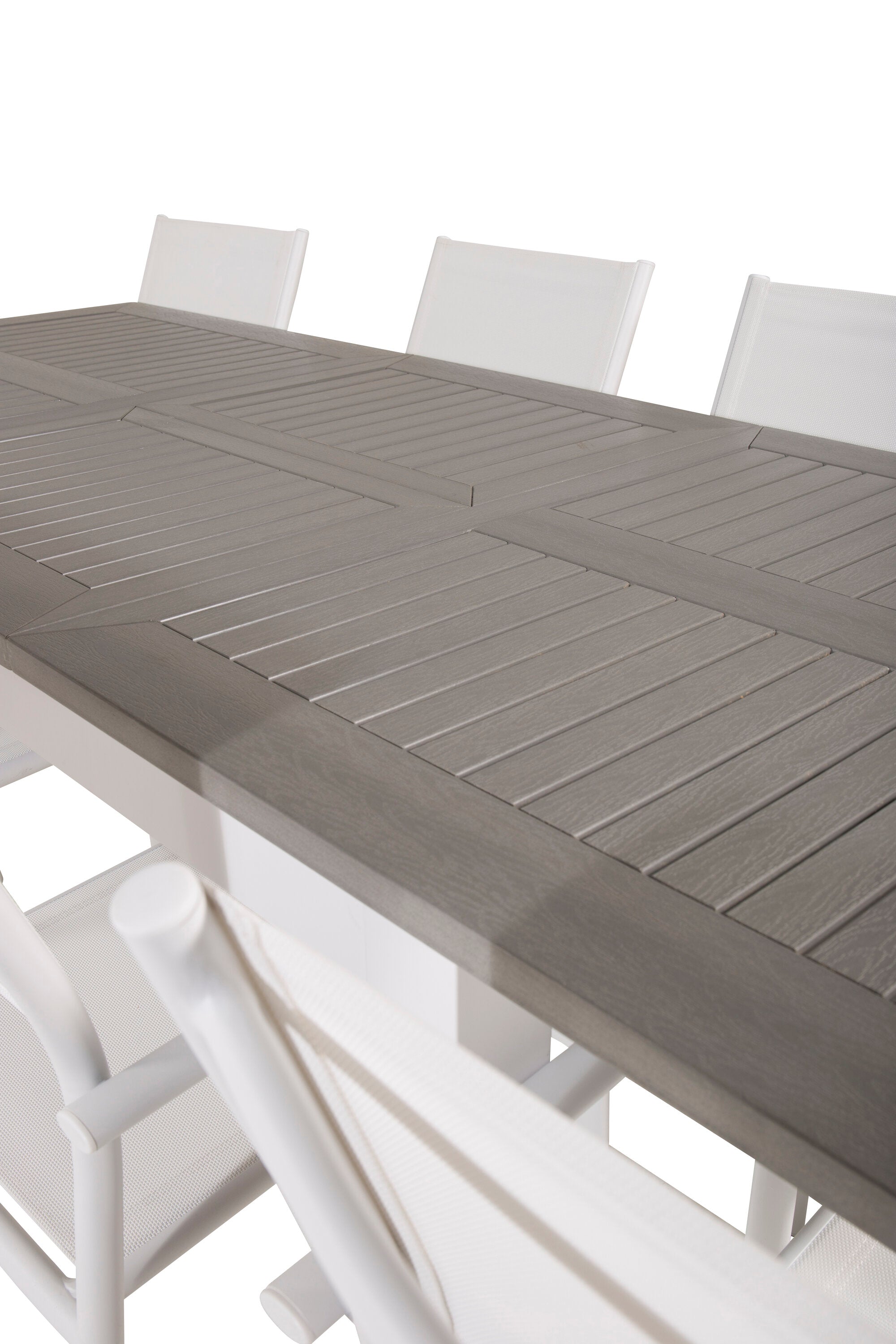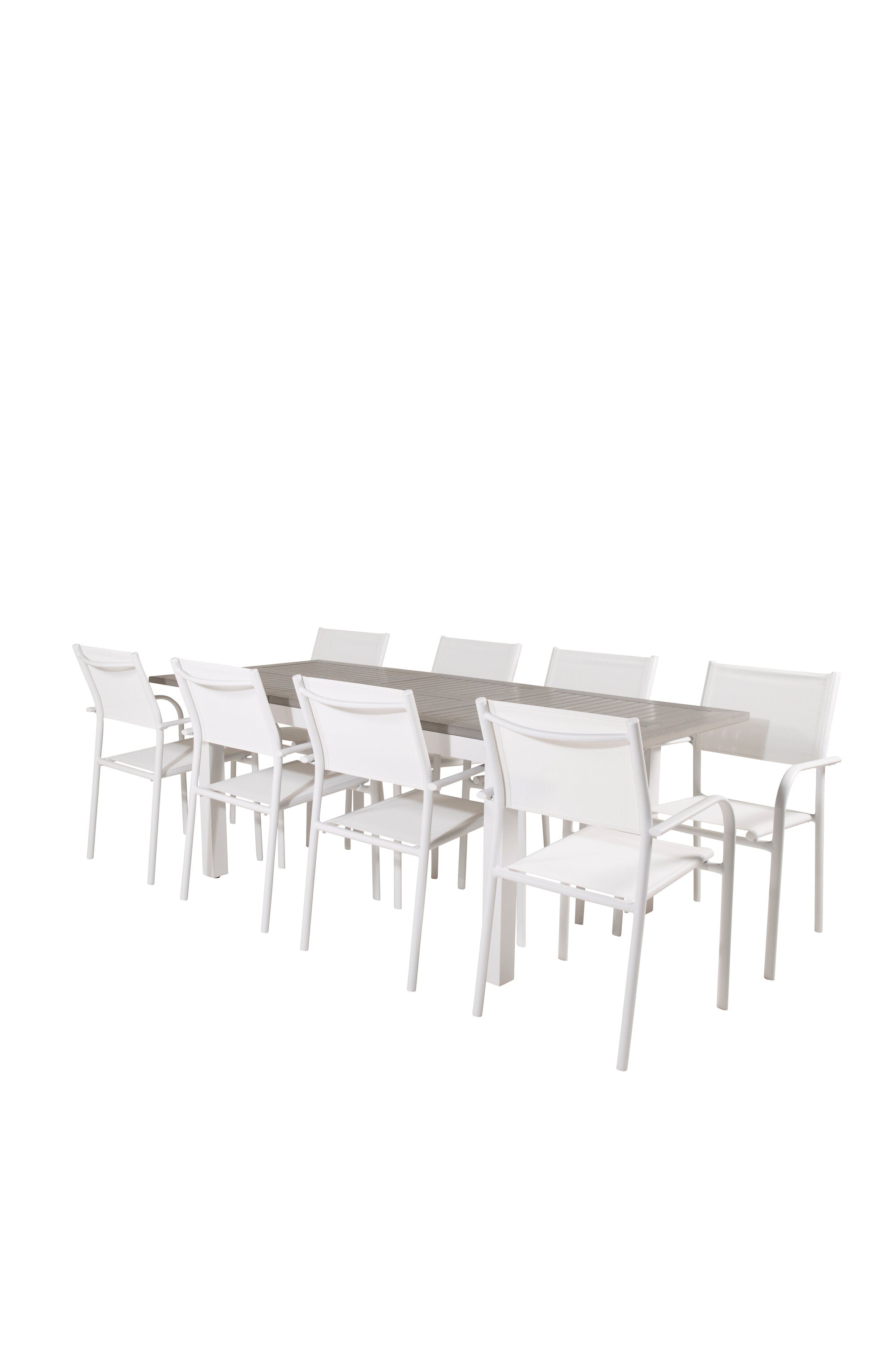 Jídelní stůl Albany 160/240*100 - Bílá Alu / Šedá Aintwood + křeslo Santorini