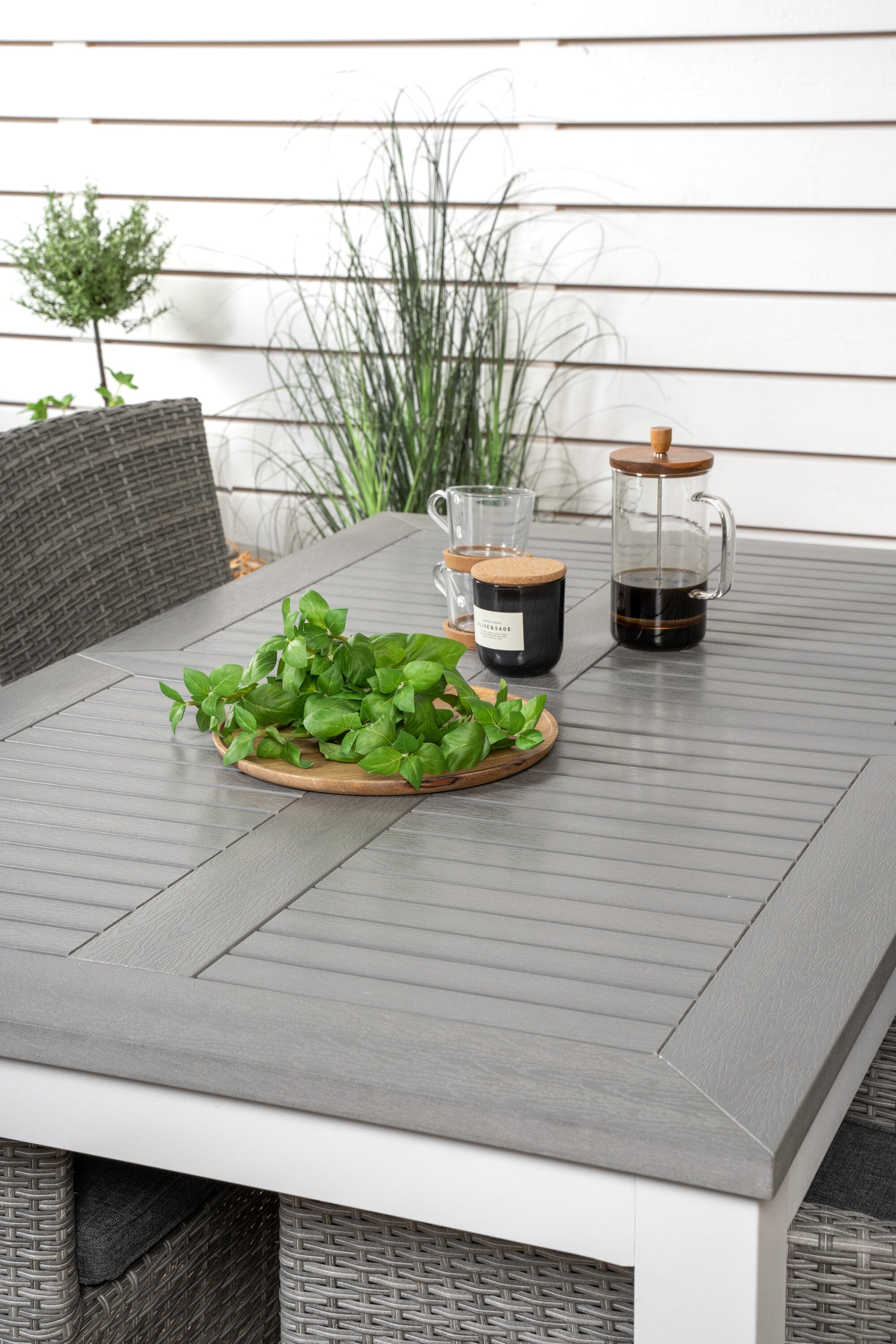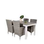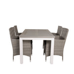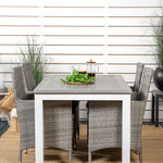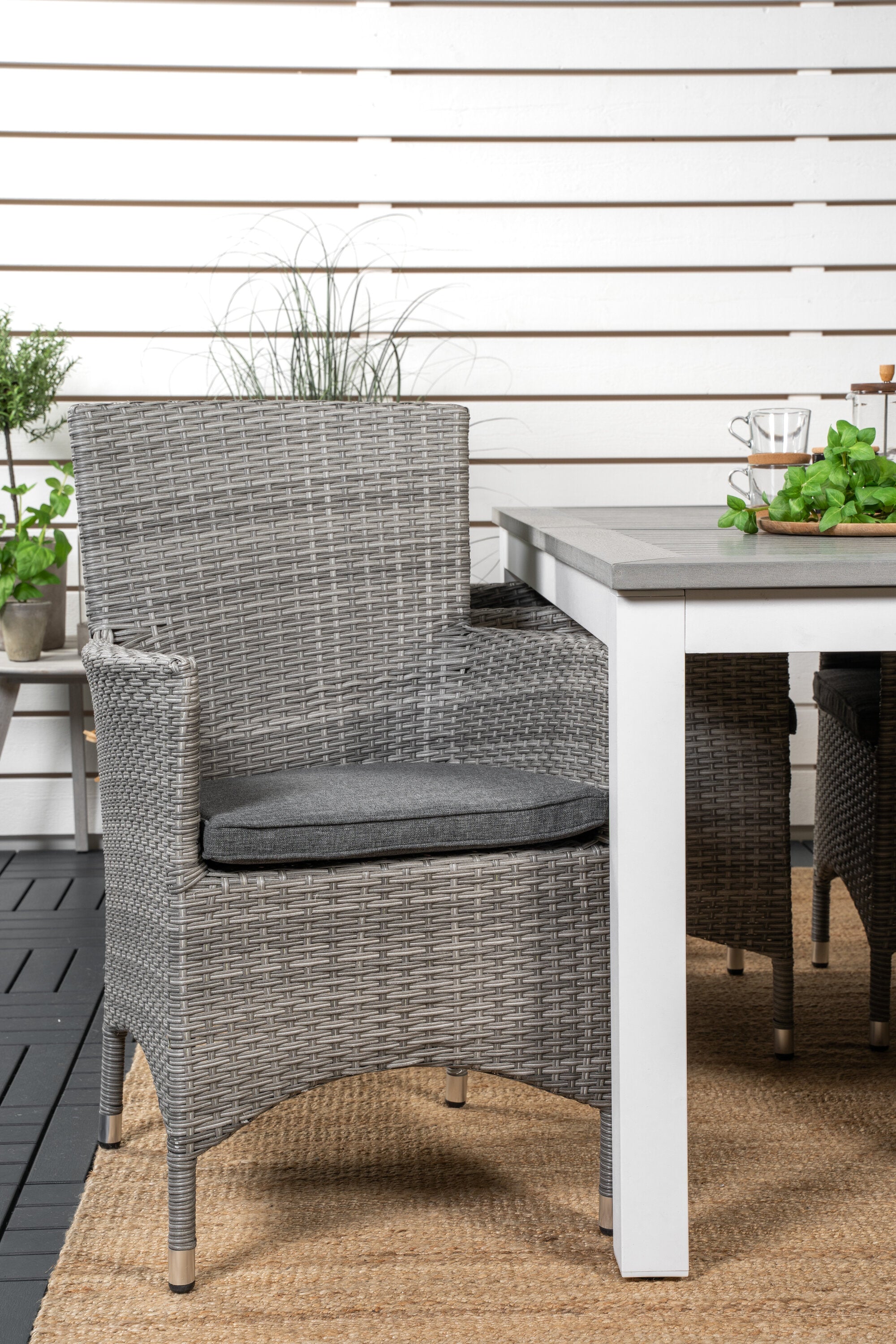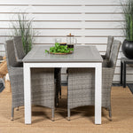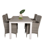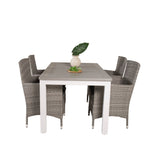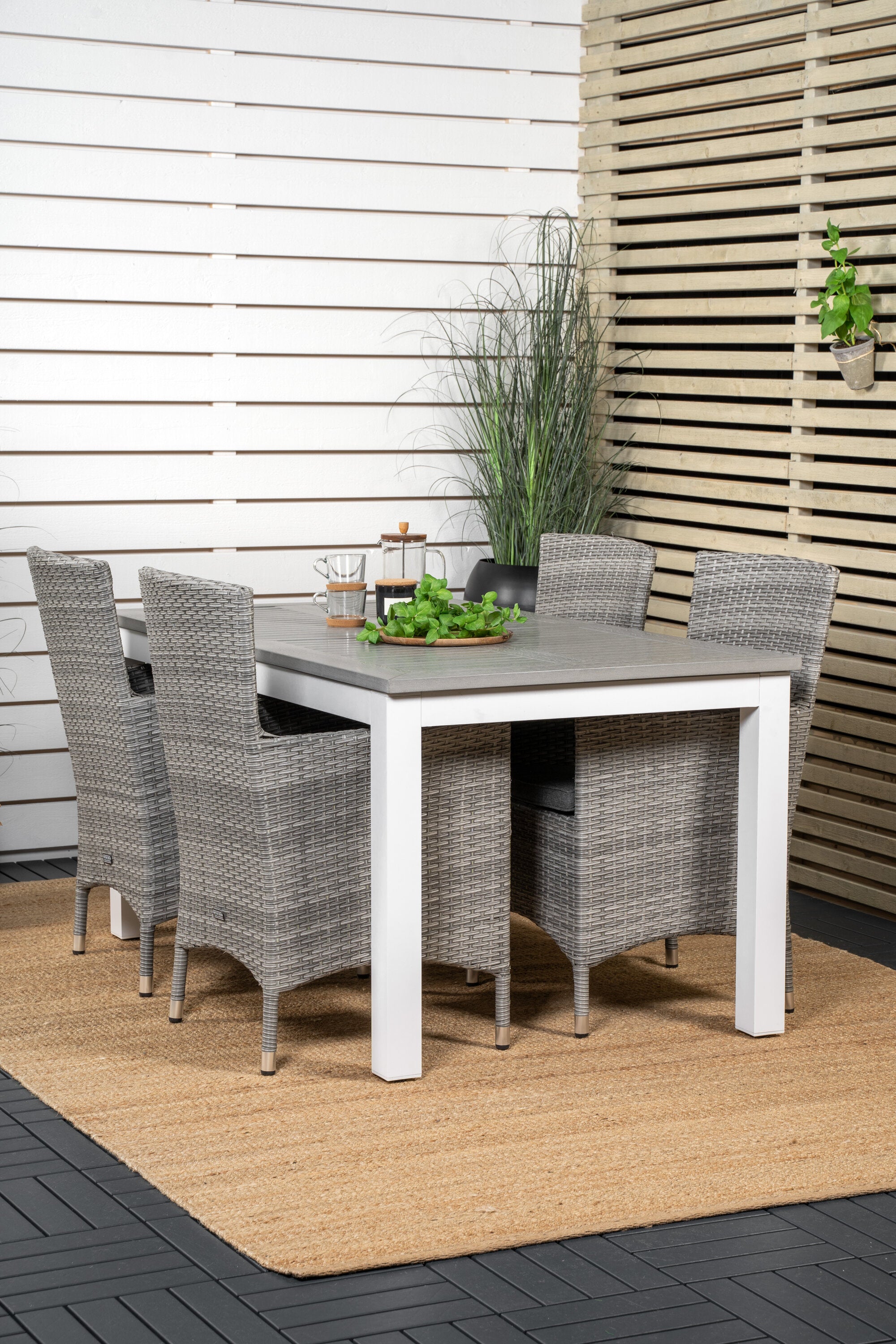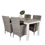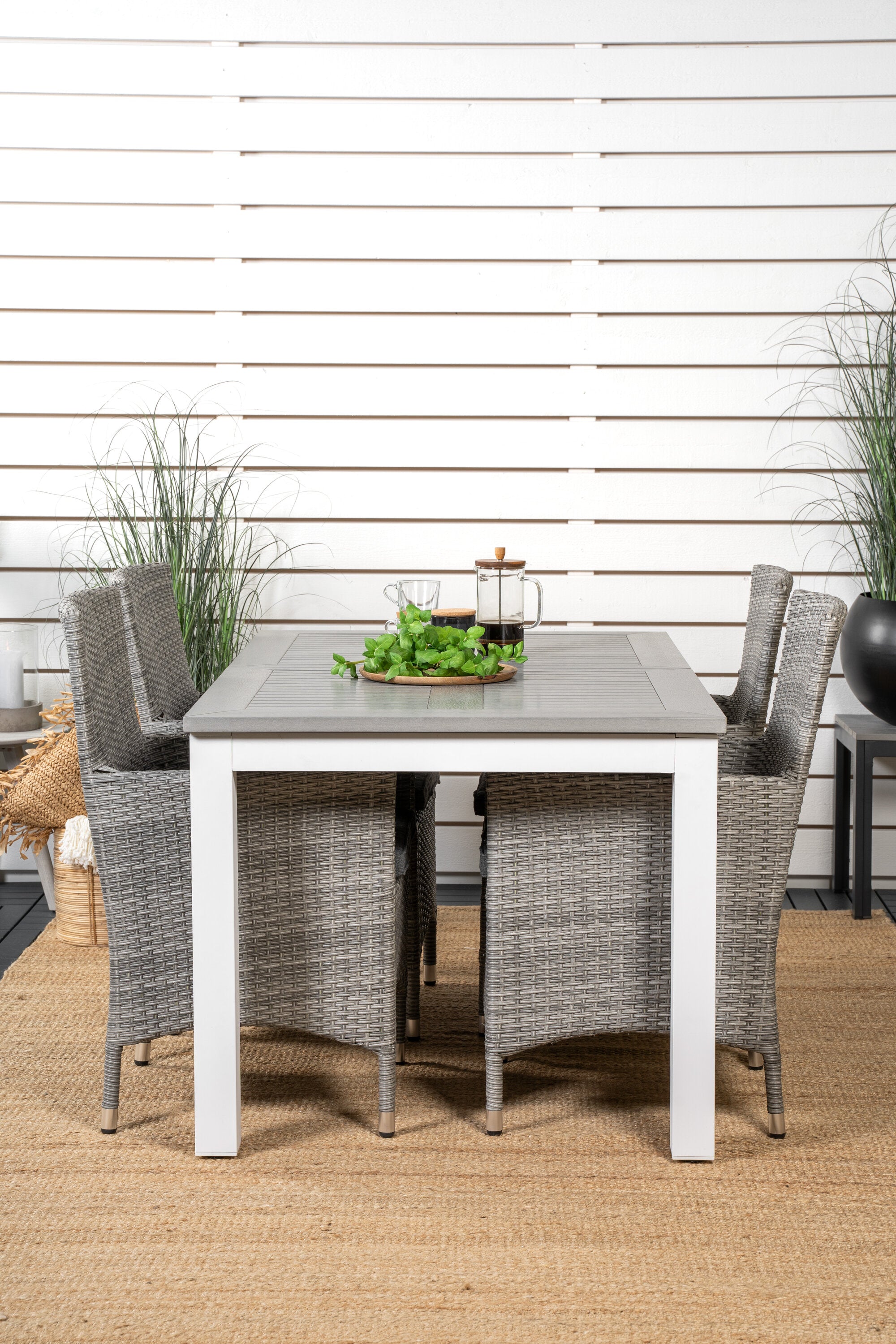 Klasická skupina jídel, která se hodí na většinu teras! Jídelní stůl Albany spolu s židlemi ze série Malin je jako dělaný pro ty, kteří chtějí na balkoně vytvořit útulný a moderní pocit.