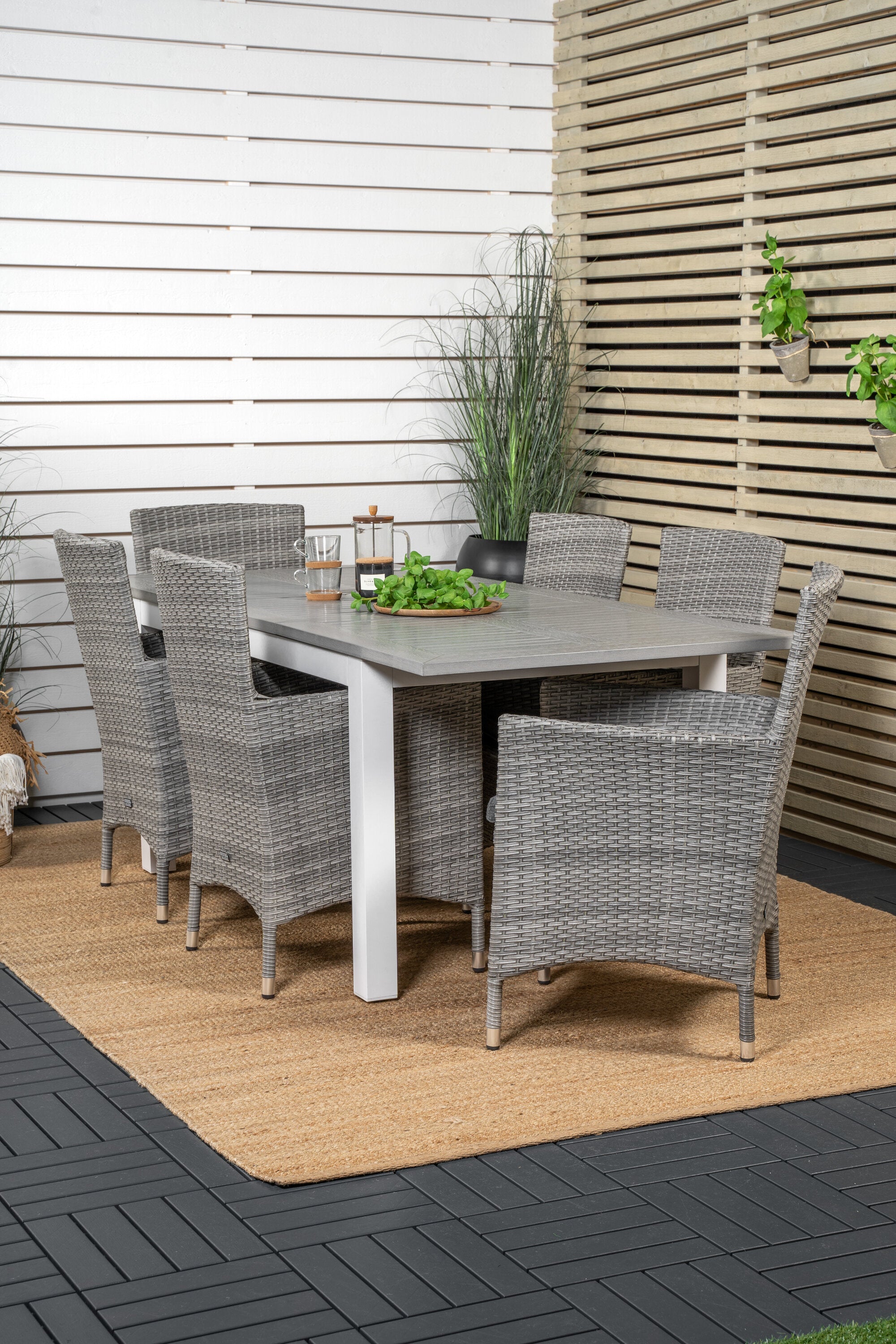 Jídelní stůl Albany 160/240*100 - Bílá Alu / Šedá Aintwood+Malin Područková židle s polštářem - Šedá / Šedá cushion_6
