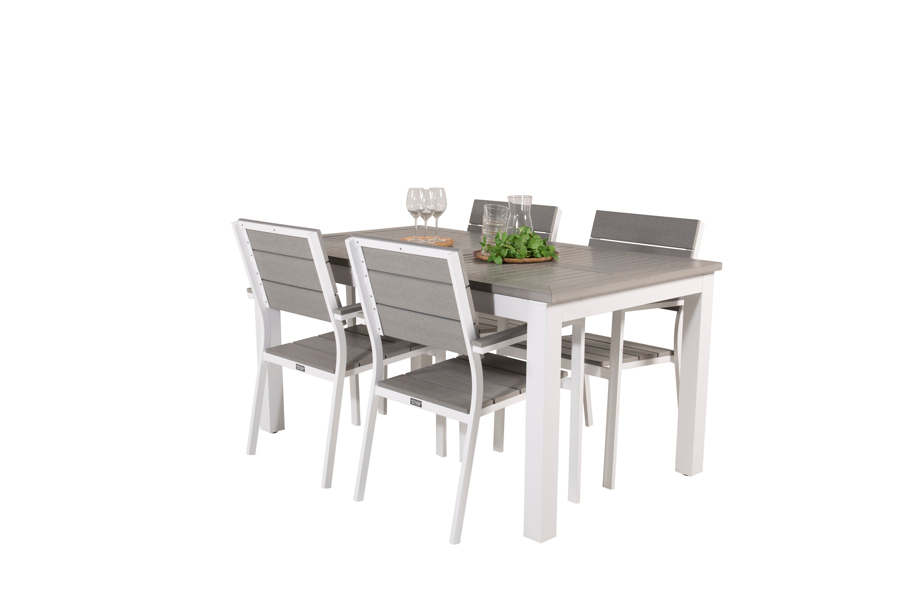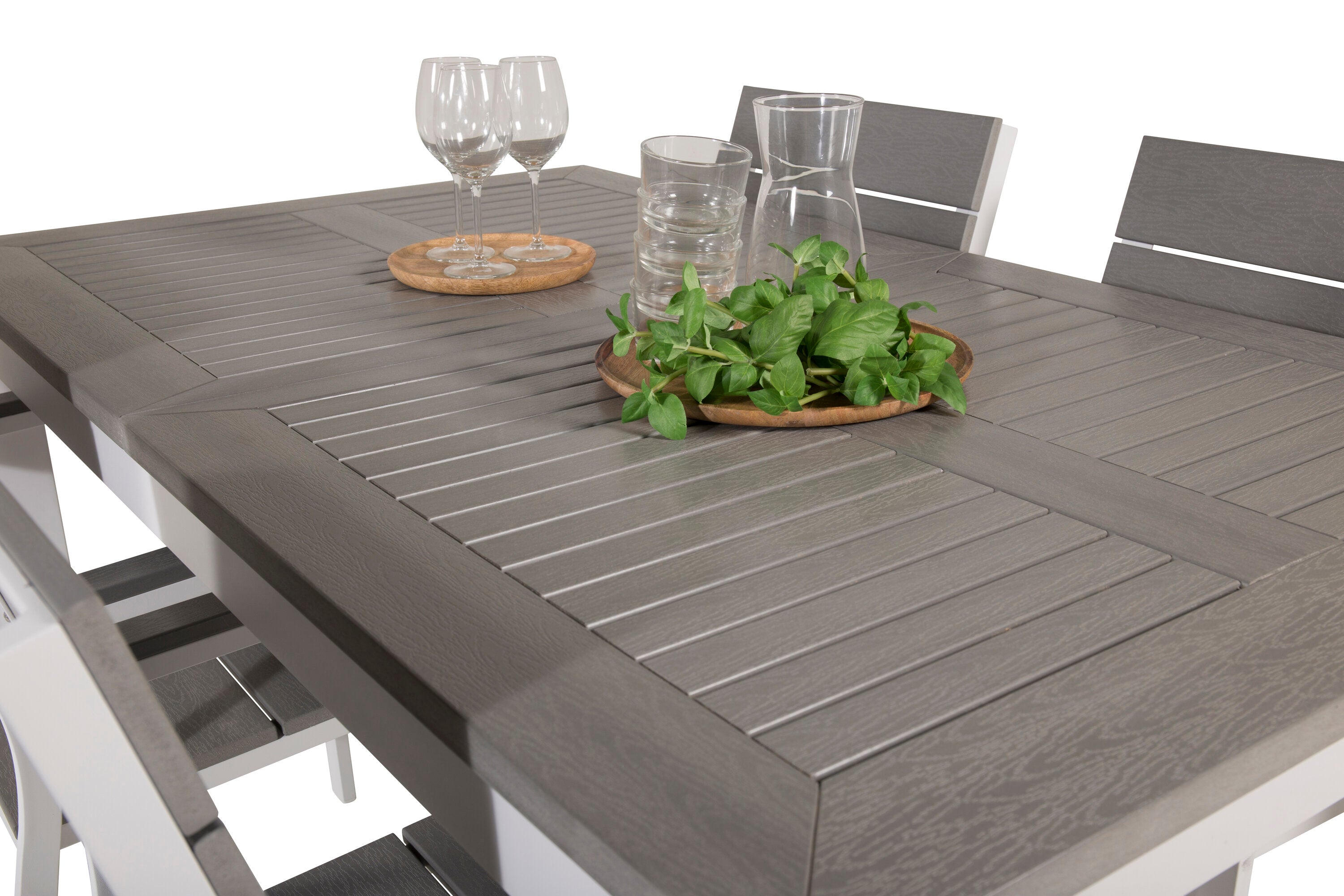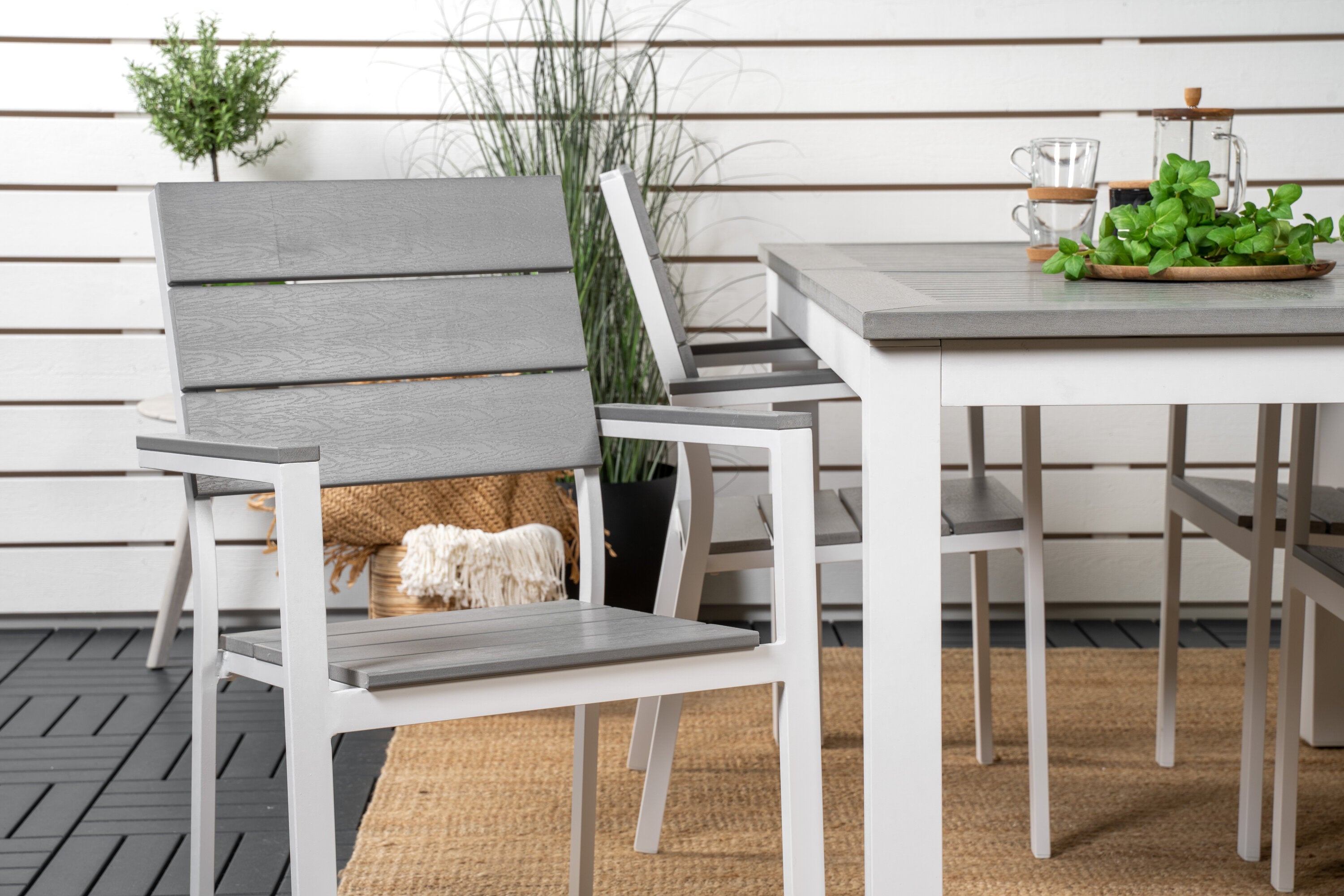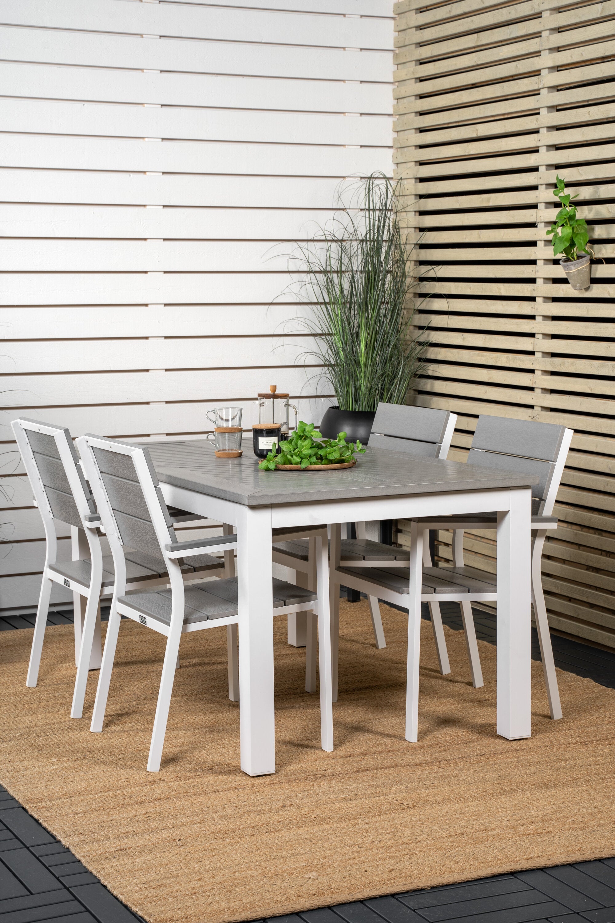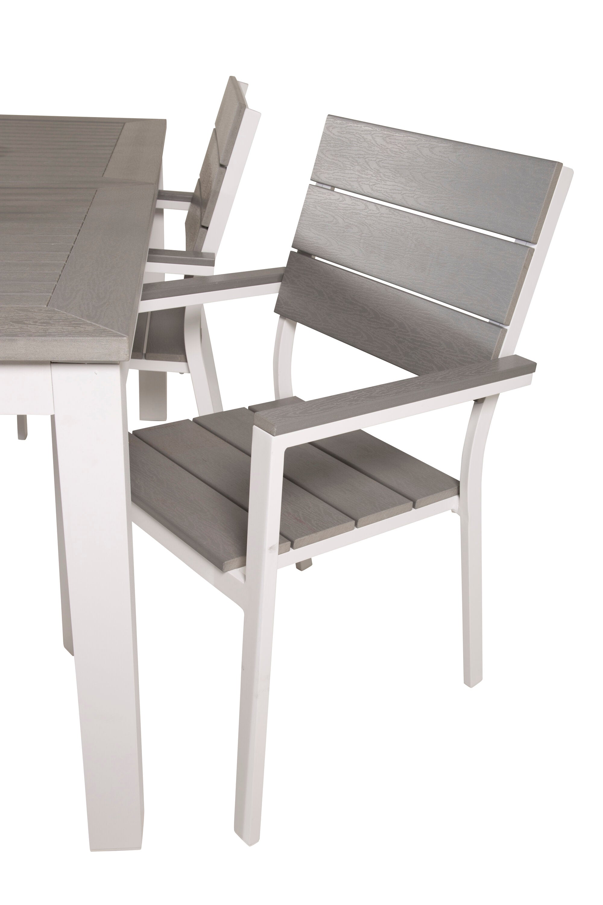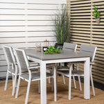 Jídelní stůl Albany 160/240*100 - Bílá Alu / Šedá Aintwood+Židle Aintwood+Levels (stohovatelné) - Bílá Alu / Šedá Aintwood_4