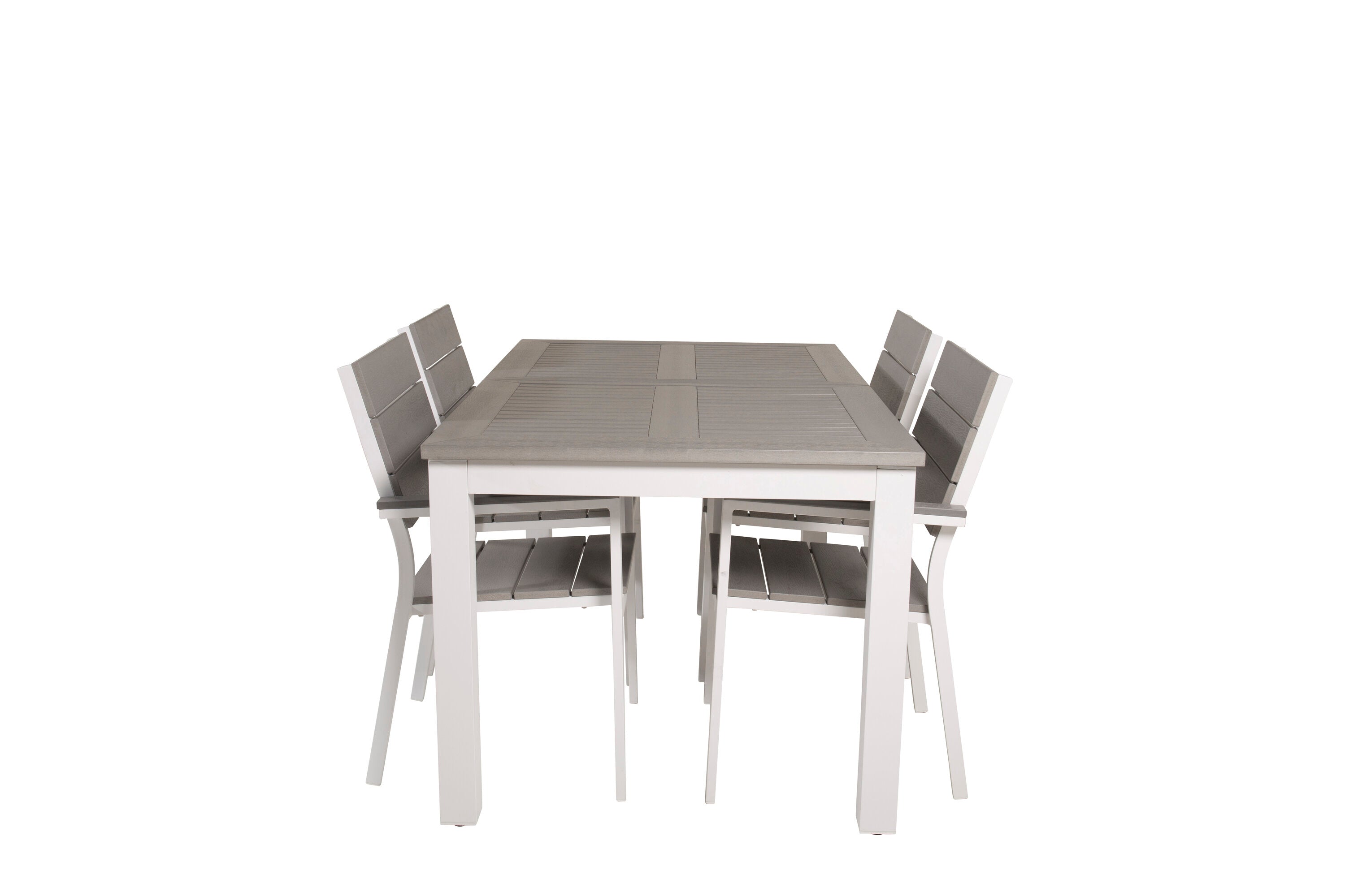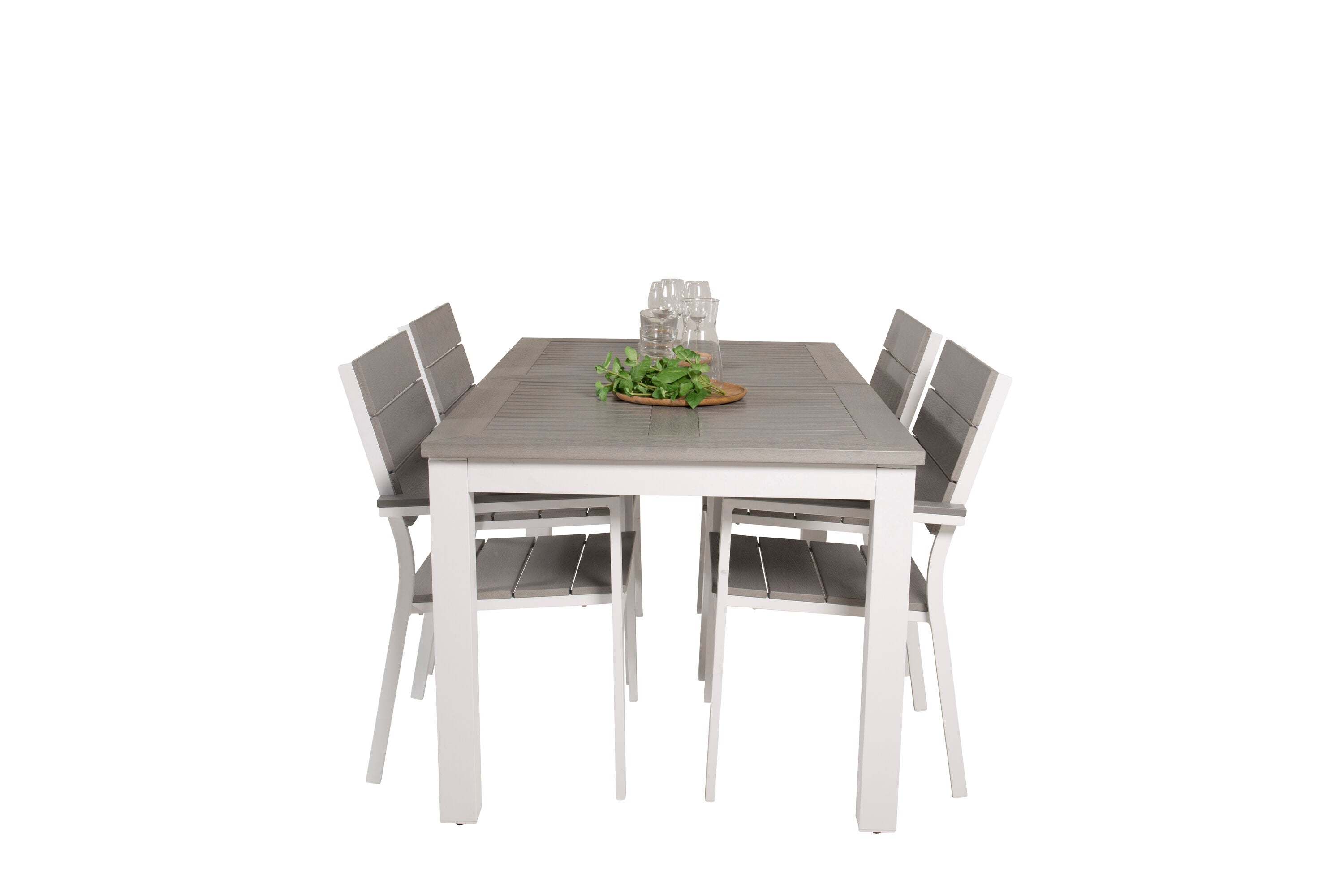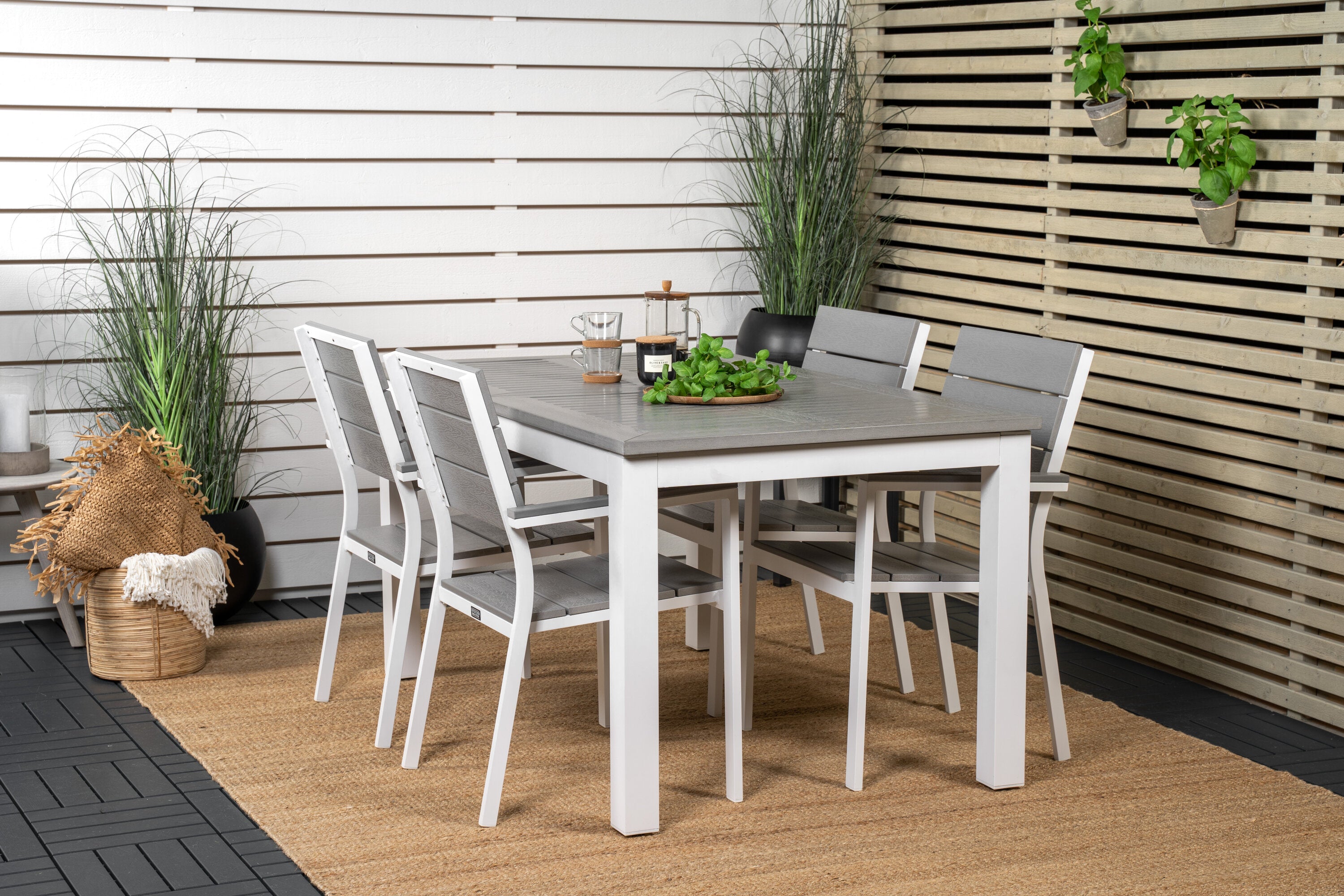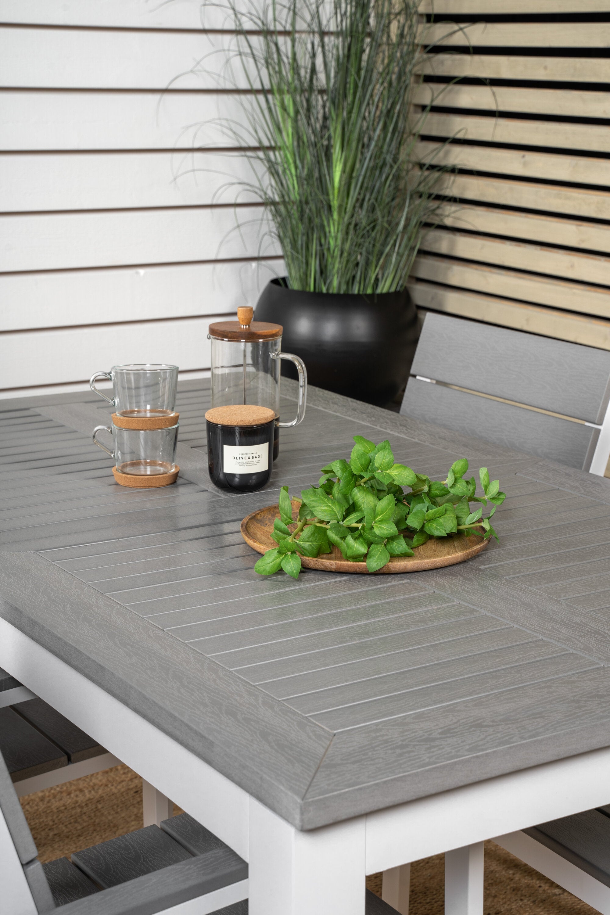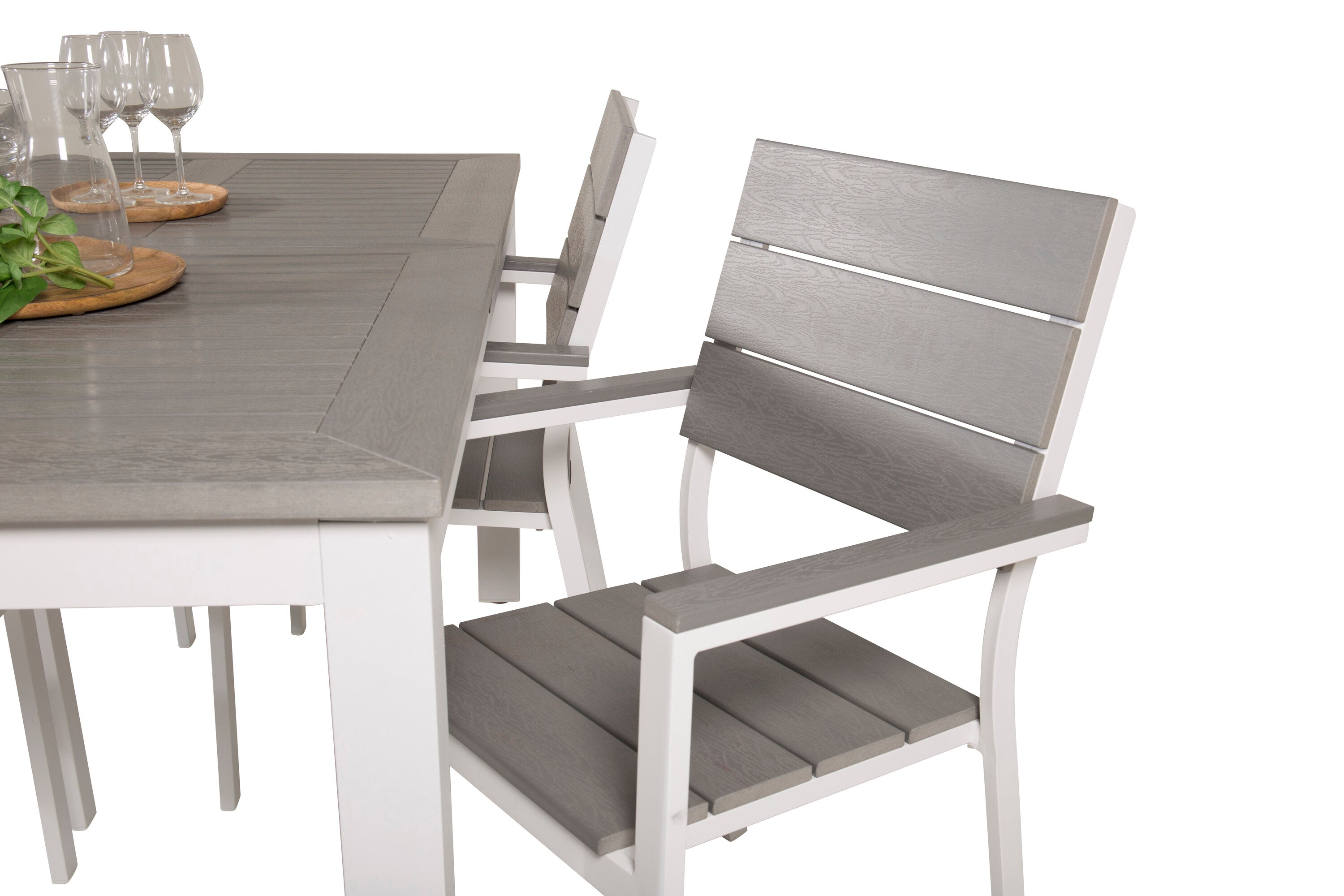 Jídelní stůl Albany 160/240*100 - Bílá Alu / Šedá Aintwood+Židle Aintwood+Levels (stohovatelné) - Bílá Alu / Šedá Aintwood_4