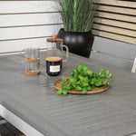 Skupina jídel v moderním a stylovém designu. Jídelní stůl Albany a jídelní židle Levels jsou perfektní kombinací do srdce zahrady!