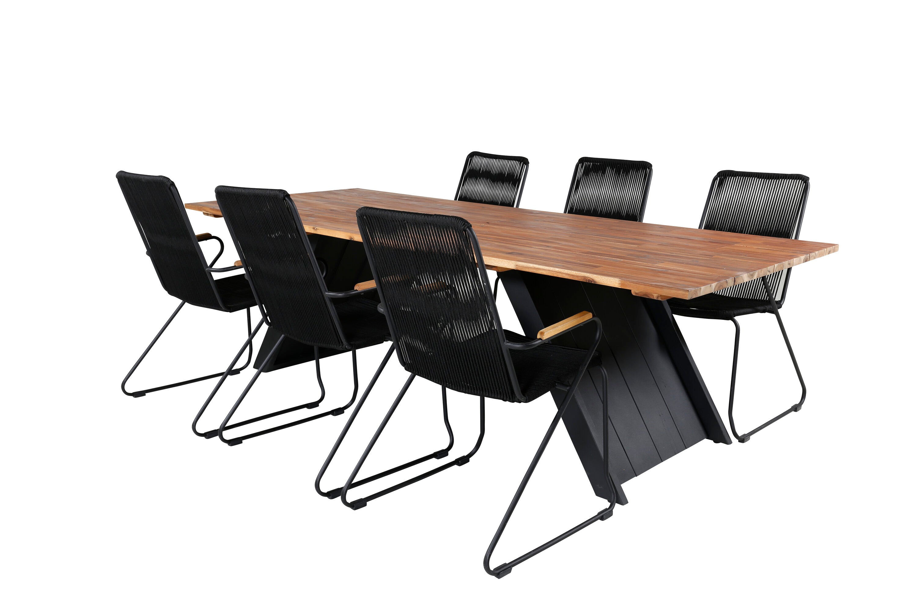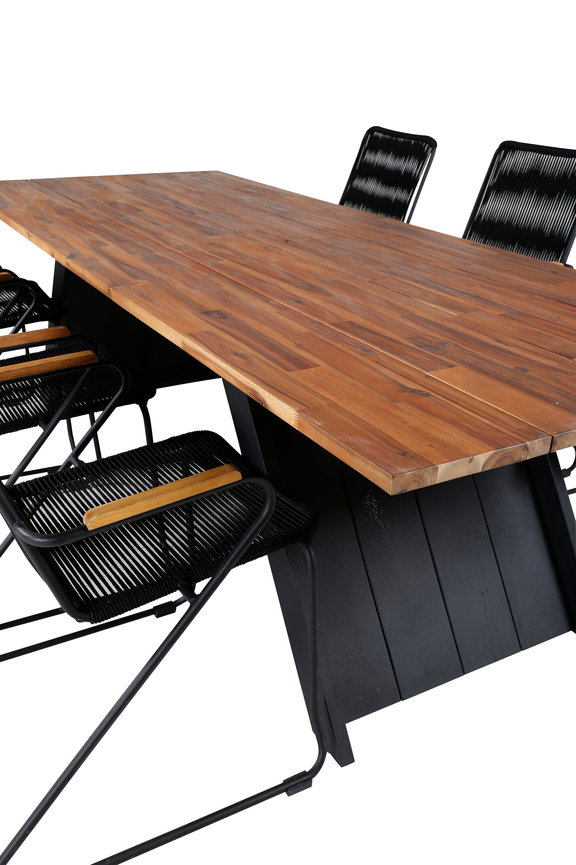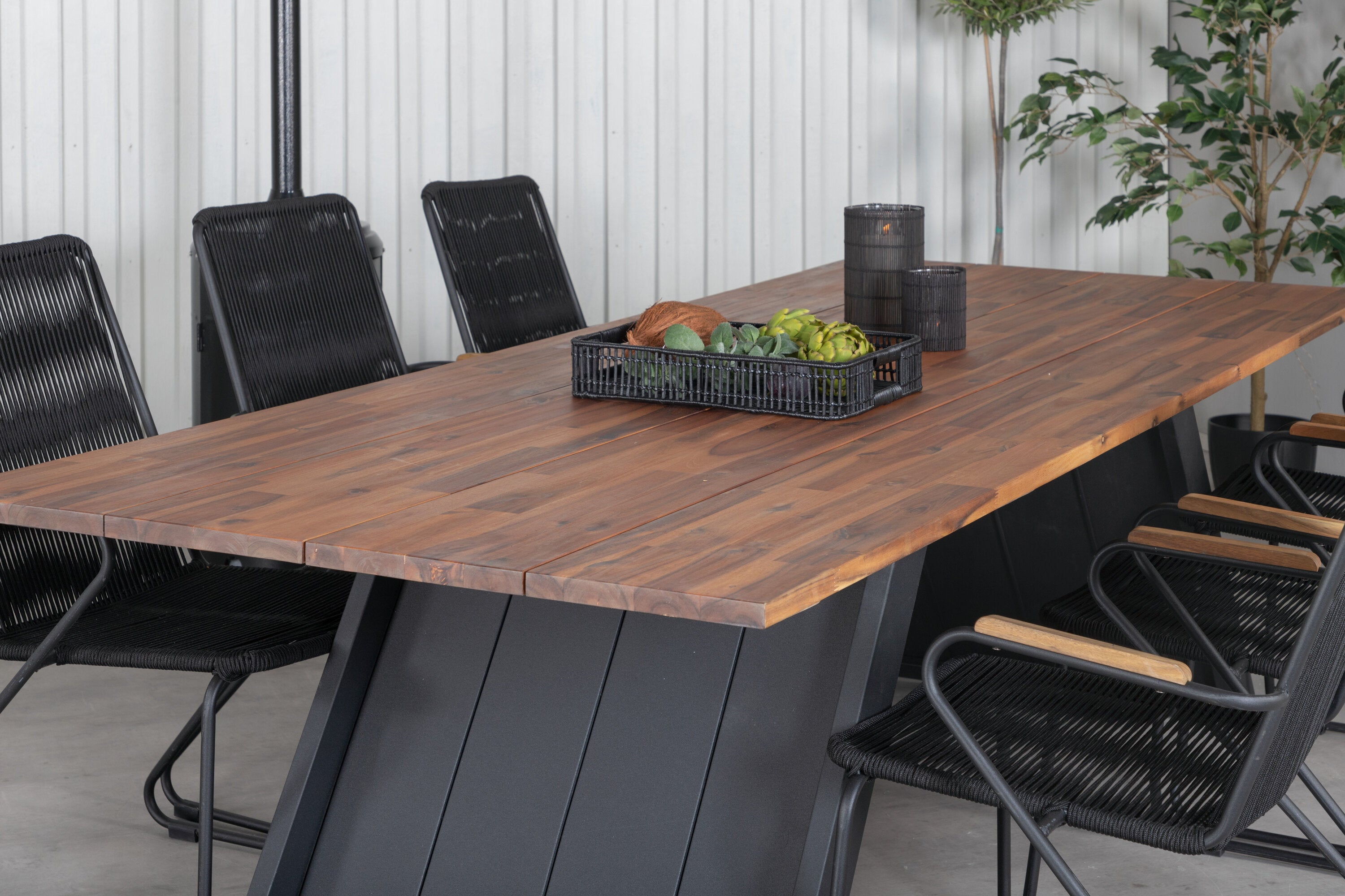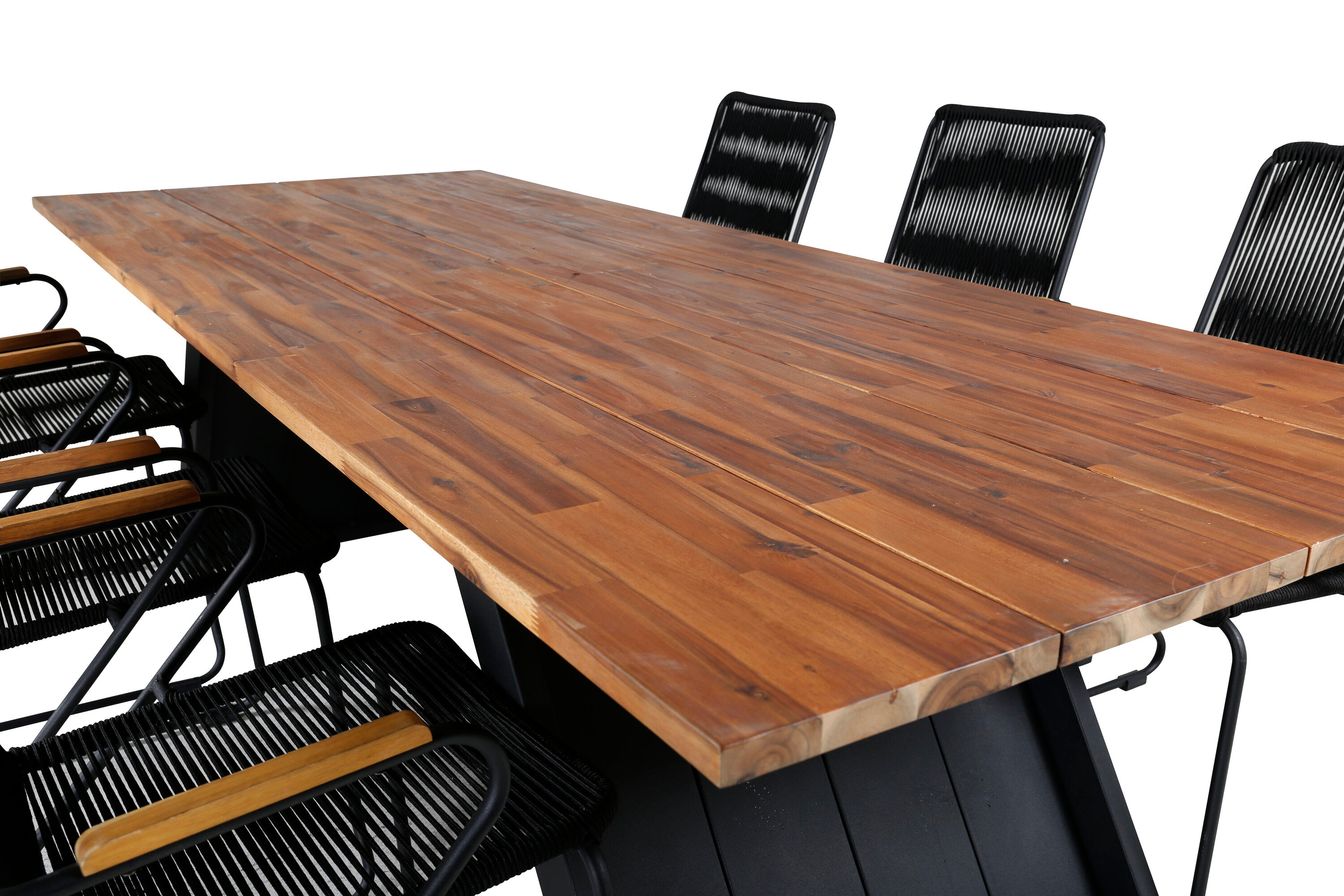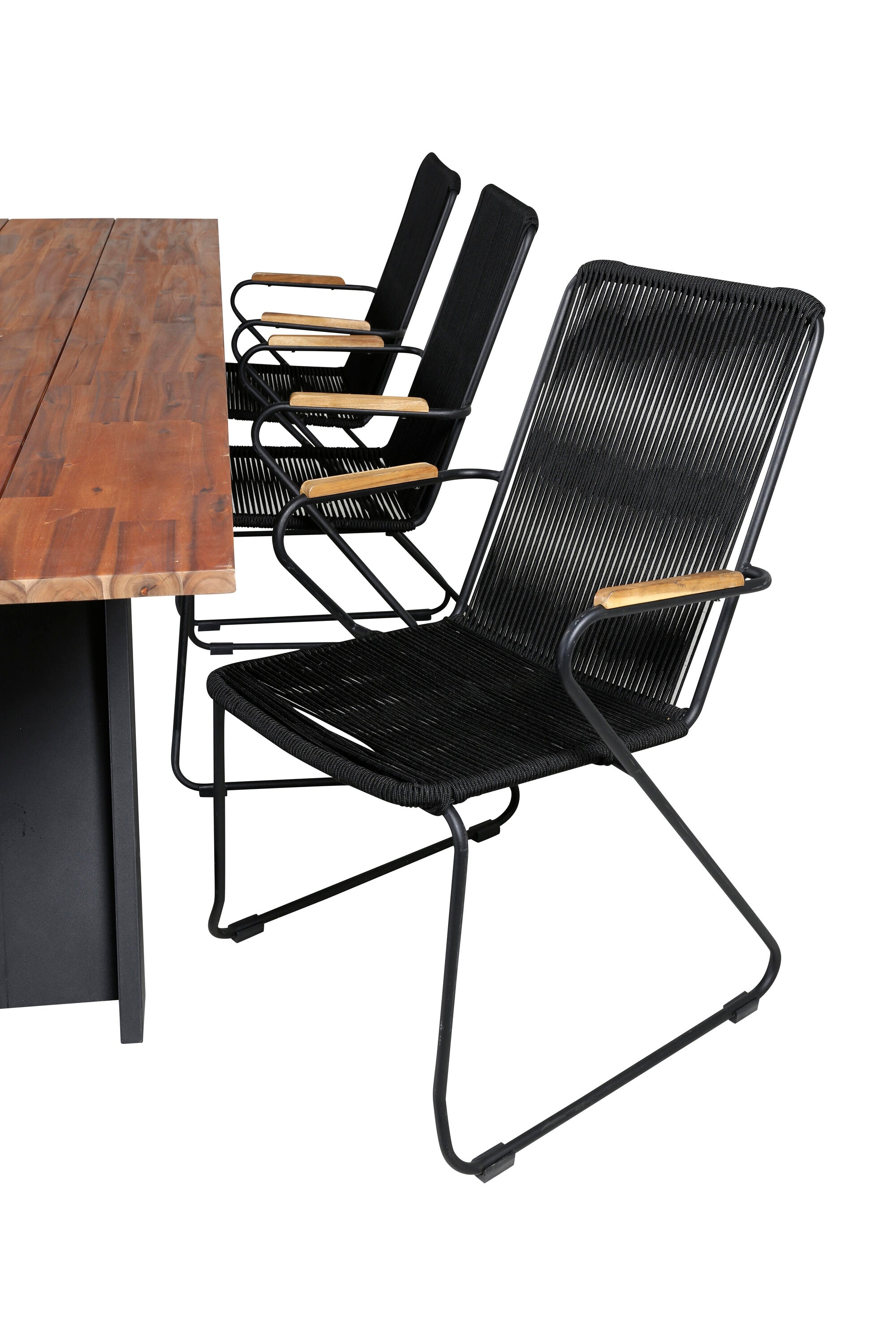 Jídelní stůl Doory - černá ocel / akátová deska v teakovém vzhledu - 250*100 cm + křeslo Bois - Black Alu / Black Lano / Acacia_6