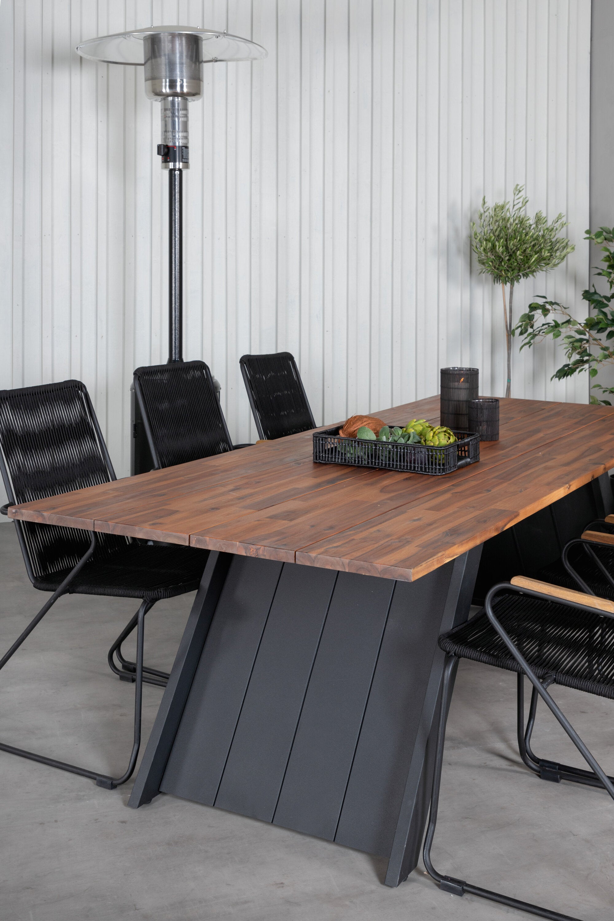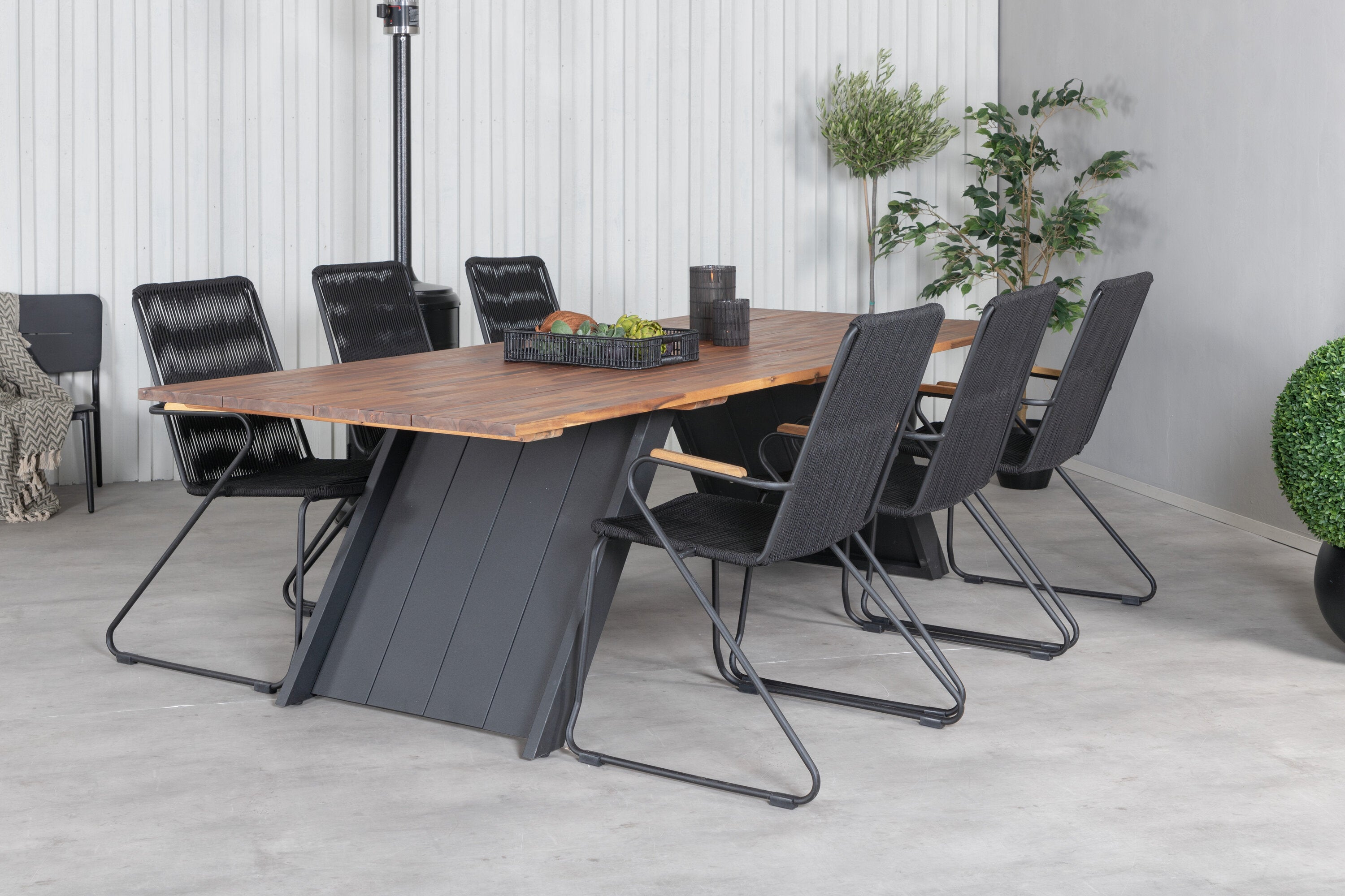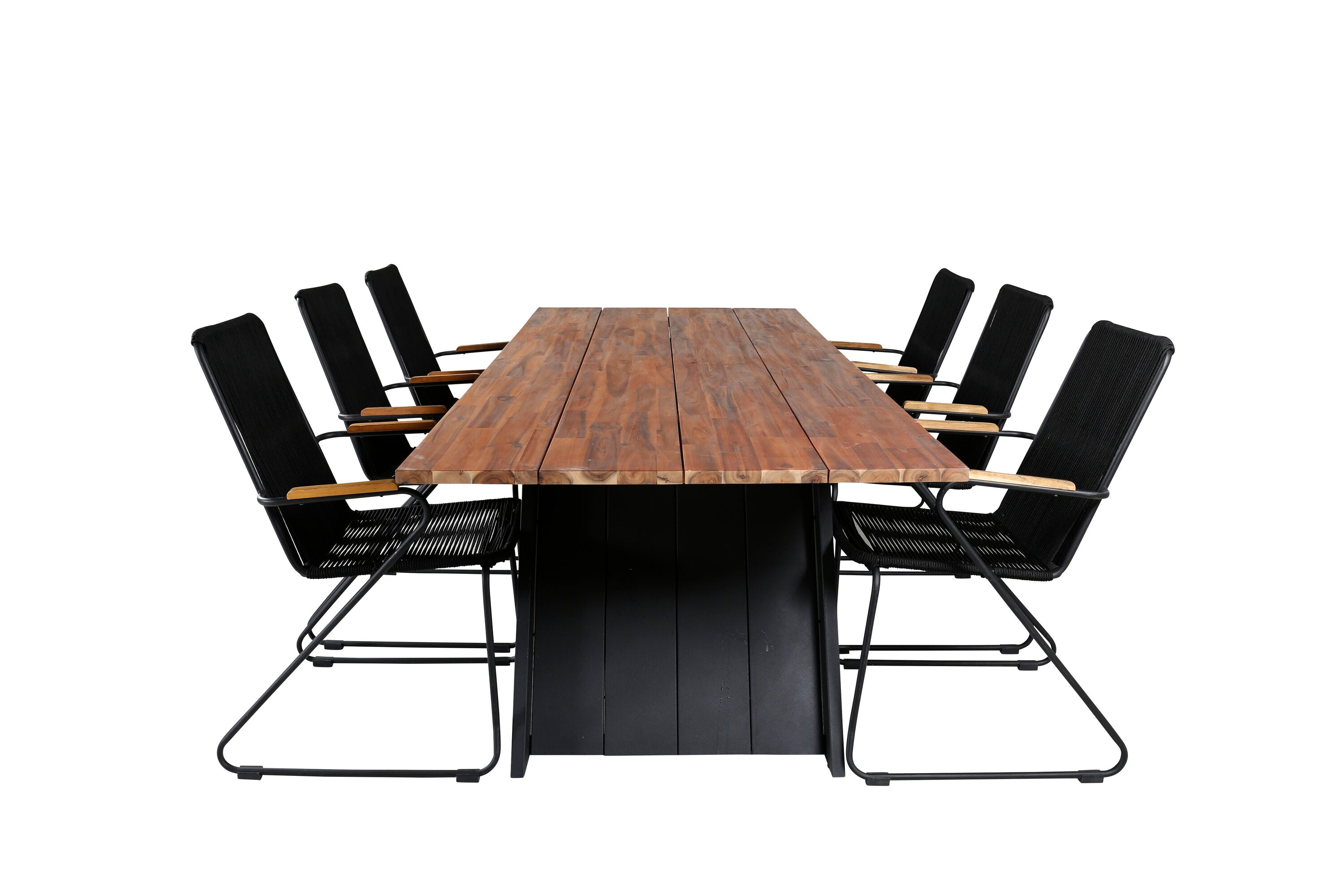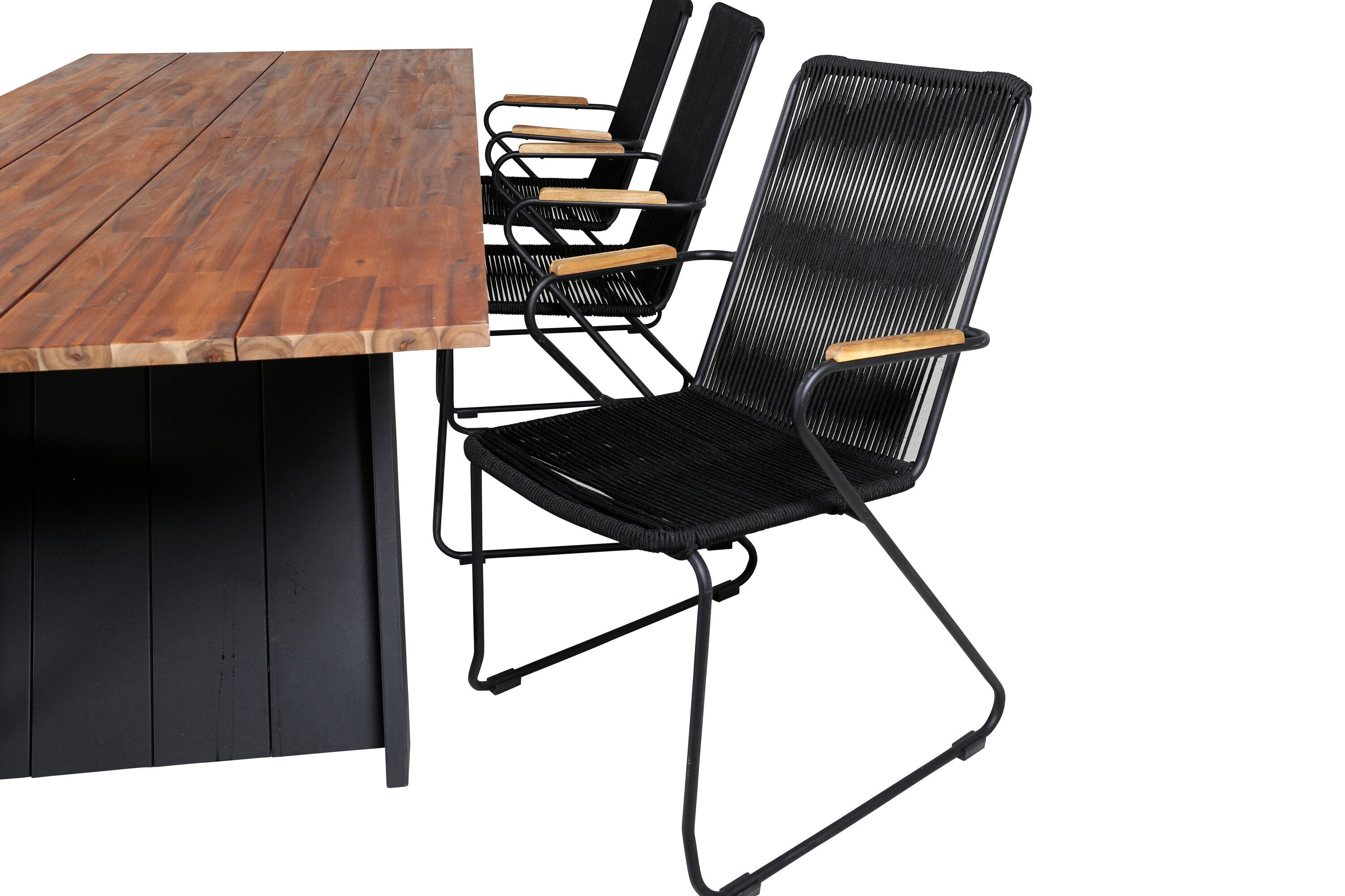 Jídelní stůl Doory - černá ocel / akátová deska v teakovém vzhledu - 250*100 cm + křeslo Bois - Black Alu / Black Lano / Acacia_6